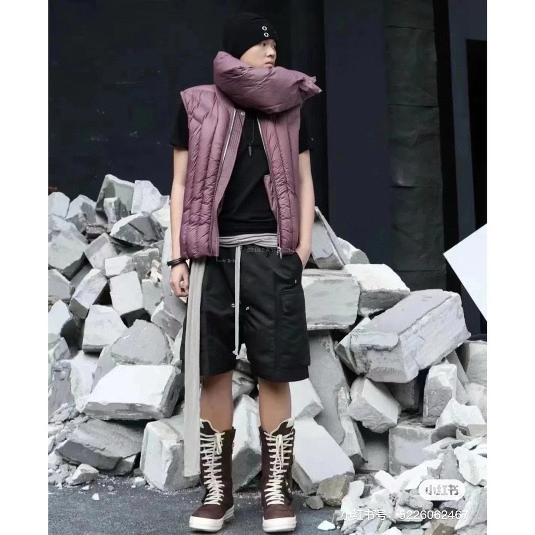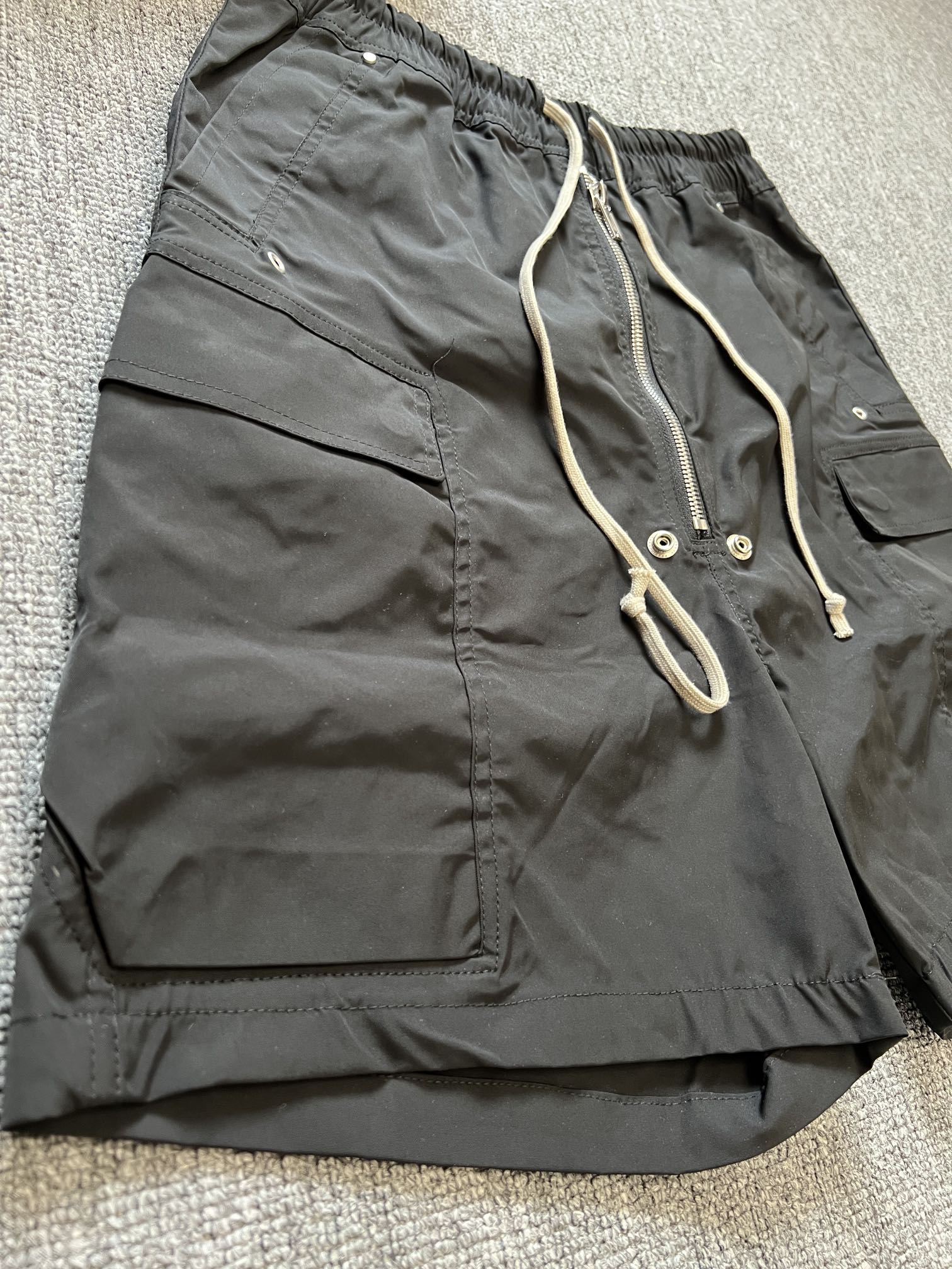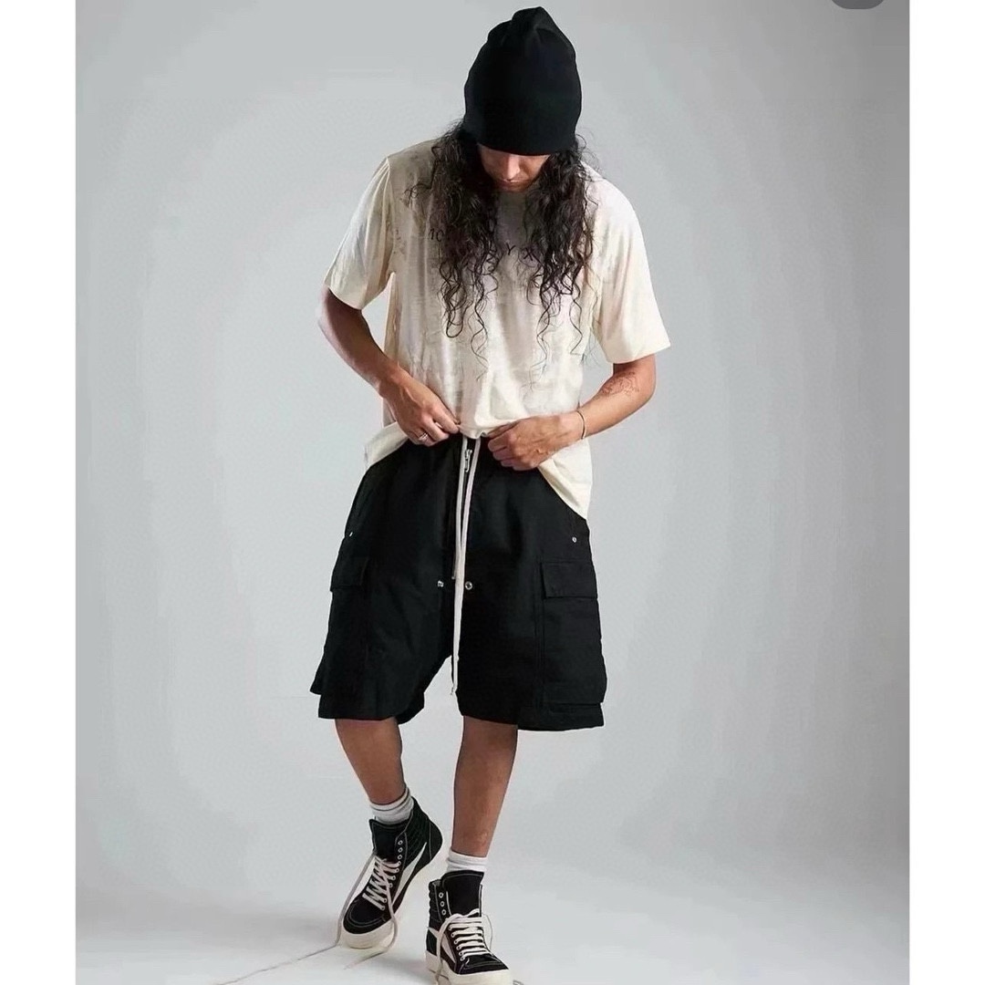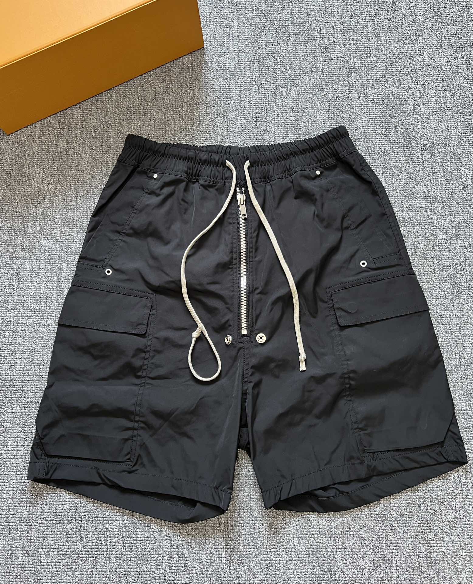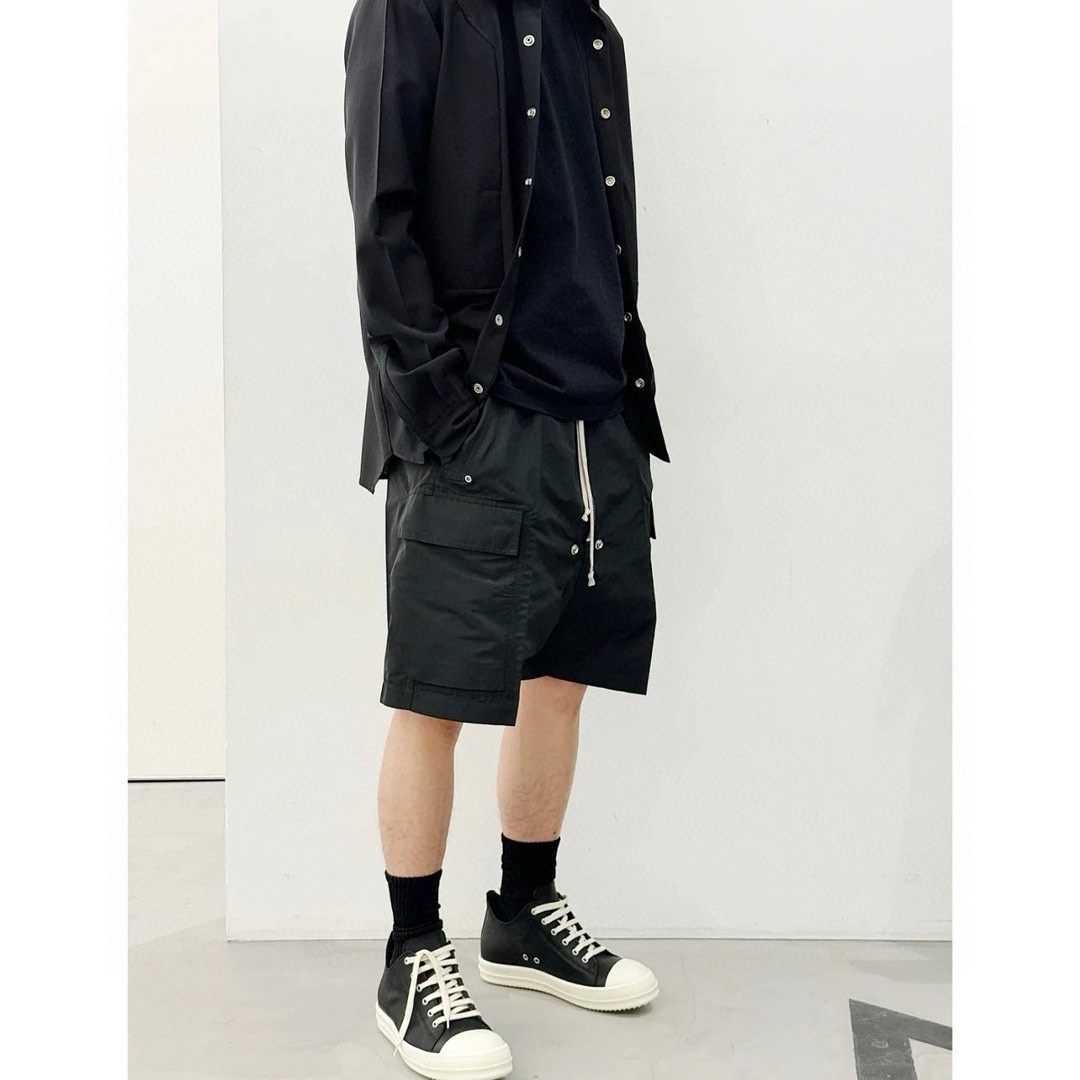 NIGO Rick Owens Men's Summer High Street Elastic Waist Tie Straight Solid Color Casual Nylon Shorts #nigo71641
