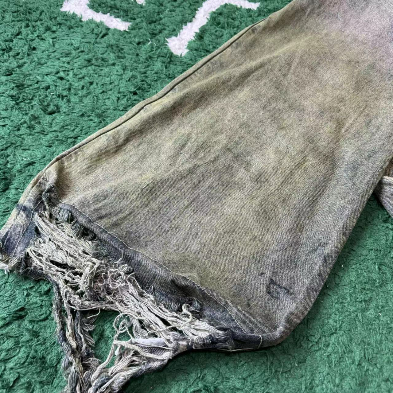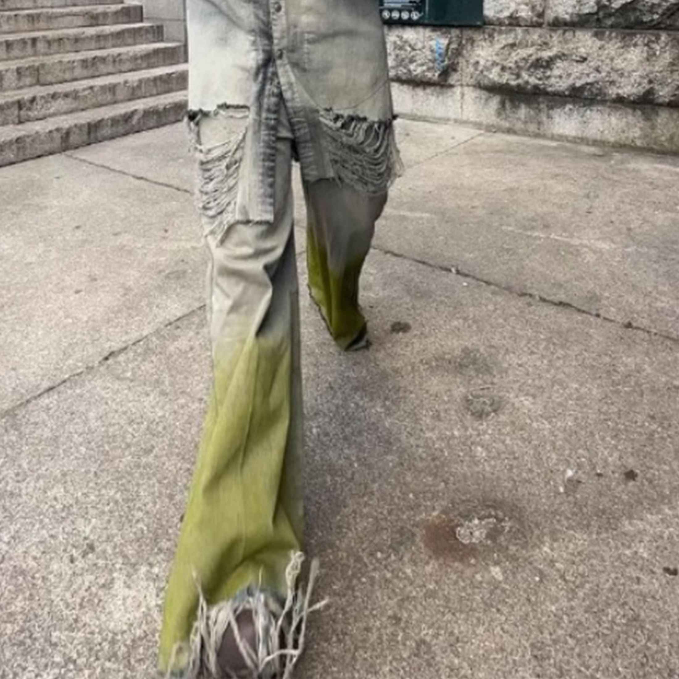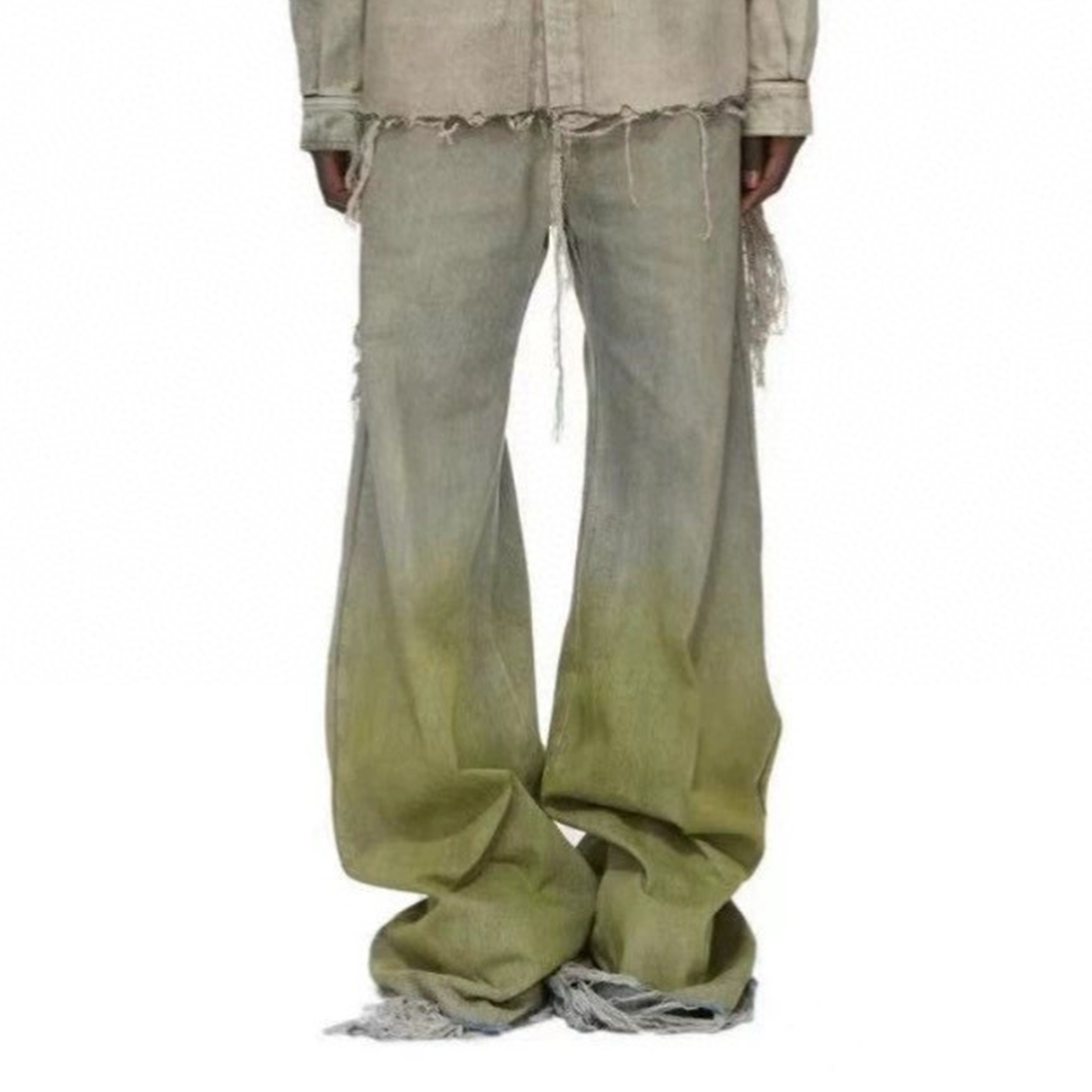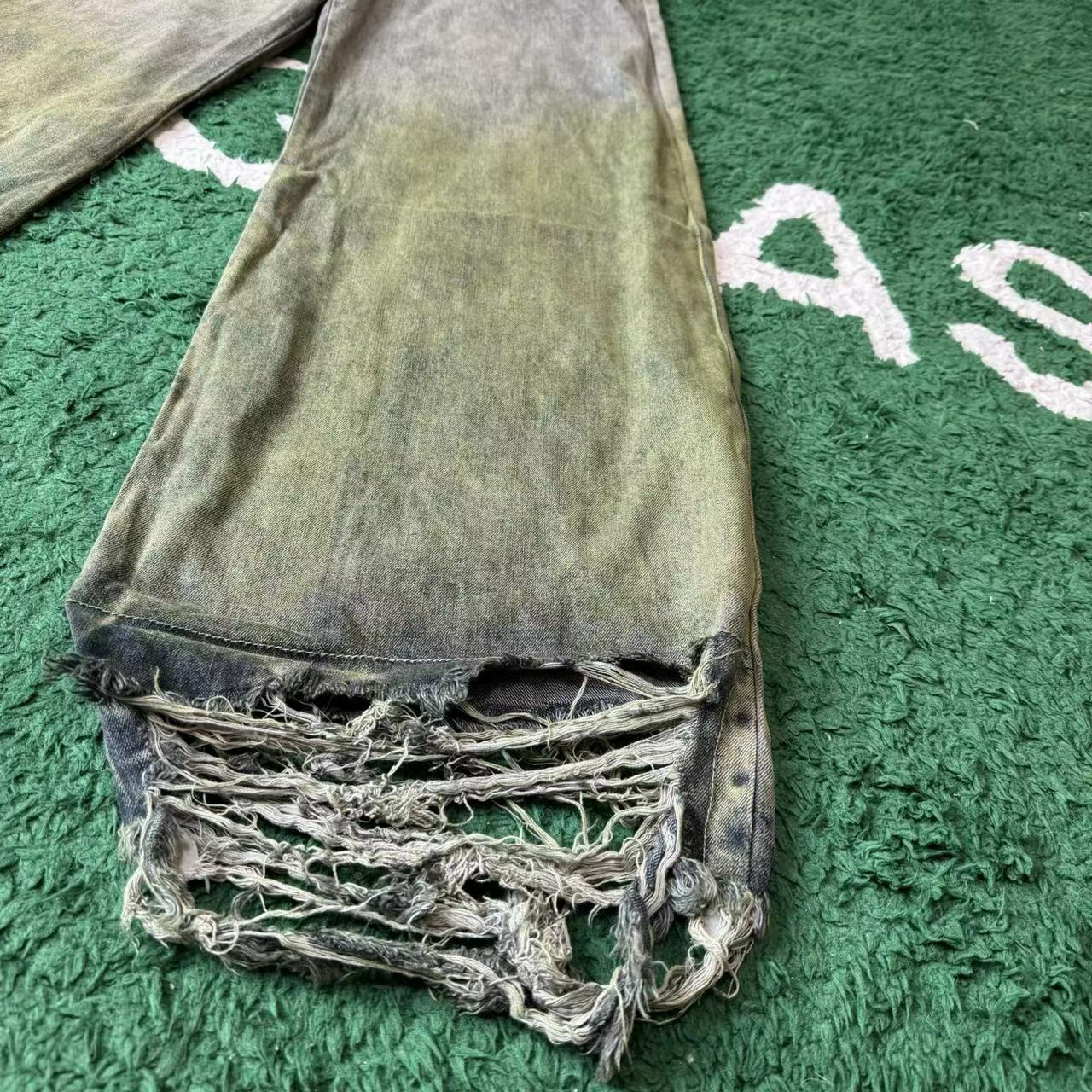 NIGO Rick Owens Men's Women's Four Seasons Gradient Yellow Green Washed Vintage Hole Breaking Wide Leg Denim Long Pants Ngvp #nigo8192