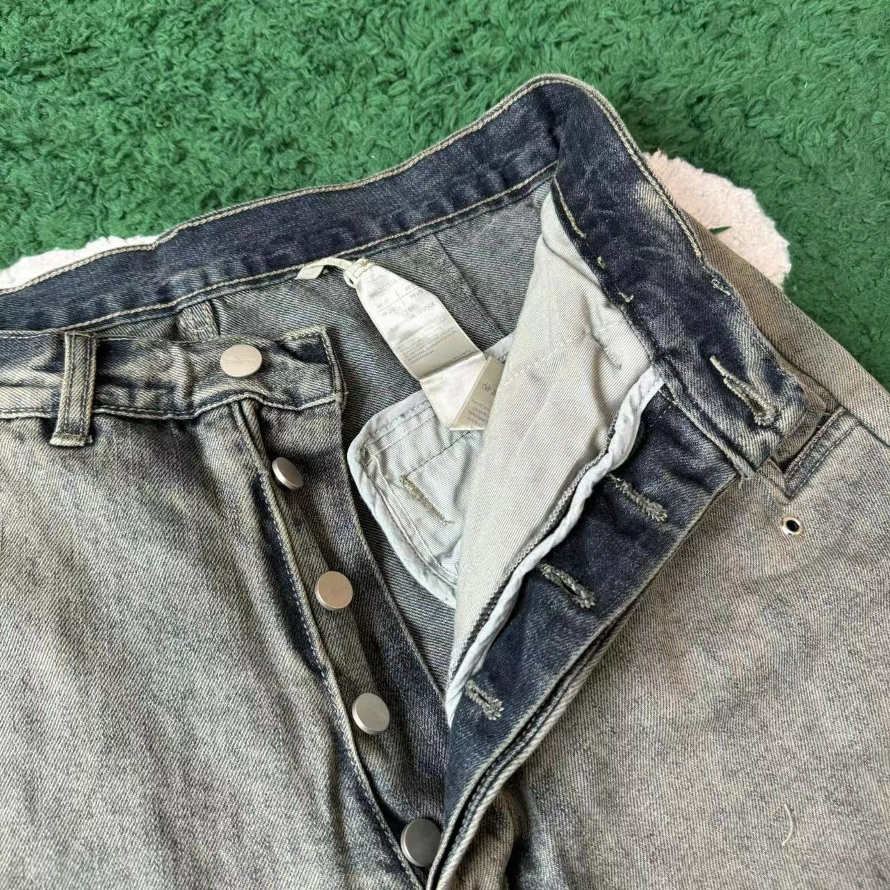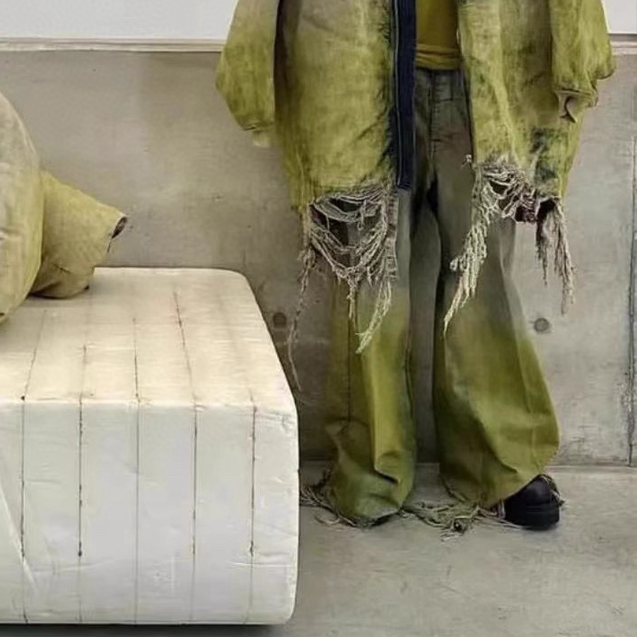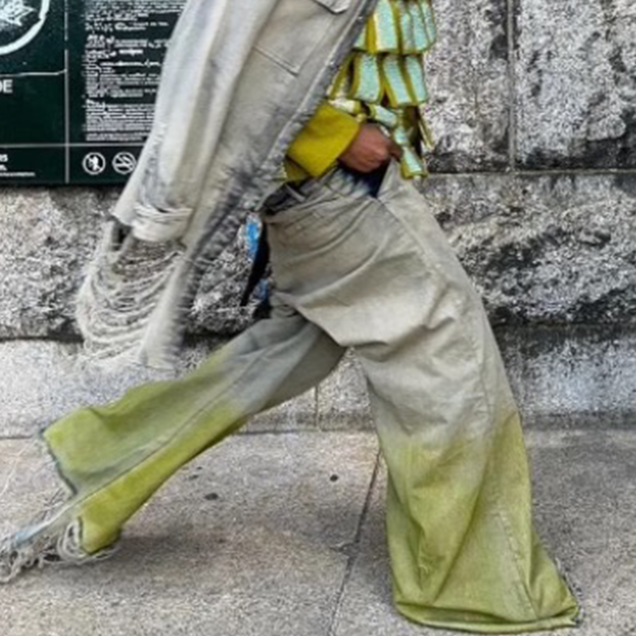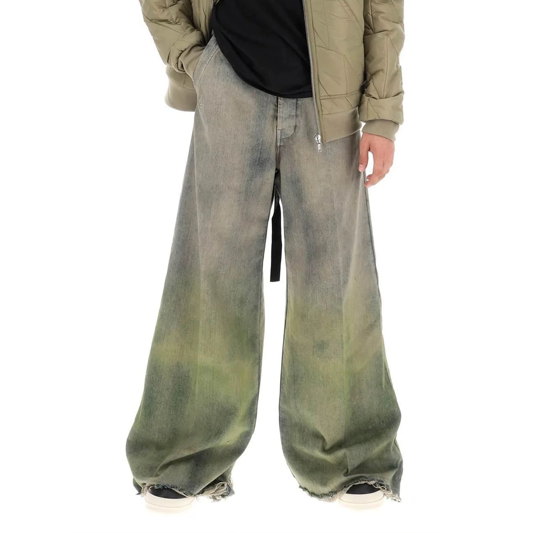 NIGO Rick Owens Men's Women's Four Seasons Gradient Yellow Green Washed Vintage Hole Breaking Wide Leg Denim Long Pants Ngvp #nigo8192
