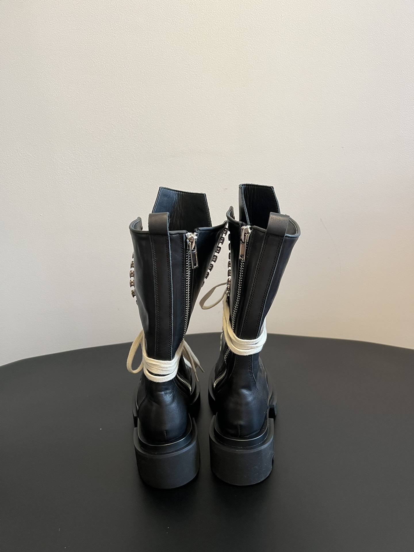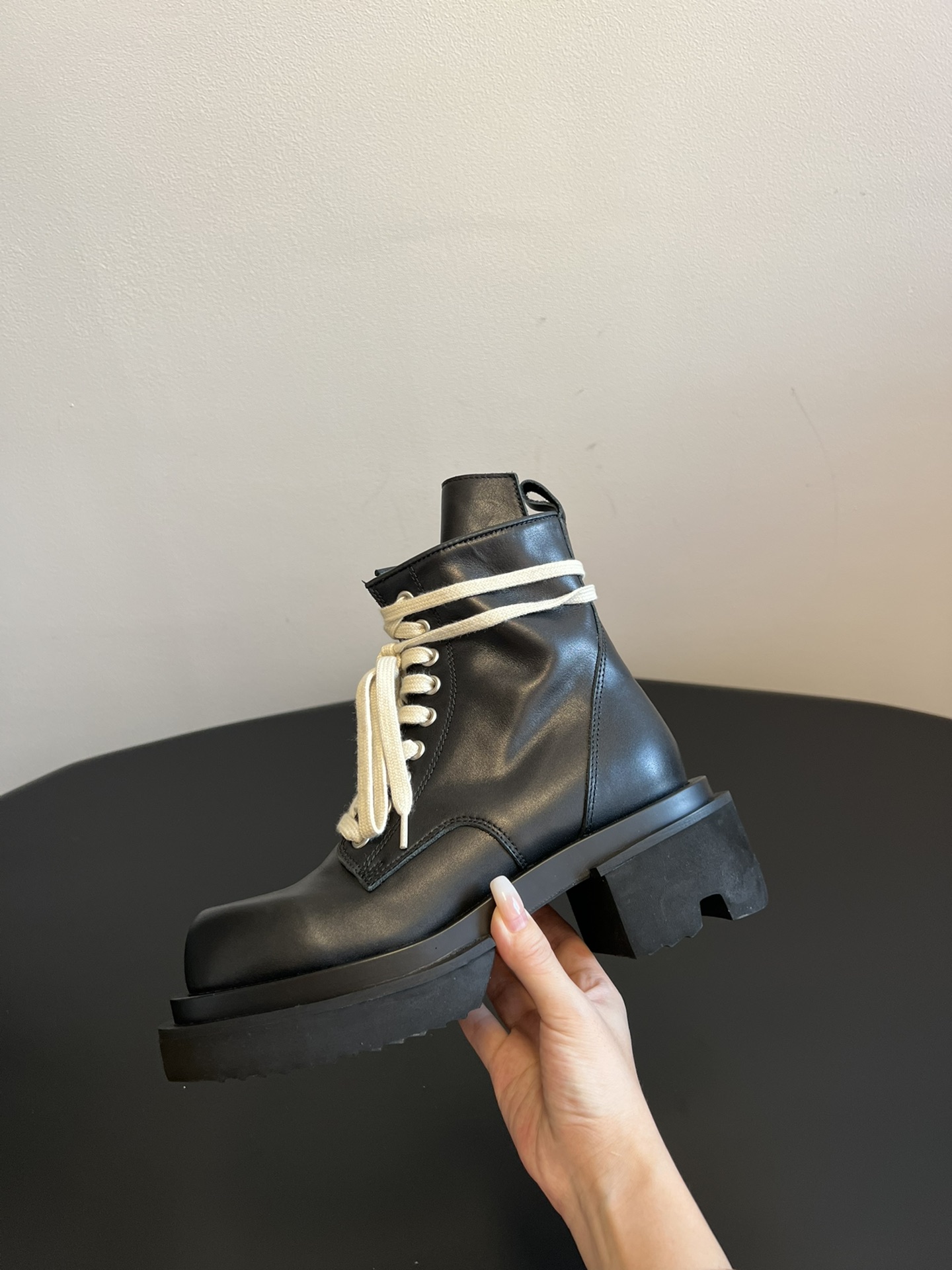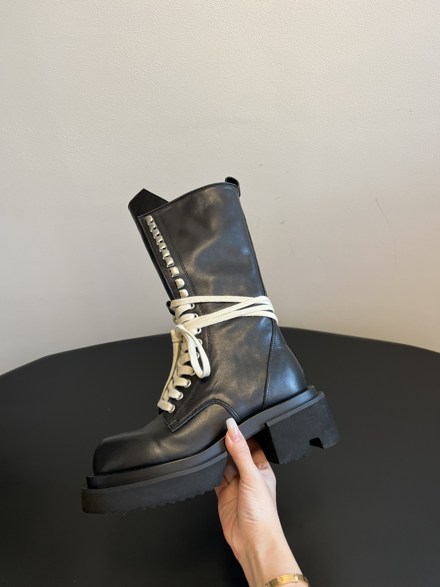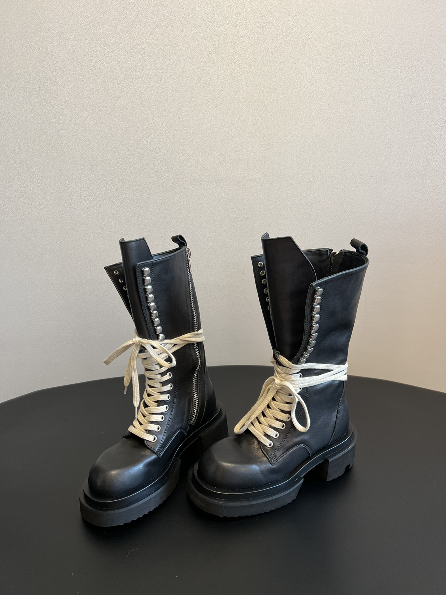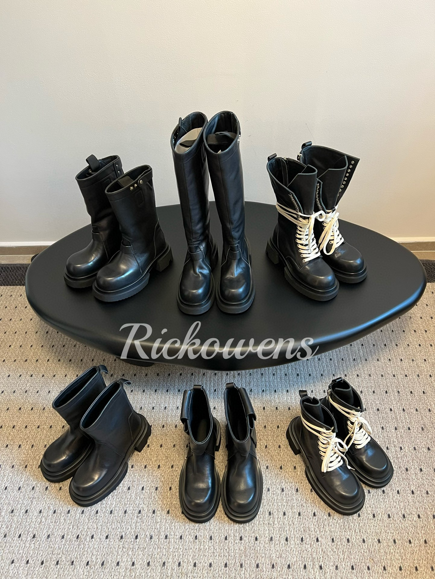 NIGO Rick Owens Women's Solid Color Autumn And Winter Leather Thigh High Boots Casual Shoes Lace Up Round Head Short Boots Ngvp #nigo9368