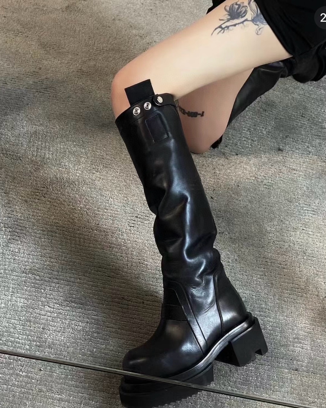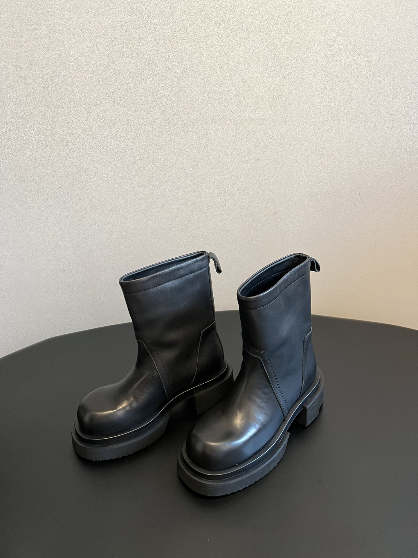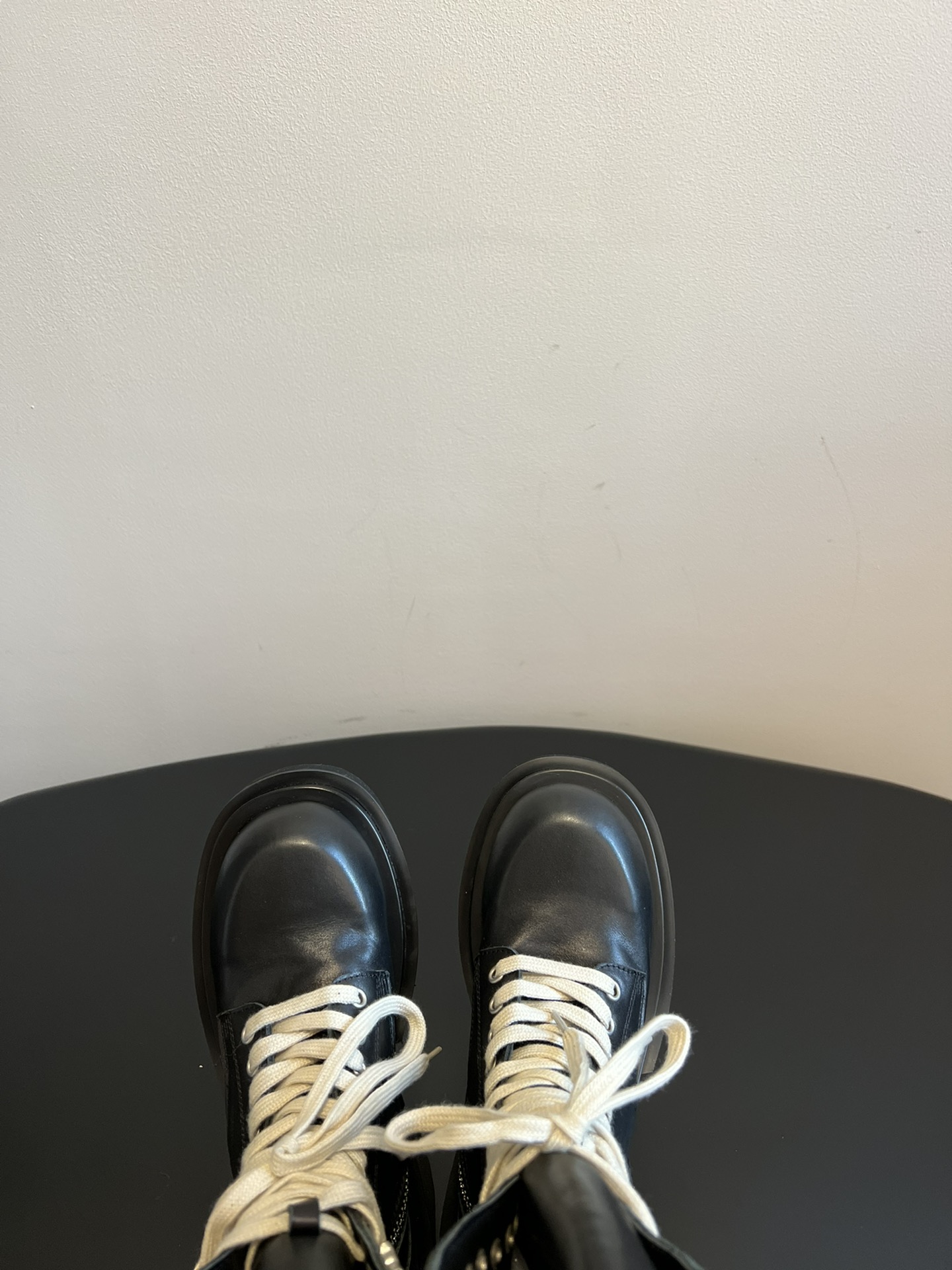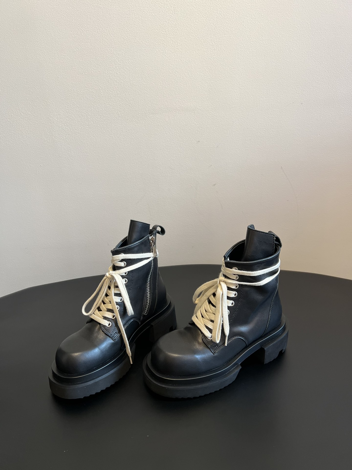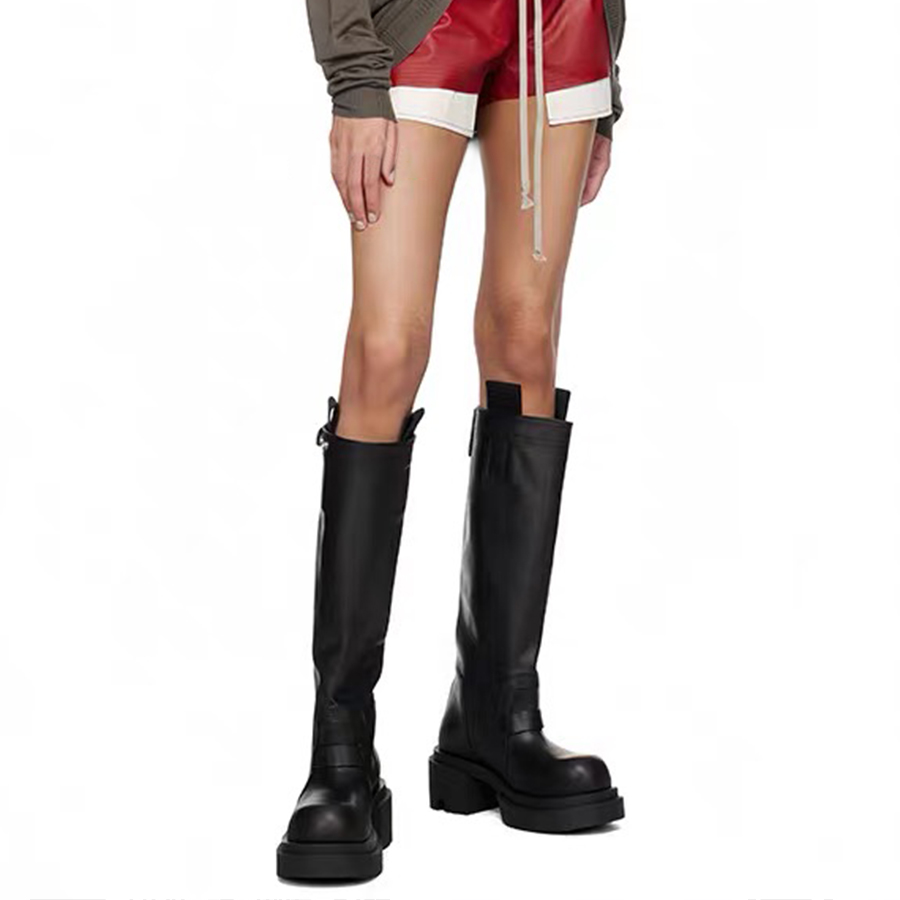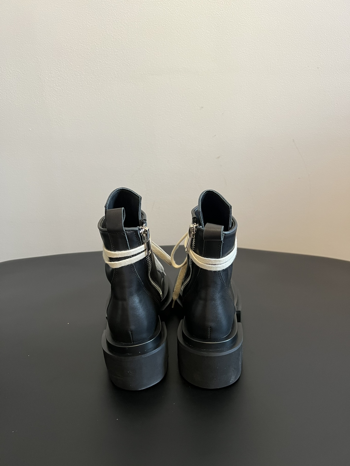 NIGO Rick Owens Women's Solid Color Autumn And Winter Leather Thigh High Boots Casual Shoes Lace Up Round Head Short Boots Ngvp #nigo9368