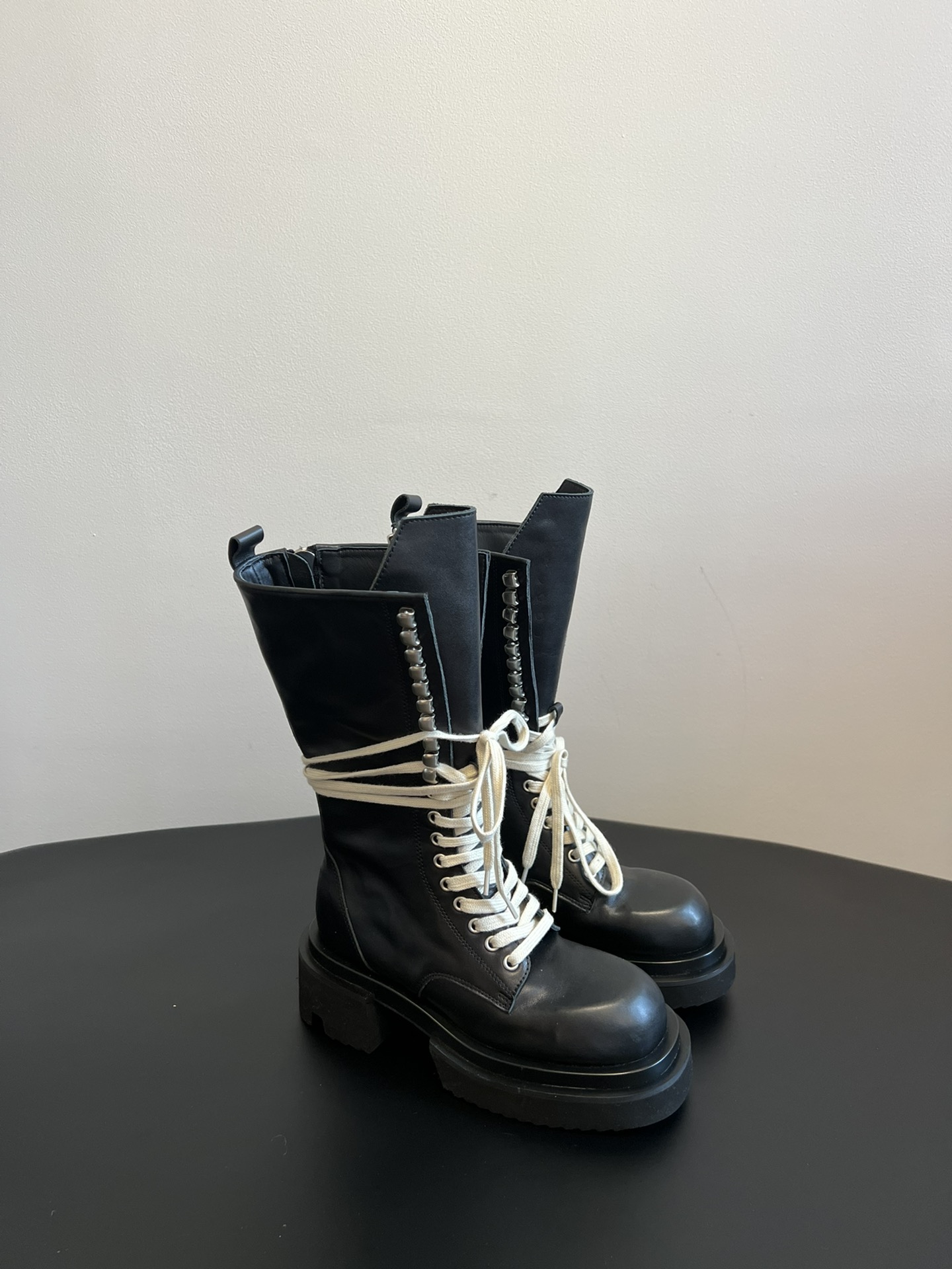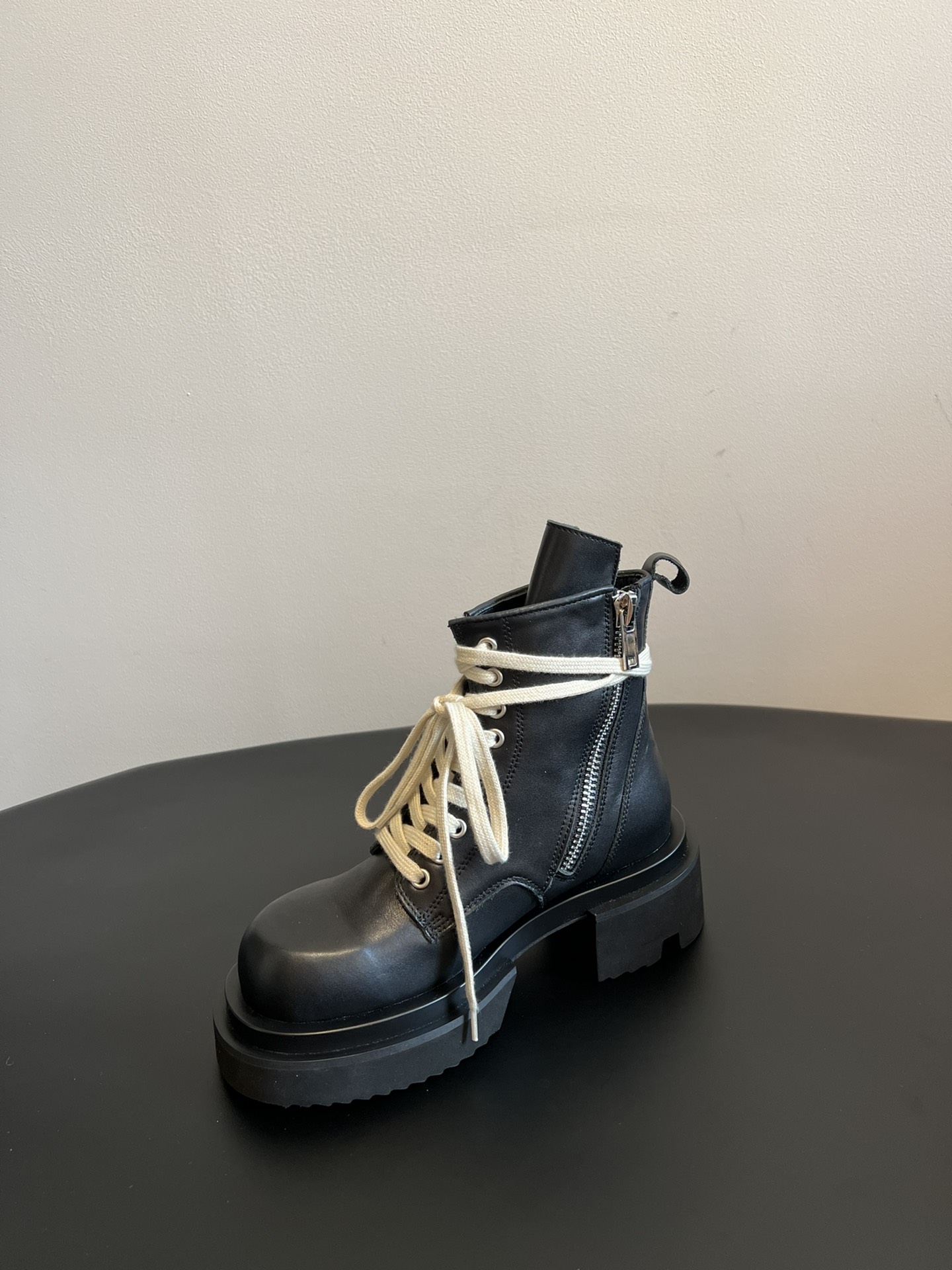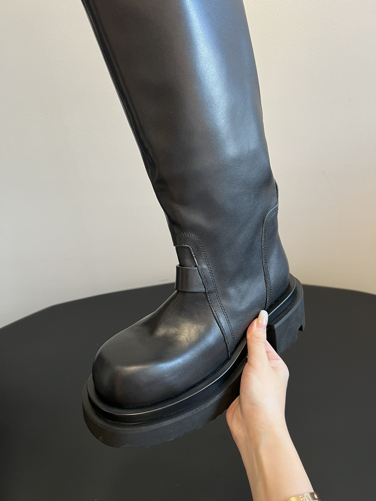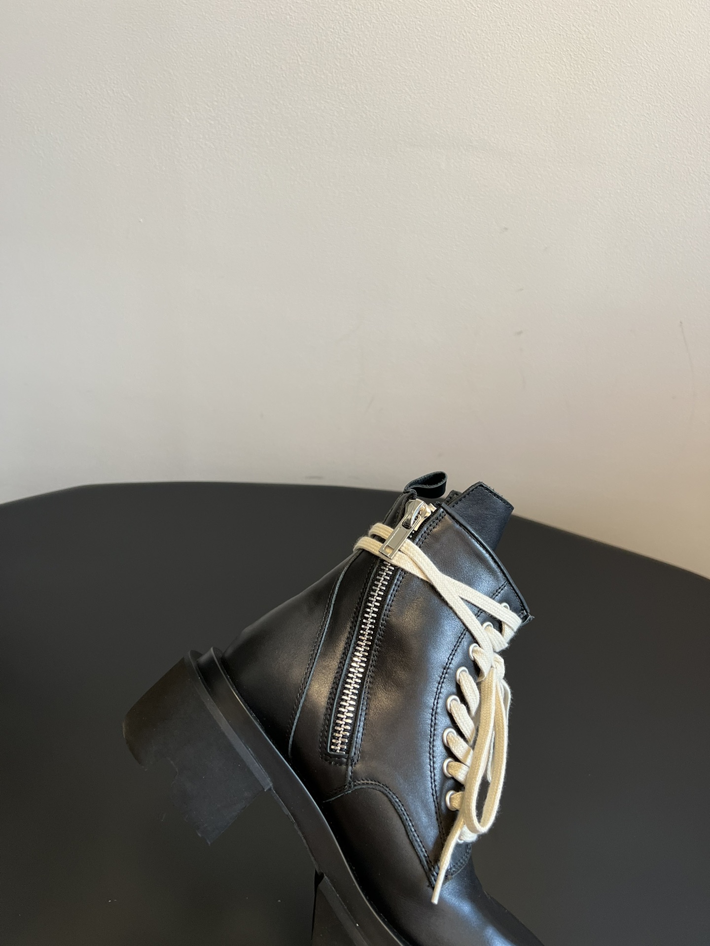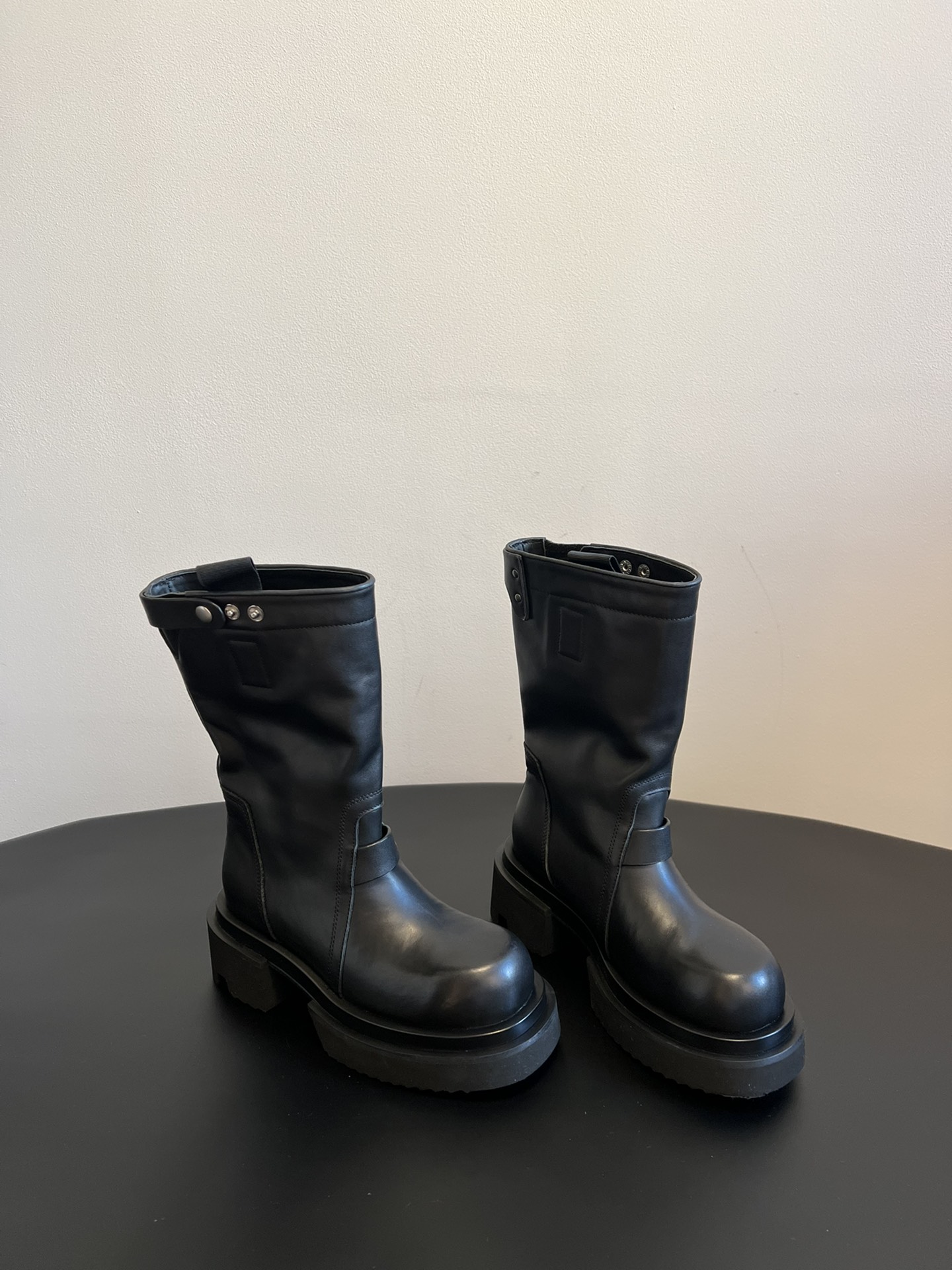 NIGO Rick Owens Women's Solid Color Autumn And Winter Leather Thigh High Boots Casual Shoes Lace Up Round Head Short Boots Ngvp #nigo9368