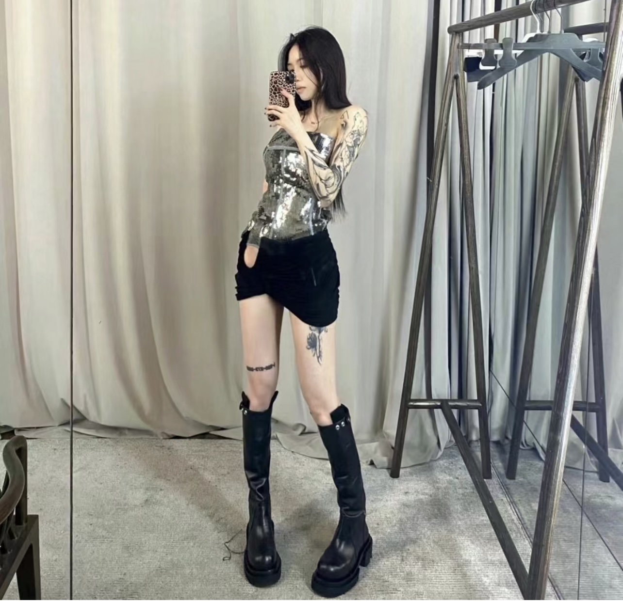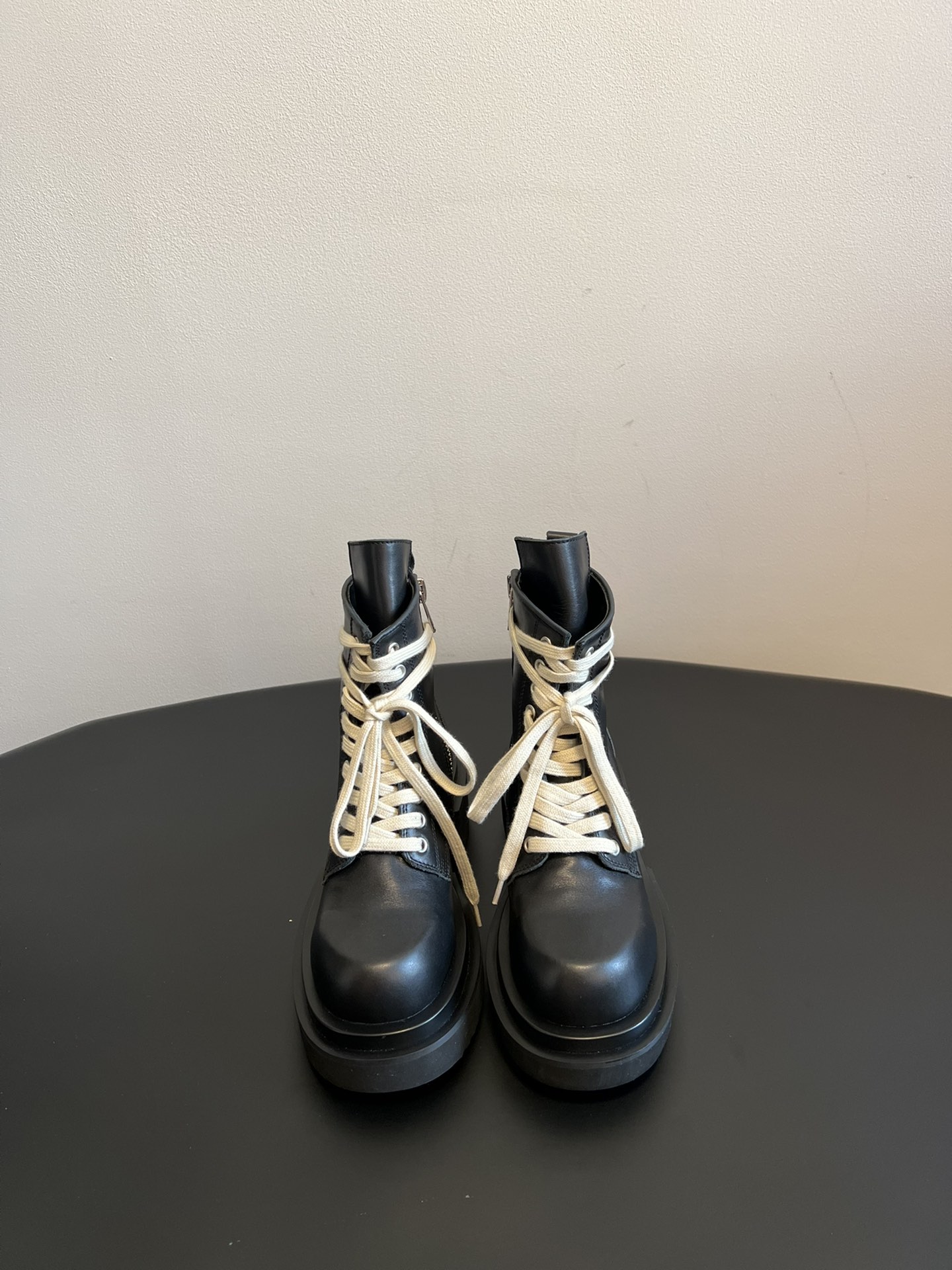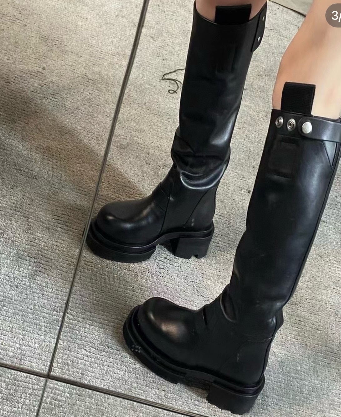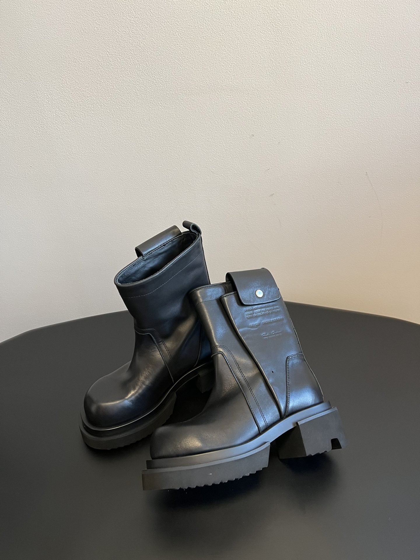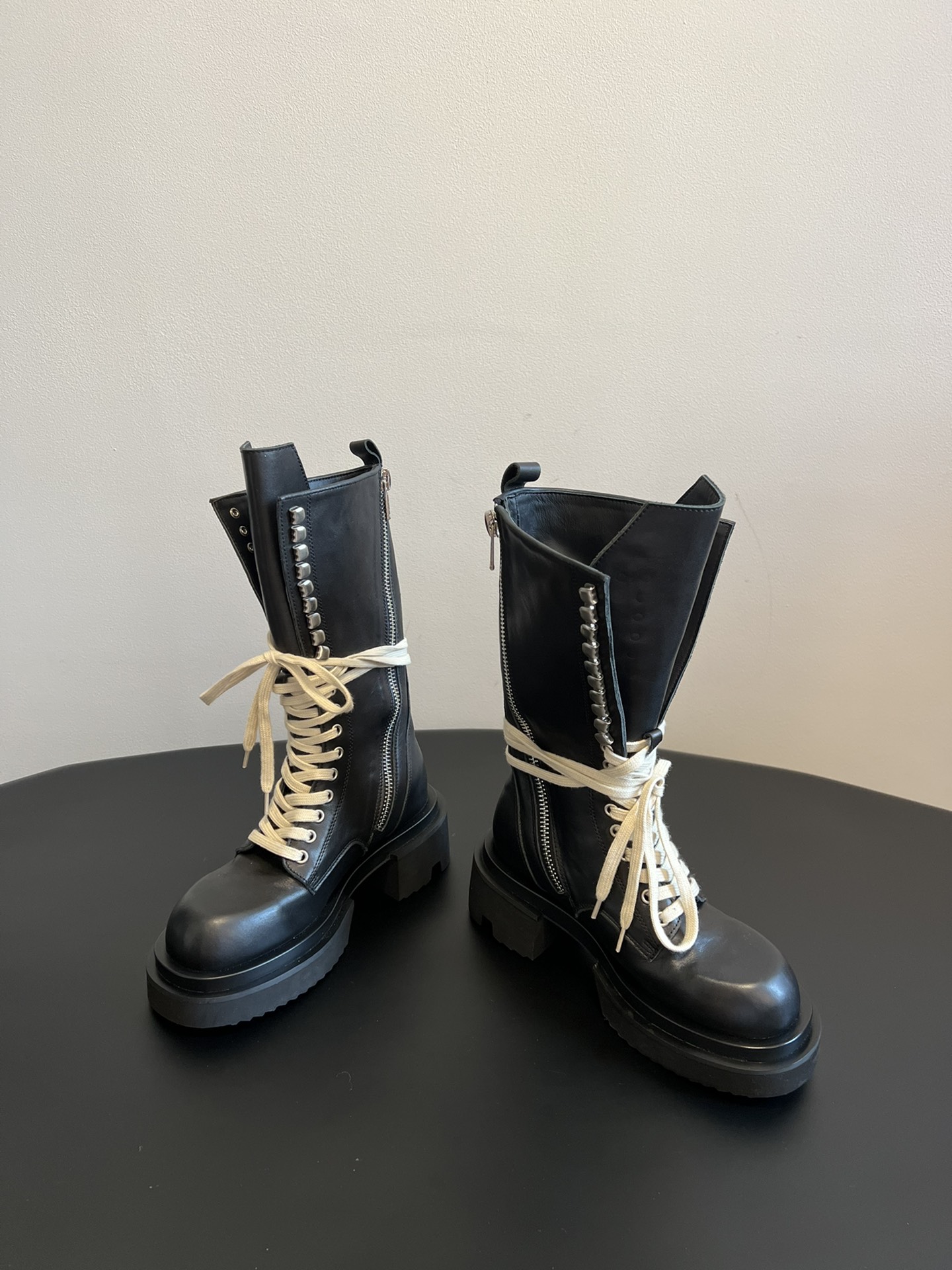 NIGO Rick Owens Women's Solid Color Autumn And Winter Leather Thigh High Boots Casual Shoes Lace Up Round Head Short Boots Ngvp #nigo9368