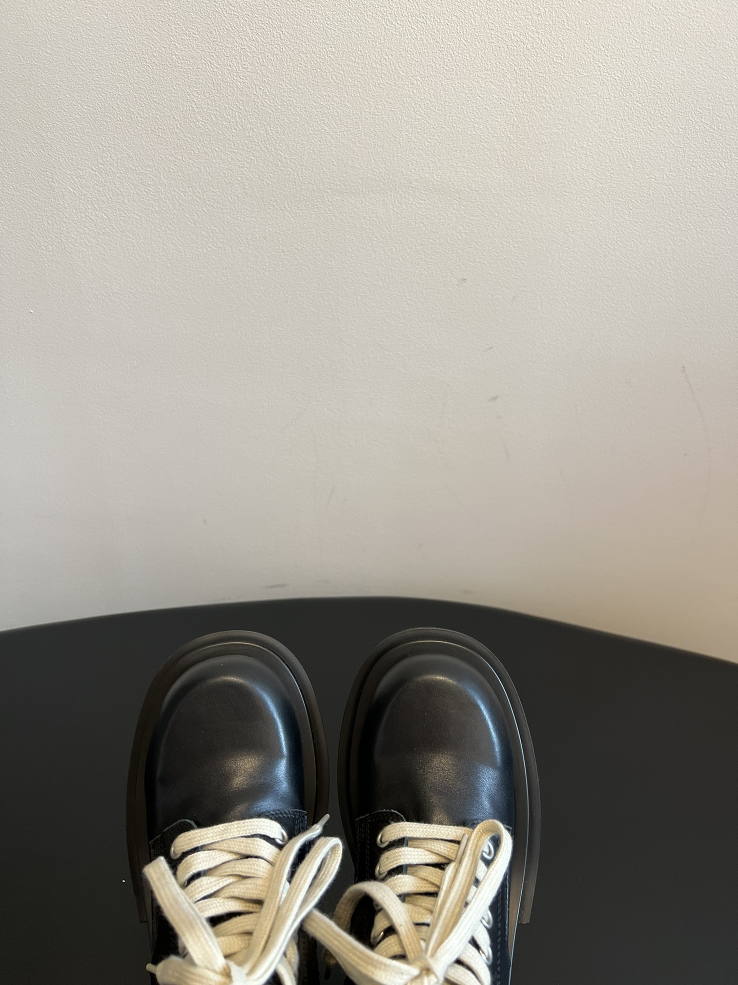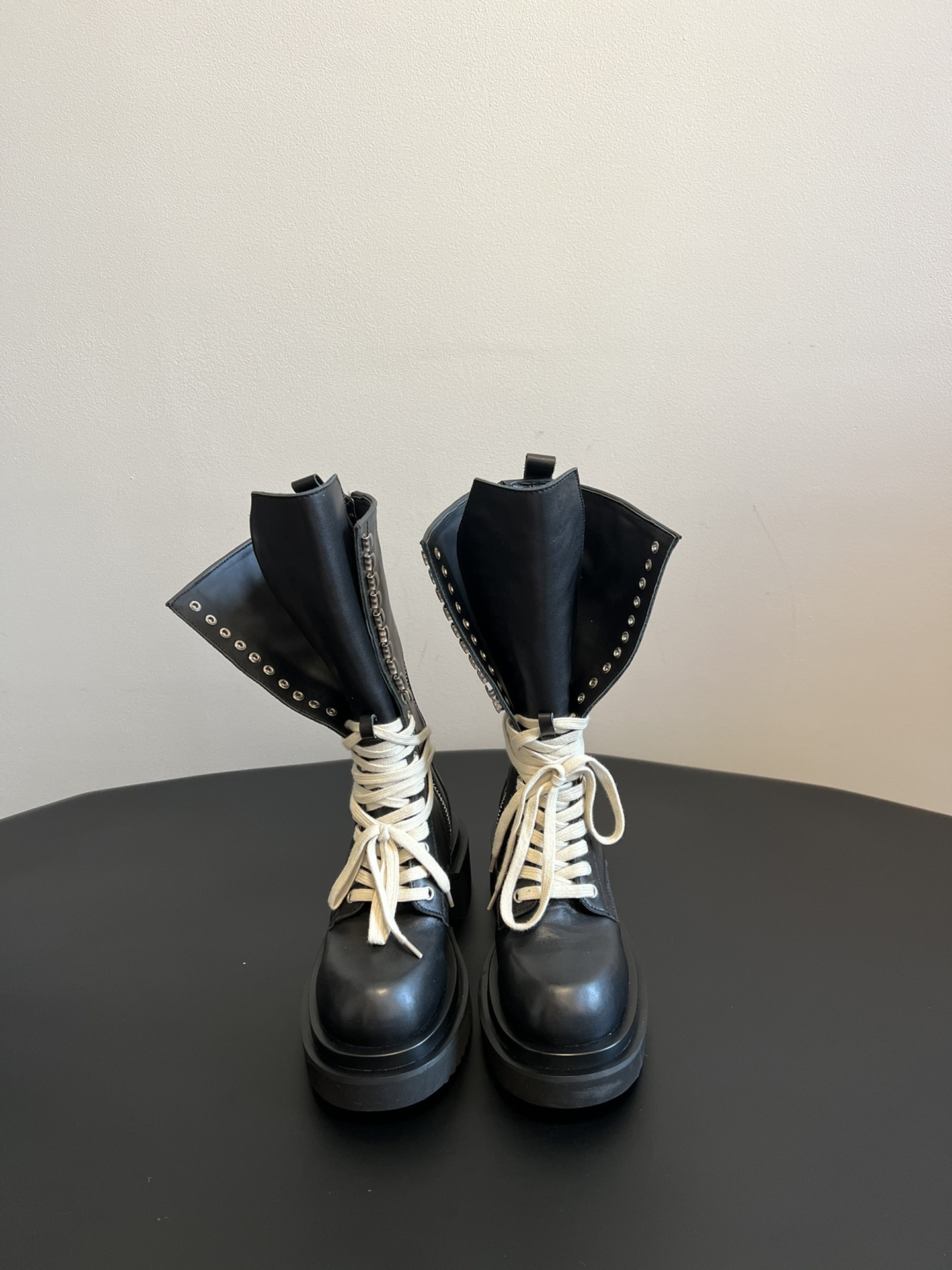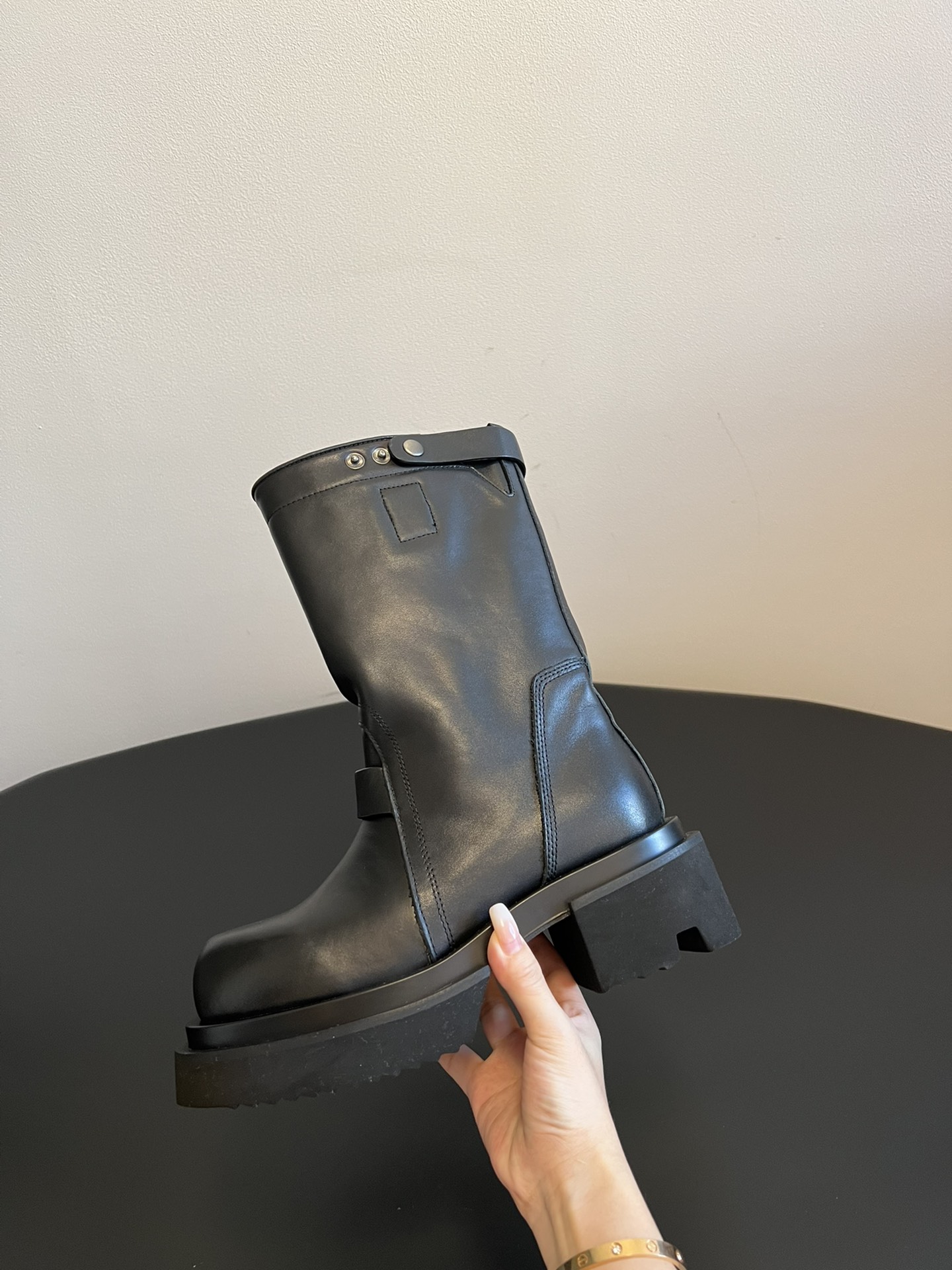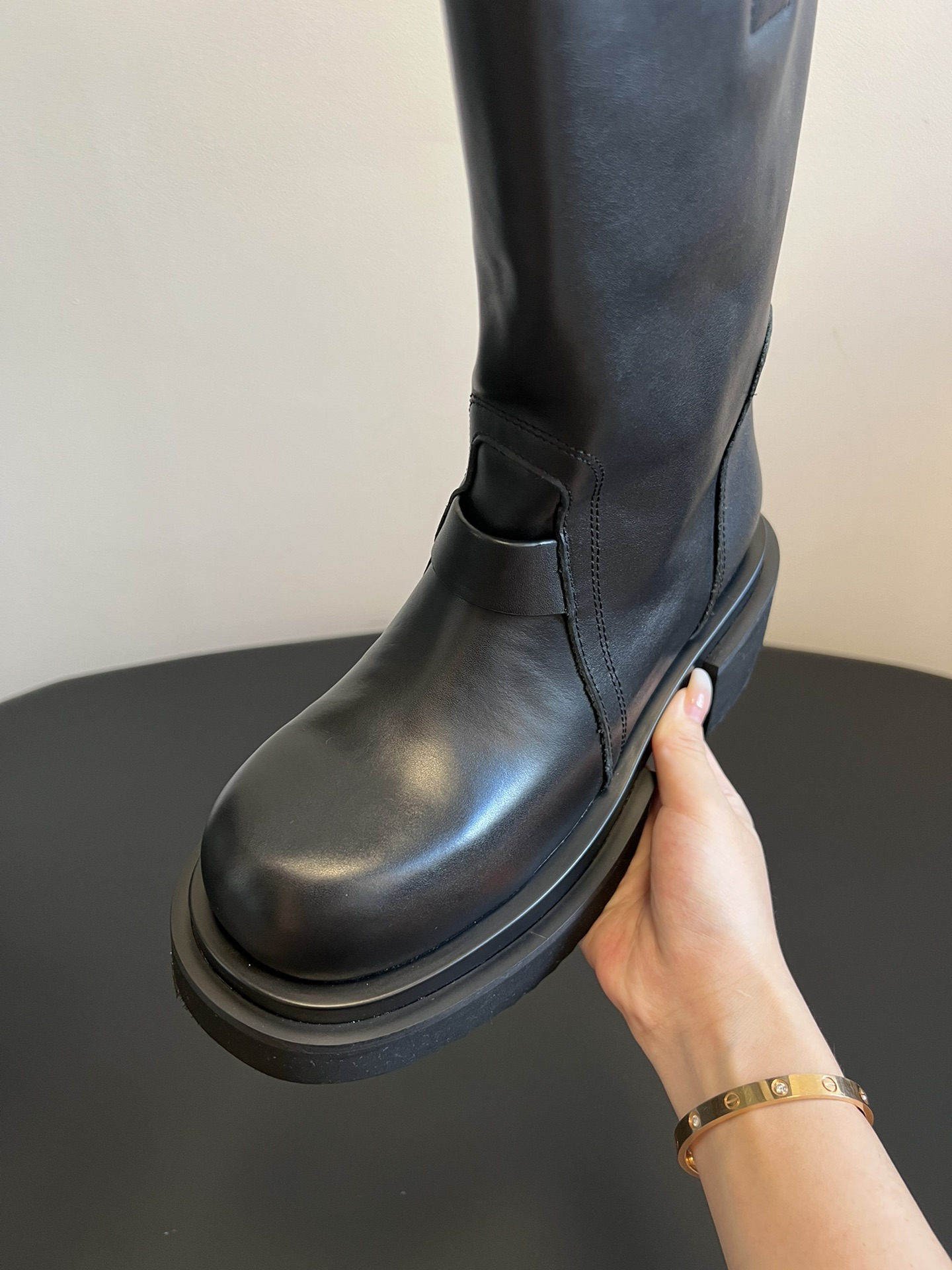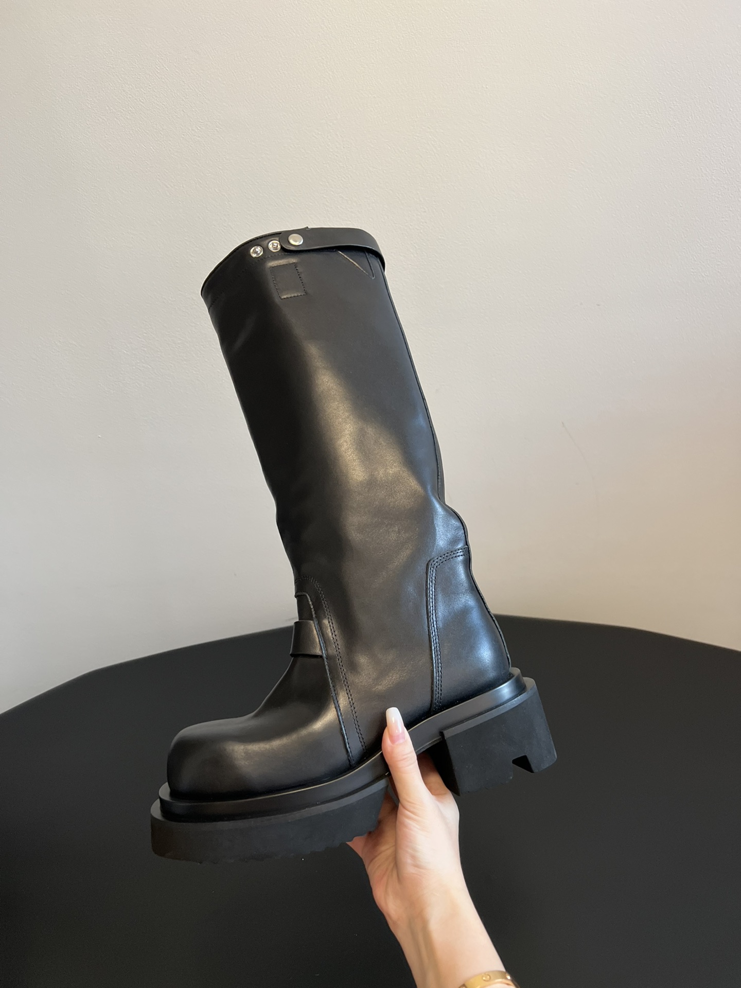 NIGO Rick Owens Women's Solid Color Autumn And Winter Leather Thigh High Boots Casual Shoes Lace Up Round Head Short Boots Ngvp #nigo9368