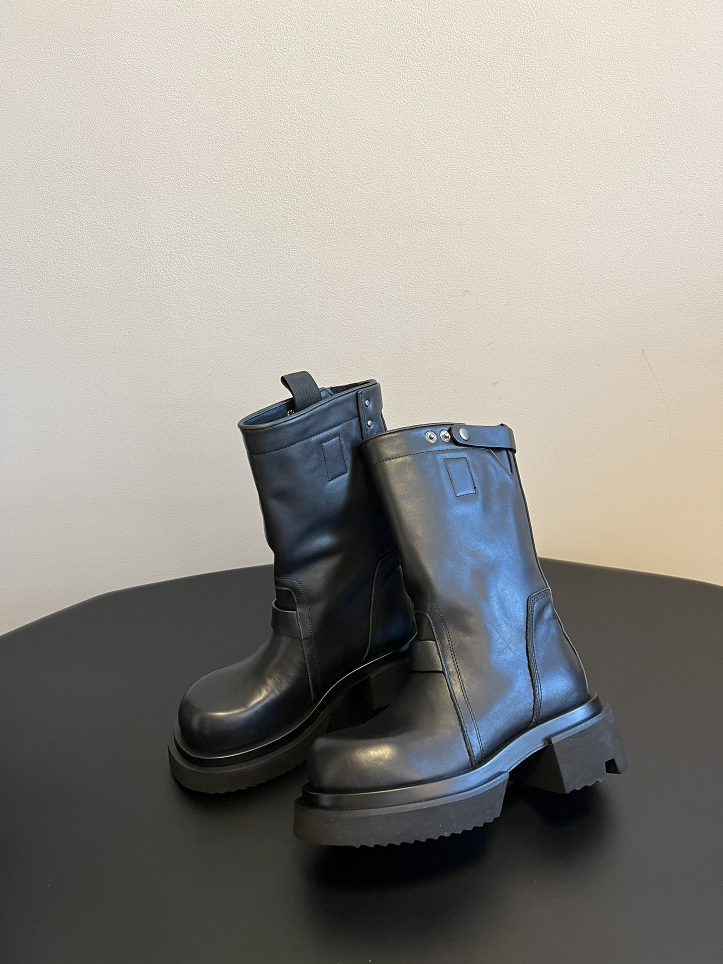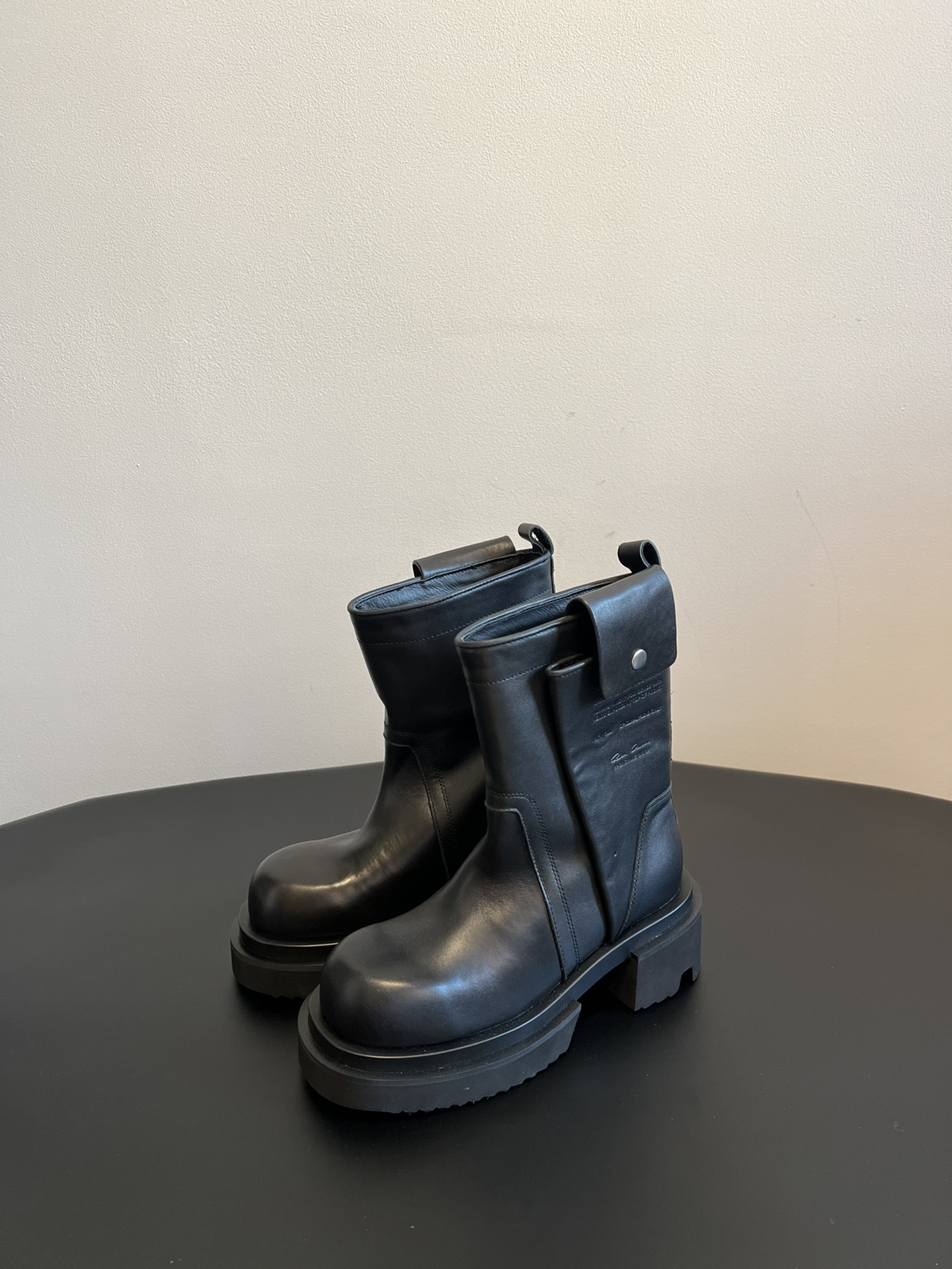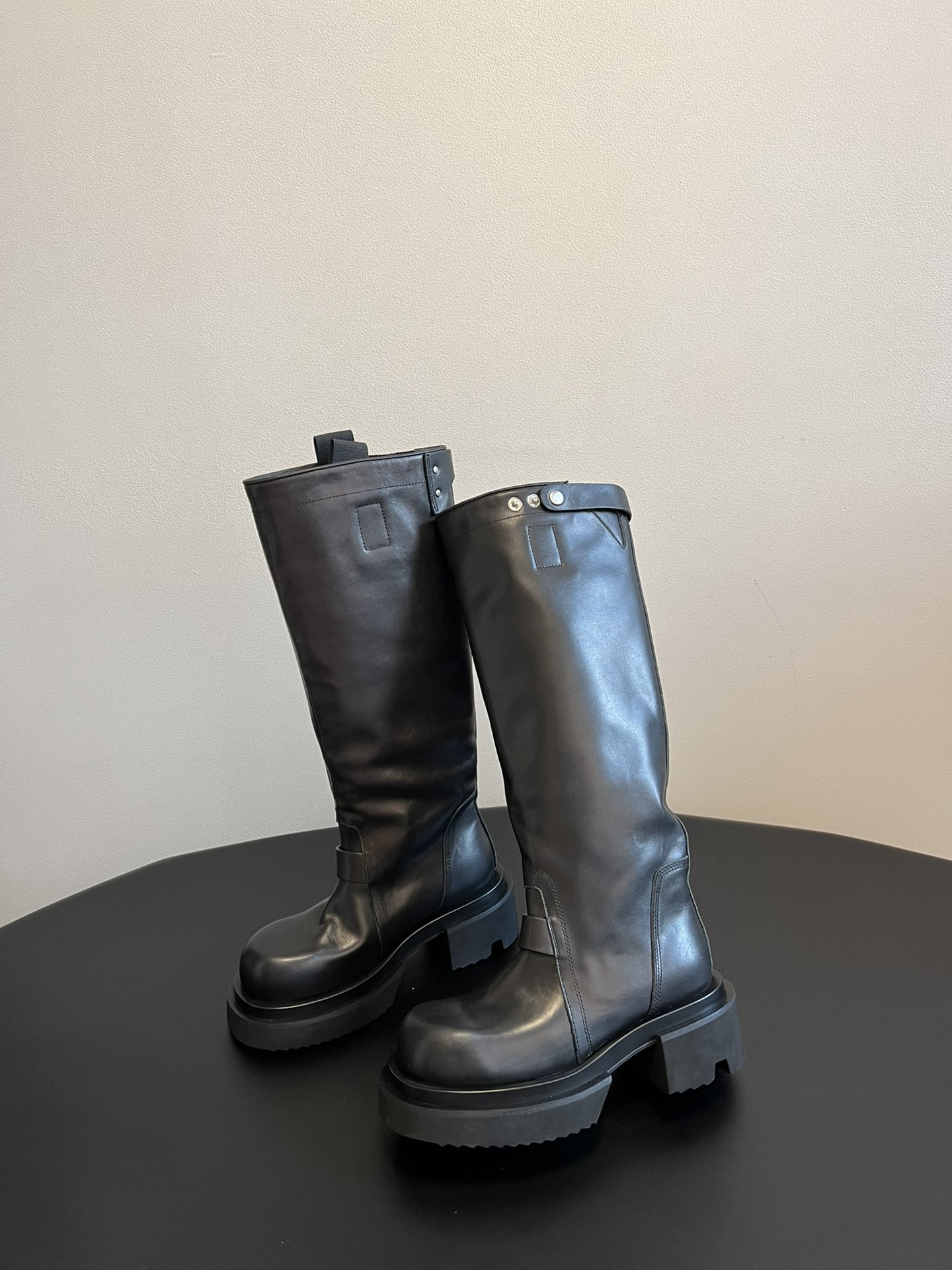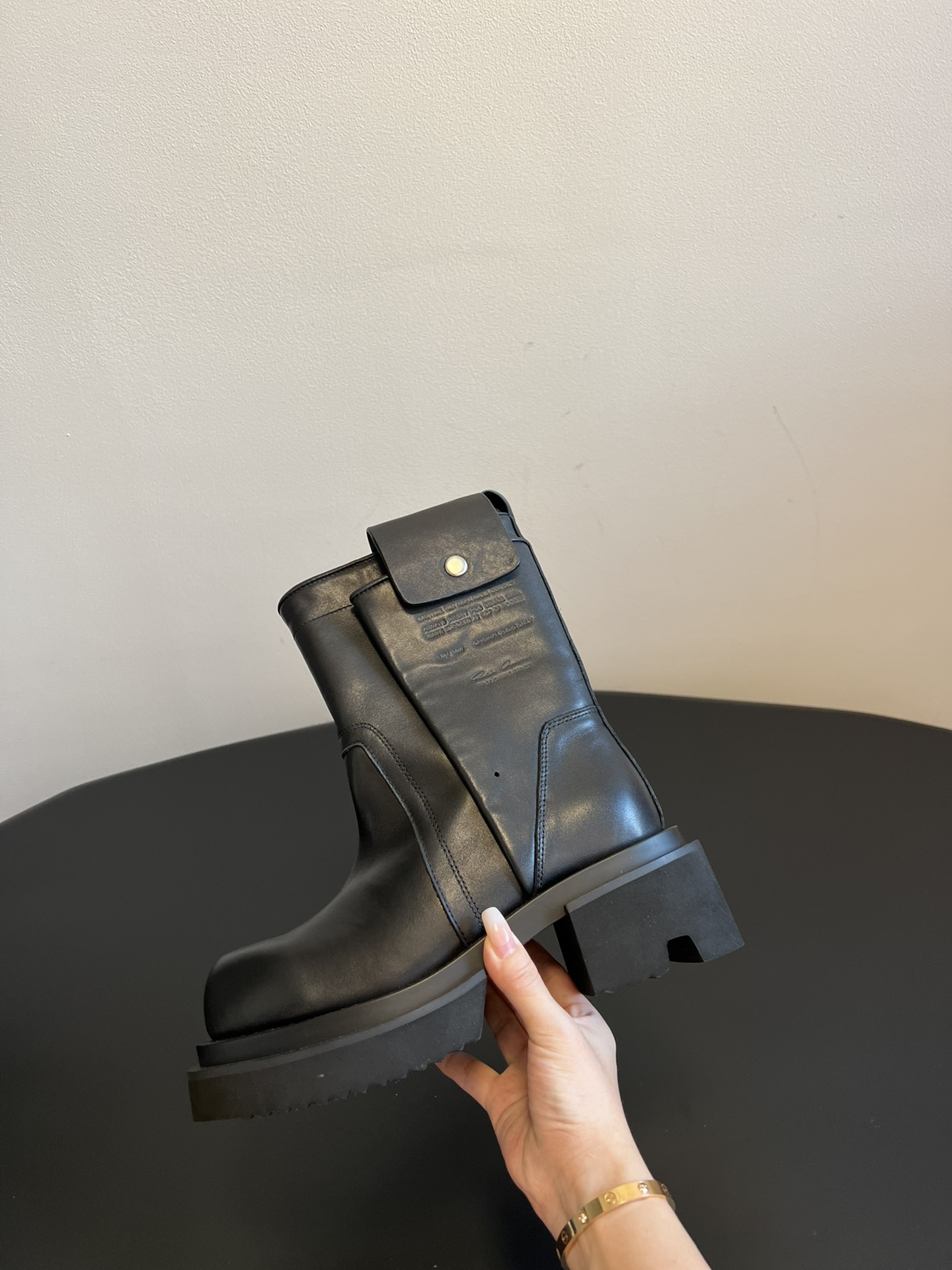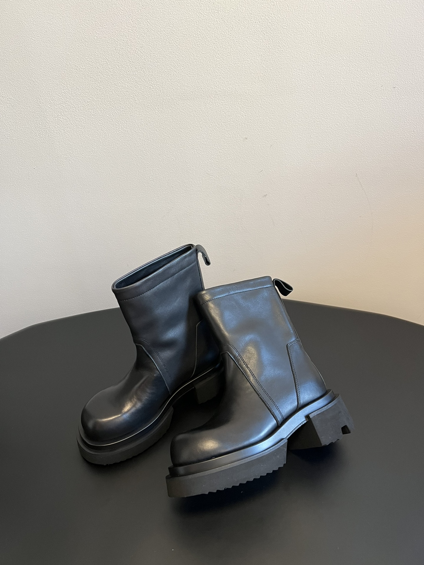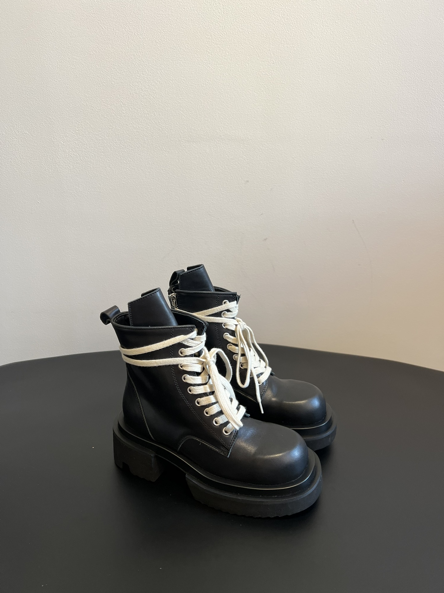 NIGO Rick Owens Women's Solid Color Autumn And Winter Leather Thigh High Boots Casual Shoes Lace Up Round Head Short Boots Ngvp #nigo9368