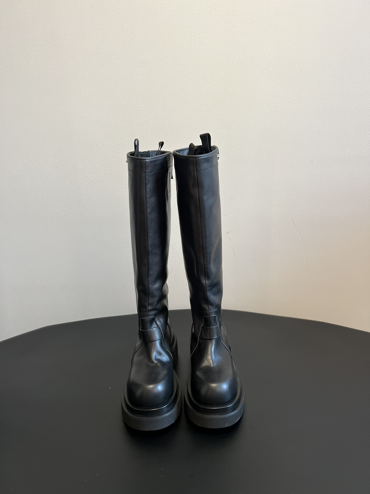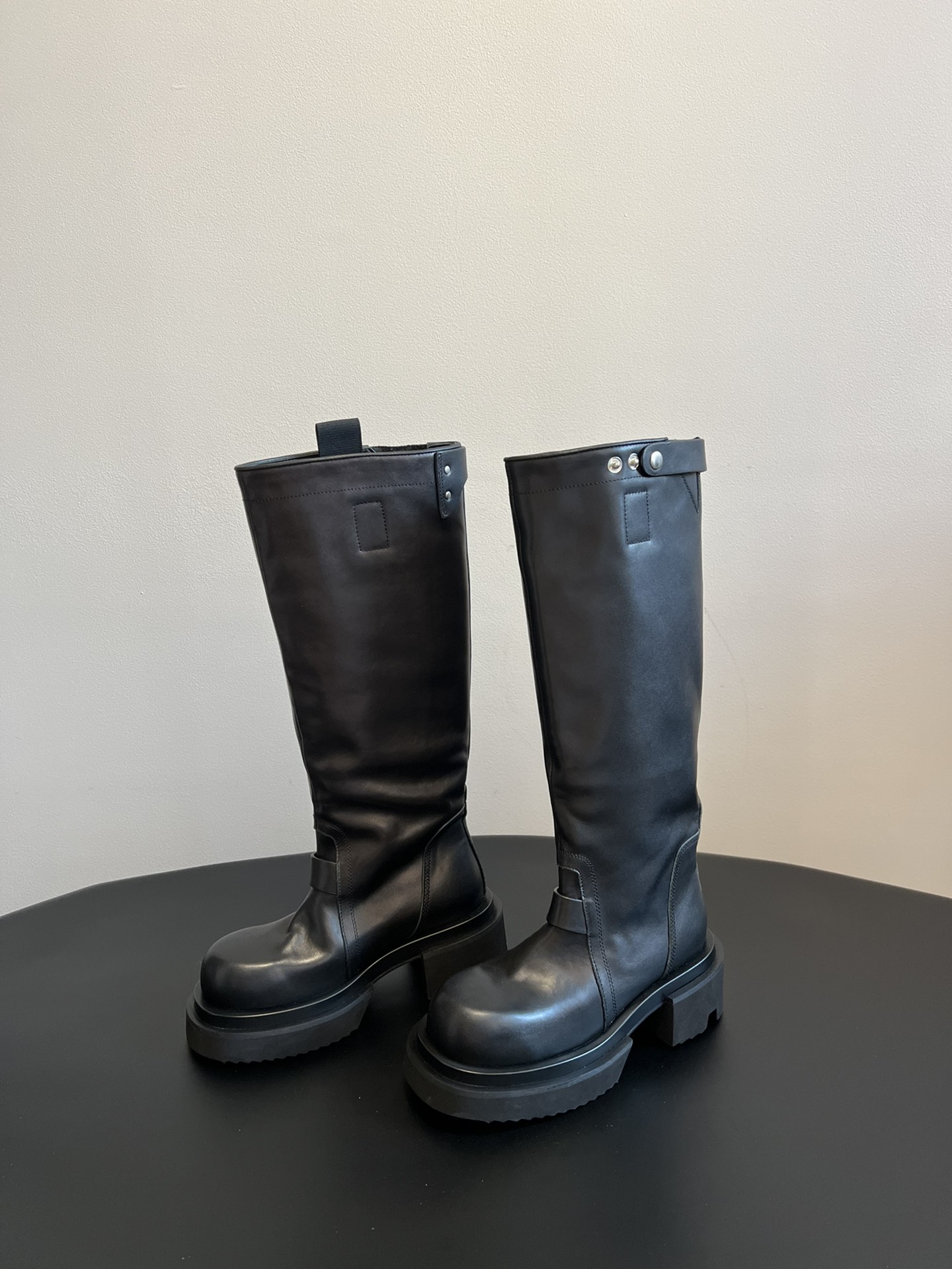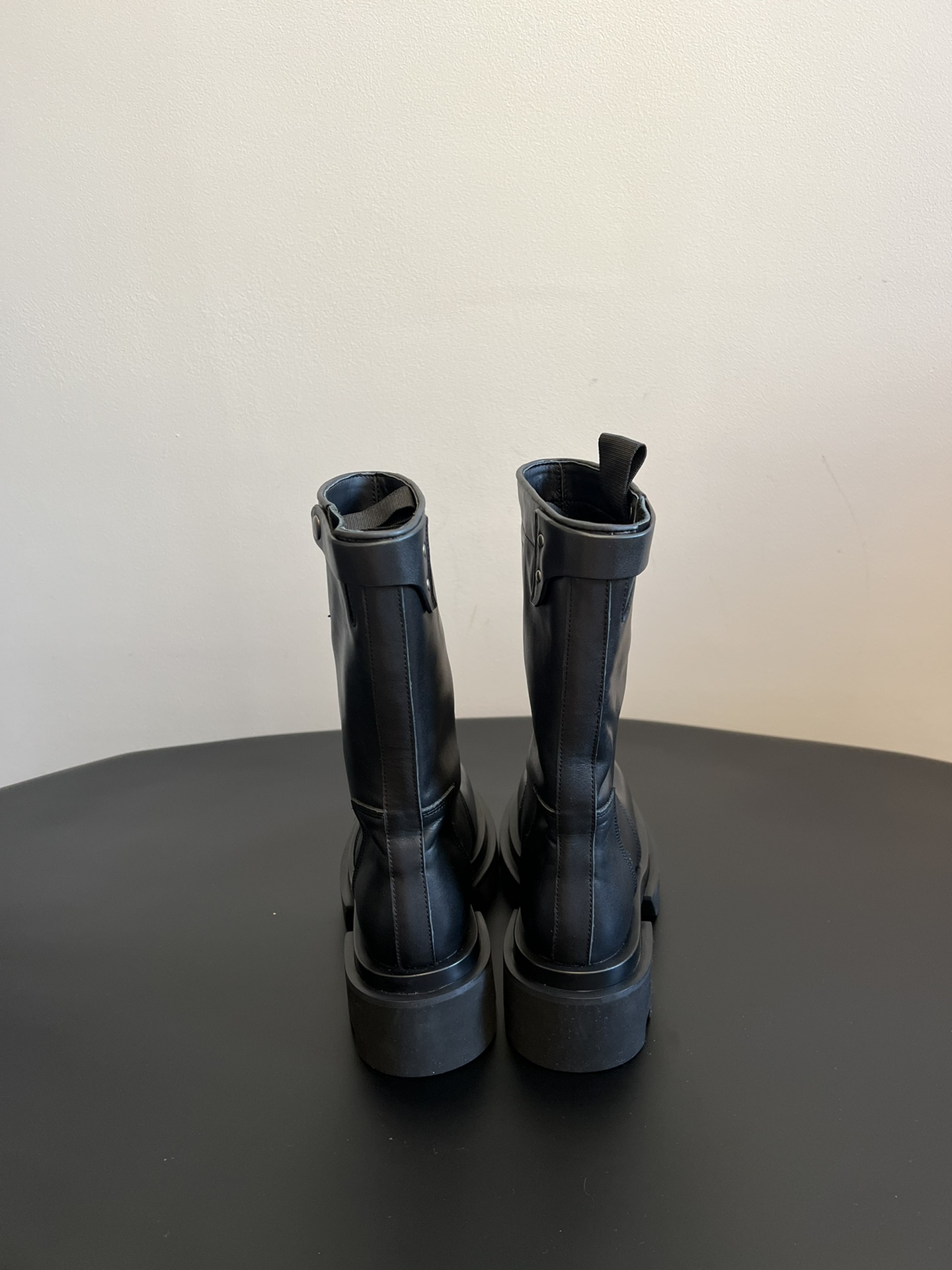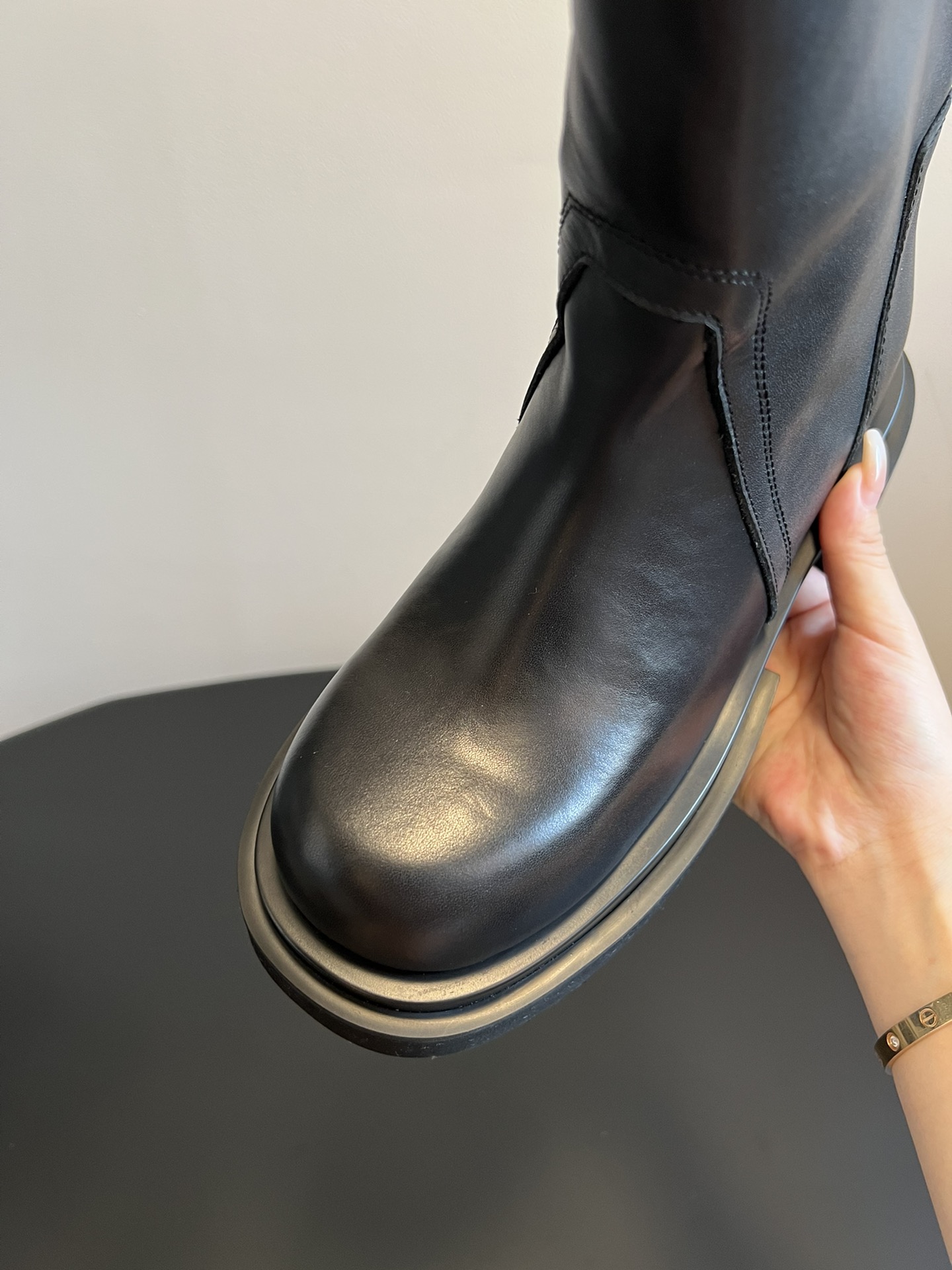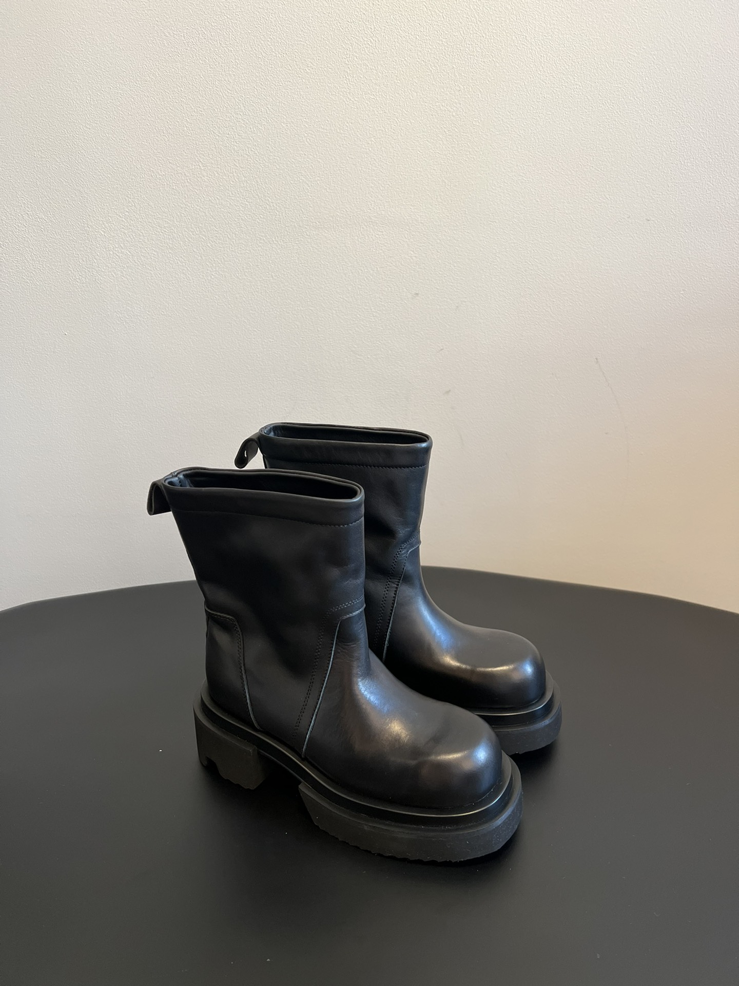NIGO Rick Owens Women's Solid Color Autumn And Winter Leather Thigh High Boots Casual Shoes Lace Up Round Head Short Boots Ngvp #nigo9368