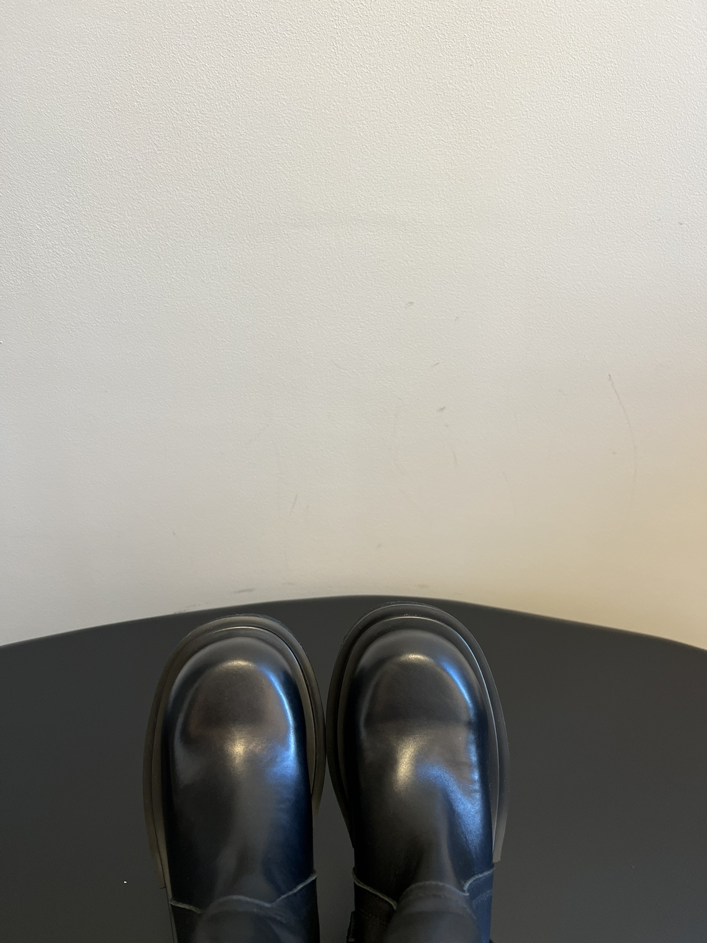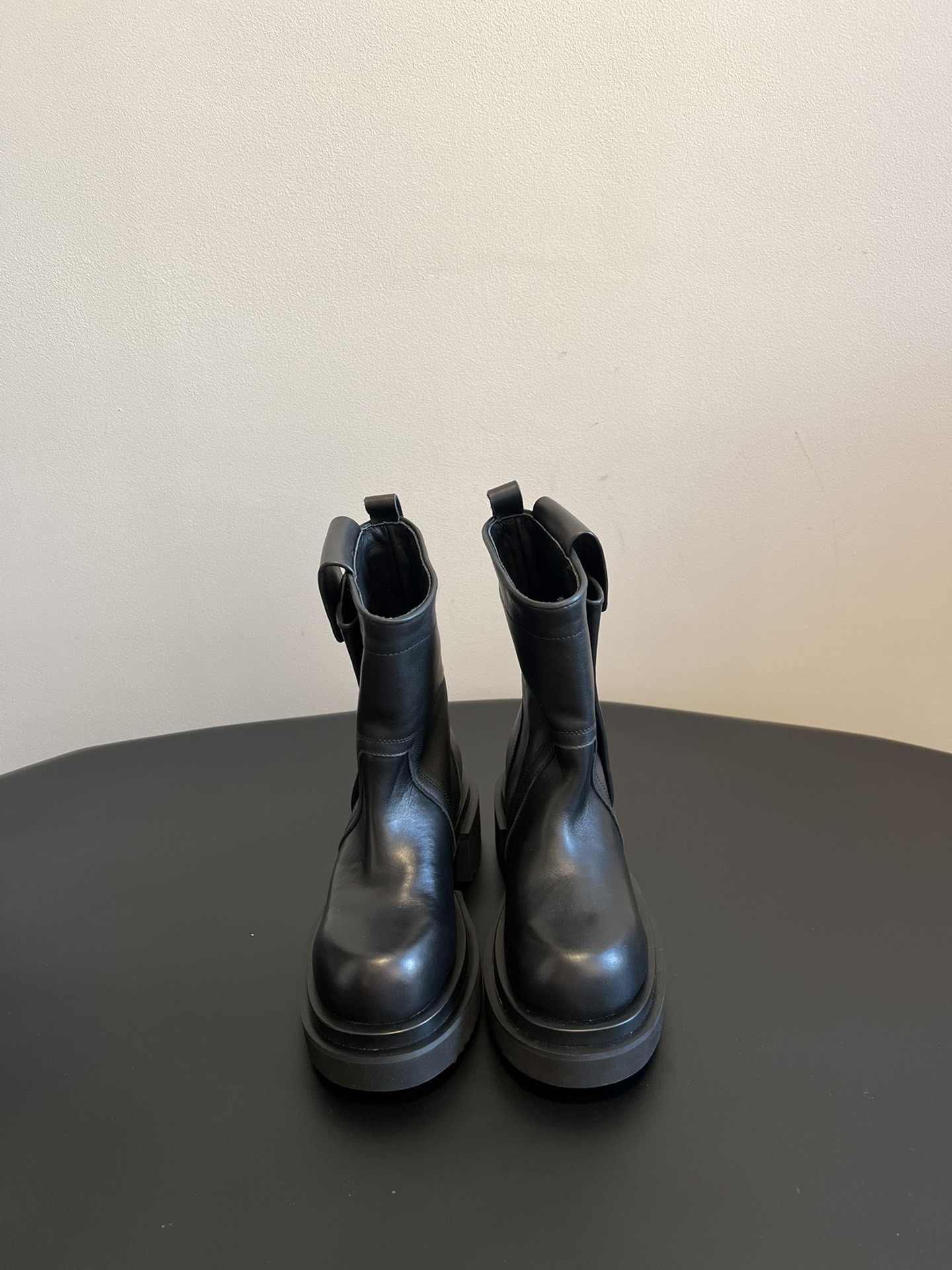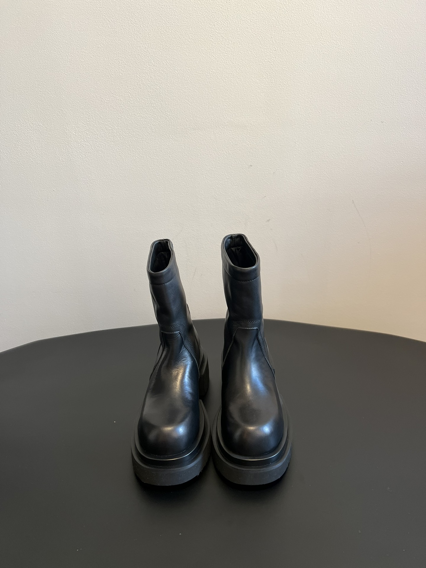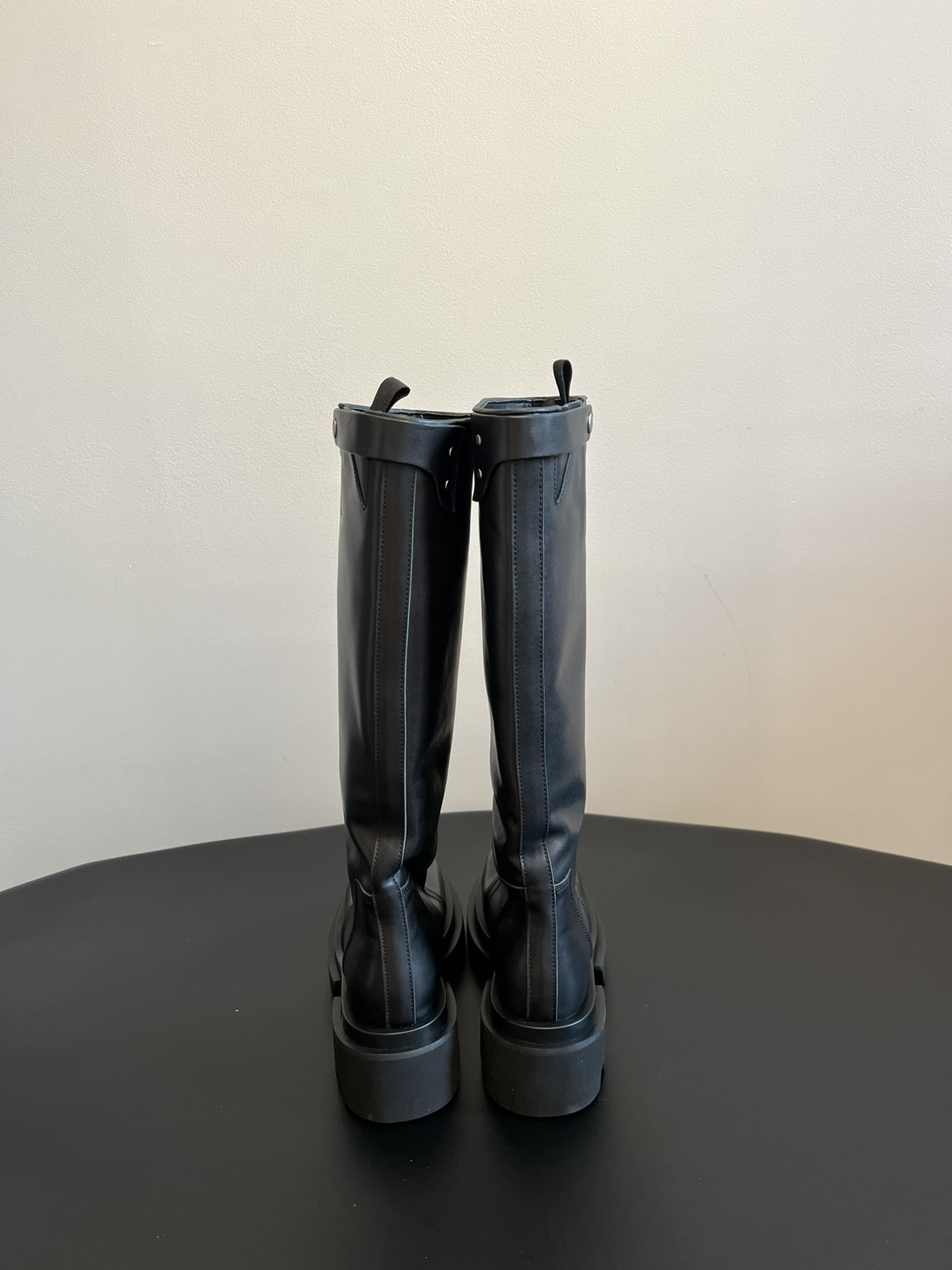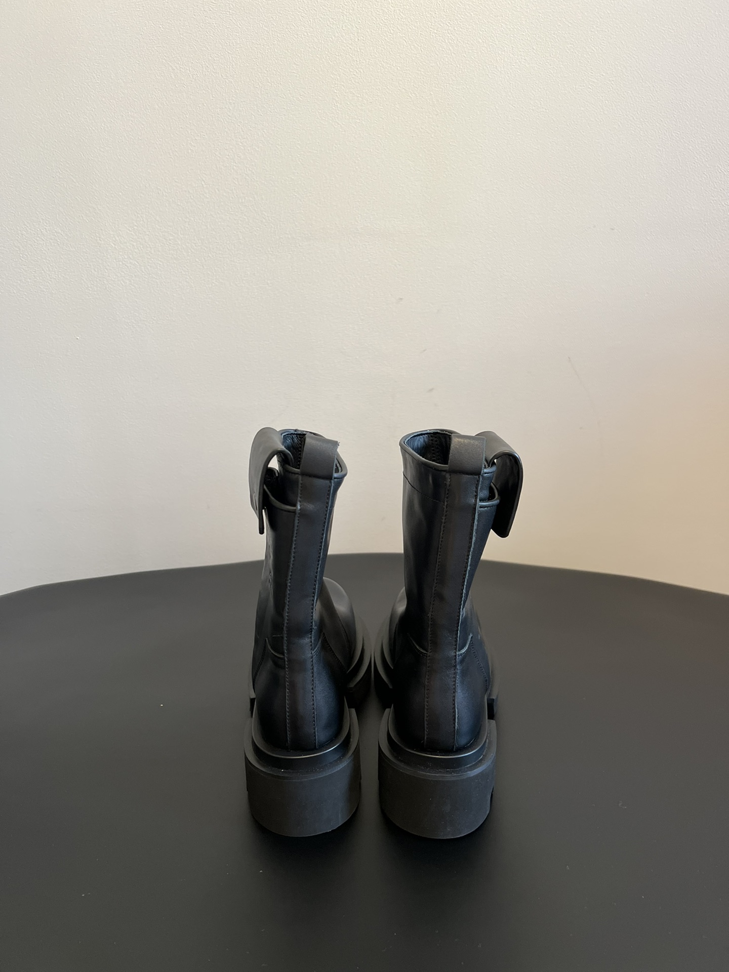 NIGO Rick Owens Women's Solid Color Autumn And Winter Leather Thigh High Boots Casual Shoes Lace Up Round Head Short Boots Ngvp #nigo9368