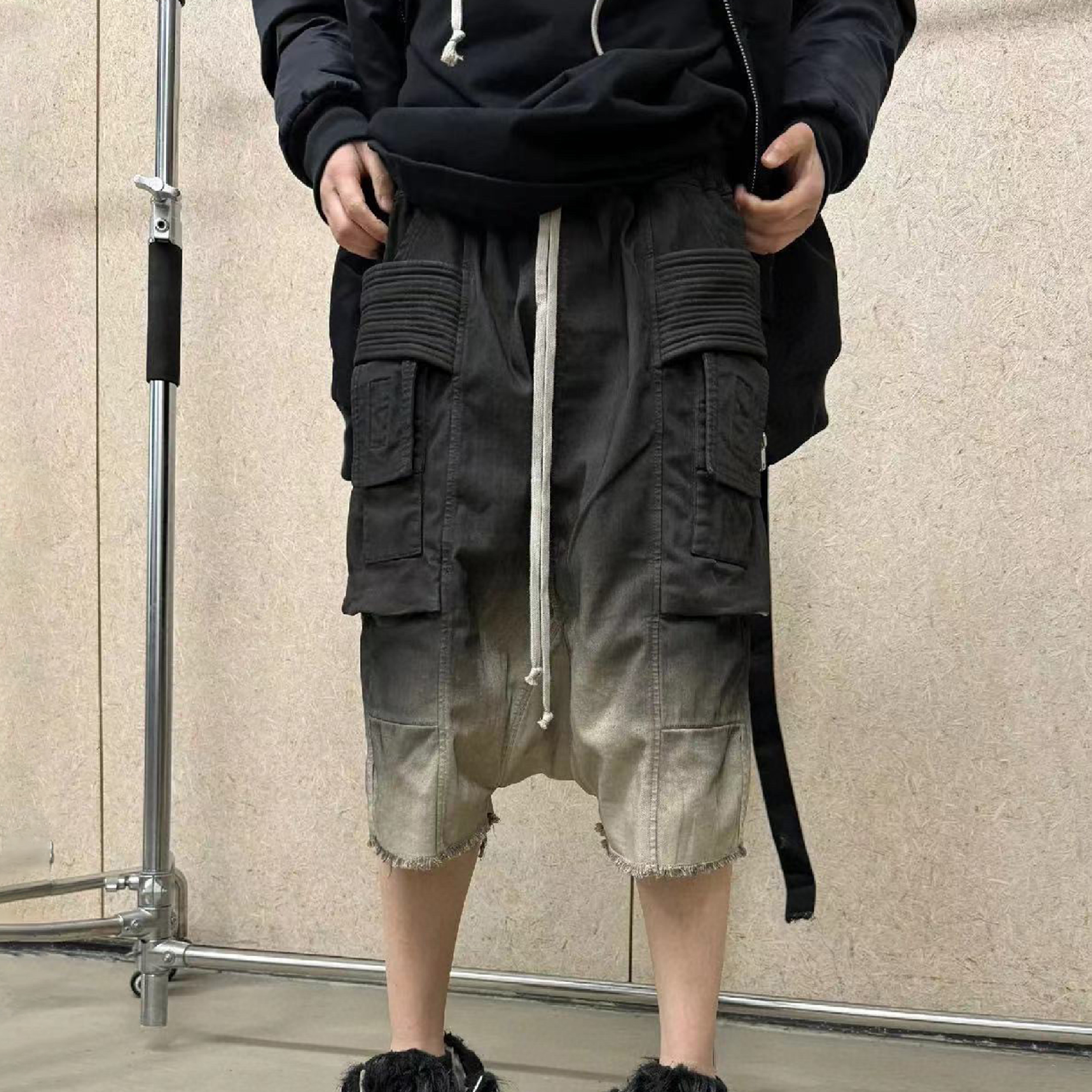 NIGO Rick Owens X Dekshdw Men's Spring/summer Vintage Distressed High Street Hole Breaking Denim Shorts Gradient Fringe Comfort Pants Ngvp #nigo9313