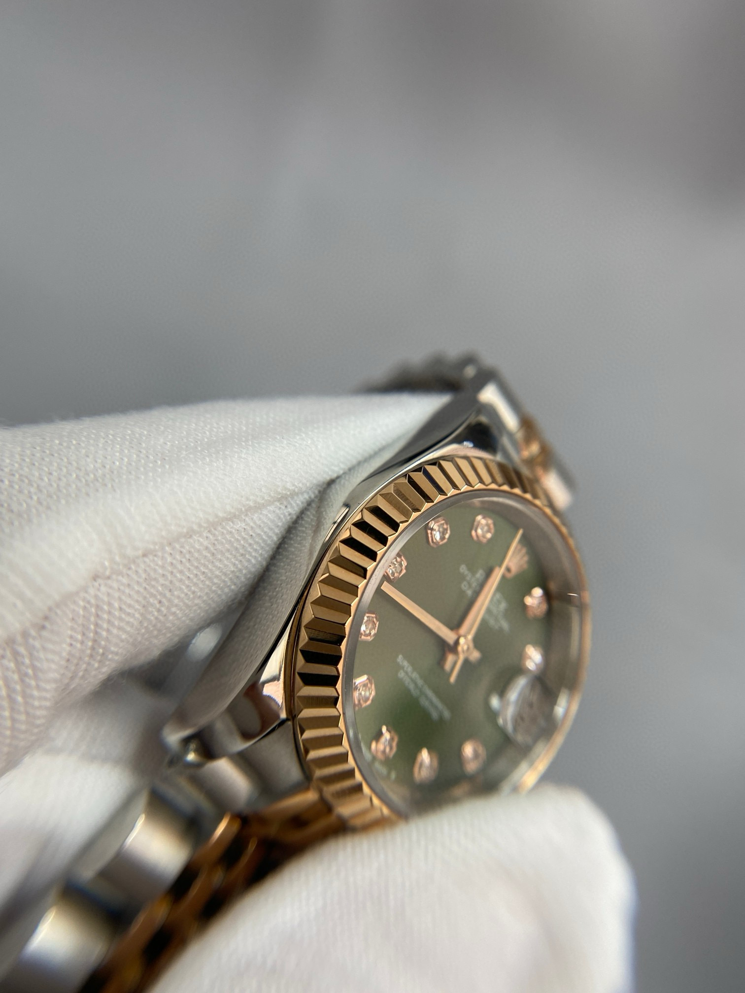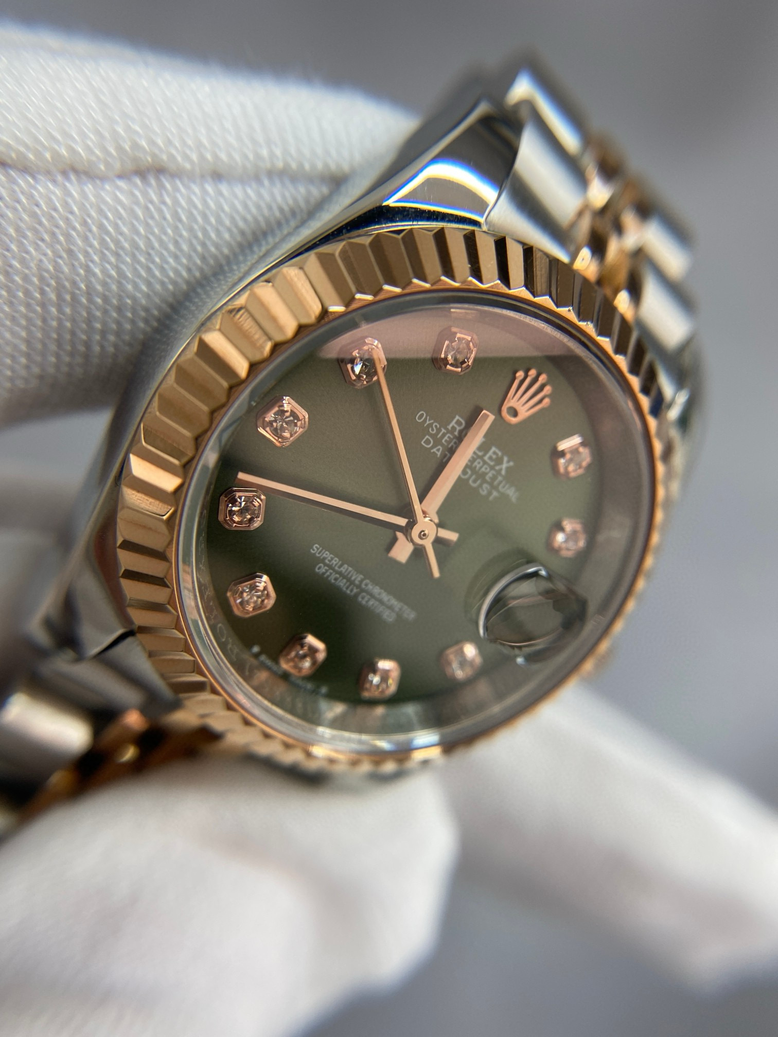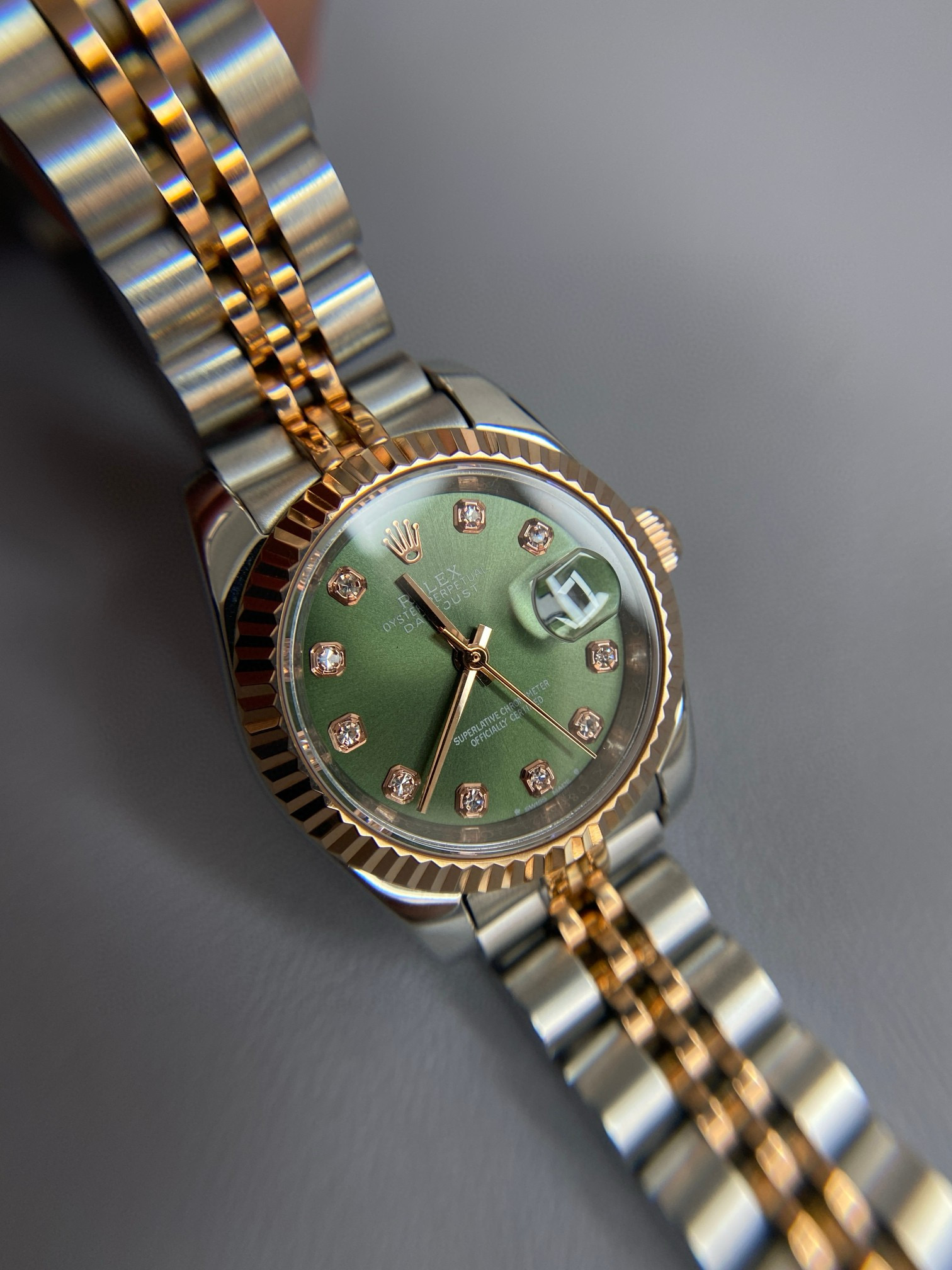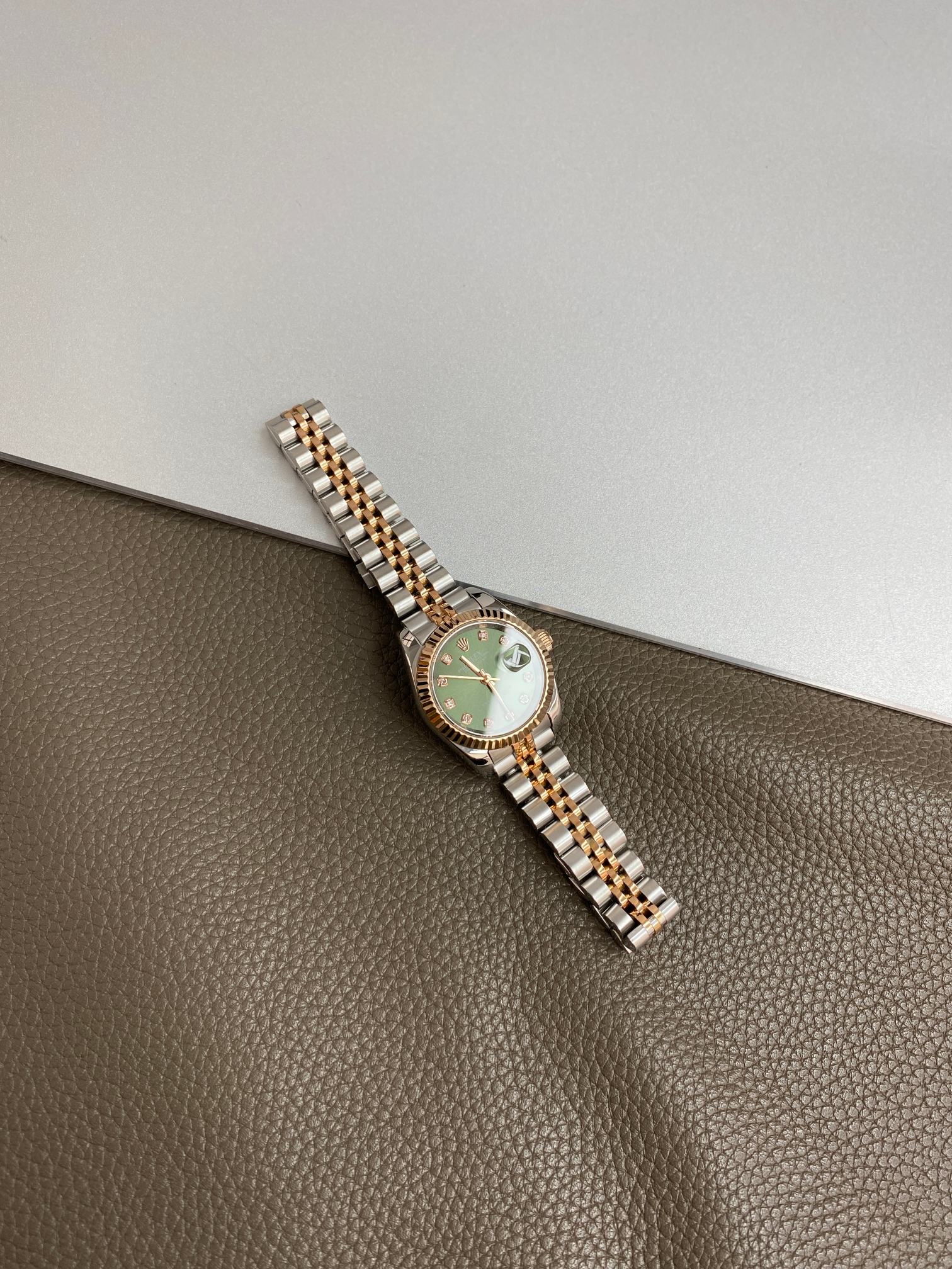 NIGO Rolex Women's Log-type Series Automatic Mechanical Movement Water-resistant Diamond-encrusted Green Dial Stainless Steel Bracelet 28mm Watch #nigo77754