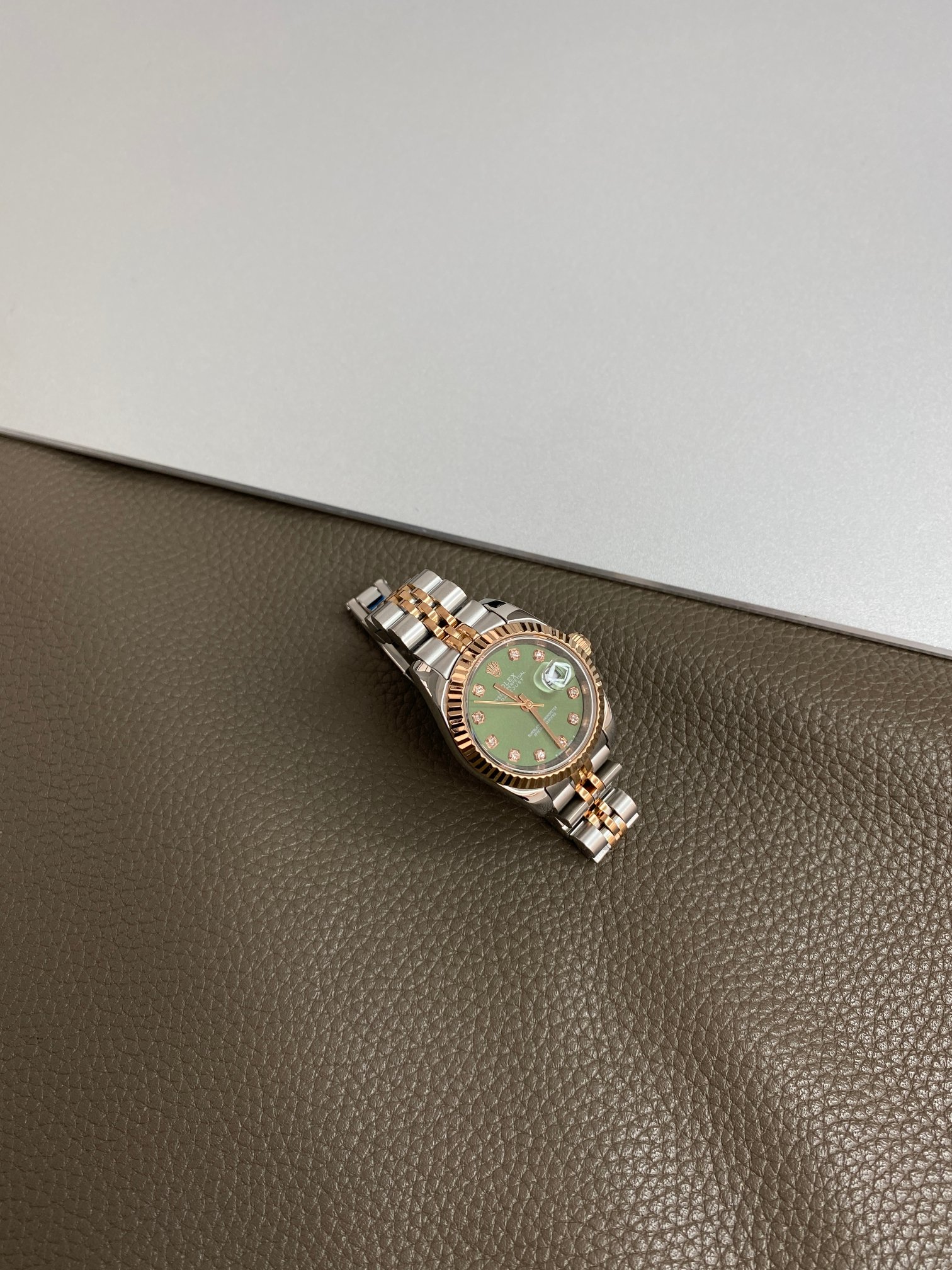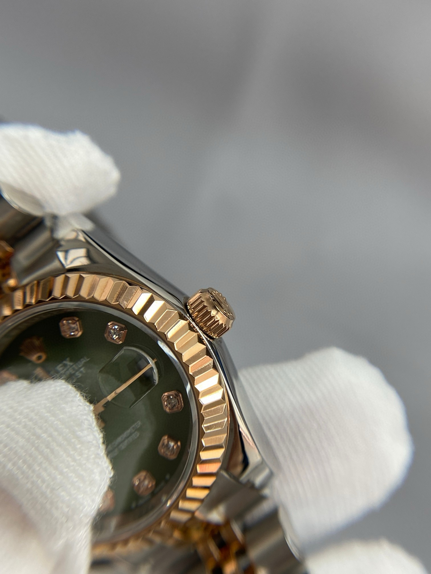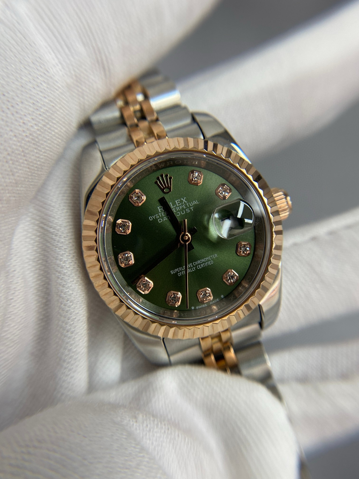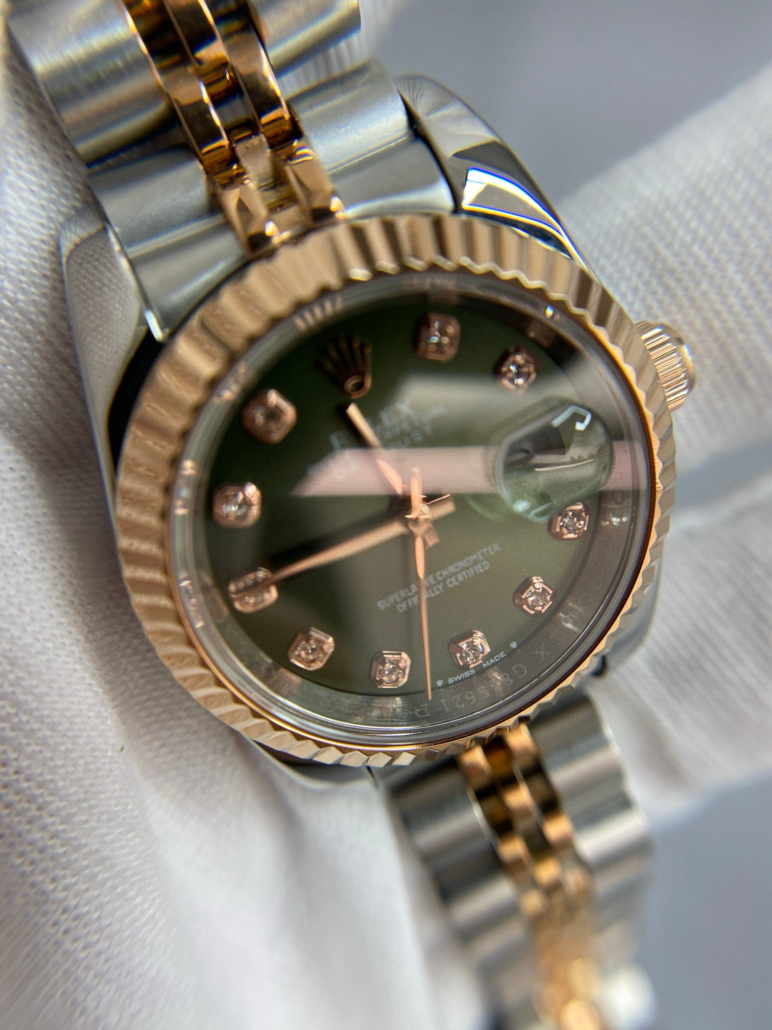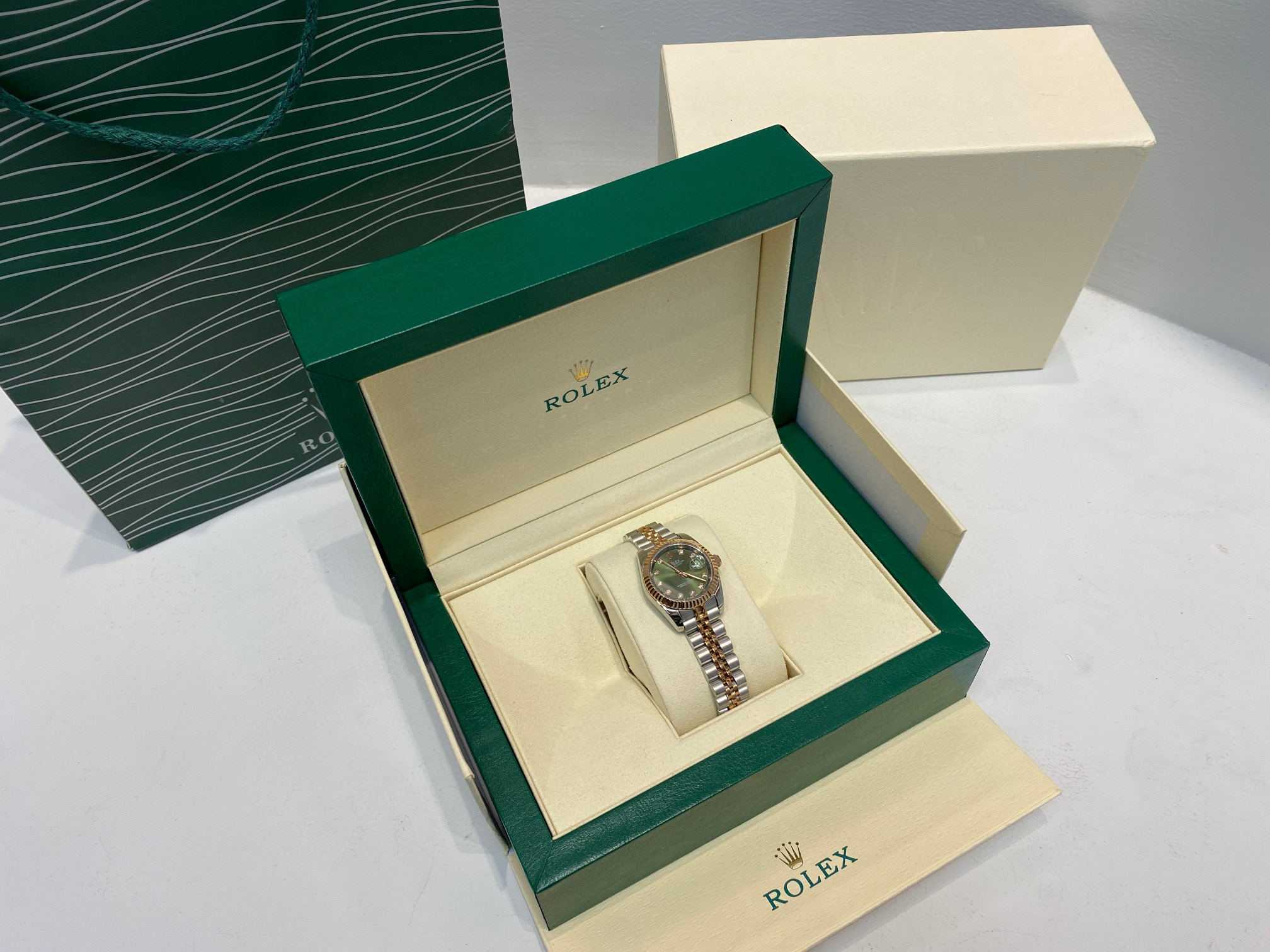 NIGO Rolex Women's Log-type Series Automatic Mechanical Movement Water-resistant Diamond-encrusted Green Dial Stainless Steel Bracelet 28mm Watch #nigo77754