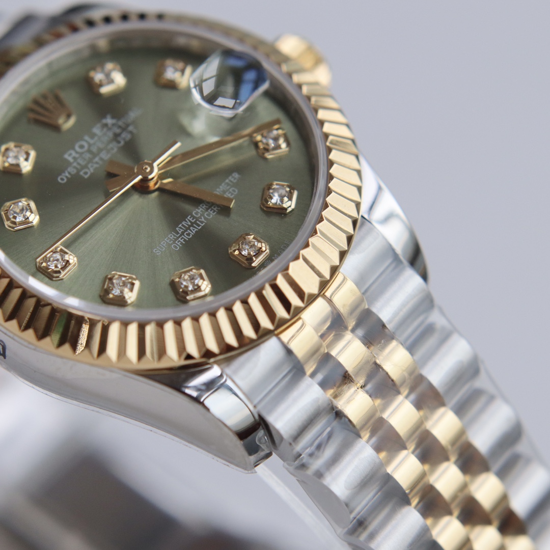 NIGO Rolex Women's Log-type Series Automatic Mechanical Movement Water-resistant Diamond-encrusted Green Dial Stainless Steel Bracelet 31mm Watch #nigo77786