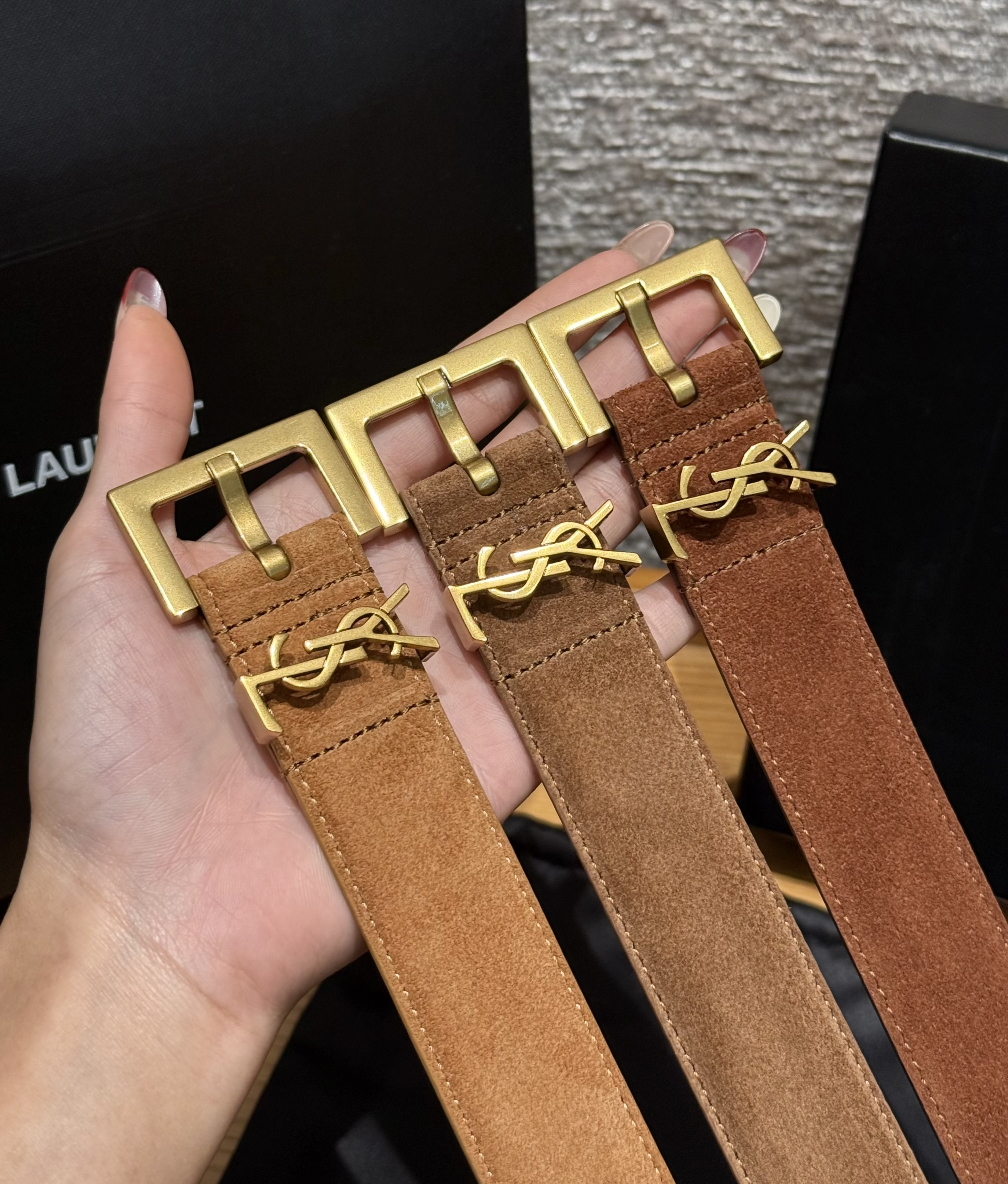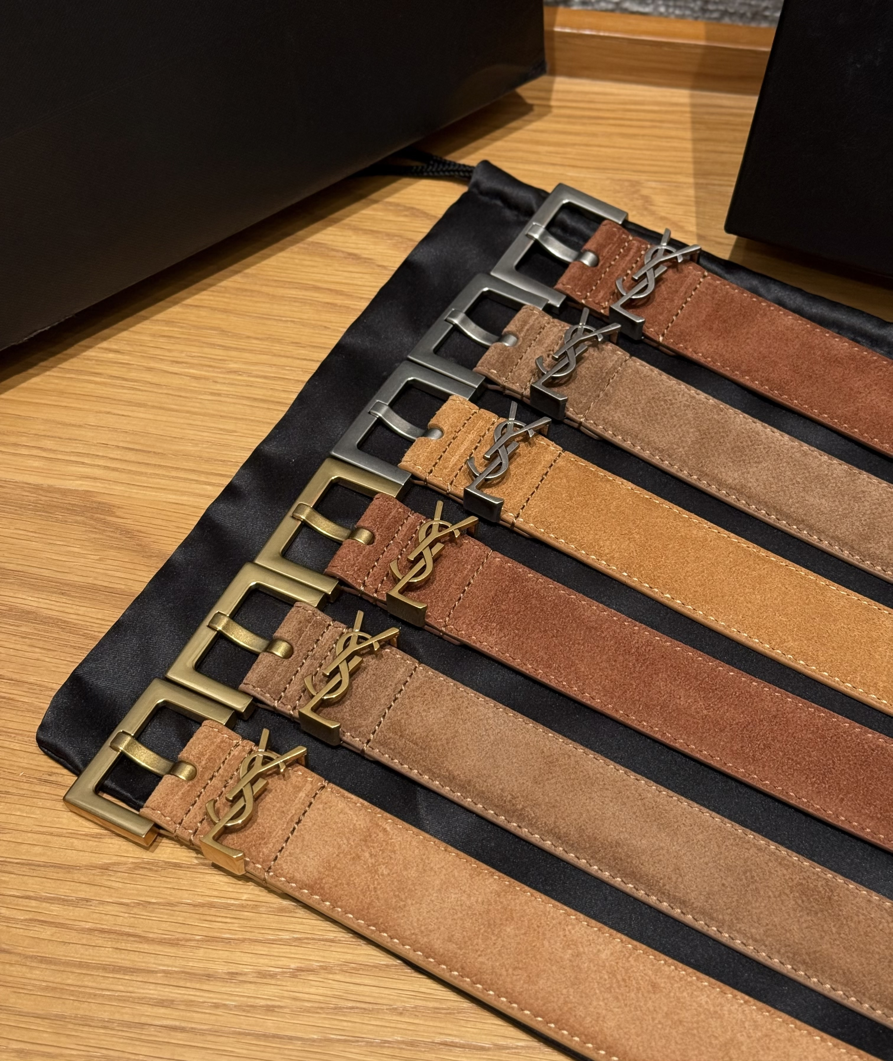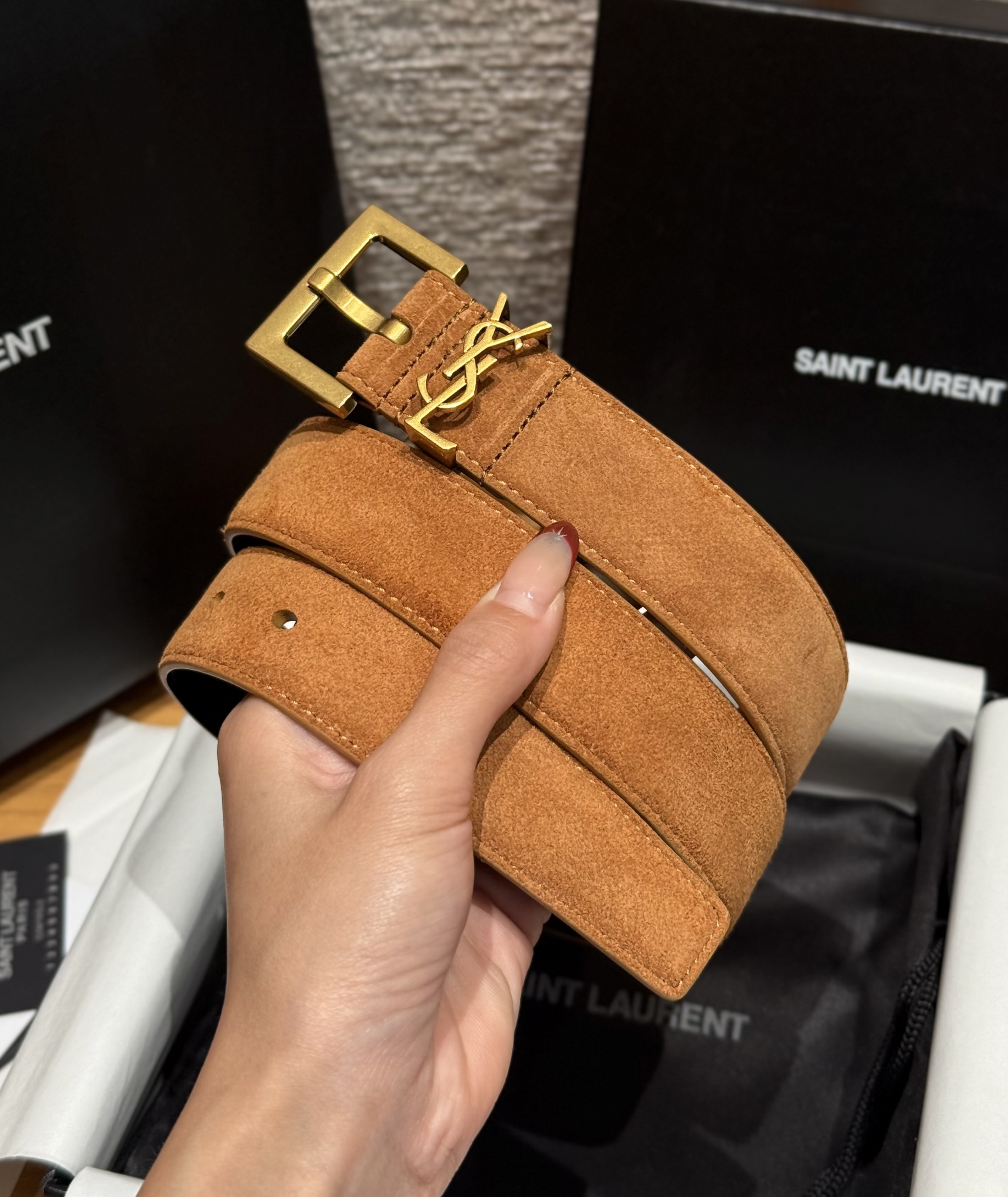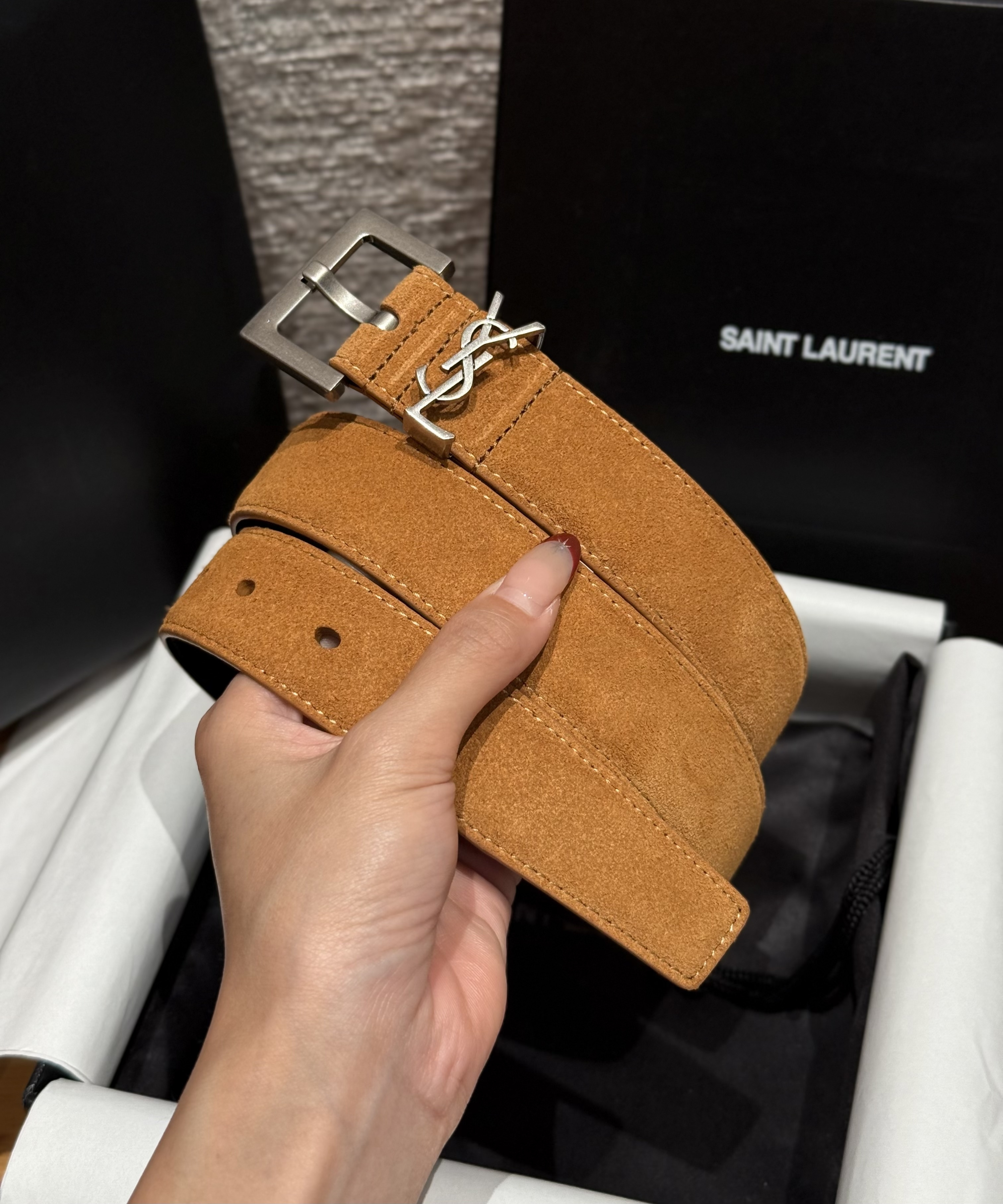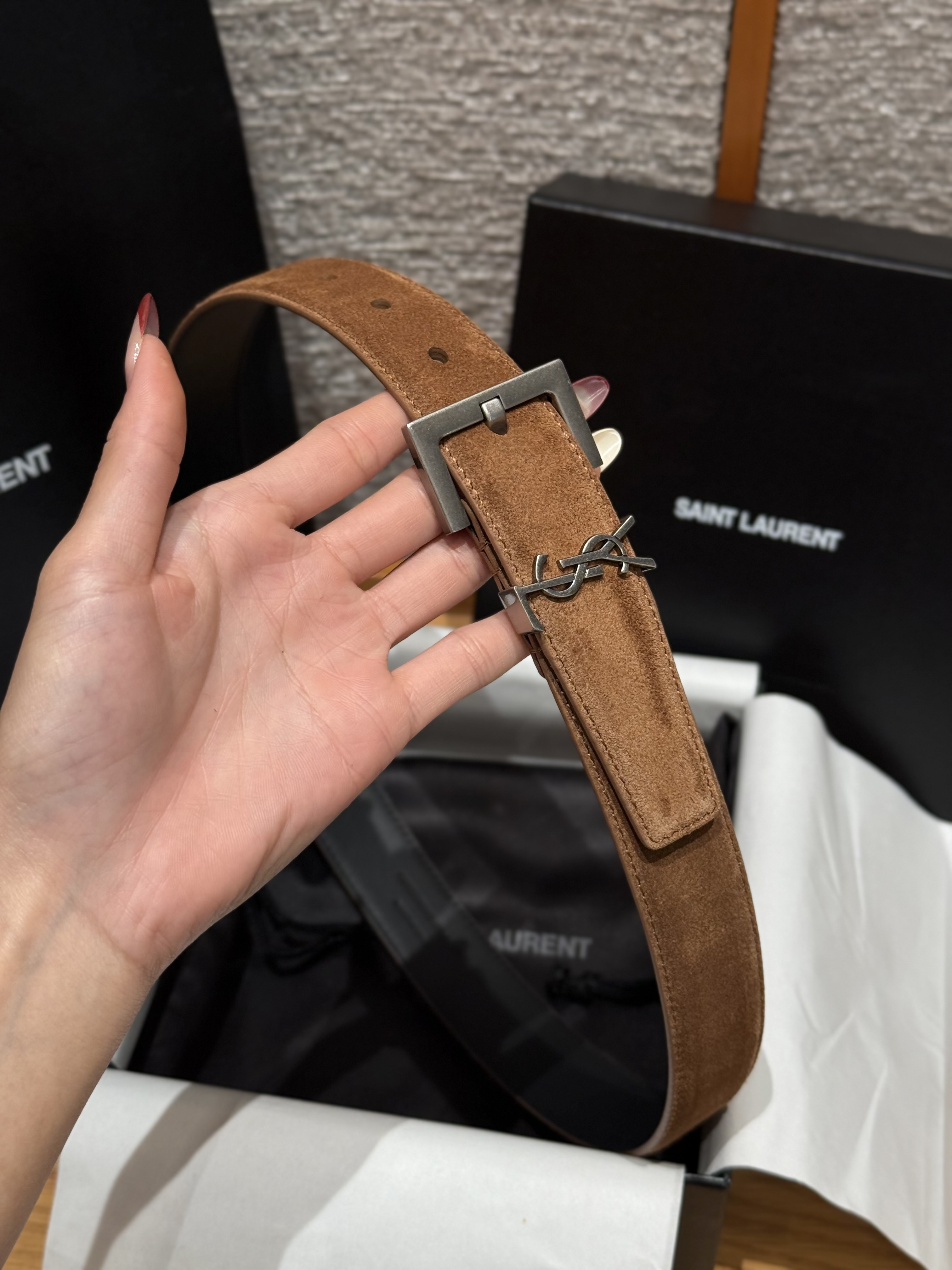 NIGO Saint Laurent Cassandre Belt With Square Buckle in Suede #nigo375917