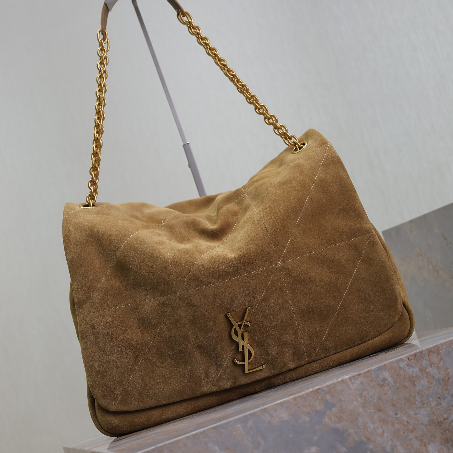 This Saint Laurent handbag showcases the brand's exceptional craftsmanship and attention to detail. Crafted from premium suede, this piece combines timeless luxury with modern style.