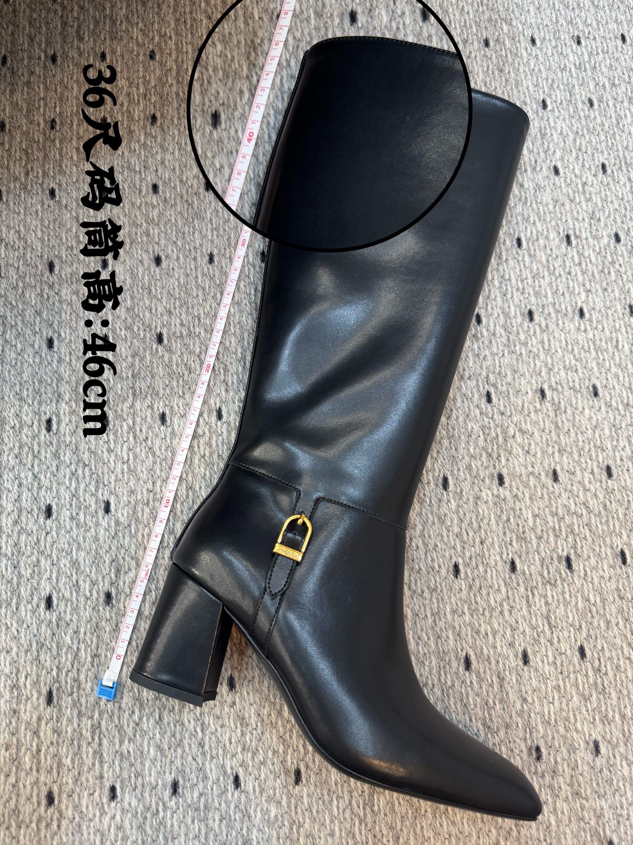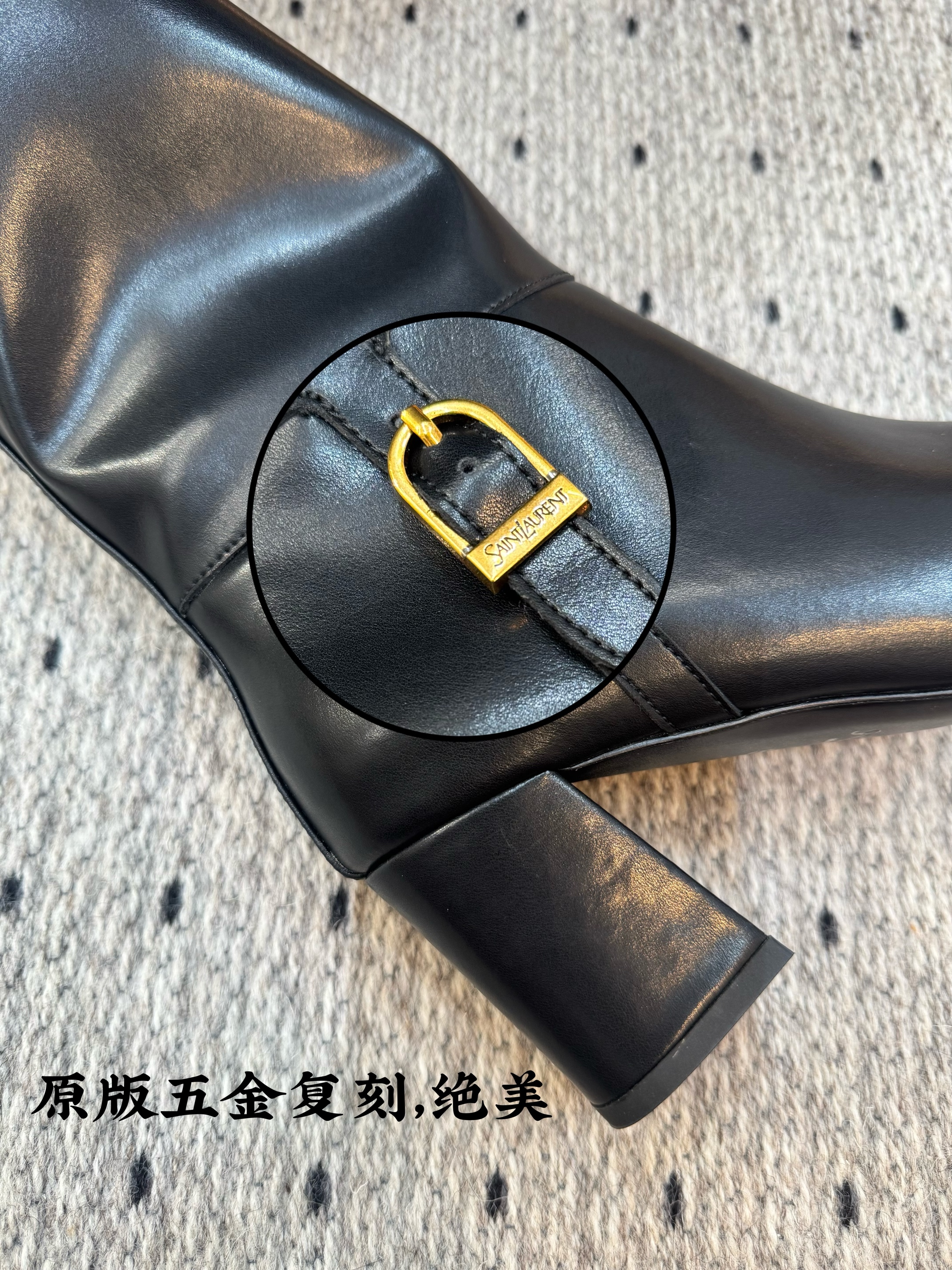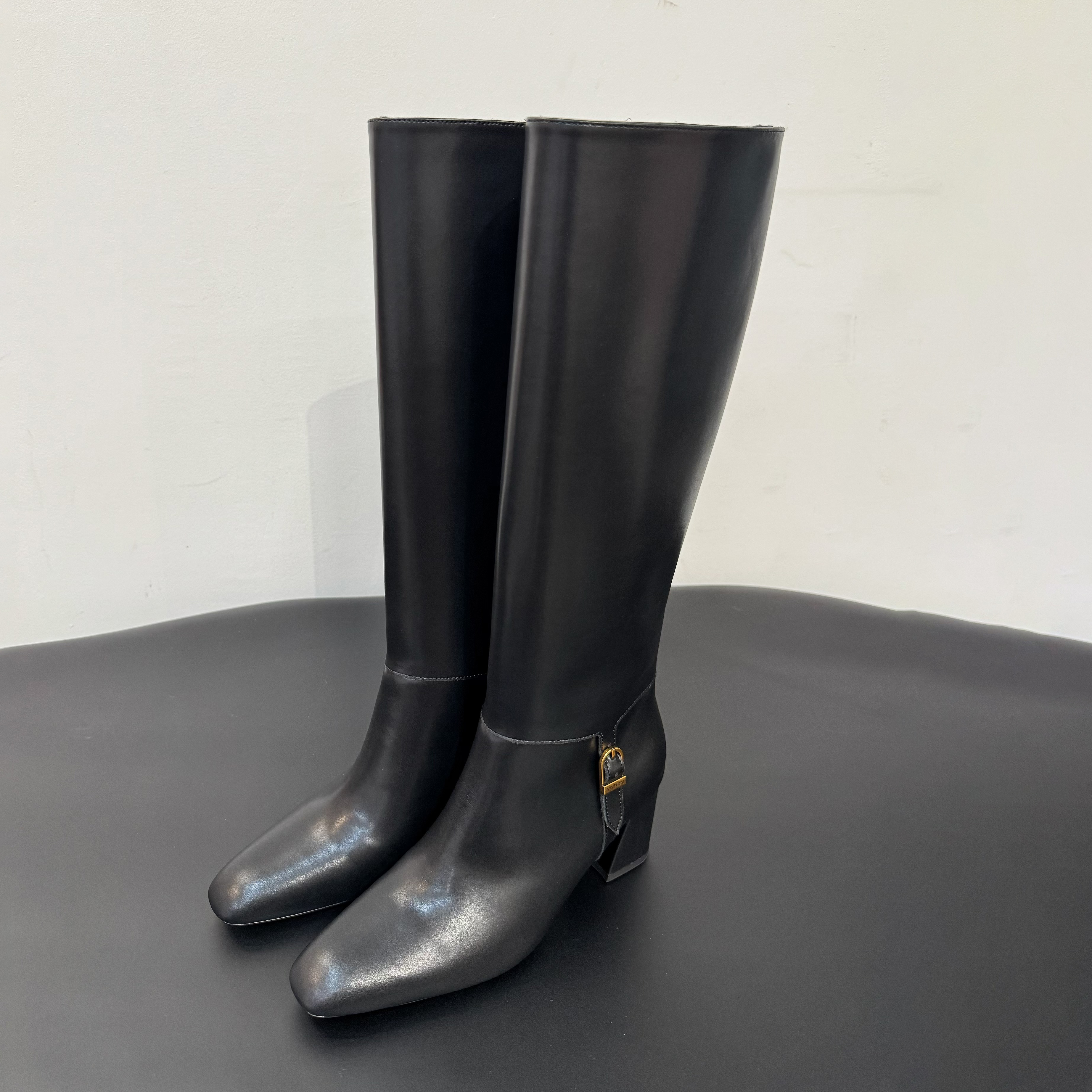 NIGO Saint Laurent JULIA Women's Fall/Winter Solid Color Fashion Classic Leather Knee-High Boots, Chunky Heel Shoes Heel Height 7cm Boot Shoes #nigo79217