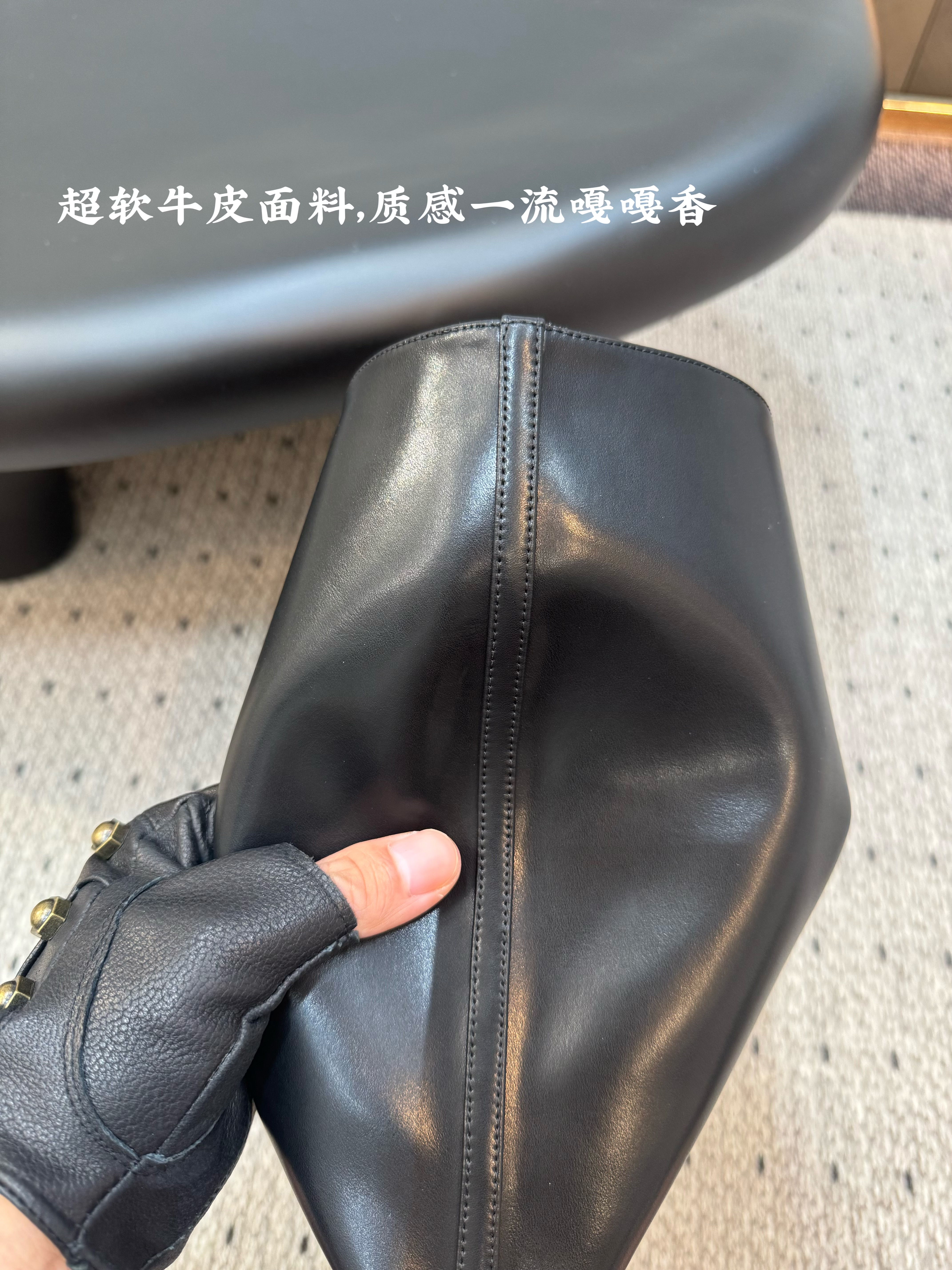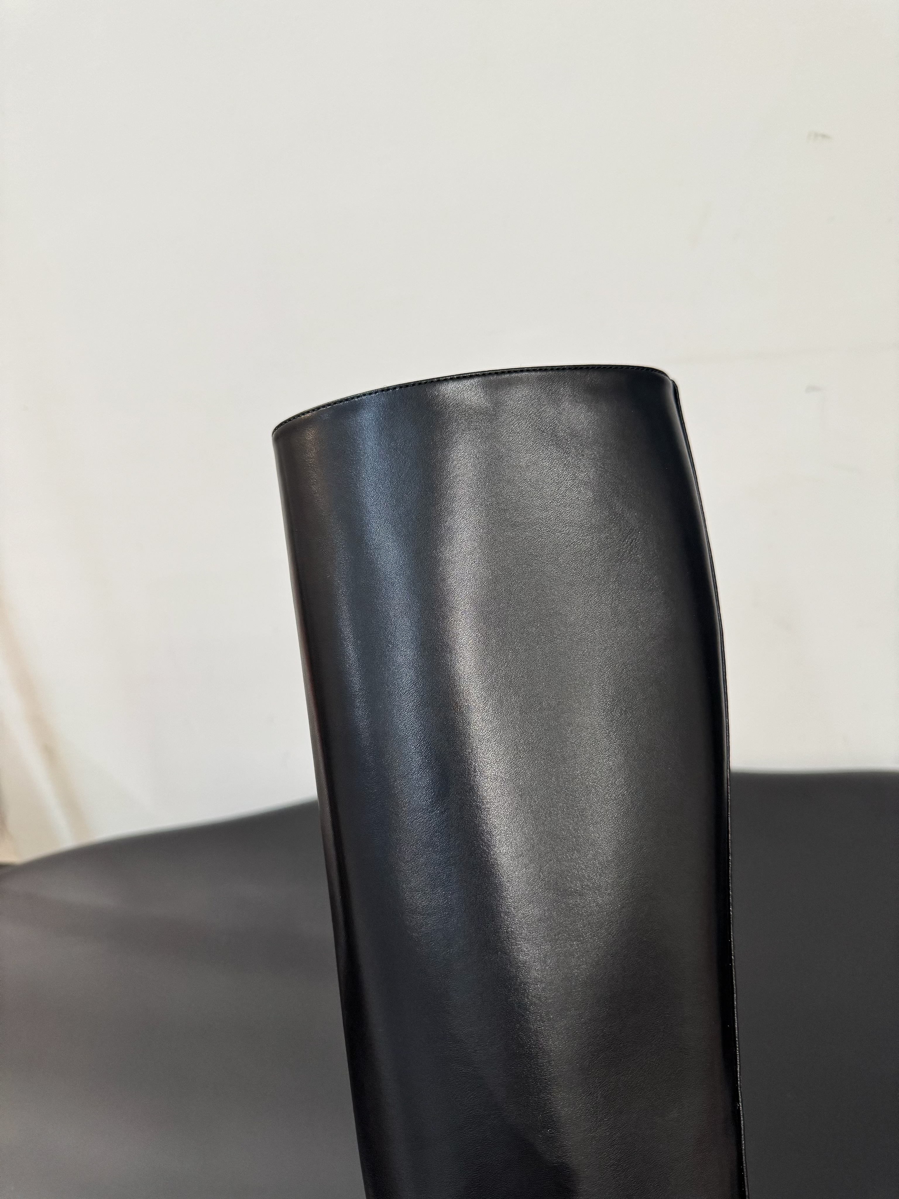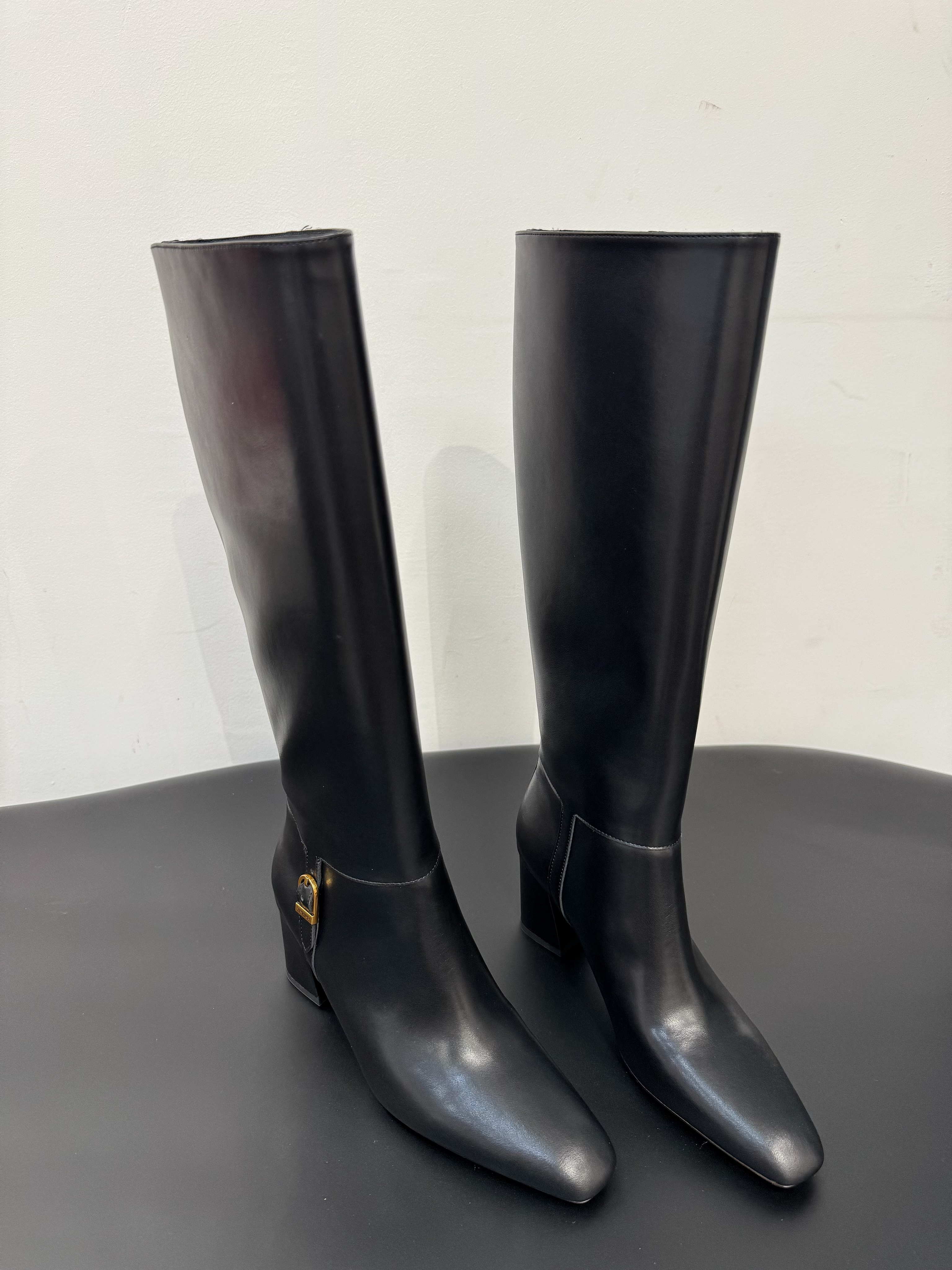 NIGO Saint Laurent JULIA Women's Fall/Winter Solid Color Fashion Classic Leather Knee-High Boots, Chunky Heel Shoes Heel Height 7cm Boot Shoes #nigo79217