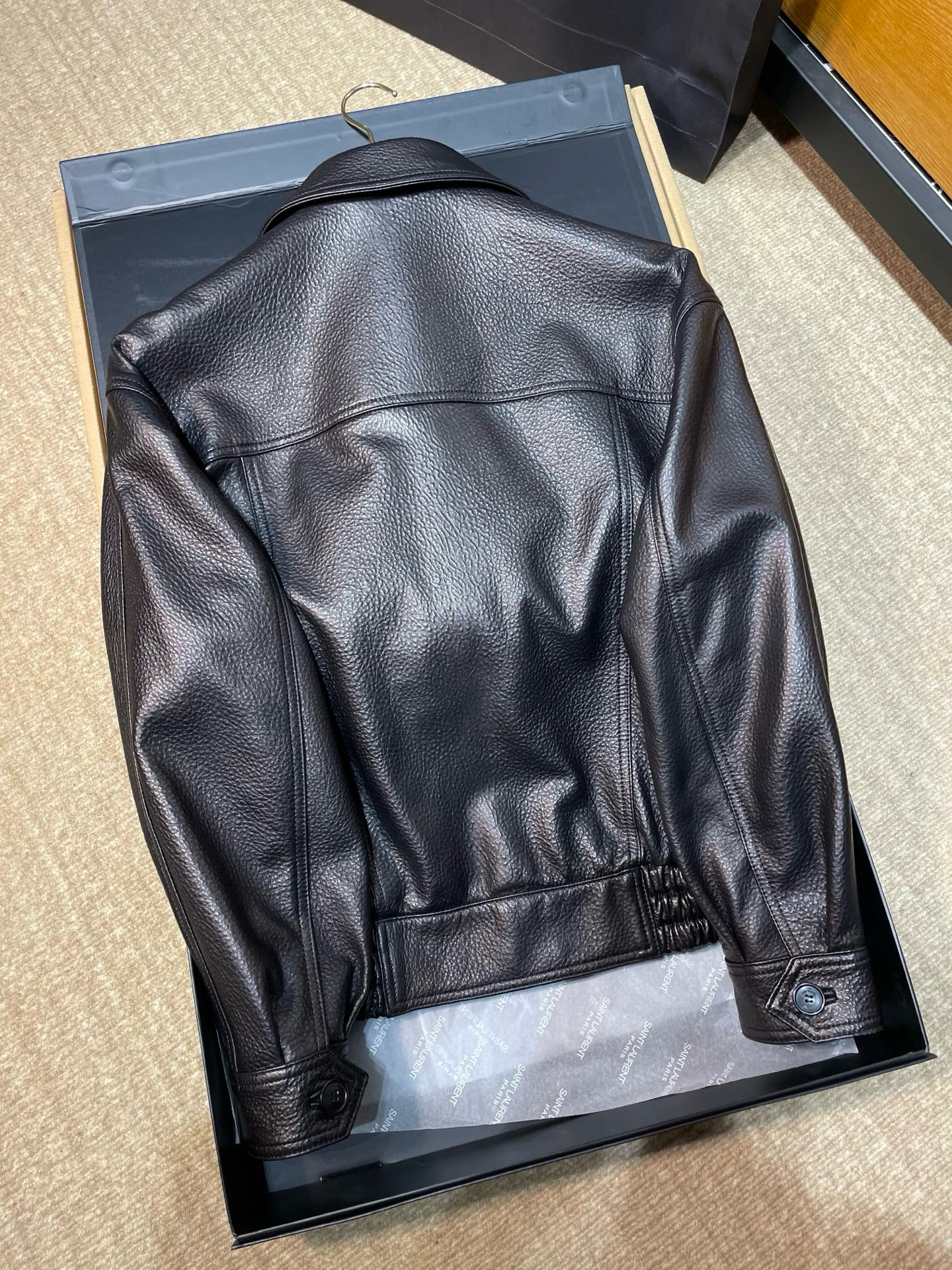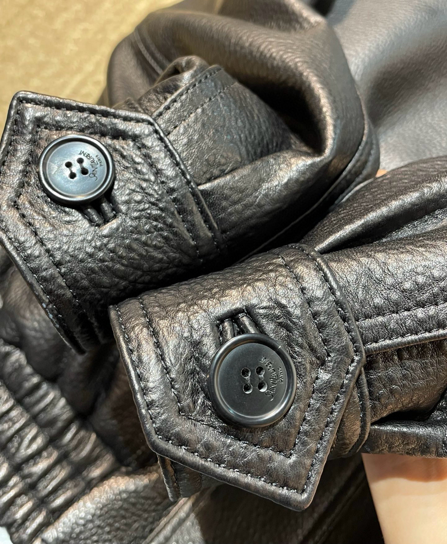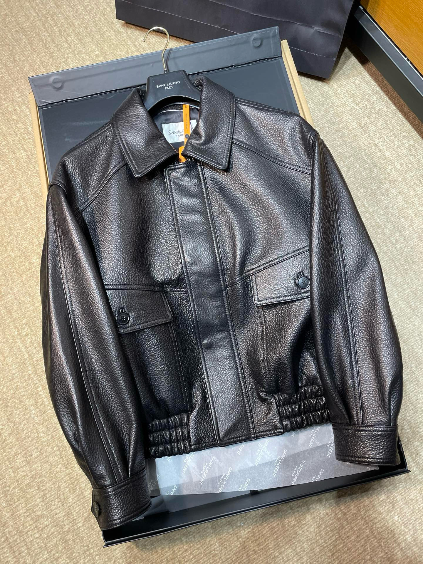 NIGO SAINT LAURENT Men's & Women's Fall/Winter Fashion Classic Solid-Color Leather Lapel Zipper Button Leather Flight Jacket Leather Jacket #nigo78841
