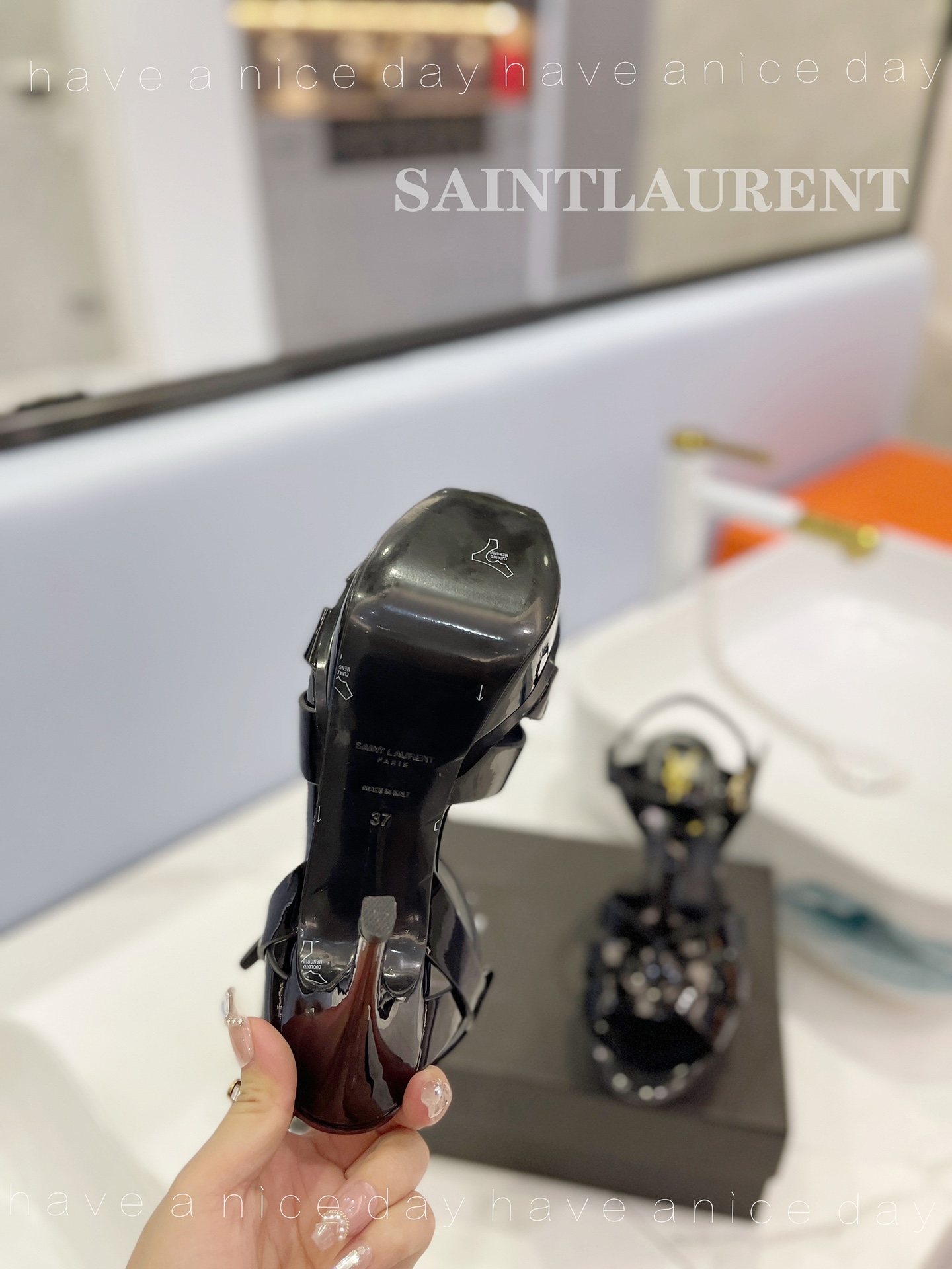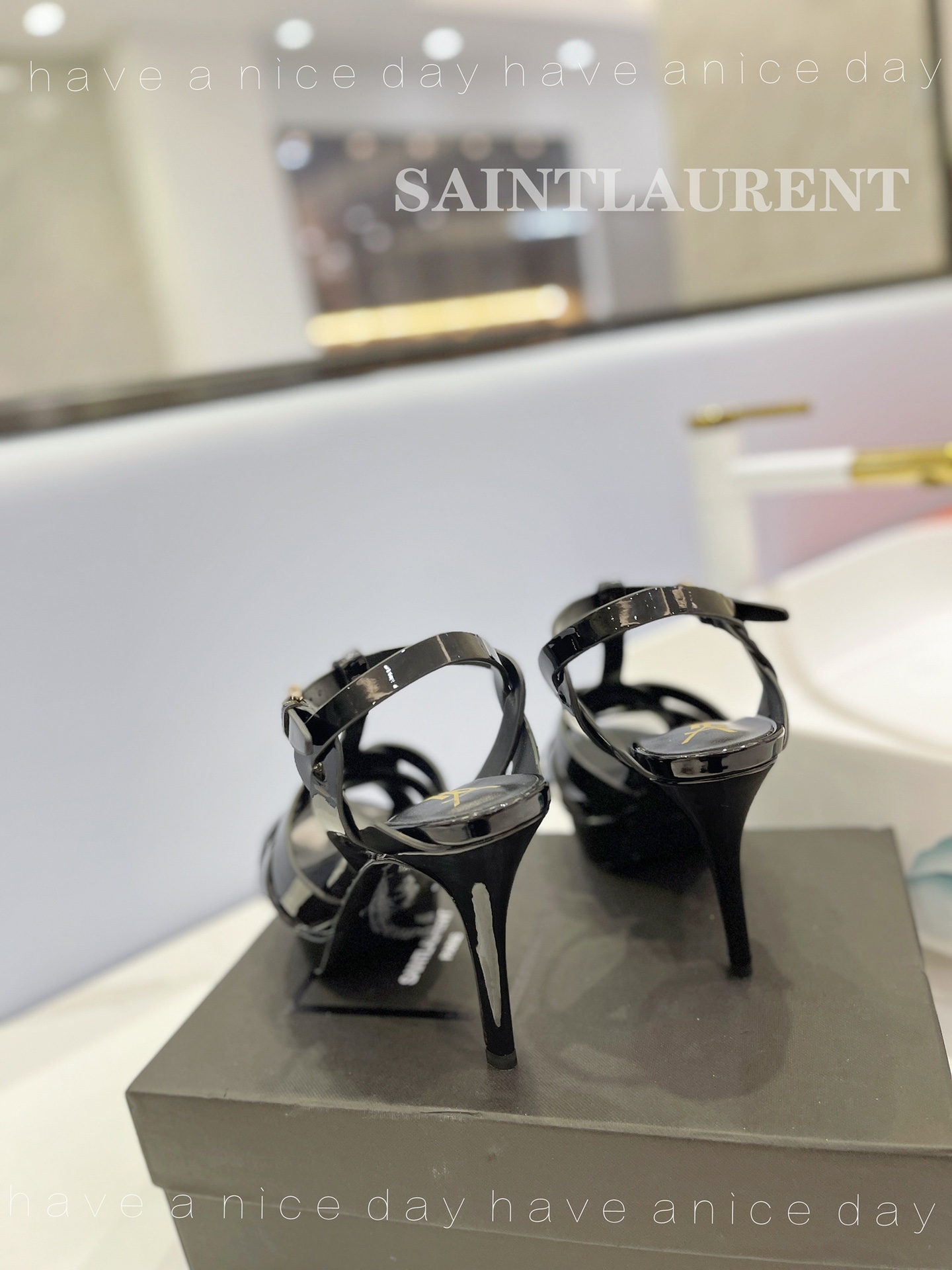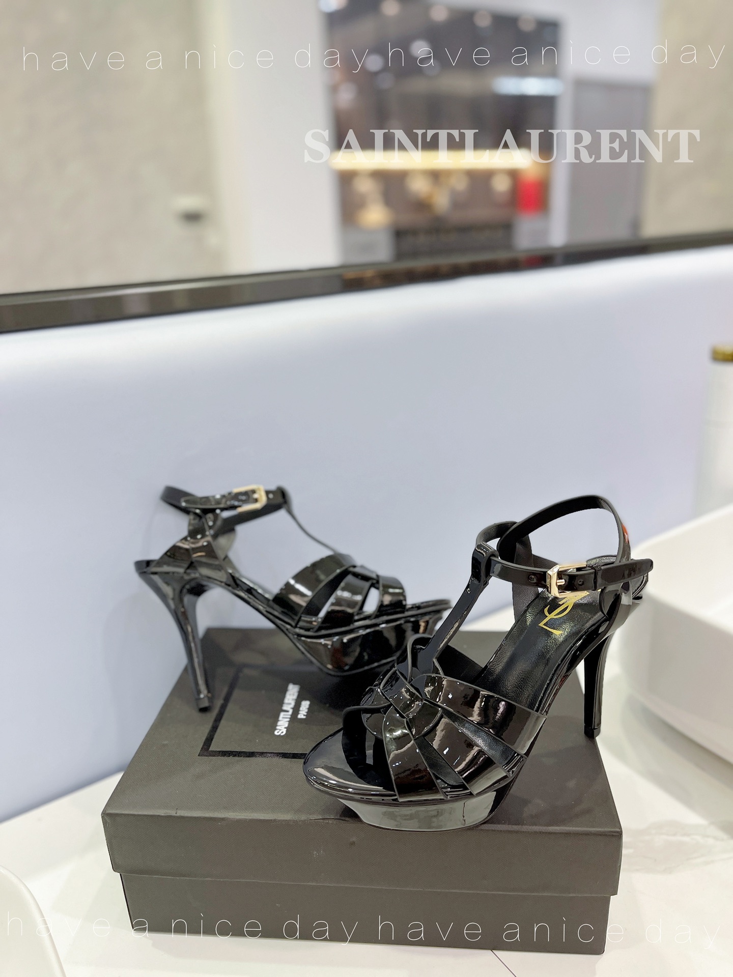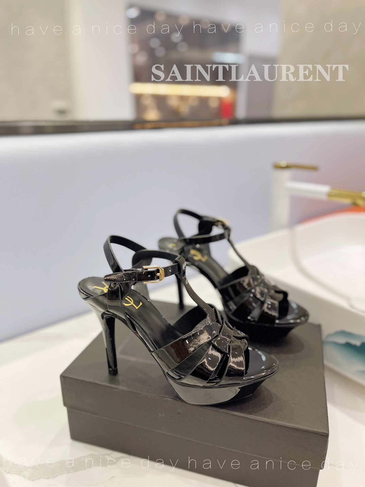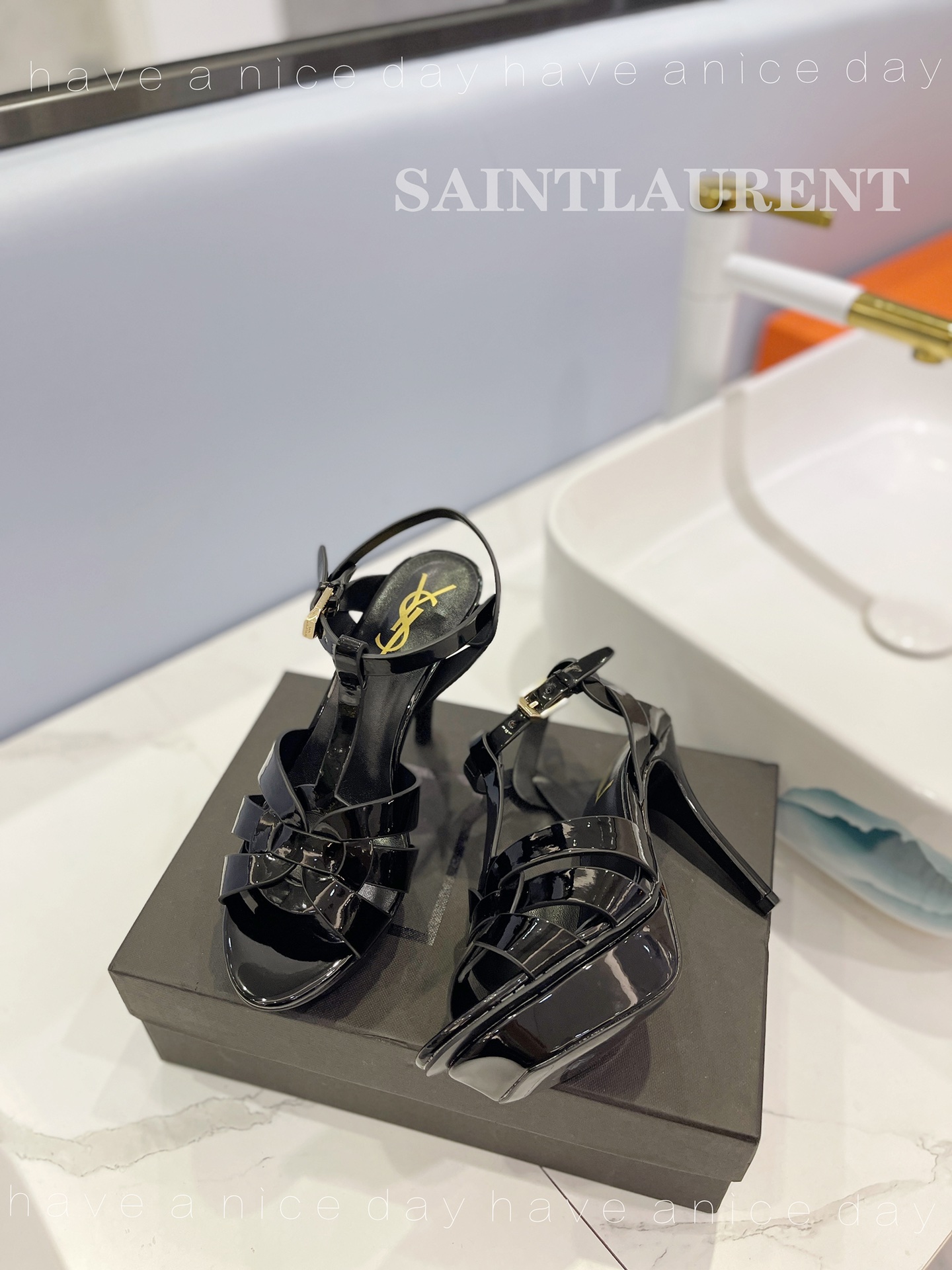 NIGO SAINT LAURENT TRIBUTE Women's Summer Solid Color Glossy Leather Strappy High Heel Sandals Shoes #nigo77495