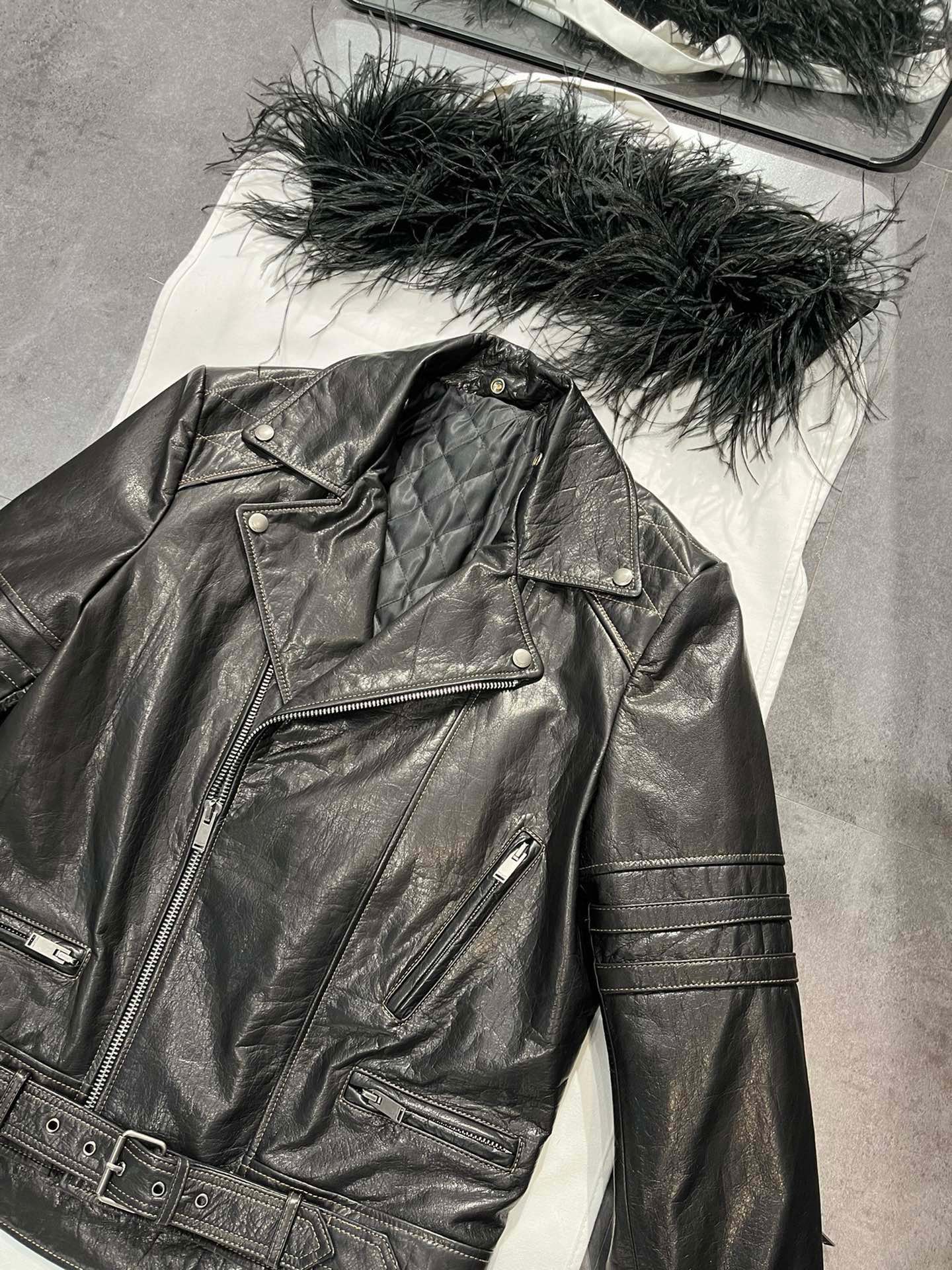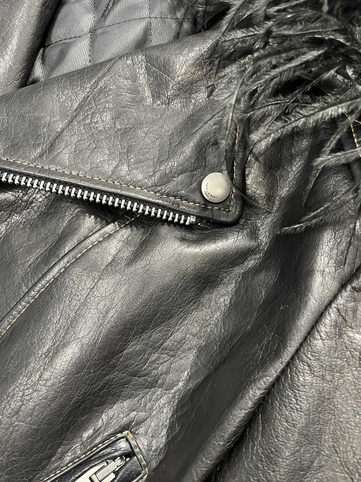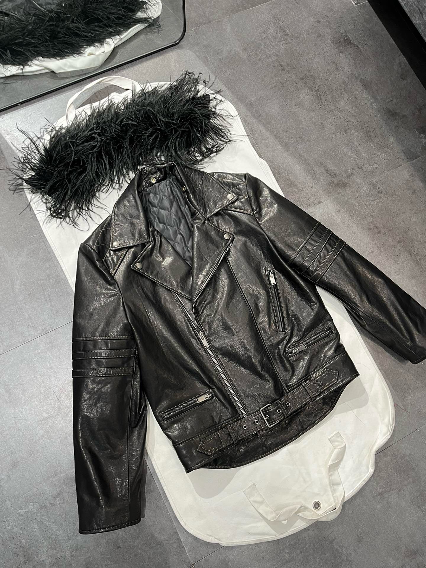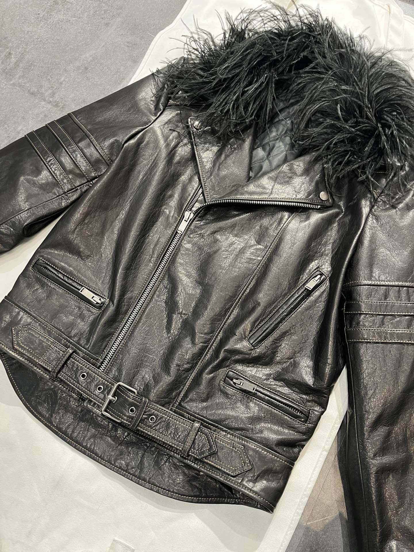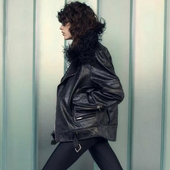 NIGO SAINT LAURENT Women's Autumn And Winter Solid Color Lapel Zipper Leather Jacket Hair Collar Motorcycle Leather Jacke Ngvp #nigo7376