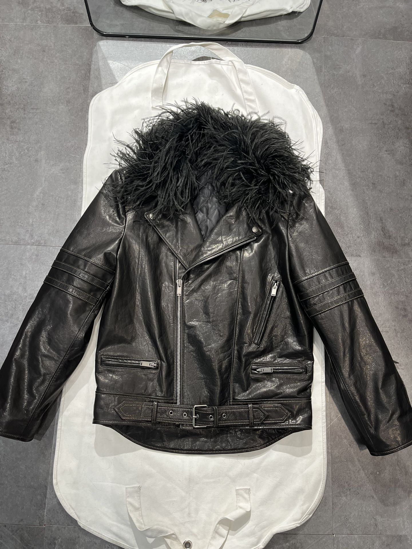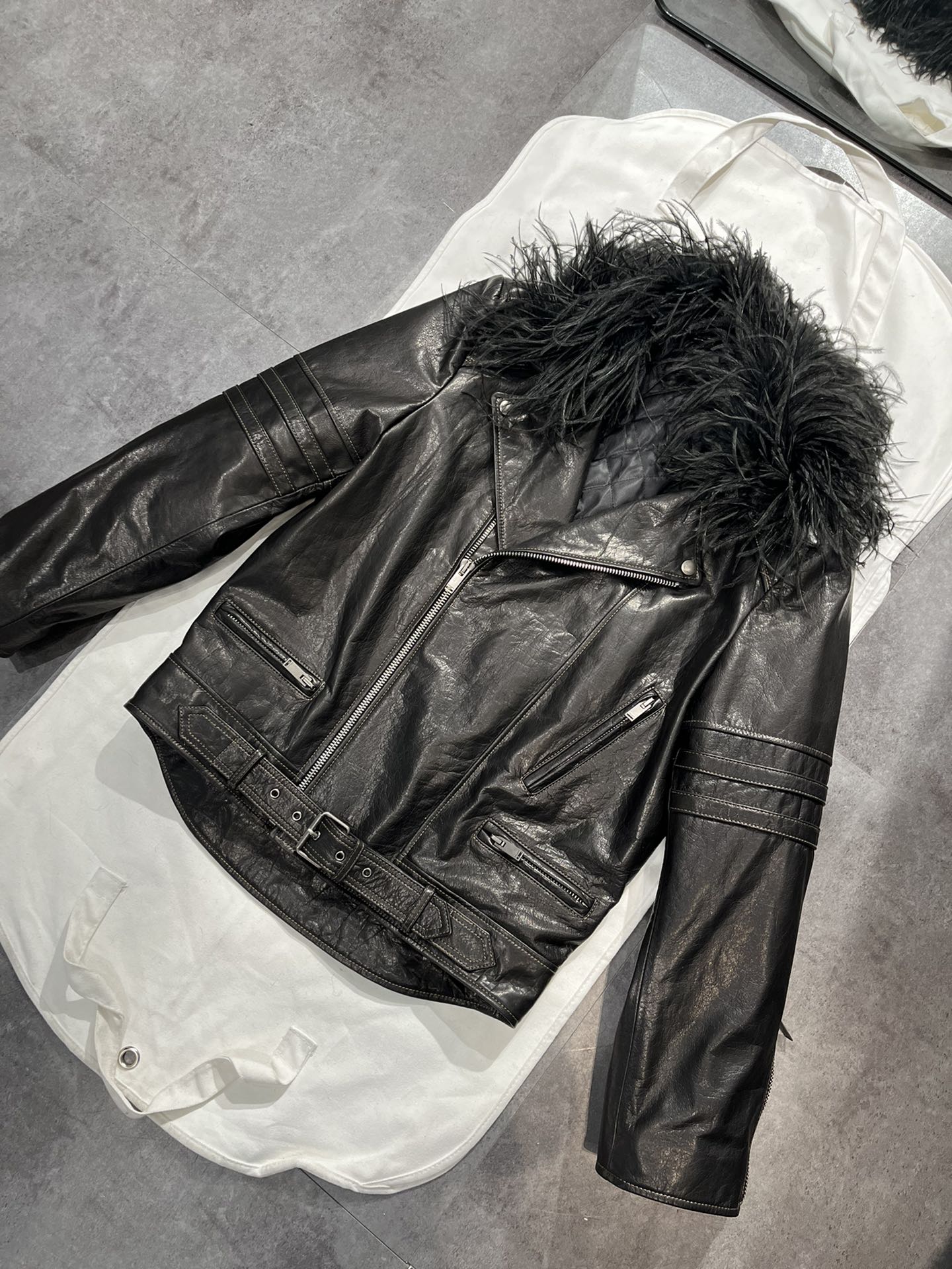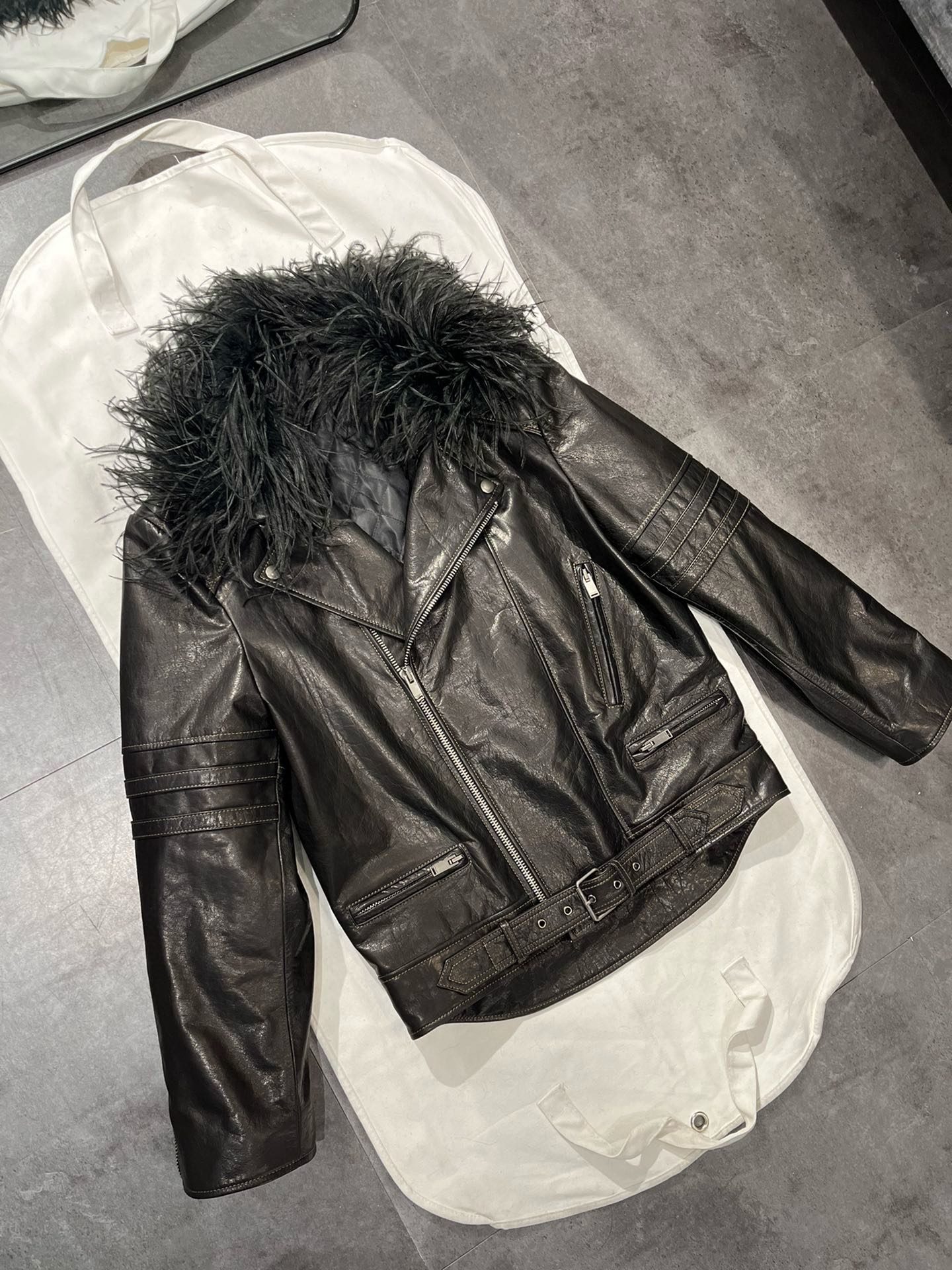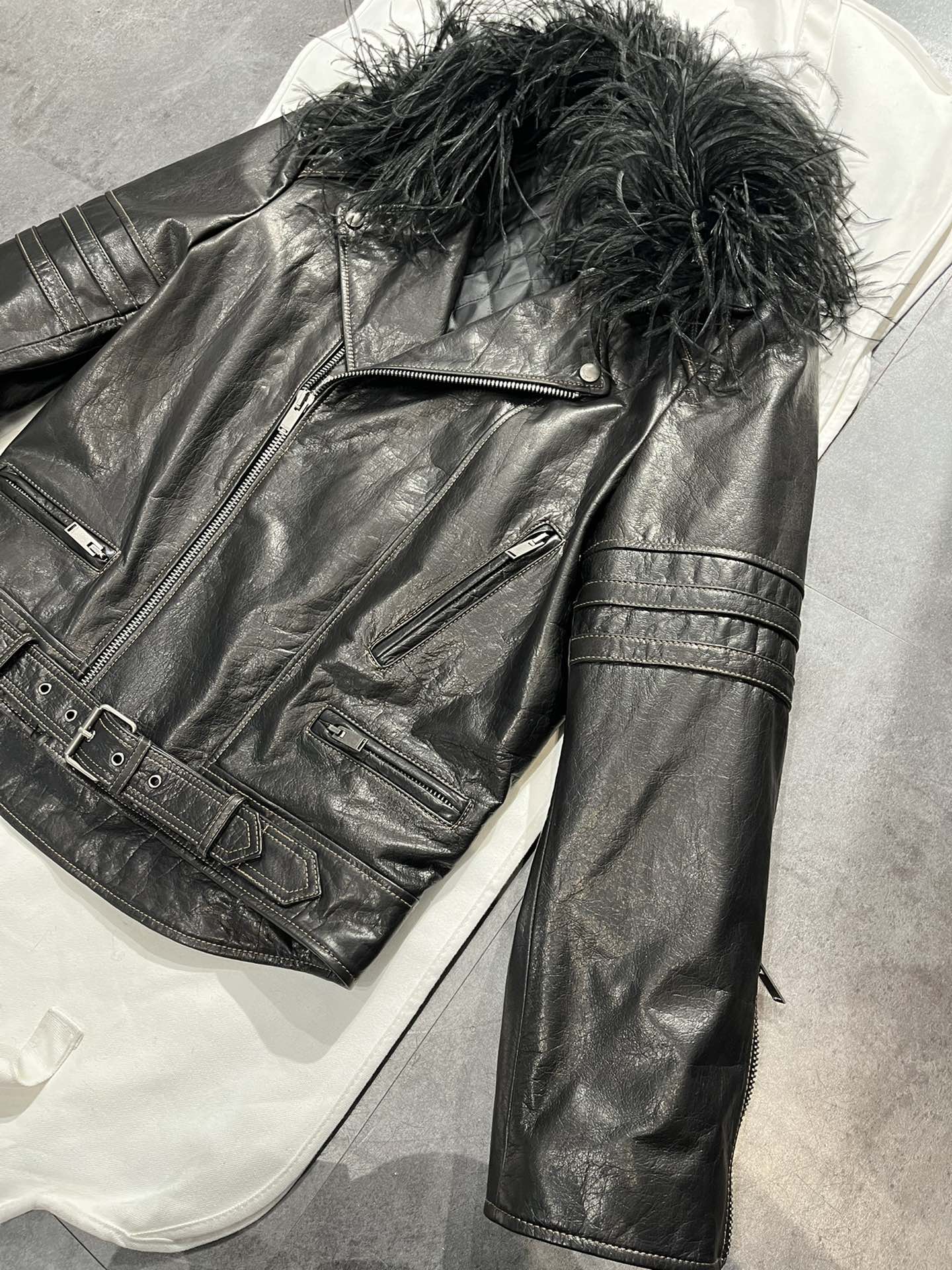 NIGO SAINT LAURENT Women's Autumn And Winter Solid Color Lapel Zipper Leather Jacket Hair Collar Motorcycle Leather Jacke Ngvp #nigo7376