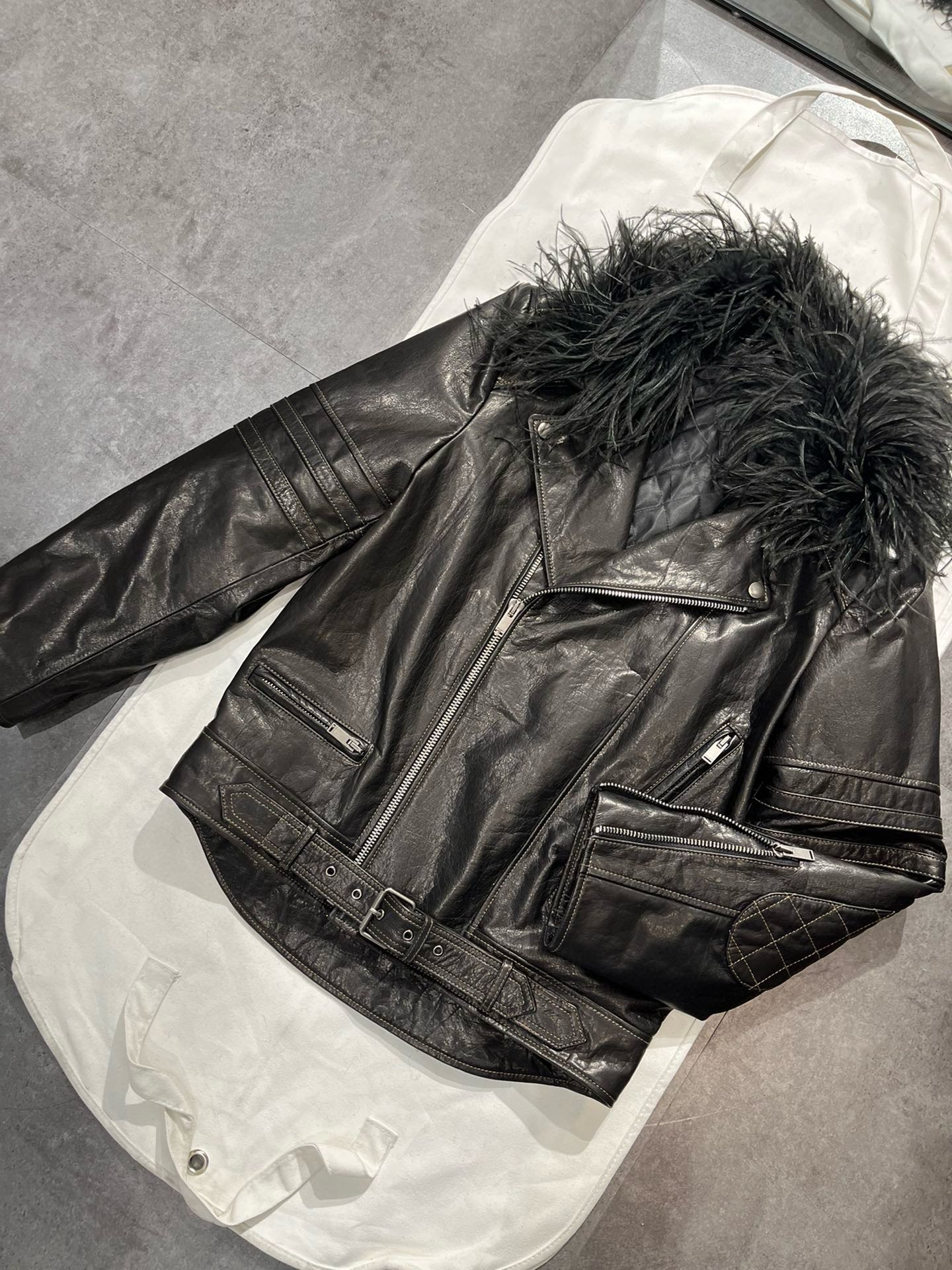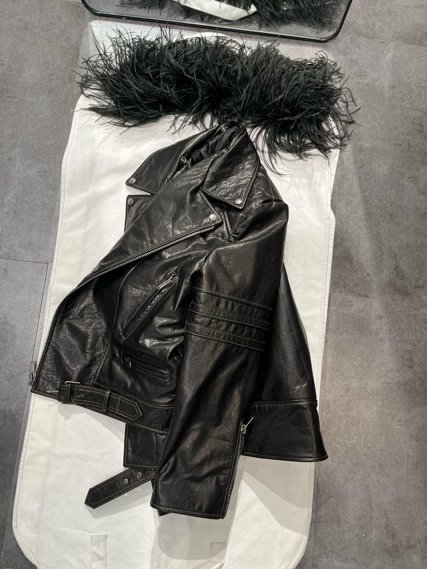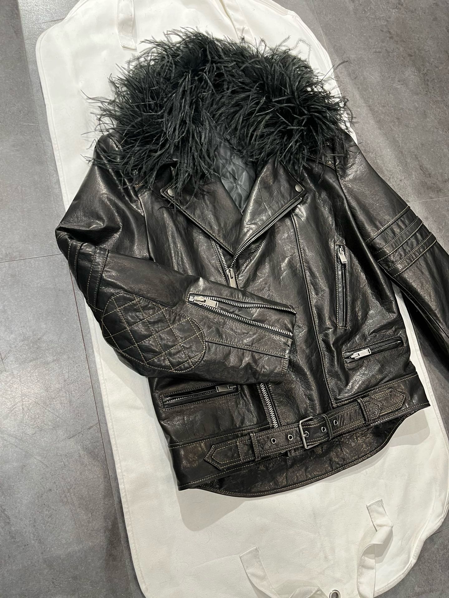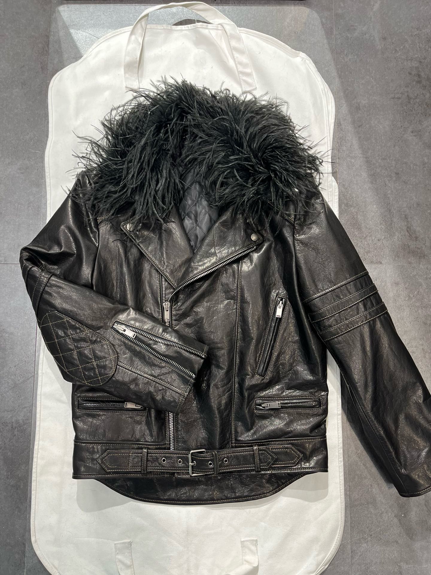 NIGO SAINT LAURENT Women's Autumn And Winter Solid Color Lapel Zipper Leather Jacket Hair Collar Motorcycle Leather Jacke Ngvp #nigo7376