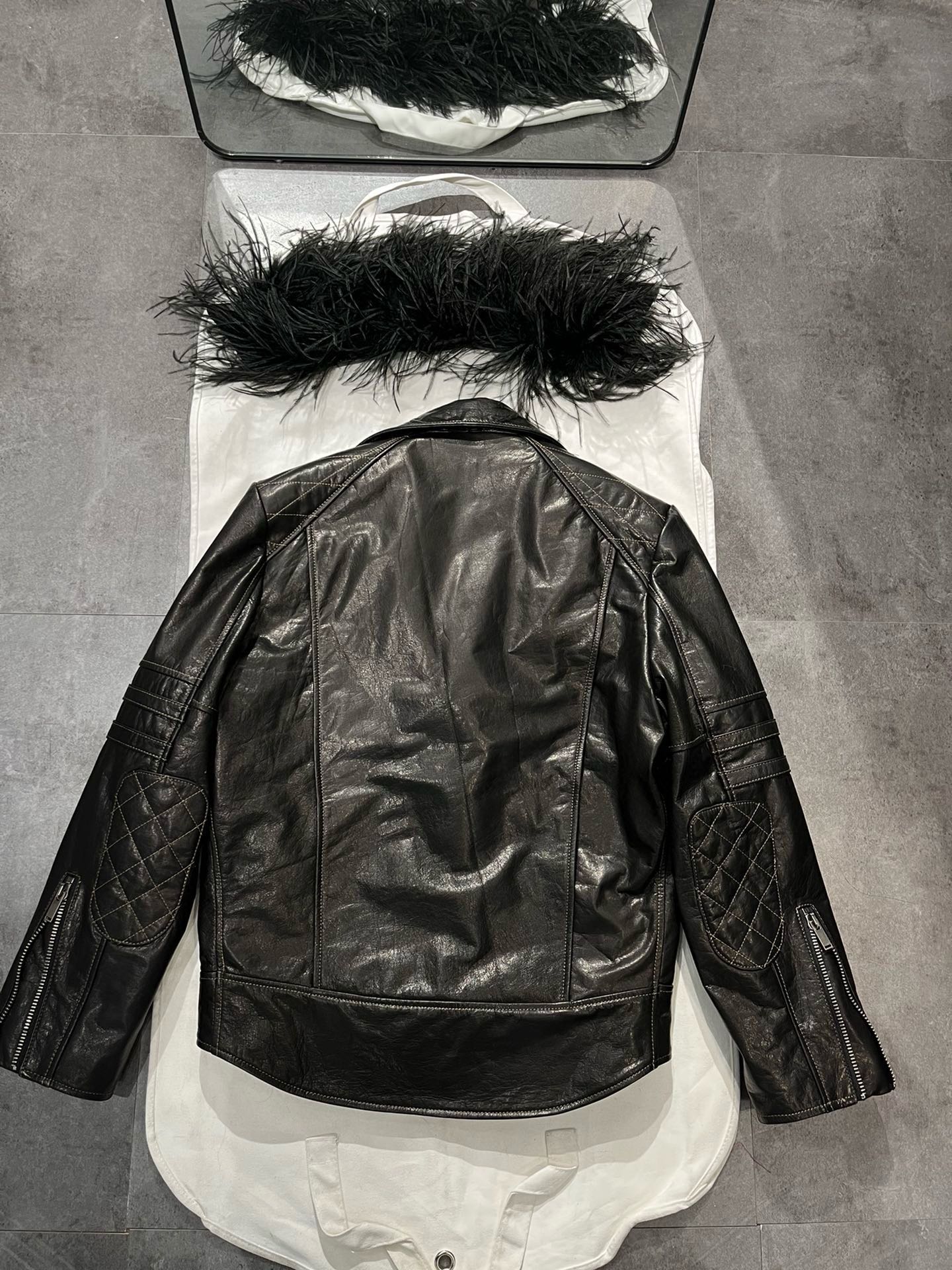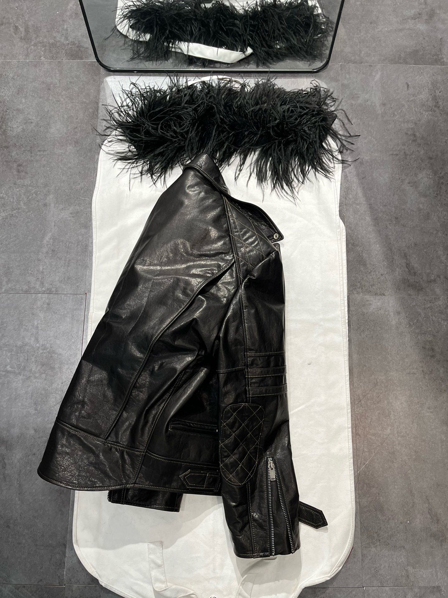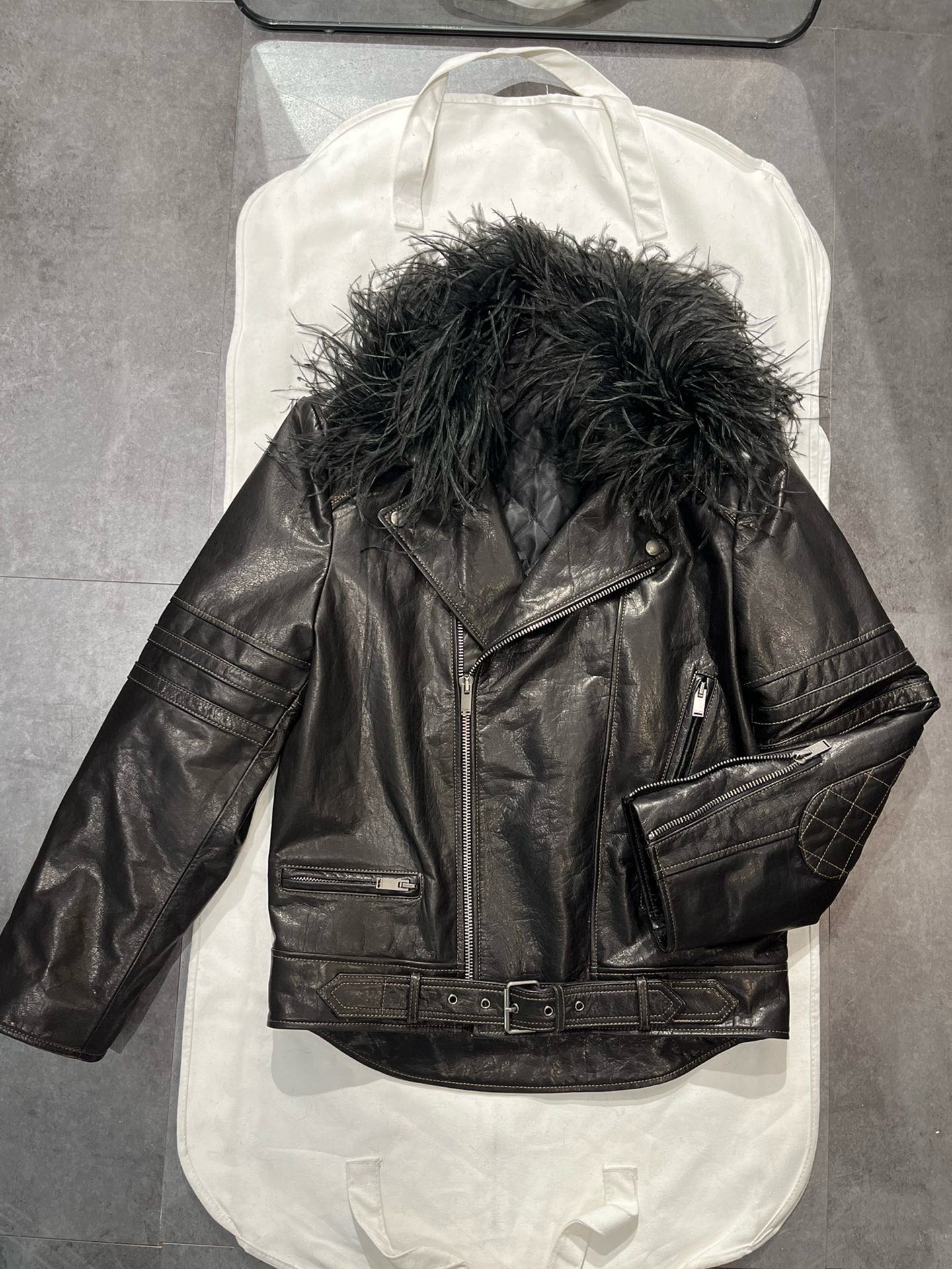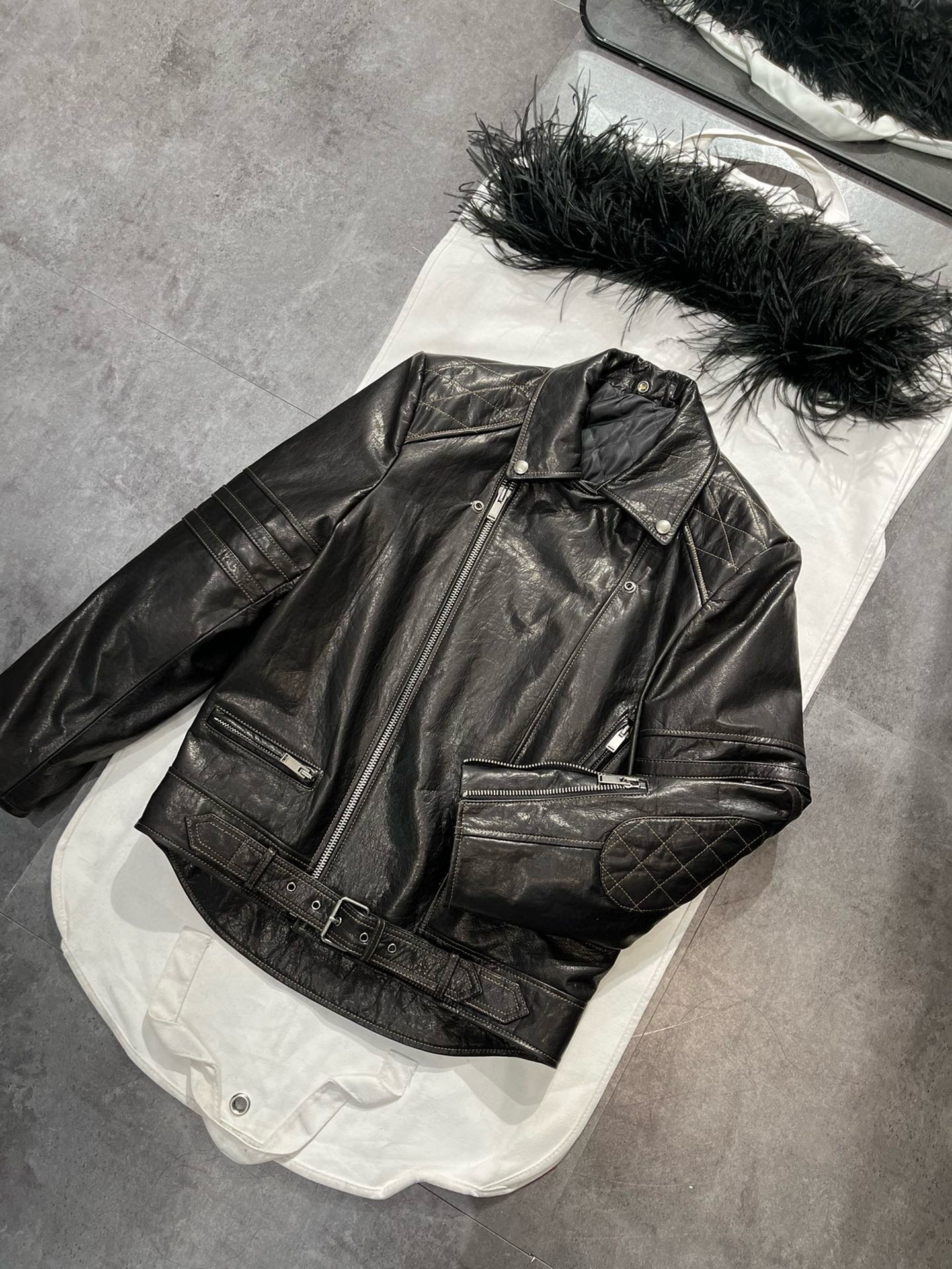 NIGO SAINT LAURENT Women's Autumn And Winter Solid Color Lapel Zipper Leather Jacket Hair Collar Motorcycle Leather Jacke Ngvp #nigo7376