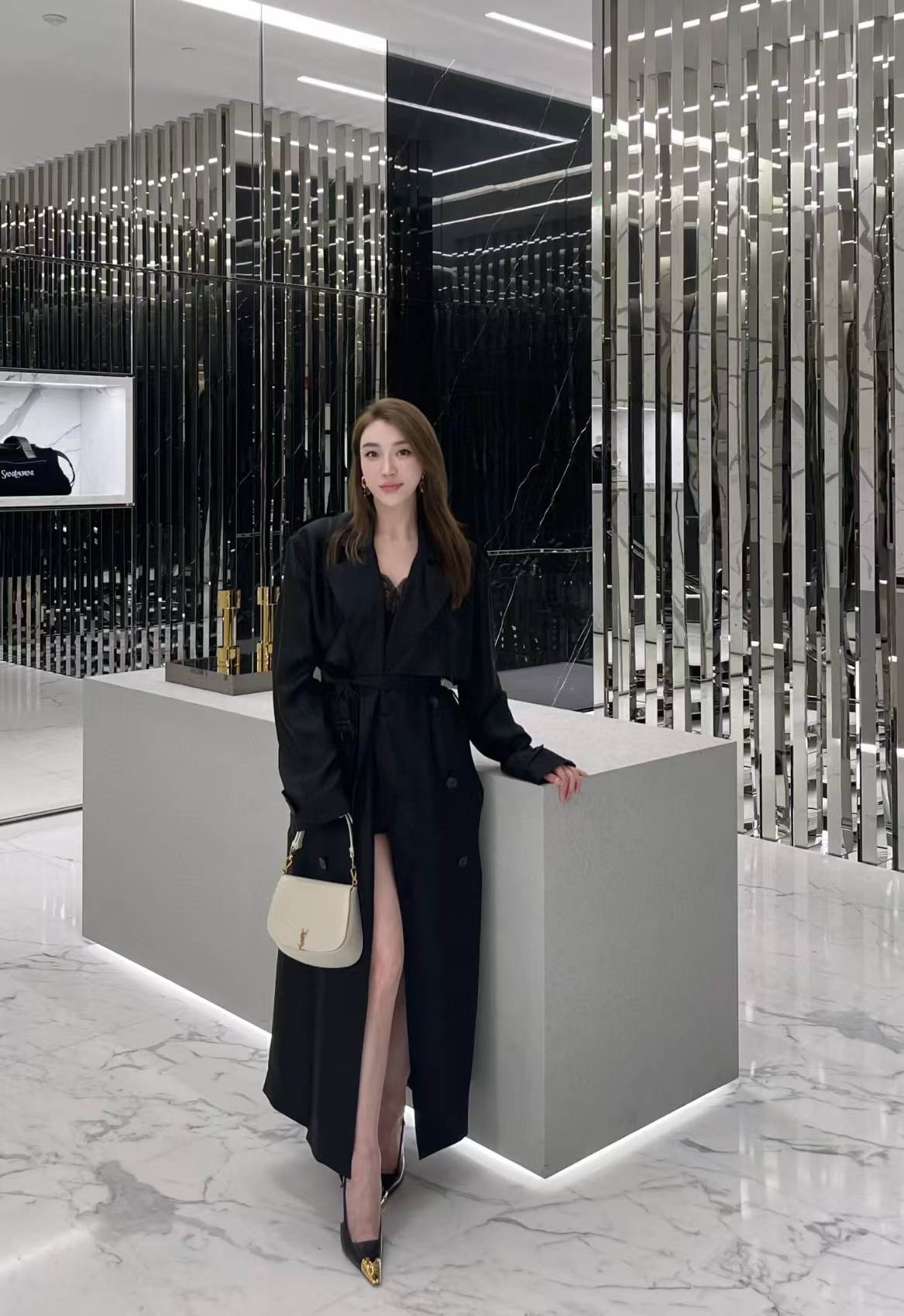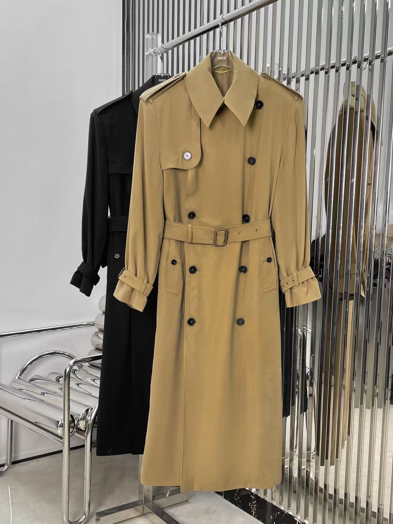 NIGO SAINT LAURENT Women's Autumn and Winter Solid Color Long Drawstring Double Breasted Long Sleeve Coat Jacket #nigo73983