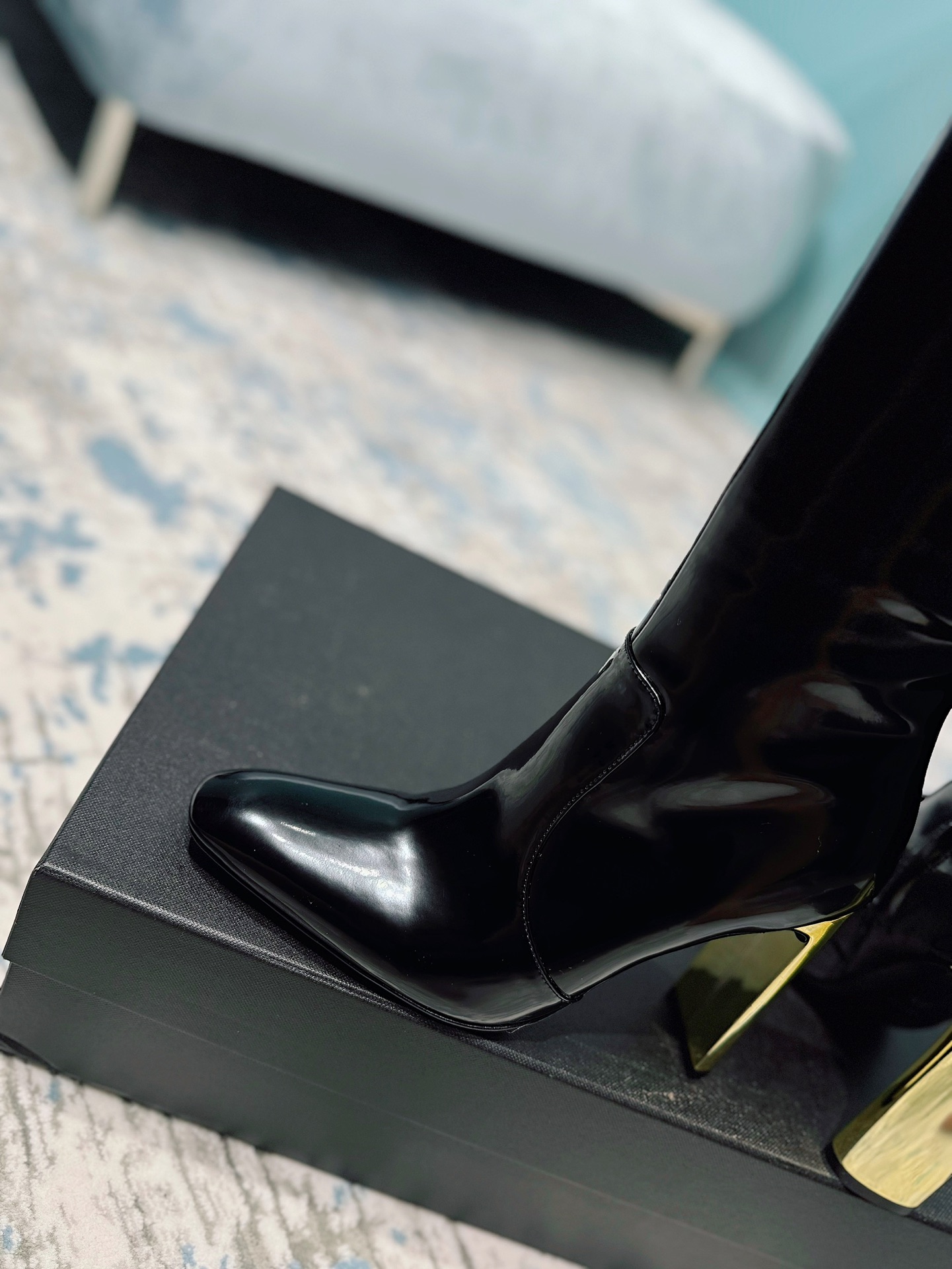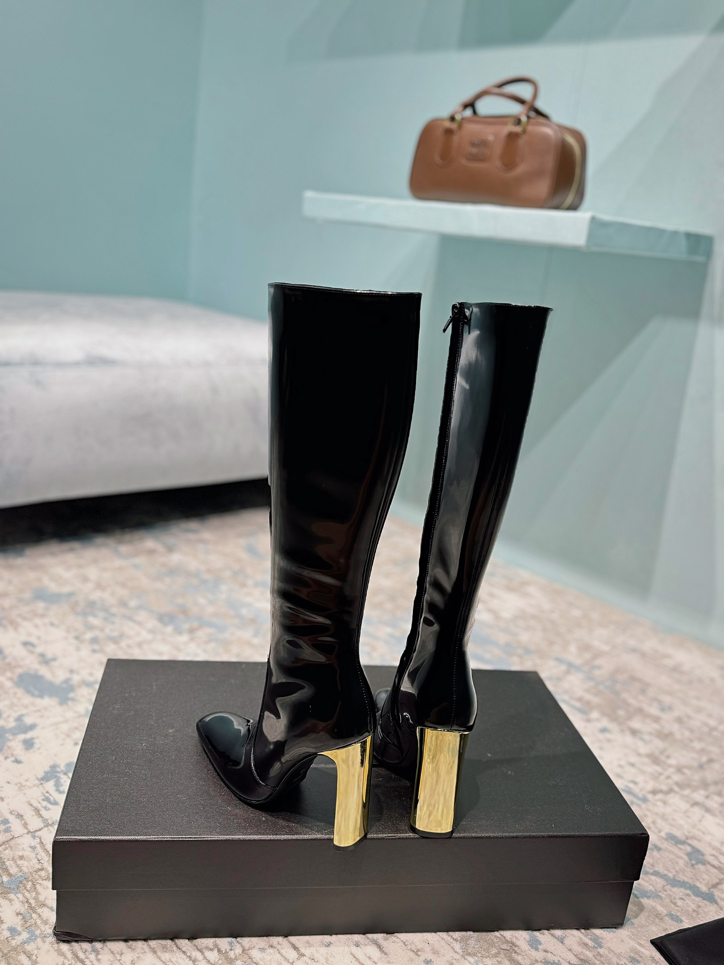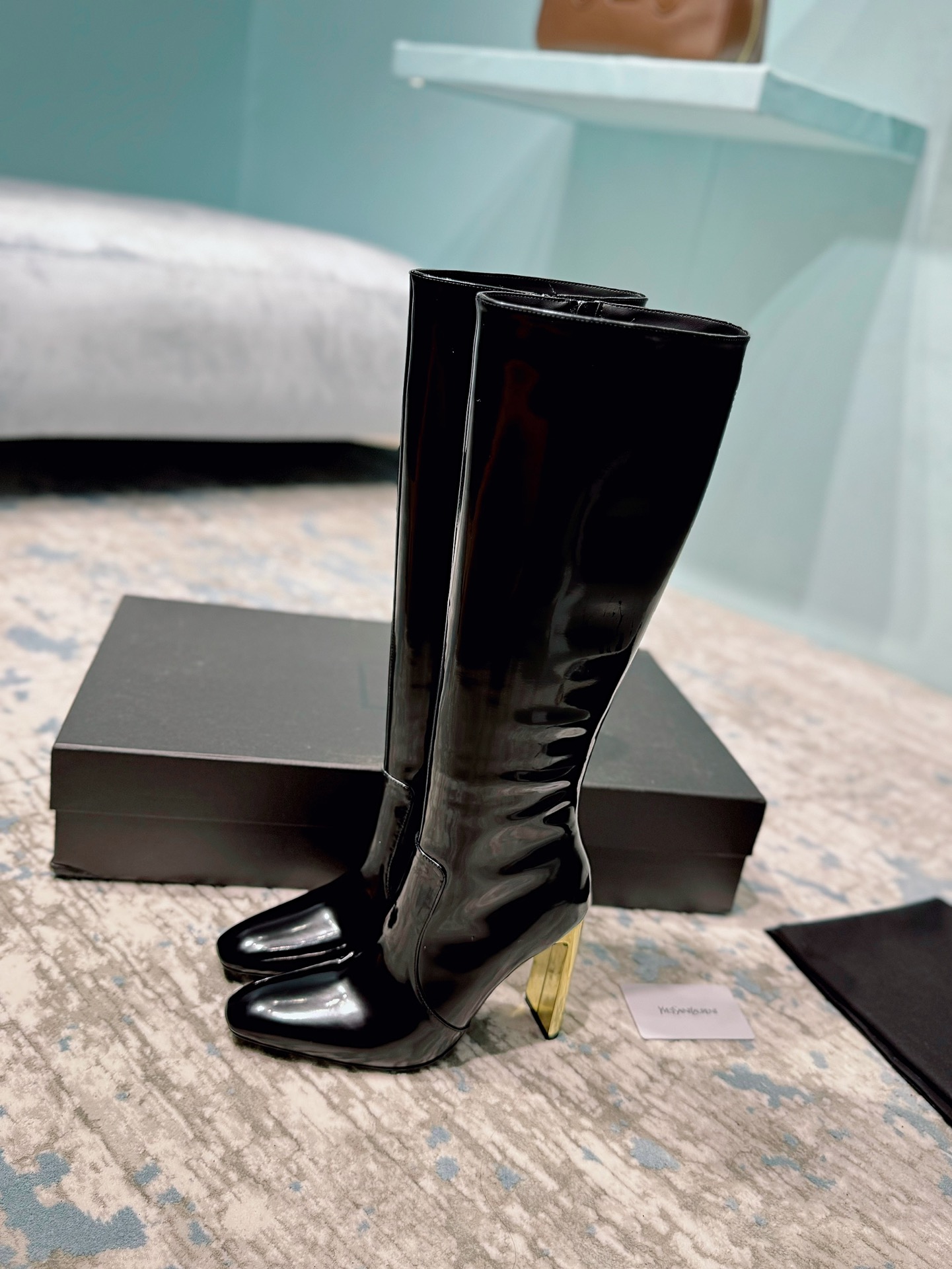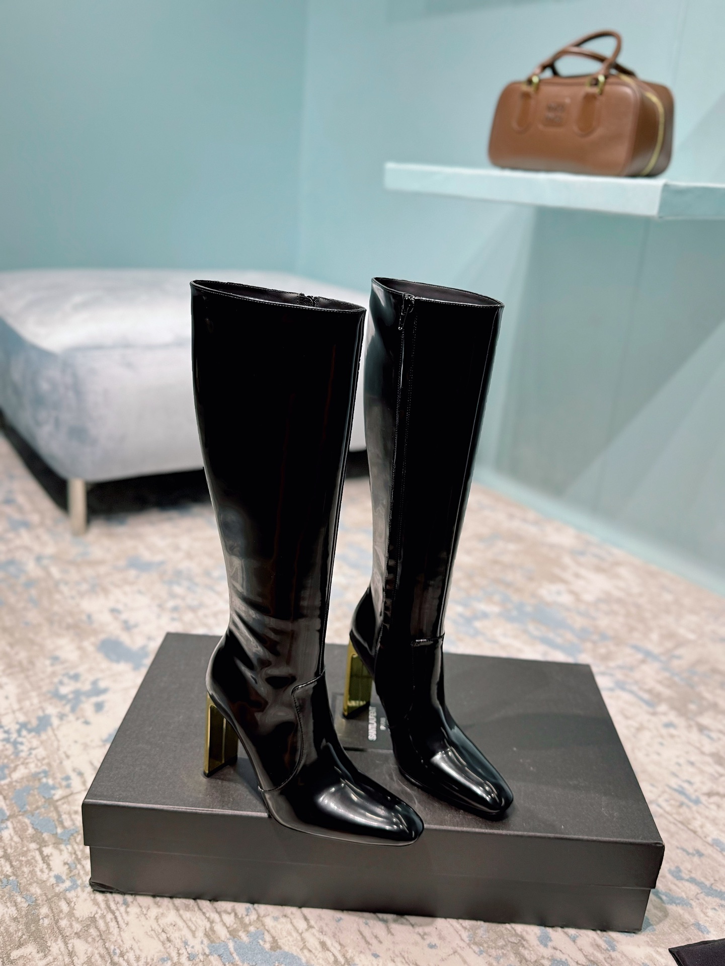 NIGO Saint Laurent Women's Autumn/Winter Leather Square Toe High Boots Solid Color Zipper Retro Chunky Heel High Heels Heel Height 11cm #nigo81491