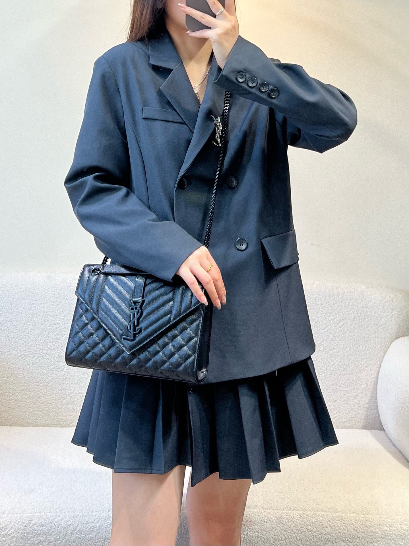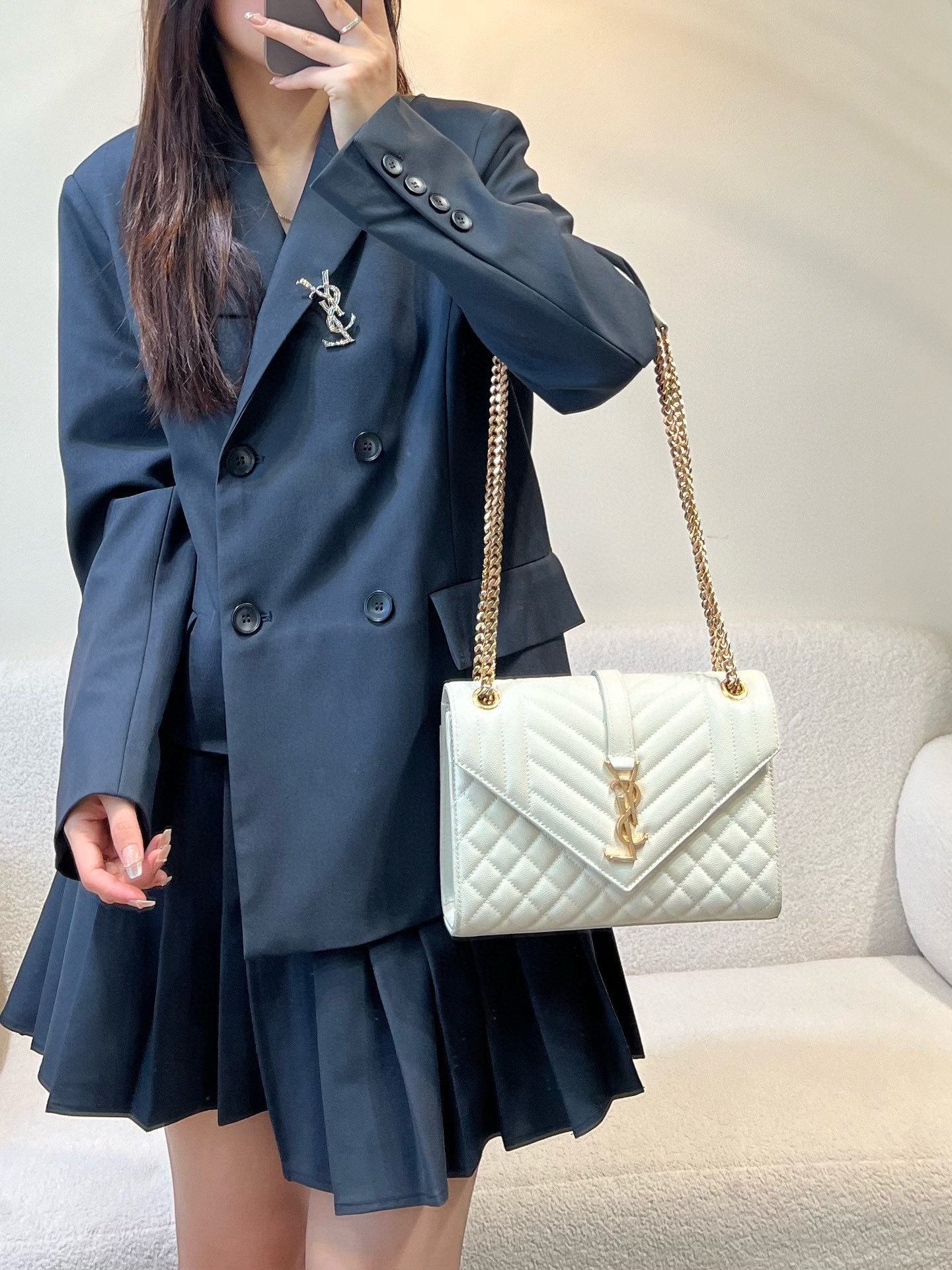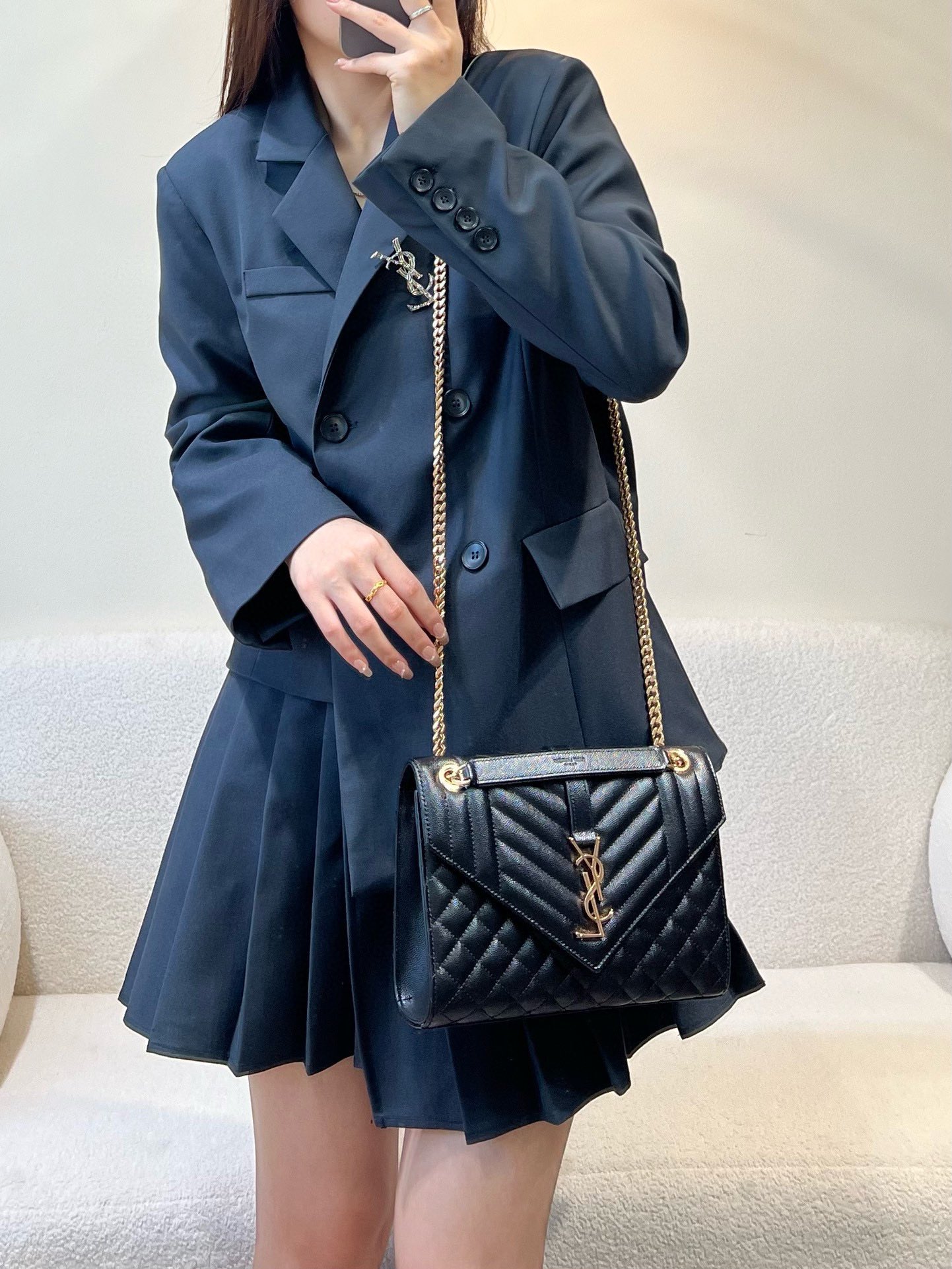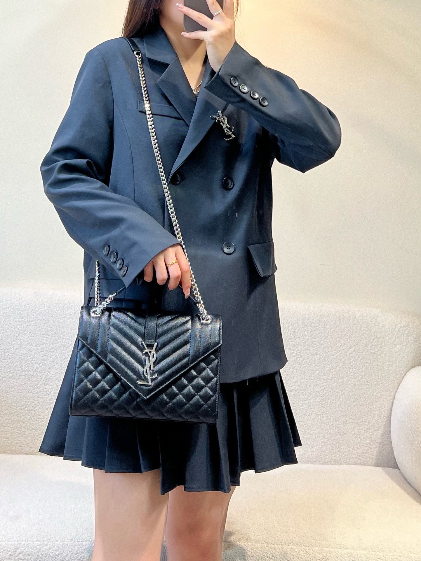 This Saint Laurent handbag showcases the brand's exceptional craftsmanship and attention to detail. this piece combines timeless luxury with modern style.
