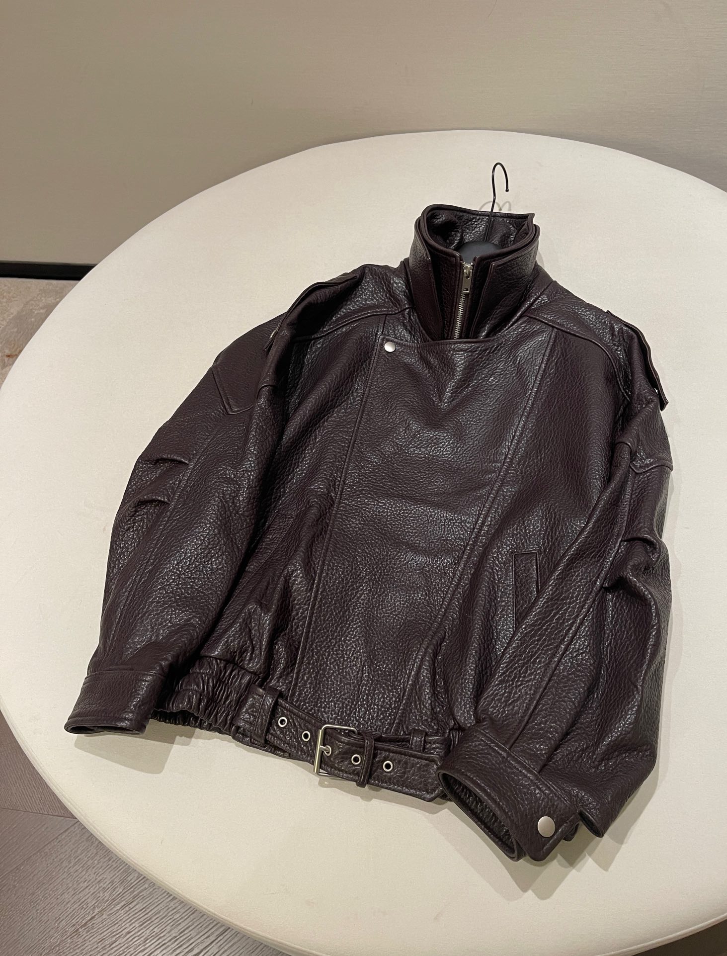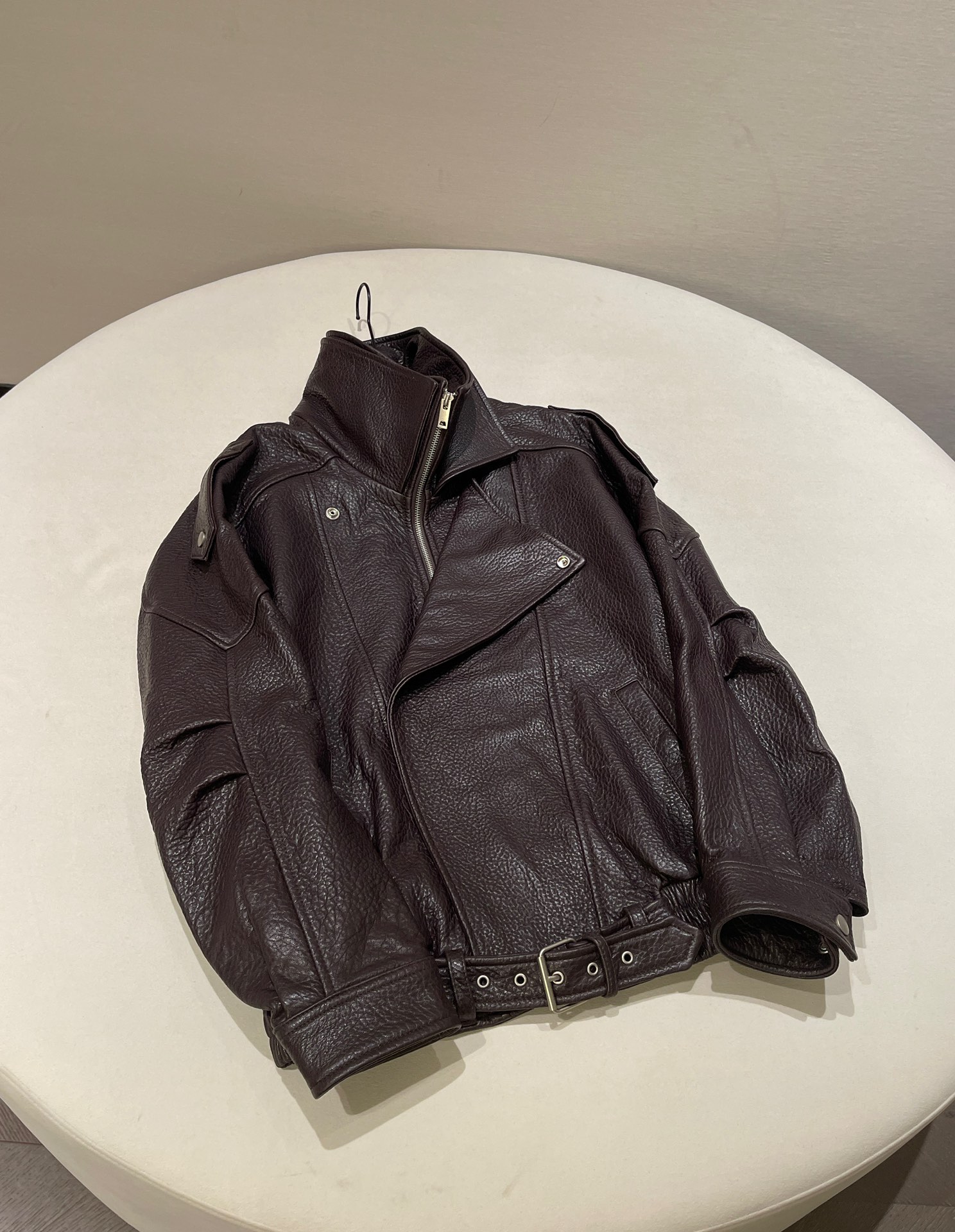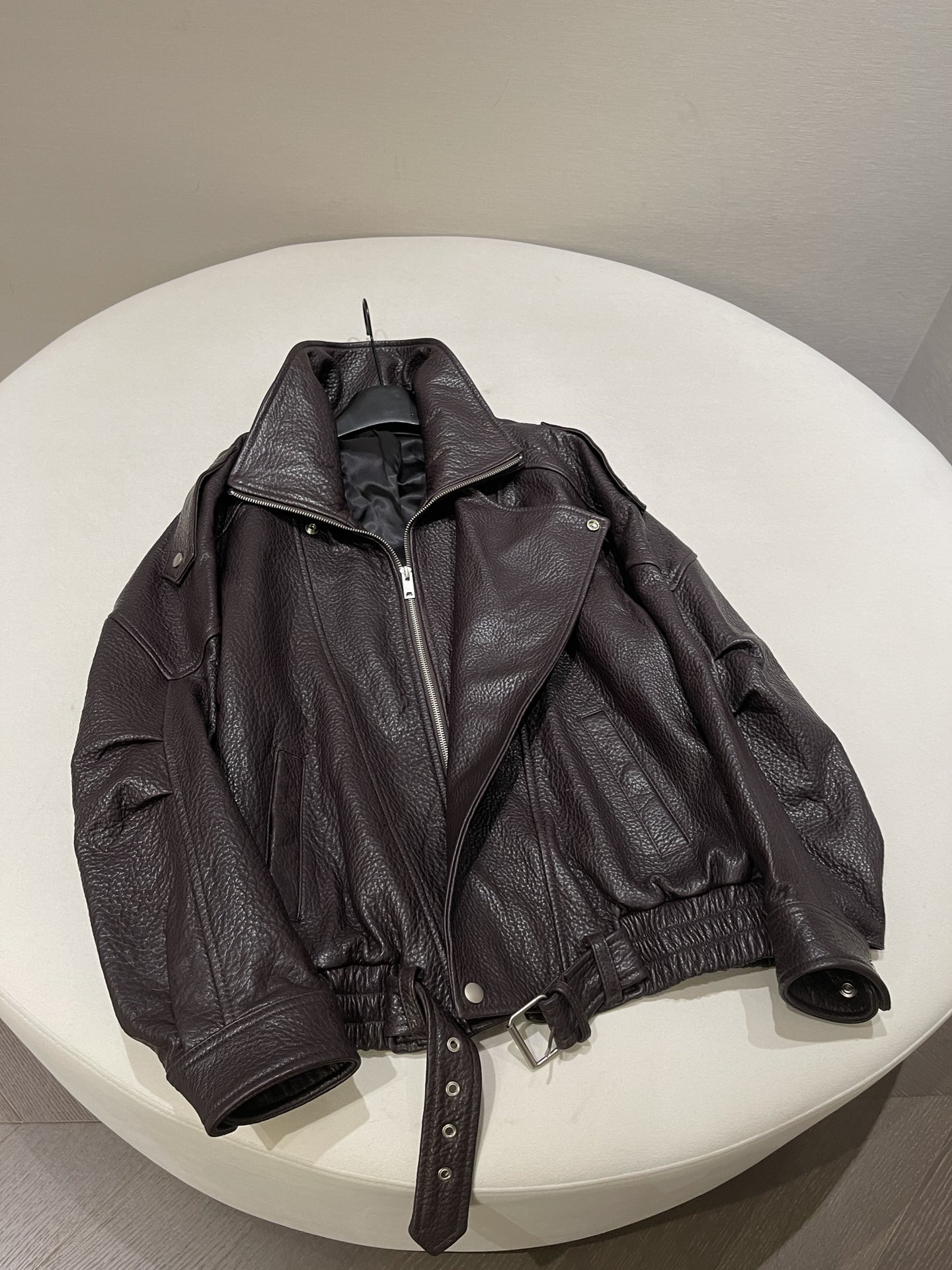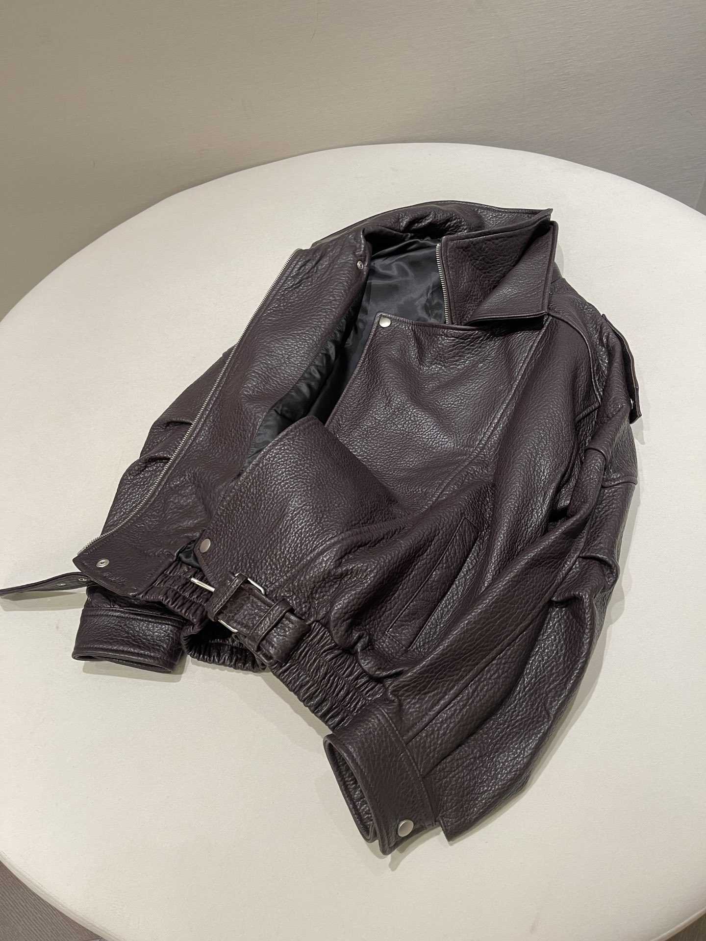 NIGO SAINT LAURENT Women's Spring, Autumn And Winter Retro Solid Color Lapel Zipper Long Sleeve Sheepskin Genuine Leather Motorcycle Jacket Ngvp #nigo9288