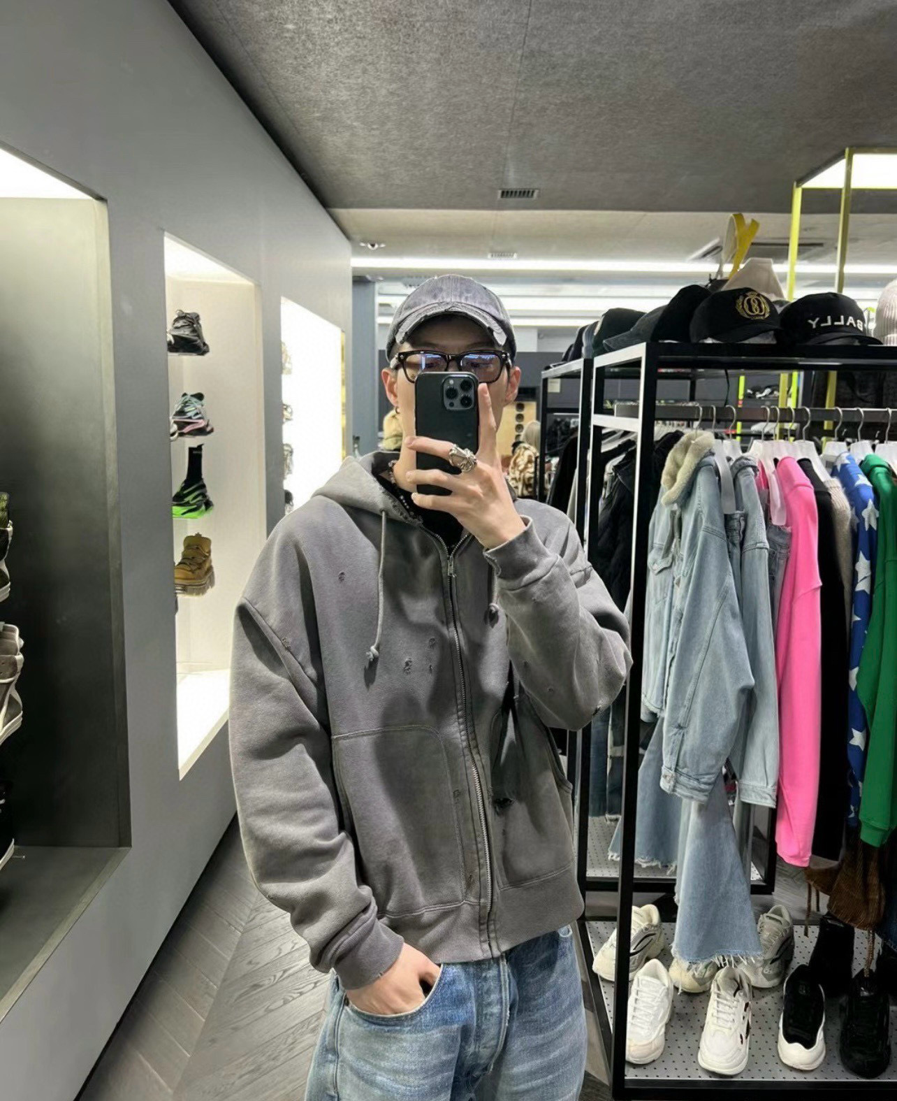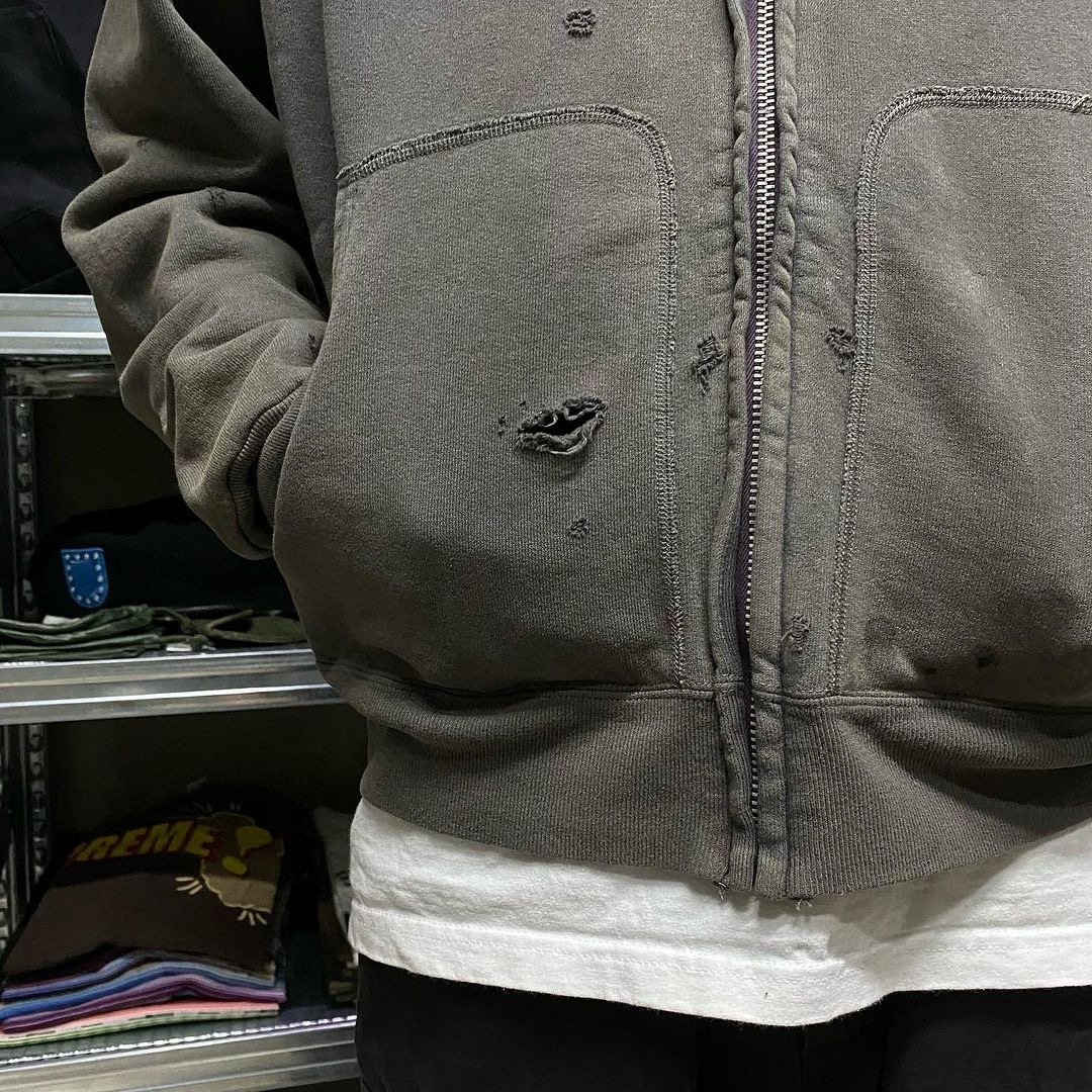 NIGO Saint Michael Men's Spring And Autumn Cotton Multi-Pocket Zipper Casual Long Sleeve Solid Color Destruction Washed Hooded Sweatshirt Ngvp #nigo7942