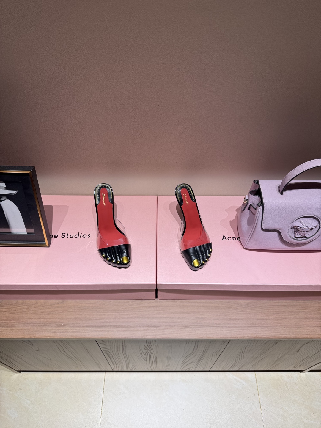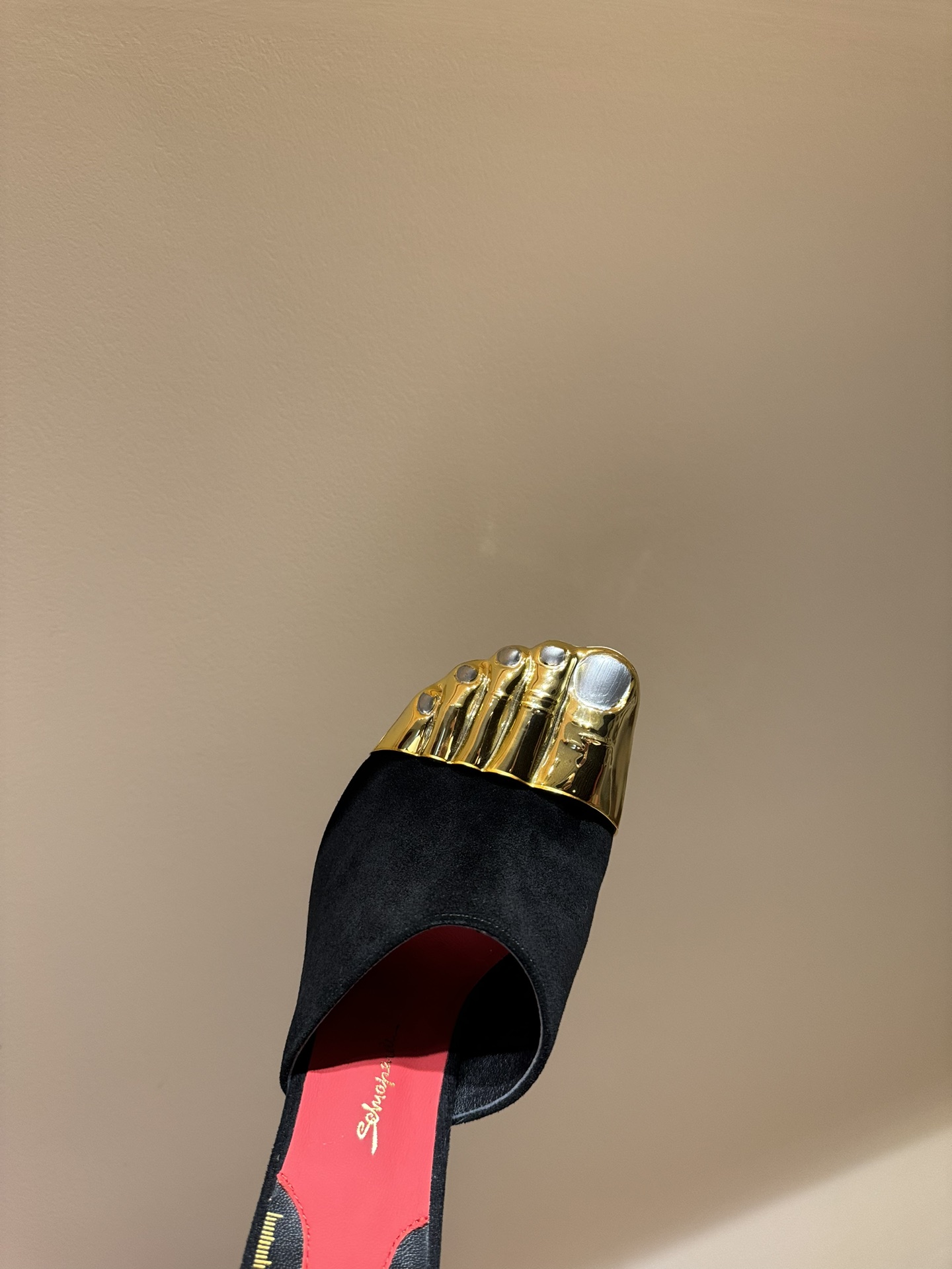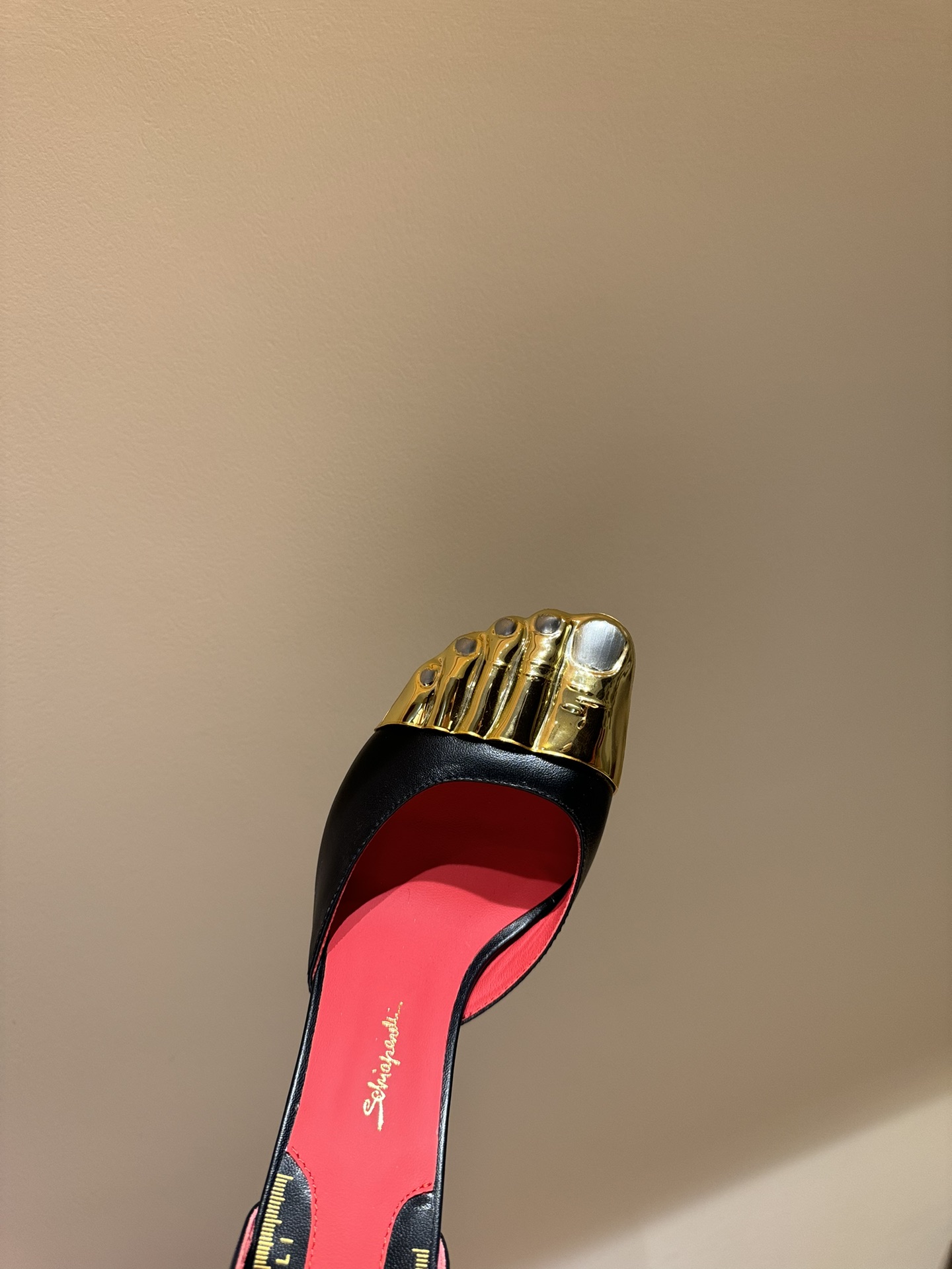 NIGO Schiaparelli Women's Retro Metal Toe Sandals Solid Color Leather Fashion High Heels Casual Shoes Ngvp #nigo1516