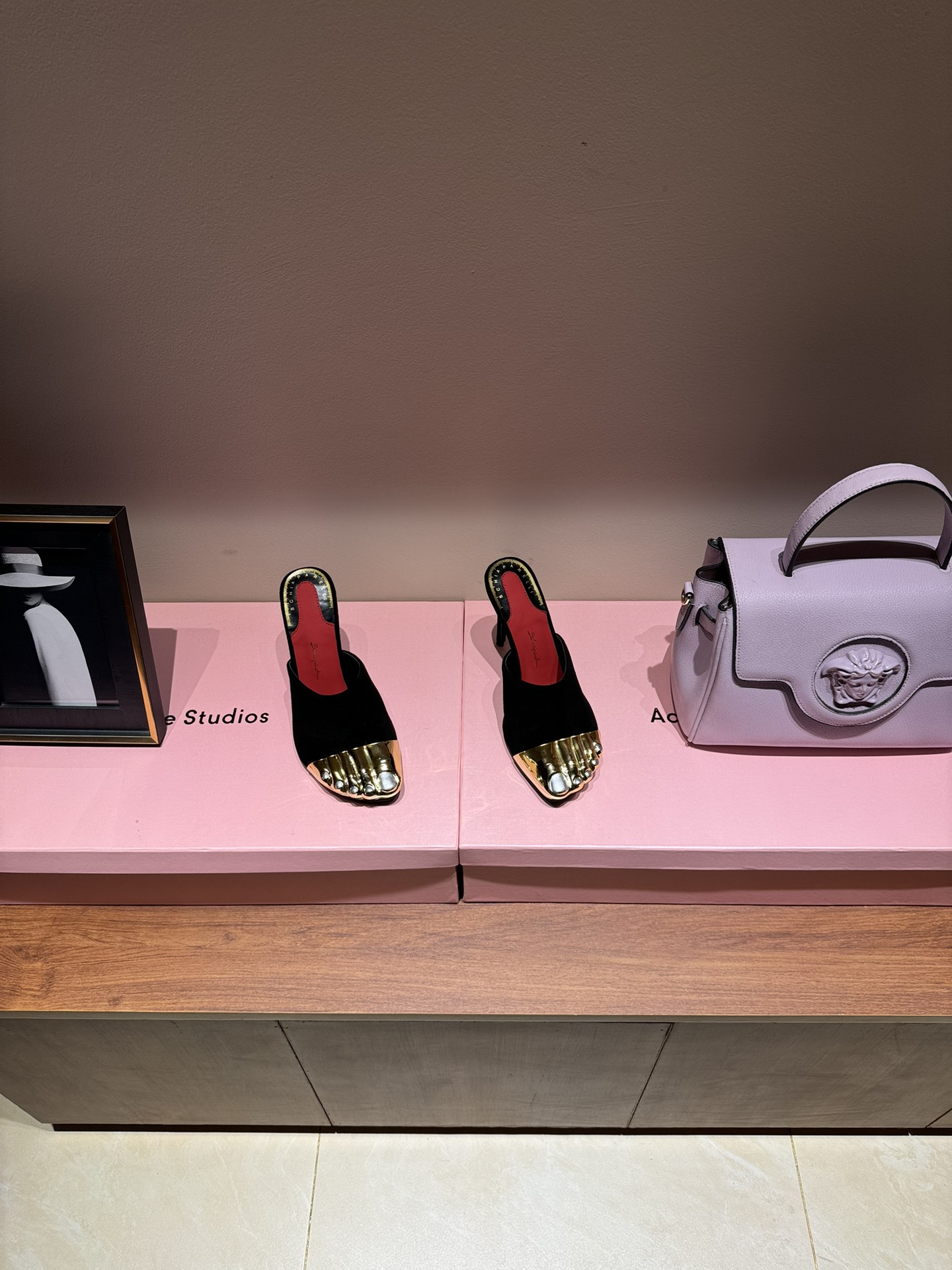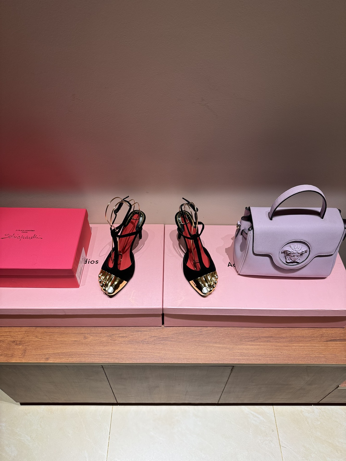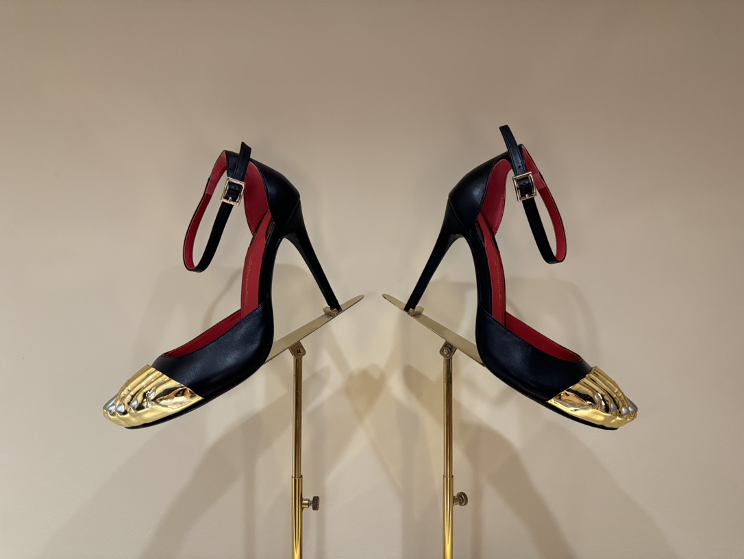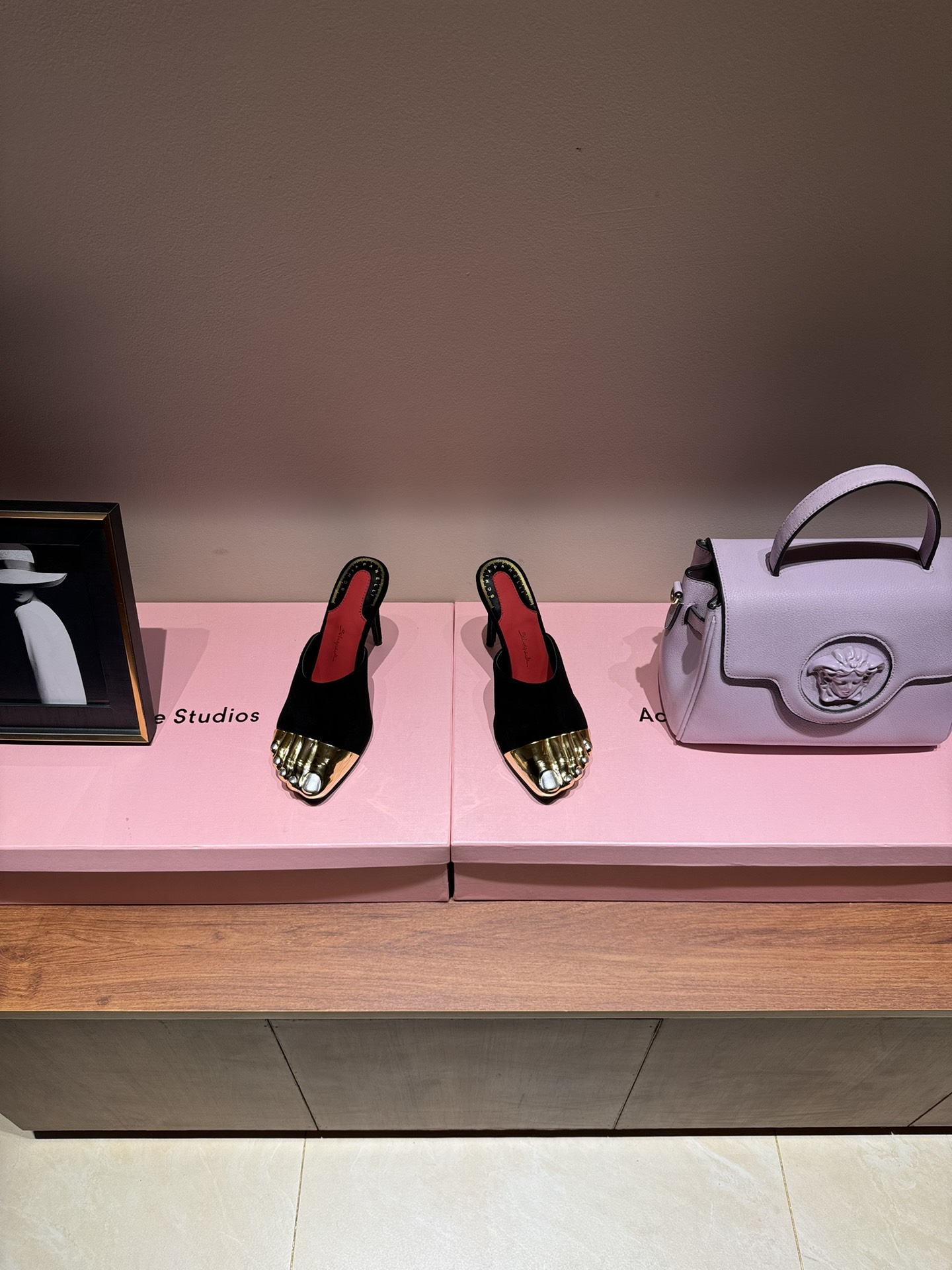 NIGO Schiaparelli Women's Retro Metal Toe Sandals Solid Color Leather Fashion High Heels Casual Shoes Ngvp #nigo1516