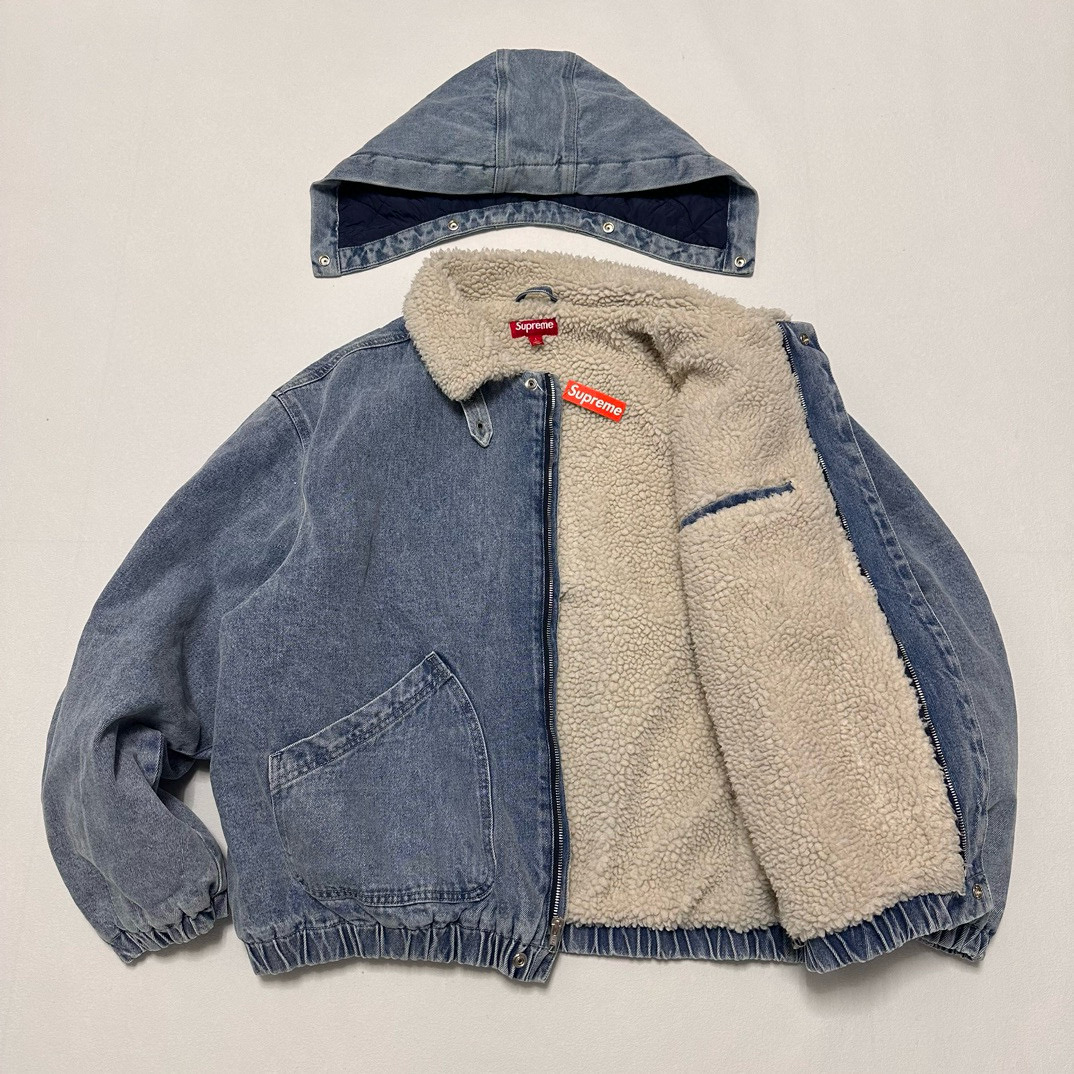 NIGO Supreme Men's And Women's Fall And Winter Solid Color Removable Hood Lamb's Wool Lining Long Sleeved Denim Jacket #nigo74563
