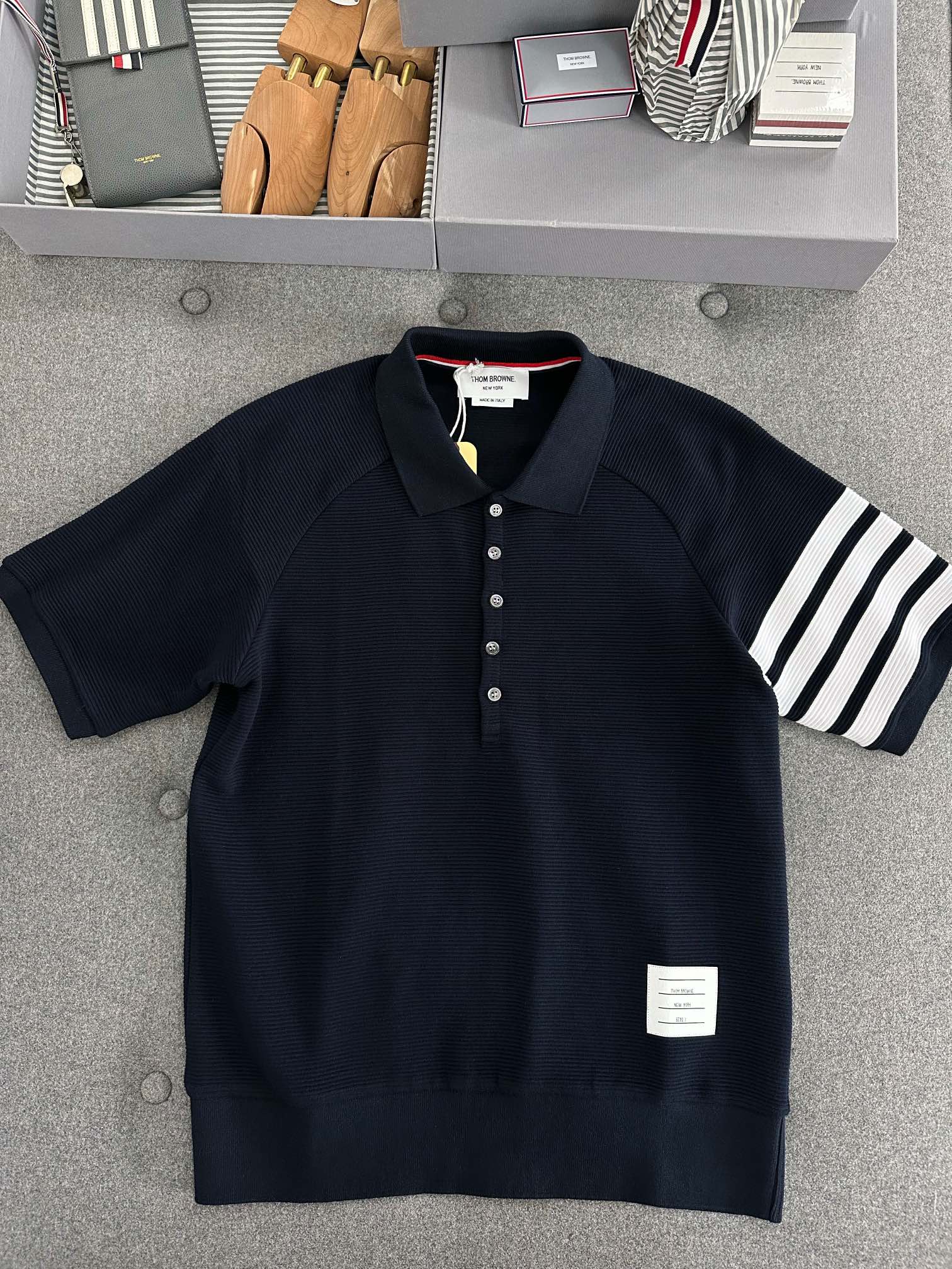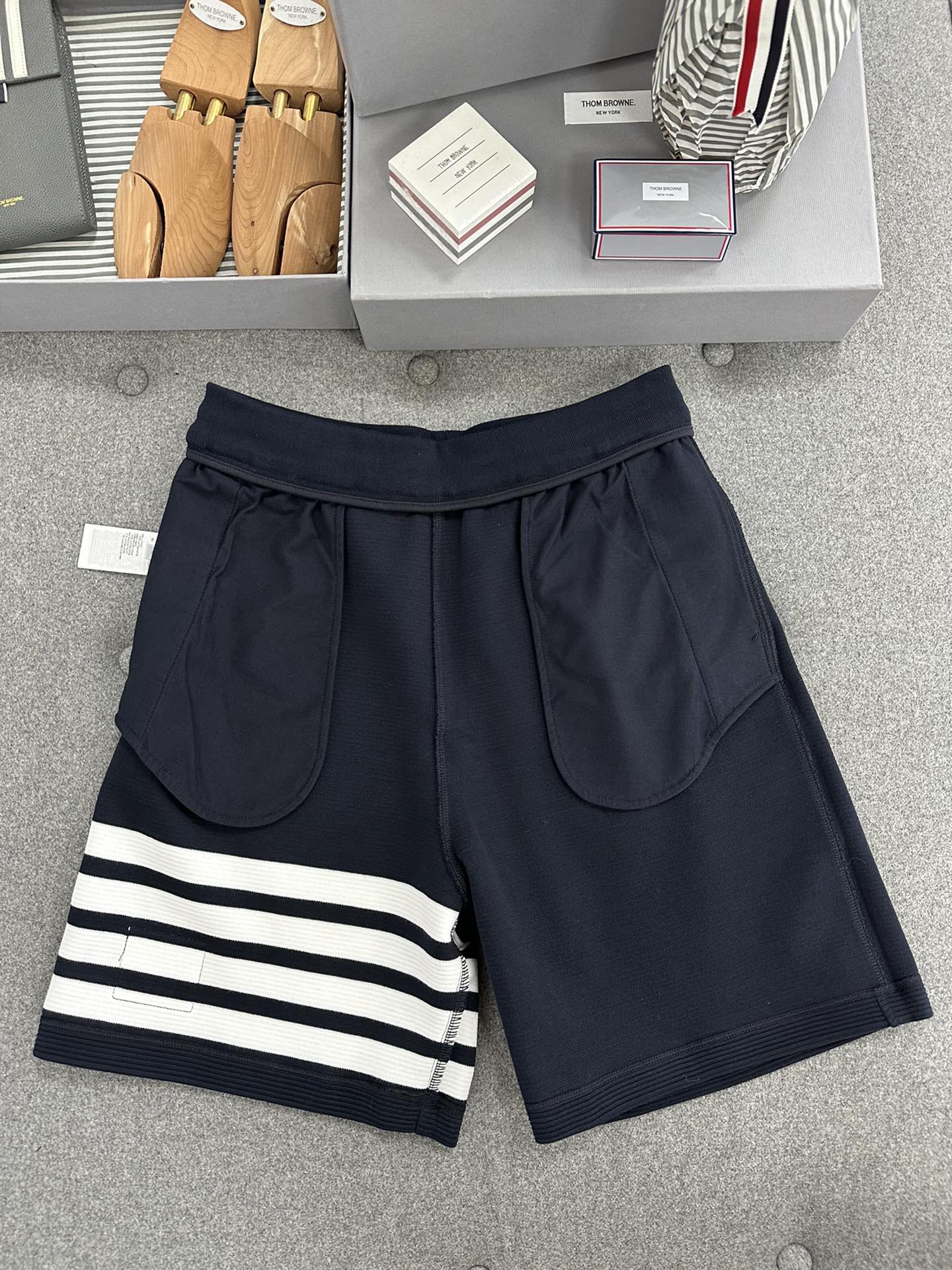 NIGO Thom Browne Men's Summer Lapel Straight Polo Short Sleeve Shirt Solid Color Casual Striped Elastic Waist Tie Sports Shorts Ngvp #nigo1942