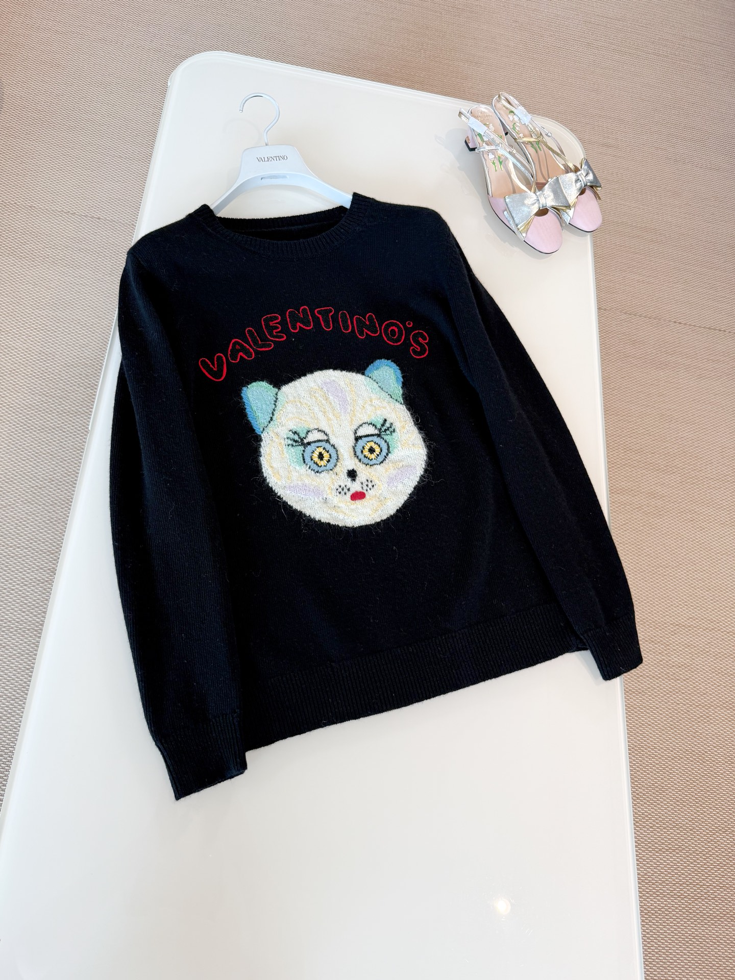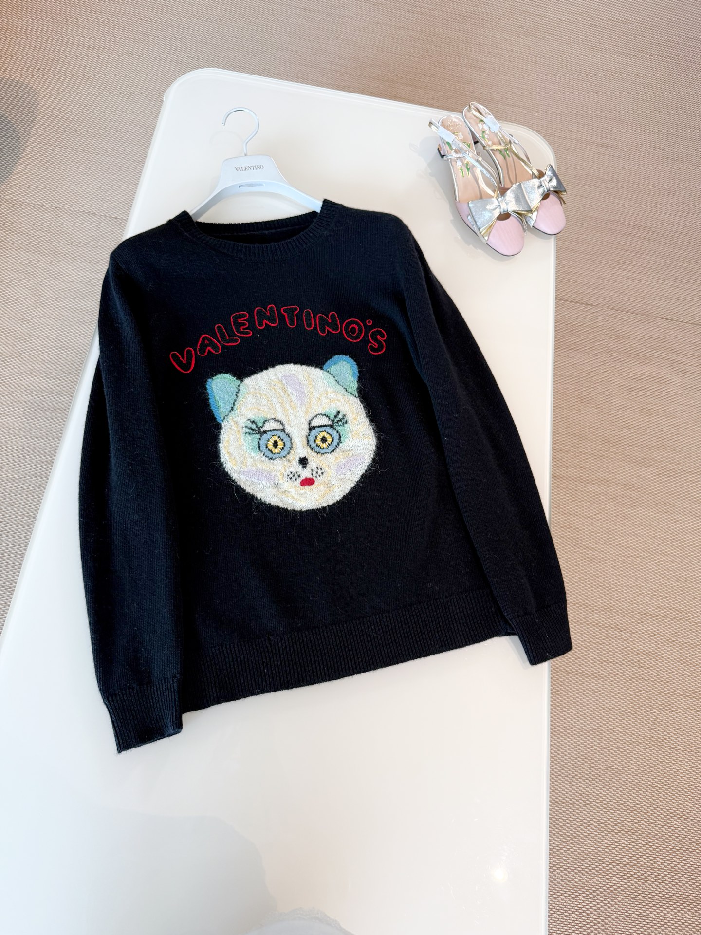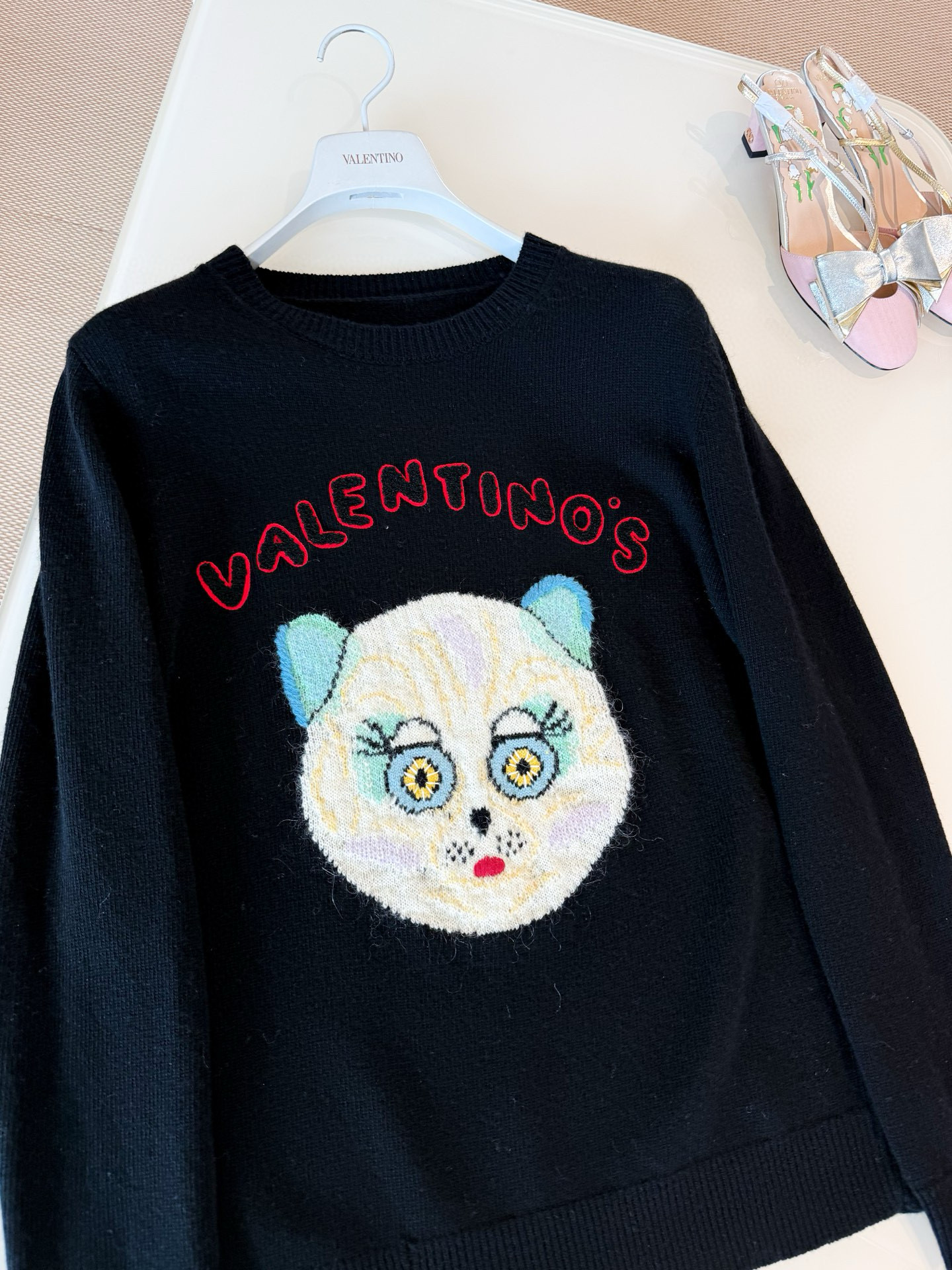 NIGO Valentino Men's Le Chat De La Maison Wool Logo Cat Embroidered Solid Color Crew Neck Long Sleeve Knit Sweater #nigo81754