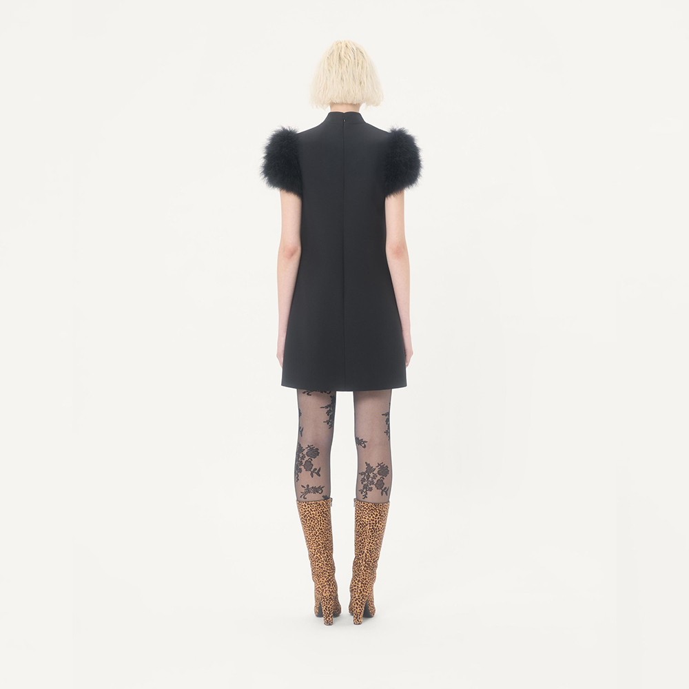 NIGO Valentino Short Crepe Couture Dress Feathers Woman Black #nigo333699