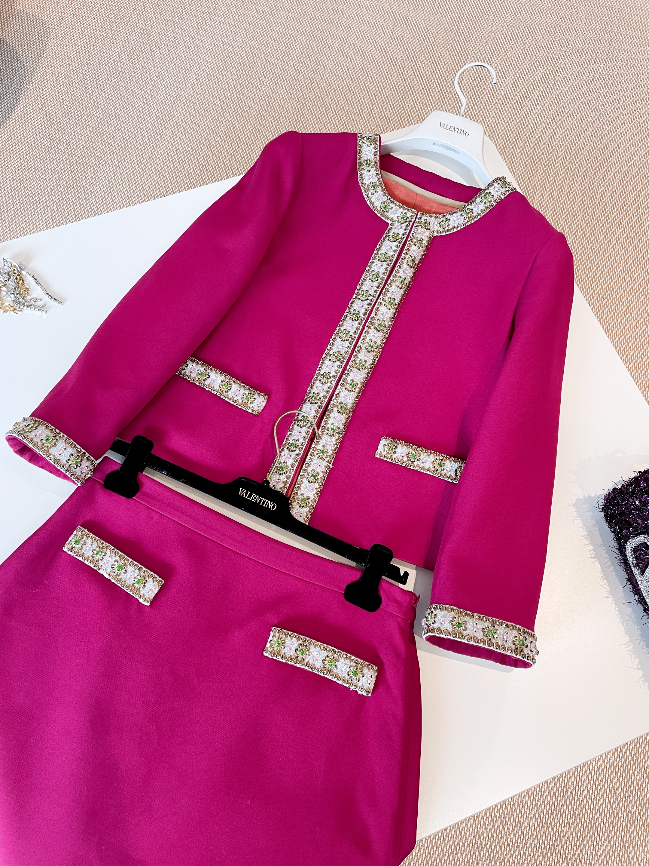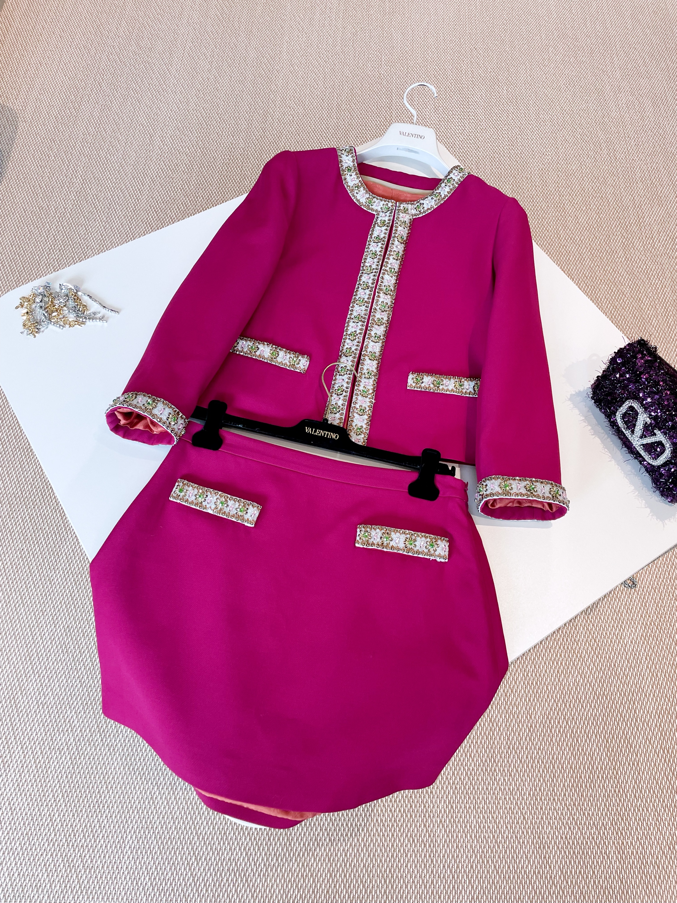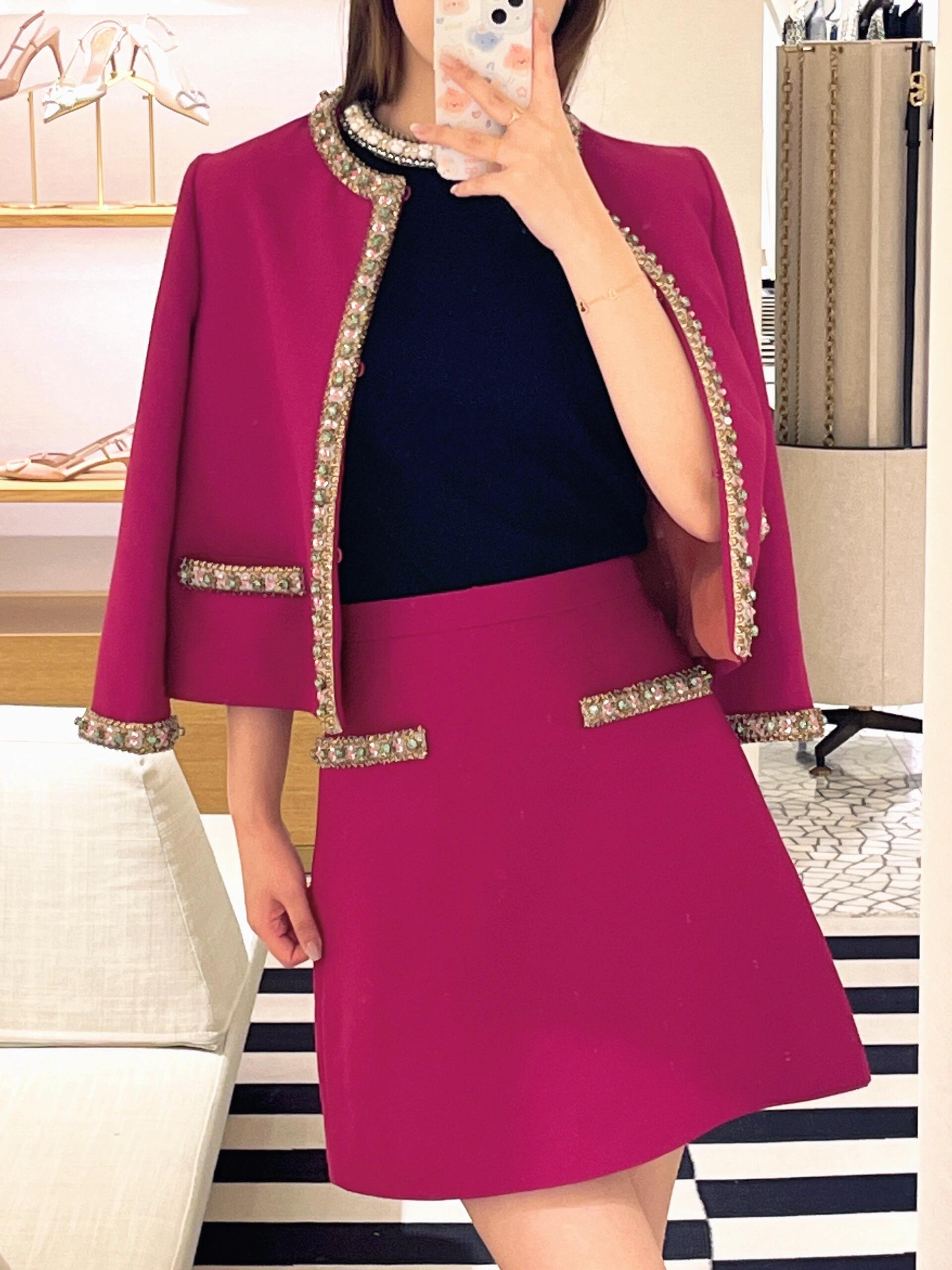 NIGO Valentino Women's Autumn Solid Color Silk Wool Rhinestone Embroidery Round Neck Knit Jacket Casual Mid Waist Loose Half Skirt Ngvp #nigo1253
