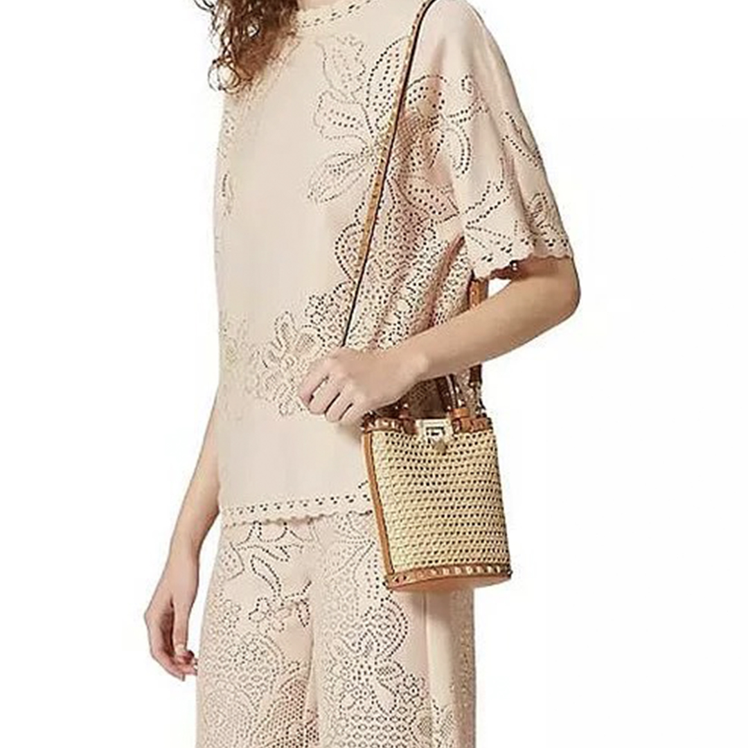 NIGO Valentino Women's Four Seasons Raffia Leather Crossbody Bag Rivet Colorblocking Casual Handbag Ngvp #nigo8316