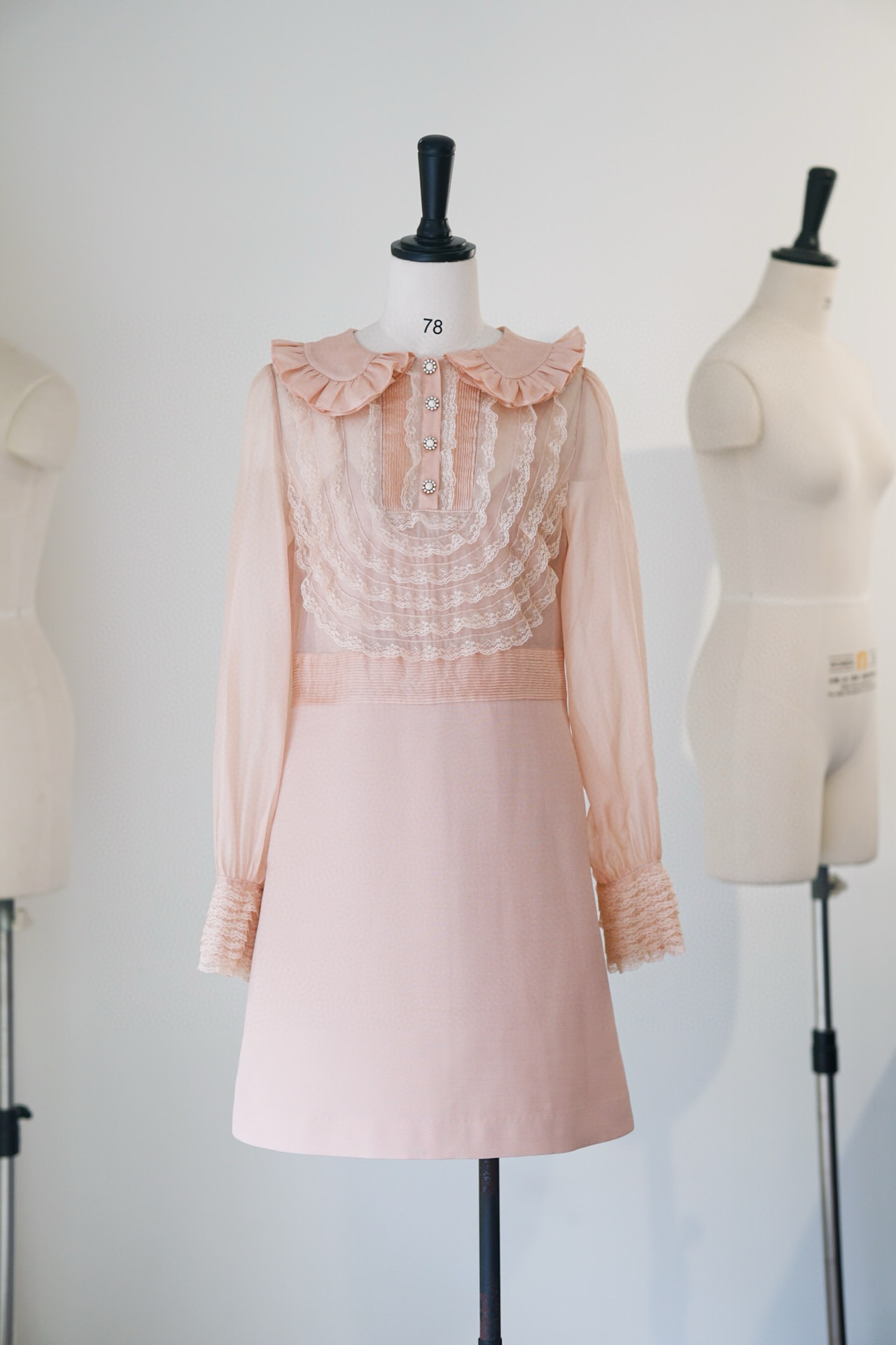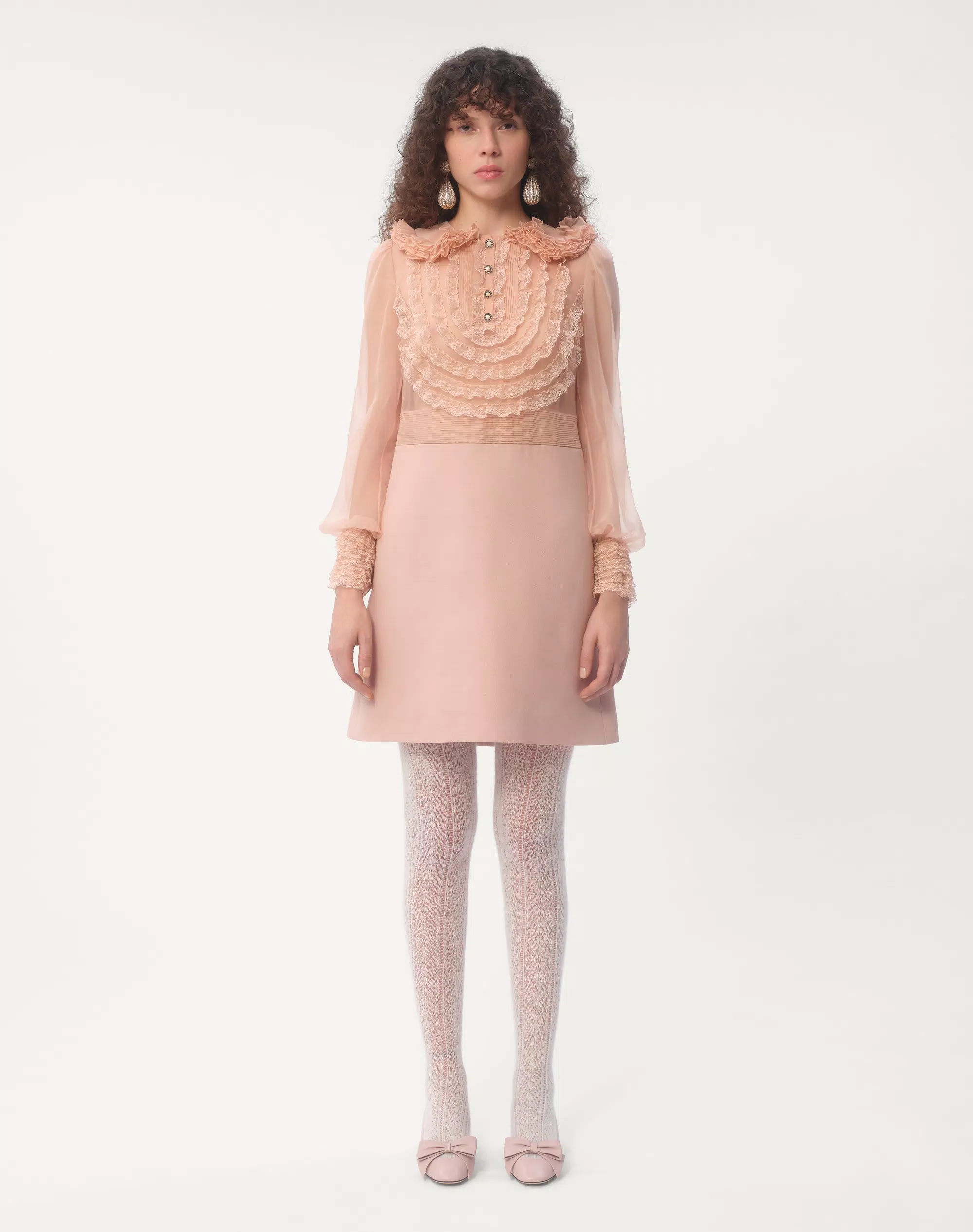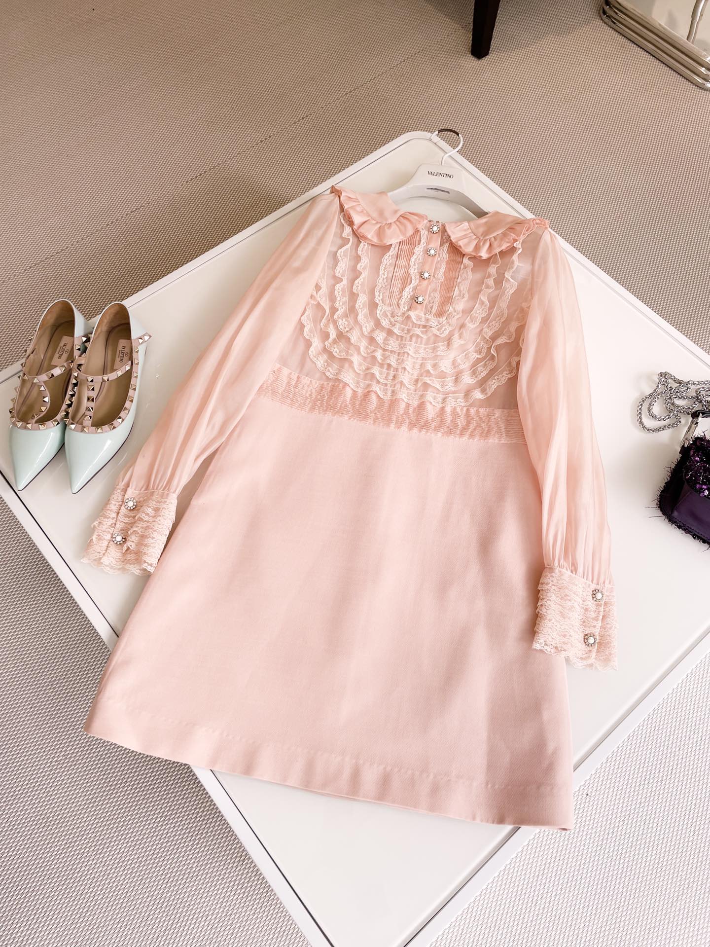 NIGO Valentino Women's Spring And Summer Embroidered Crepe Couture Round Neck Solid Color Lace A-Line Short Long-Sleeved Silk Dresses Ngvp #nigo9815