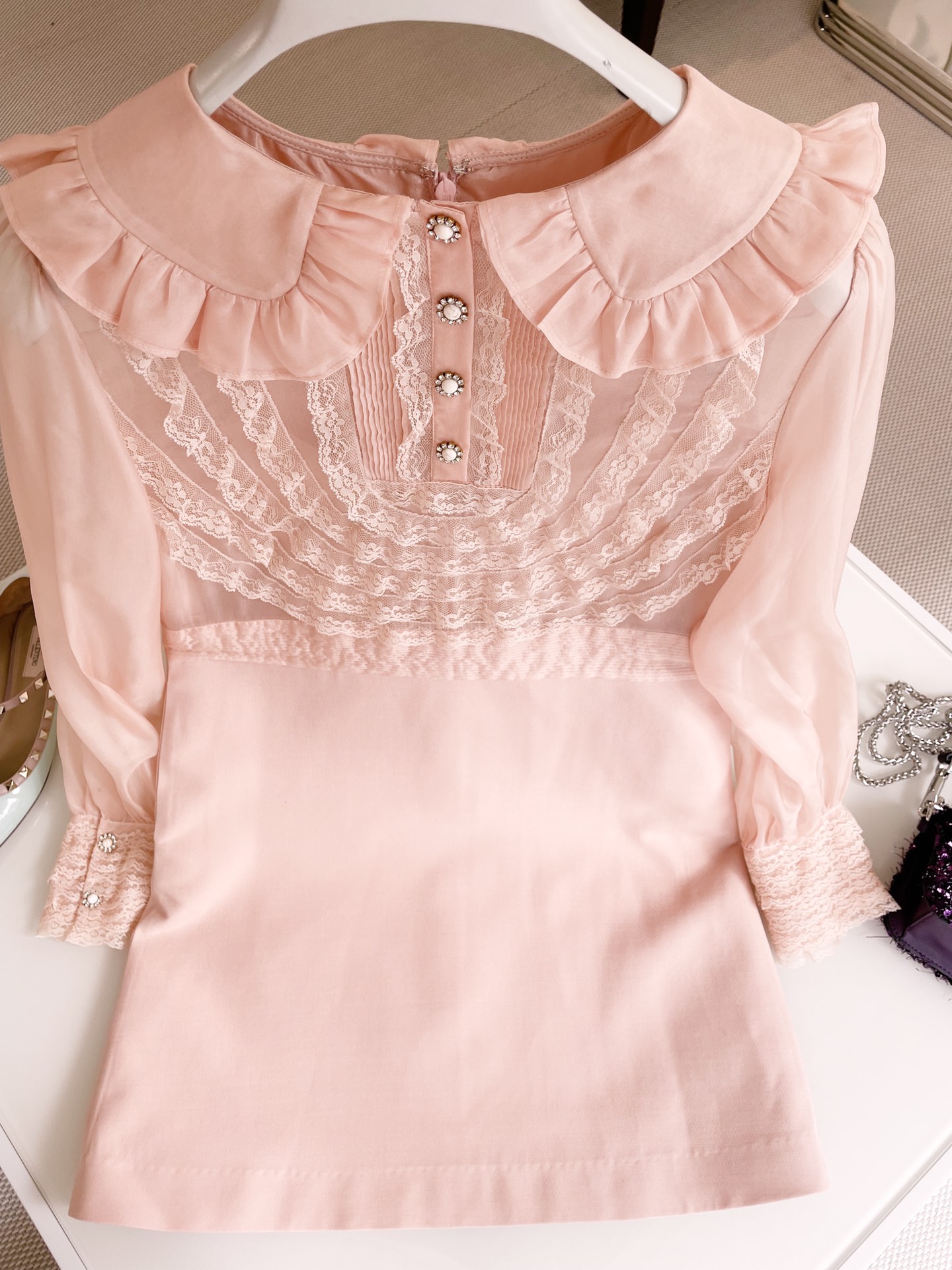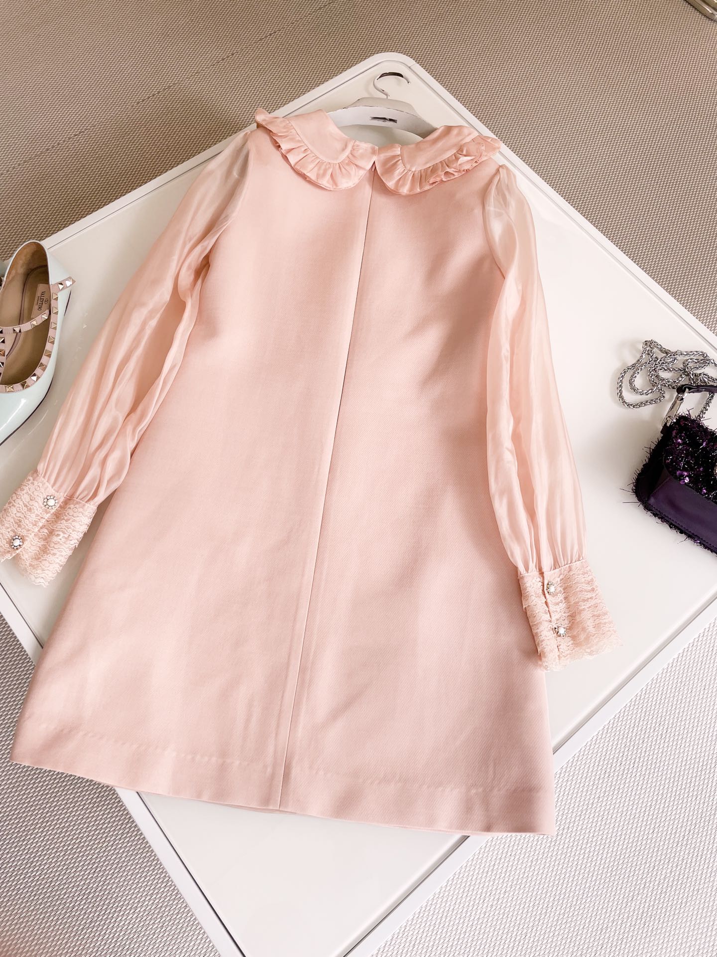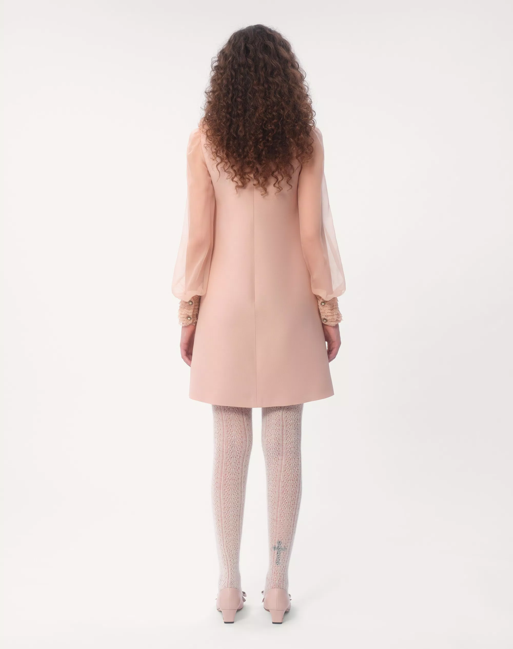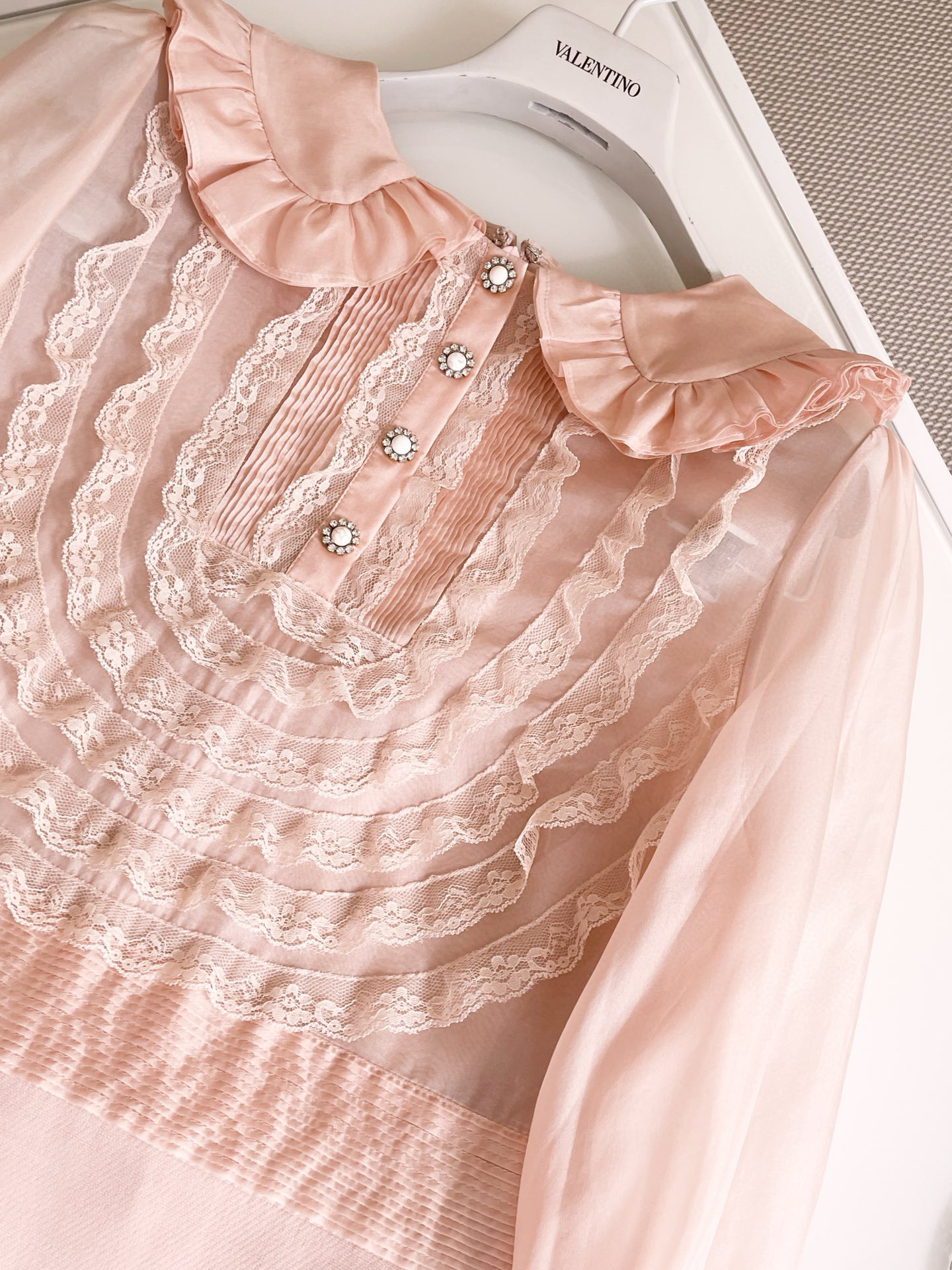 NIGO Valentino Women's Spring And Summer Embroidered Crepe Couture Round Neck Solid Color Lace A-Line Short Long-Sleeved Silk Dresses Ngvp #nigo9815