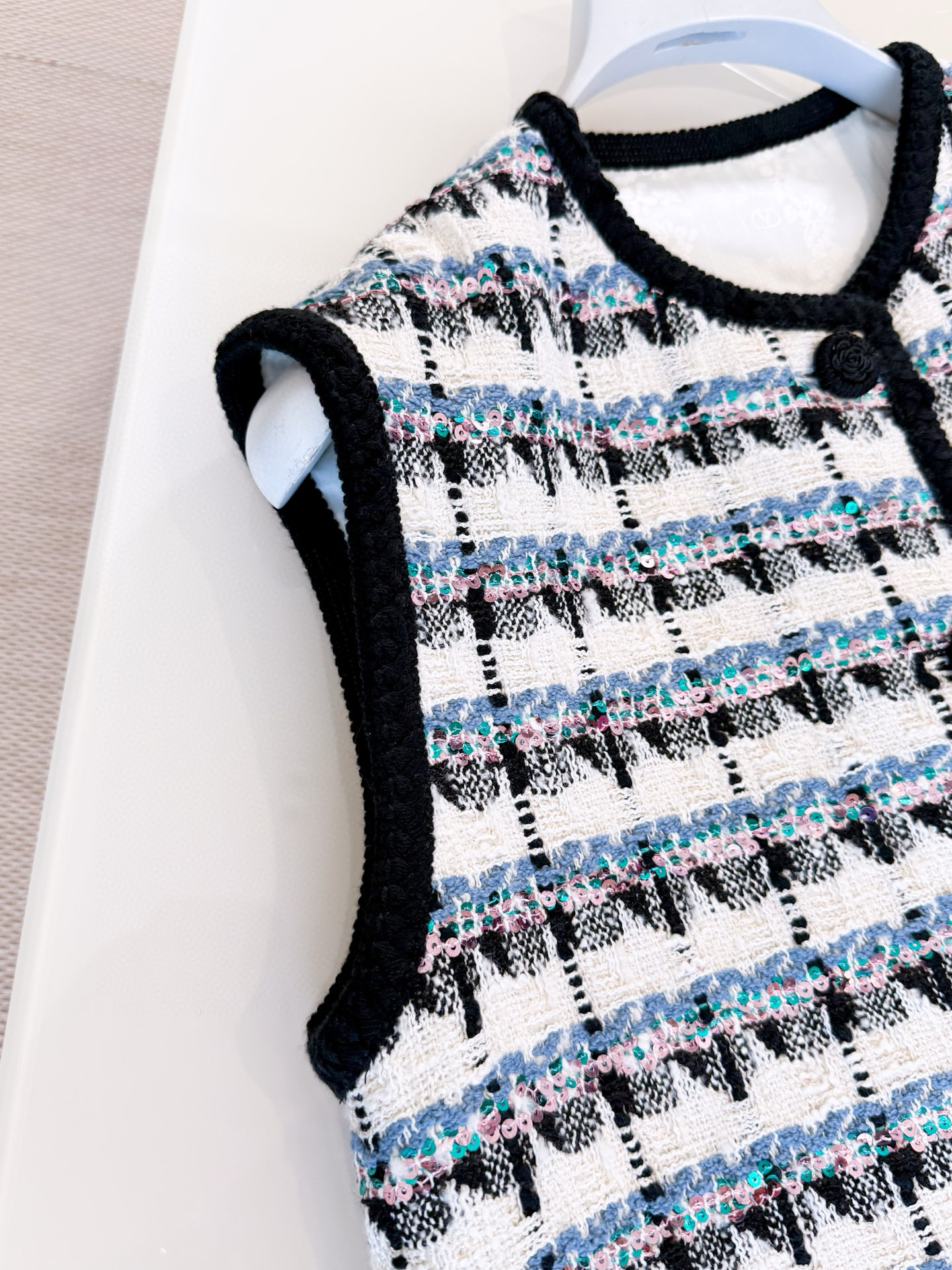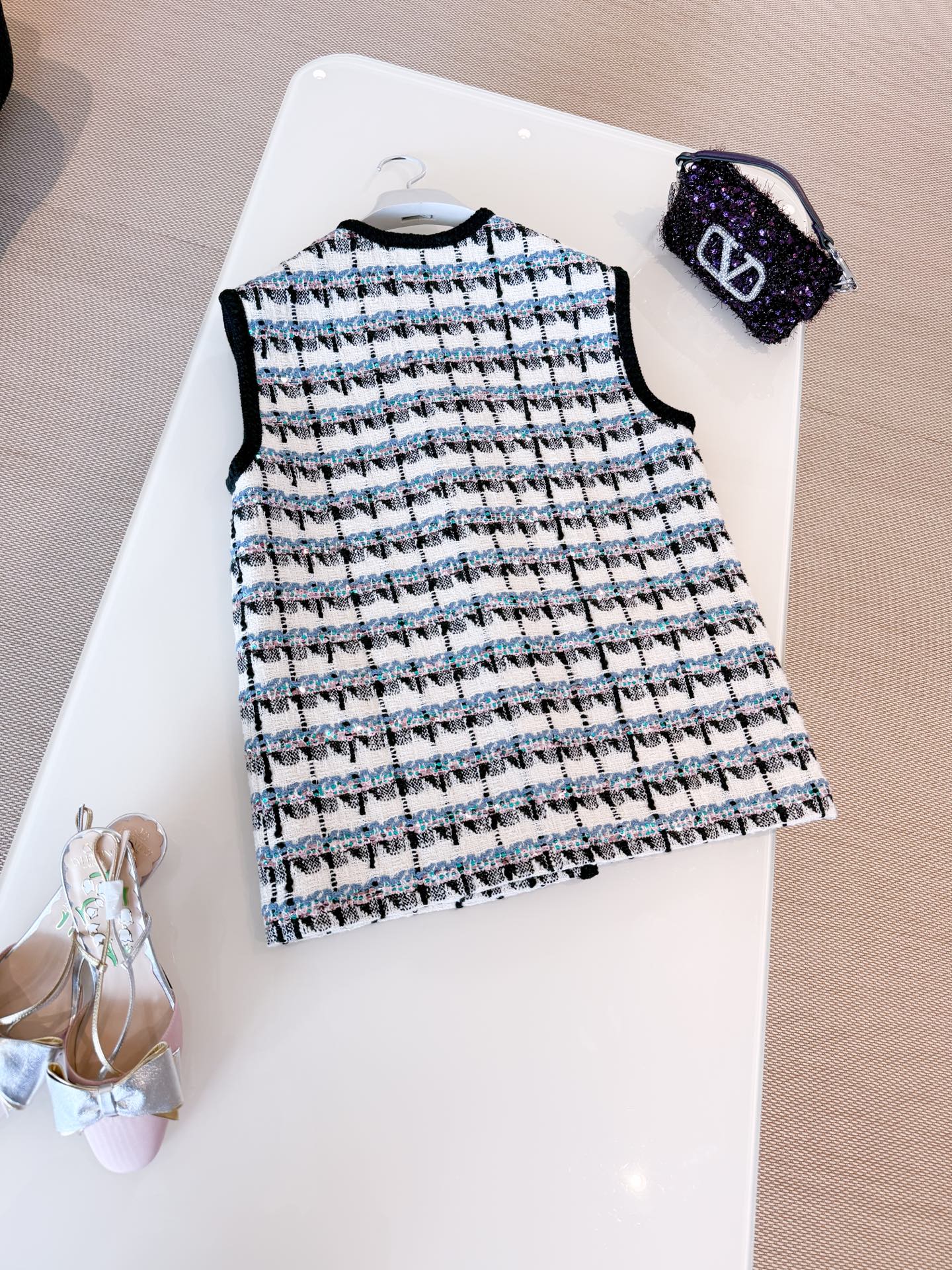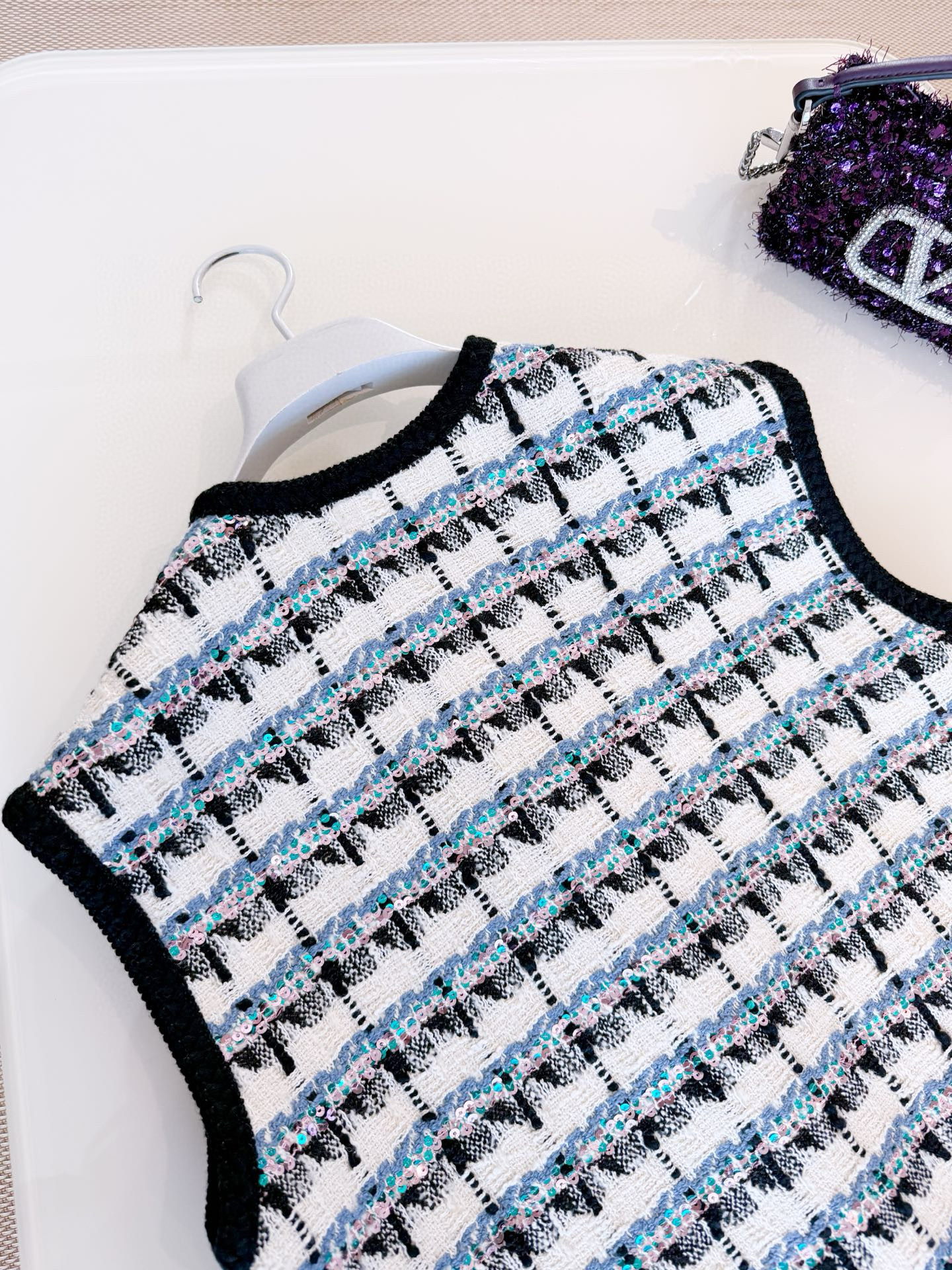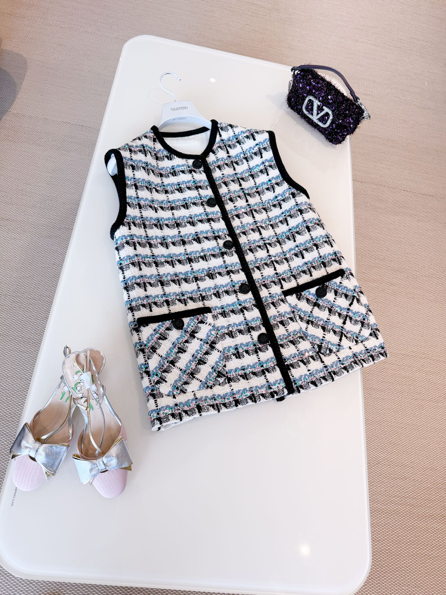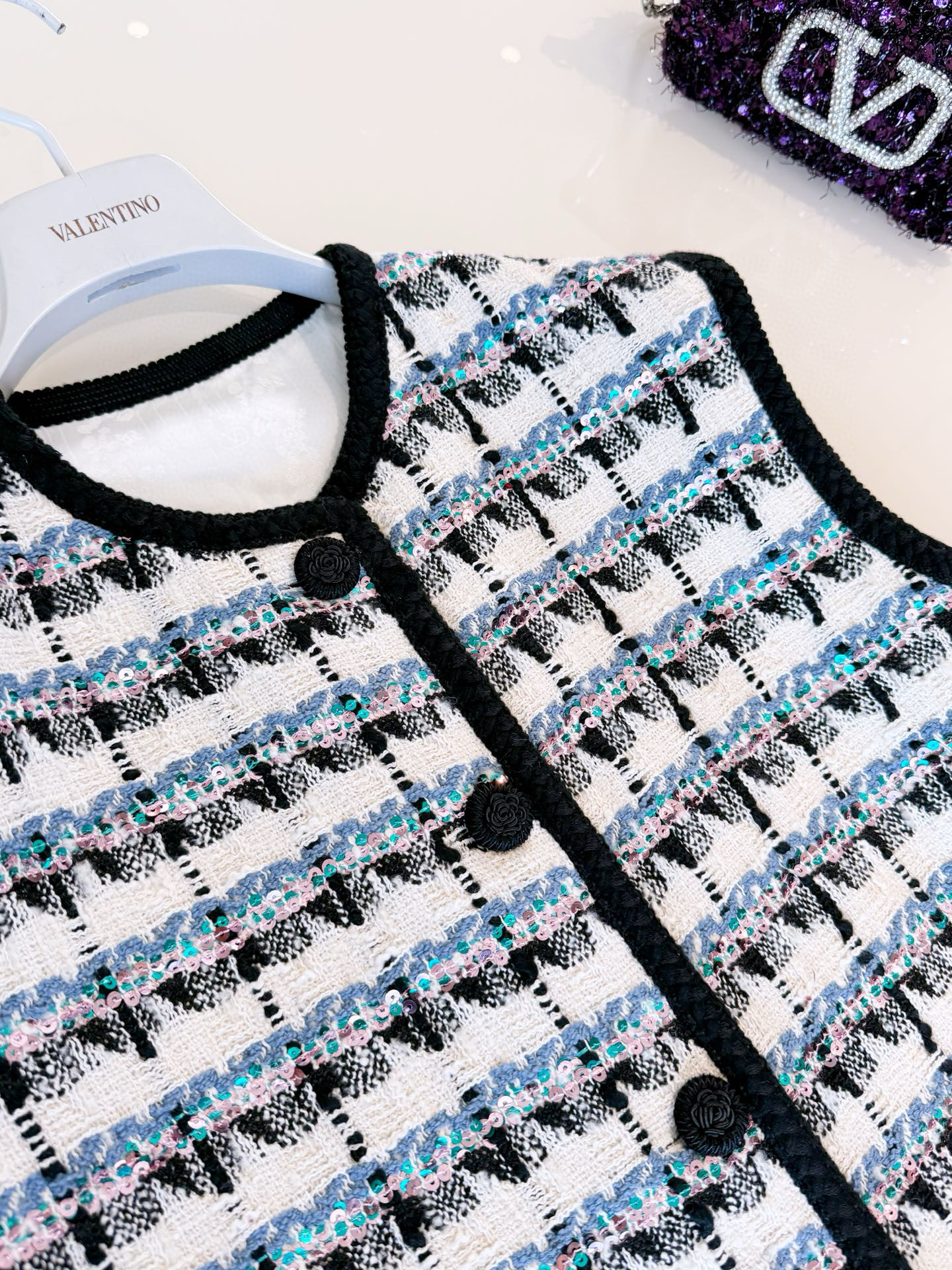NIGO Valentino Women's Spring And Winter Tweed Sequins Check Pattern Solid Color Round Neck Single-Breasted Cotton Wool Blend Sleeveless Pocket Vest Ngvp #nigo2111
