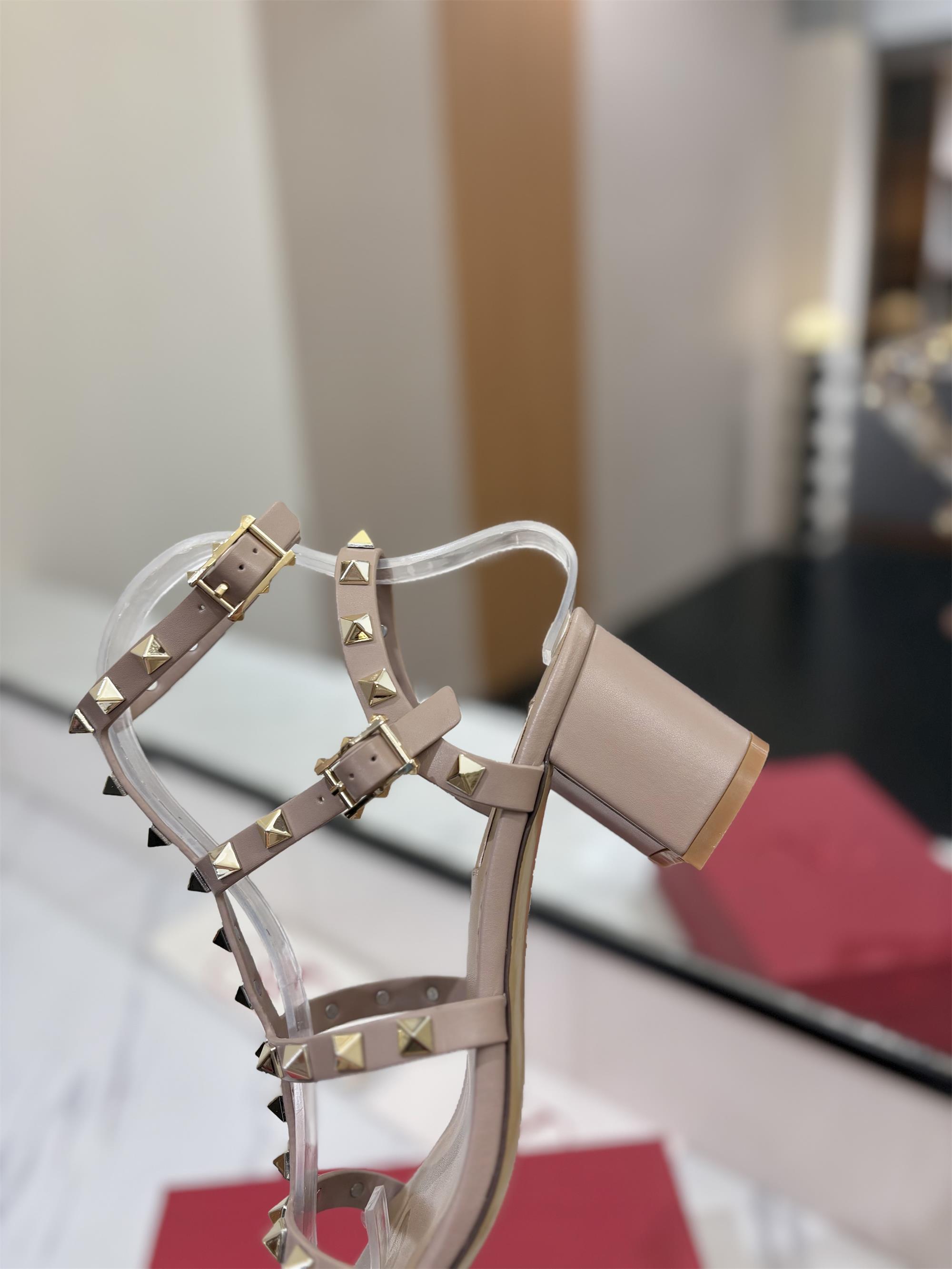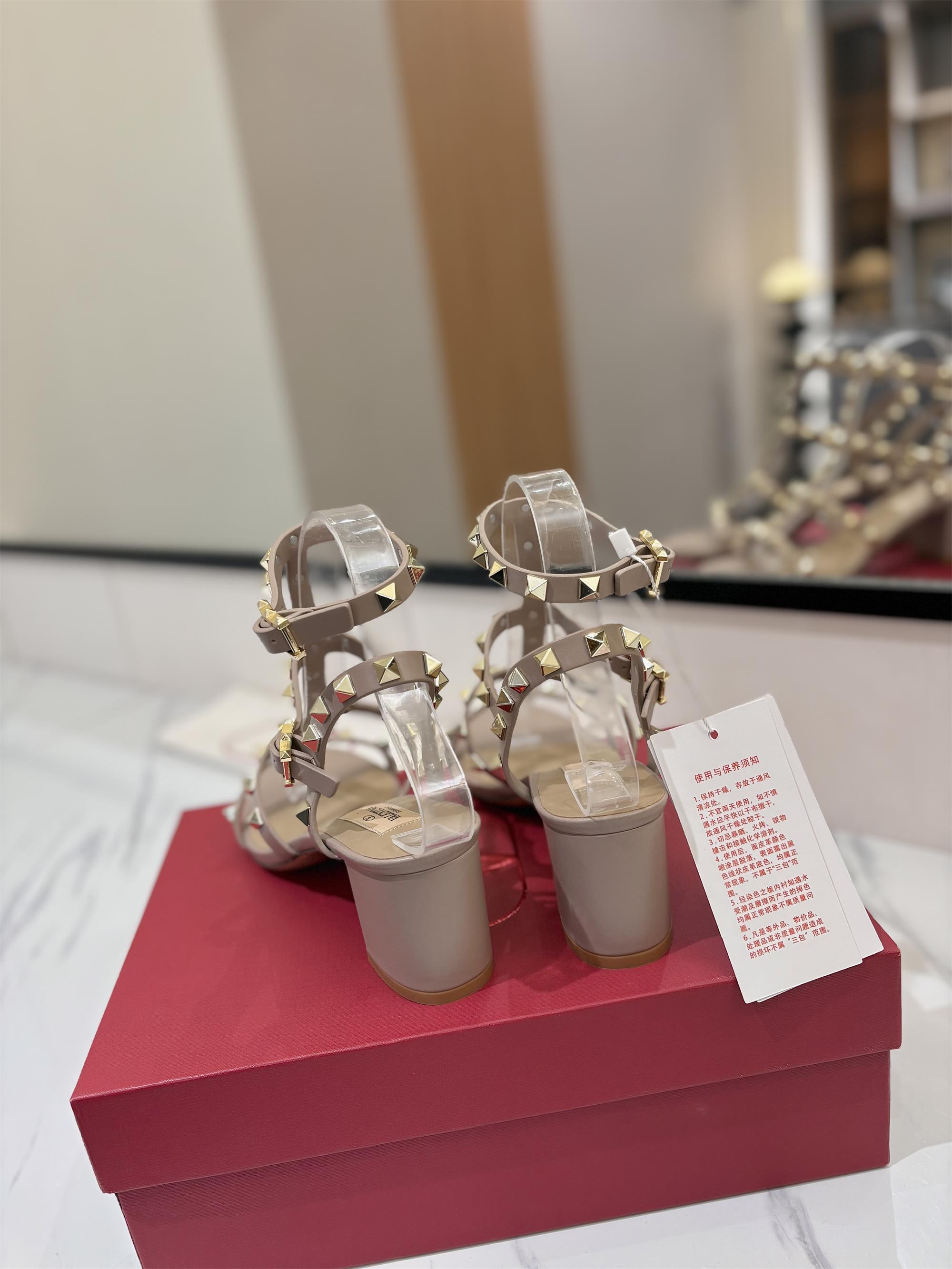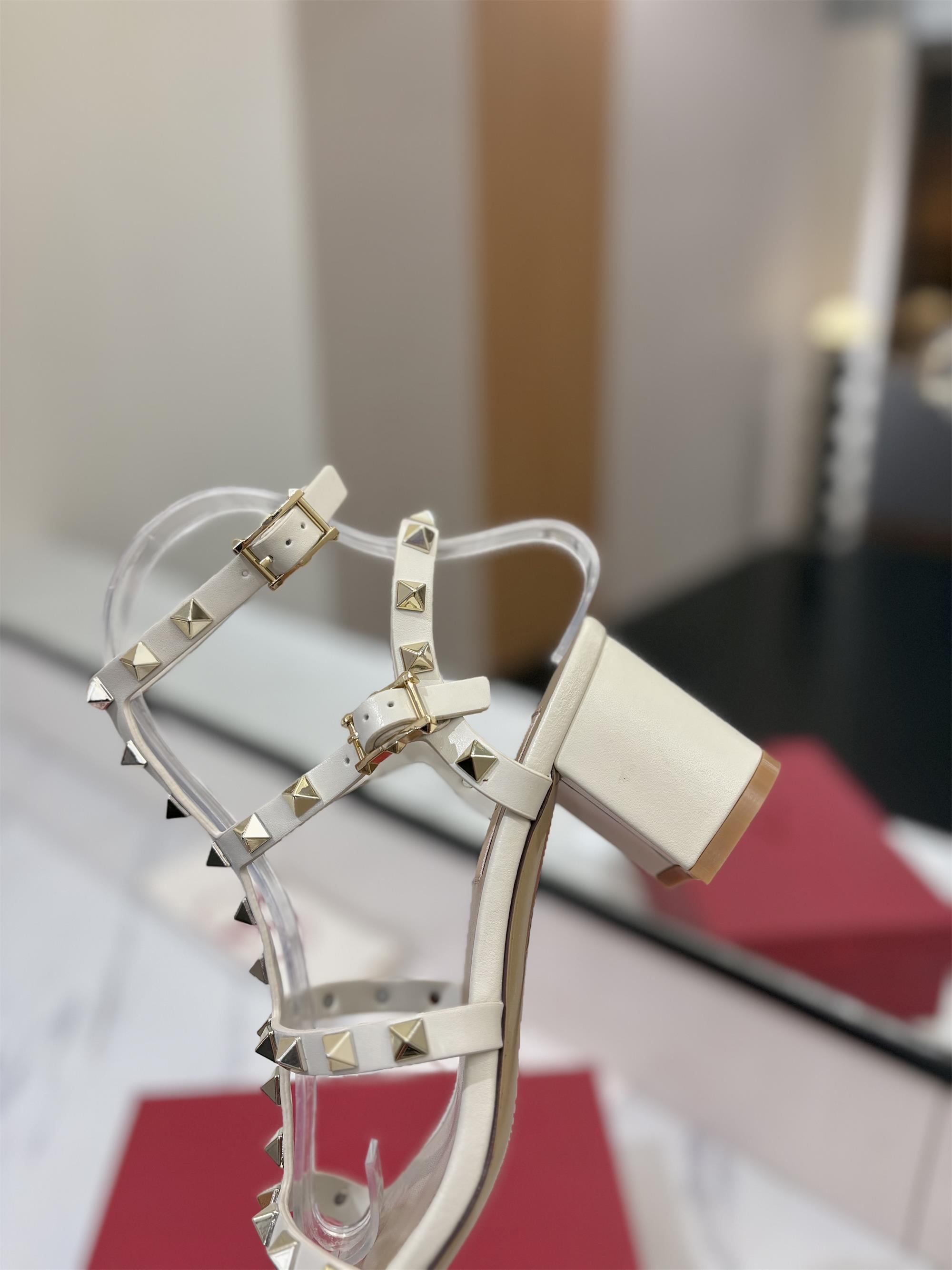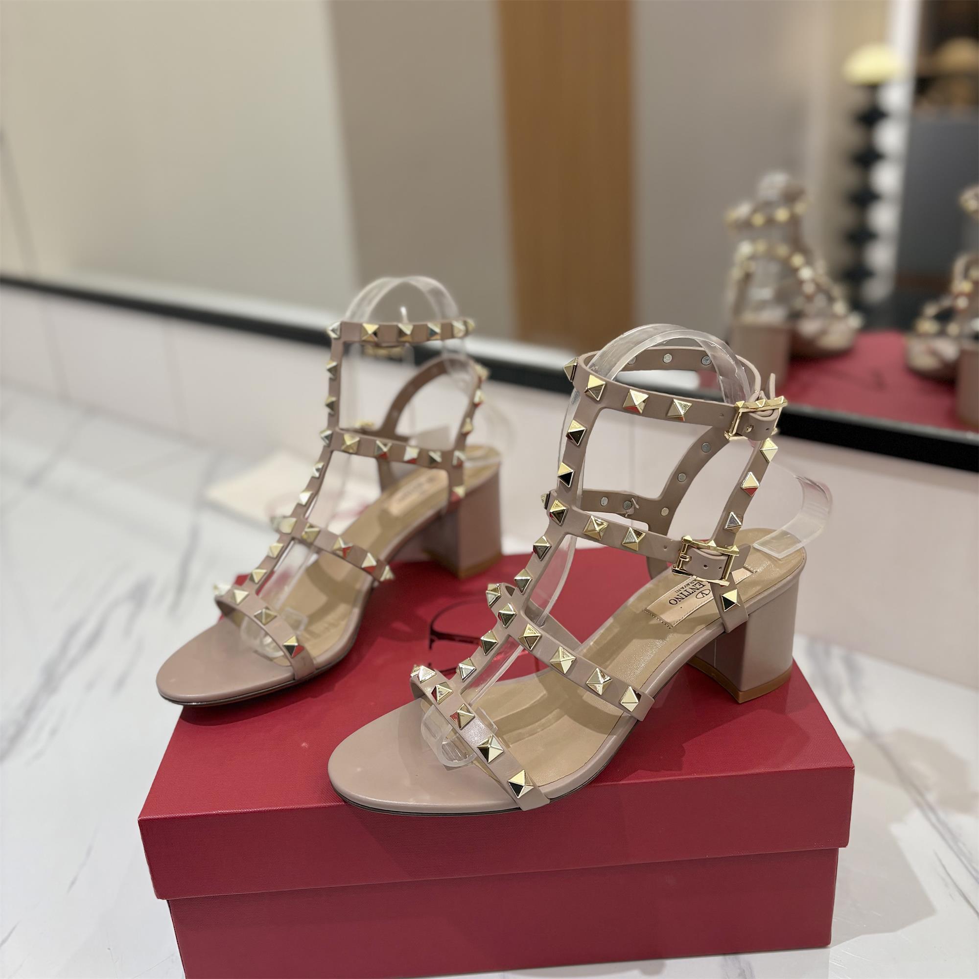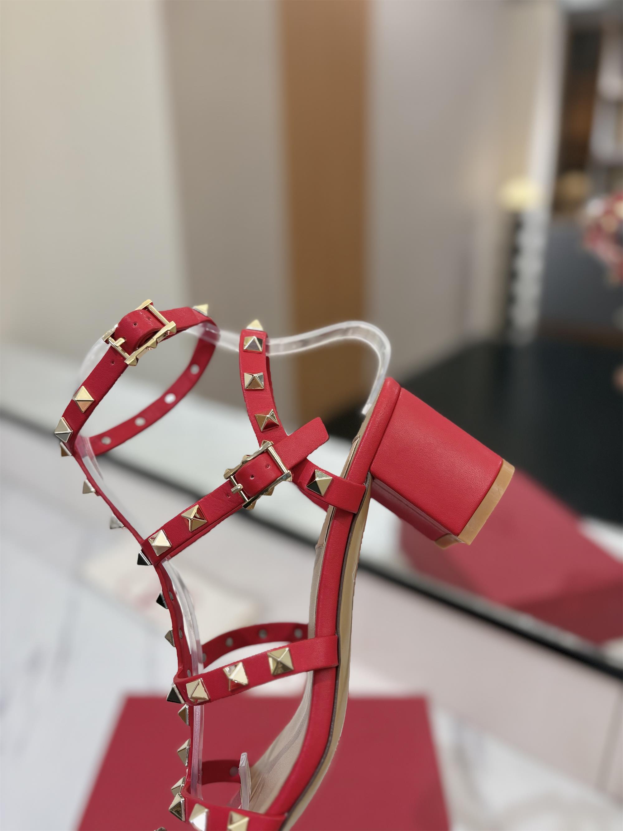 NIGO Valentino Women's Summer Solid Color Rivet Buckle 6.5cm Square Heel Sheepskin High Heels Shoes #nigo75757