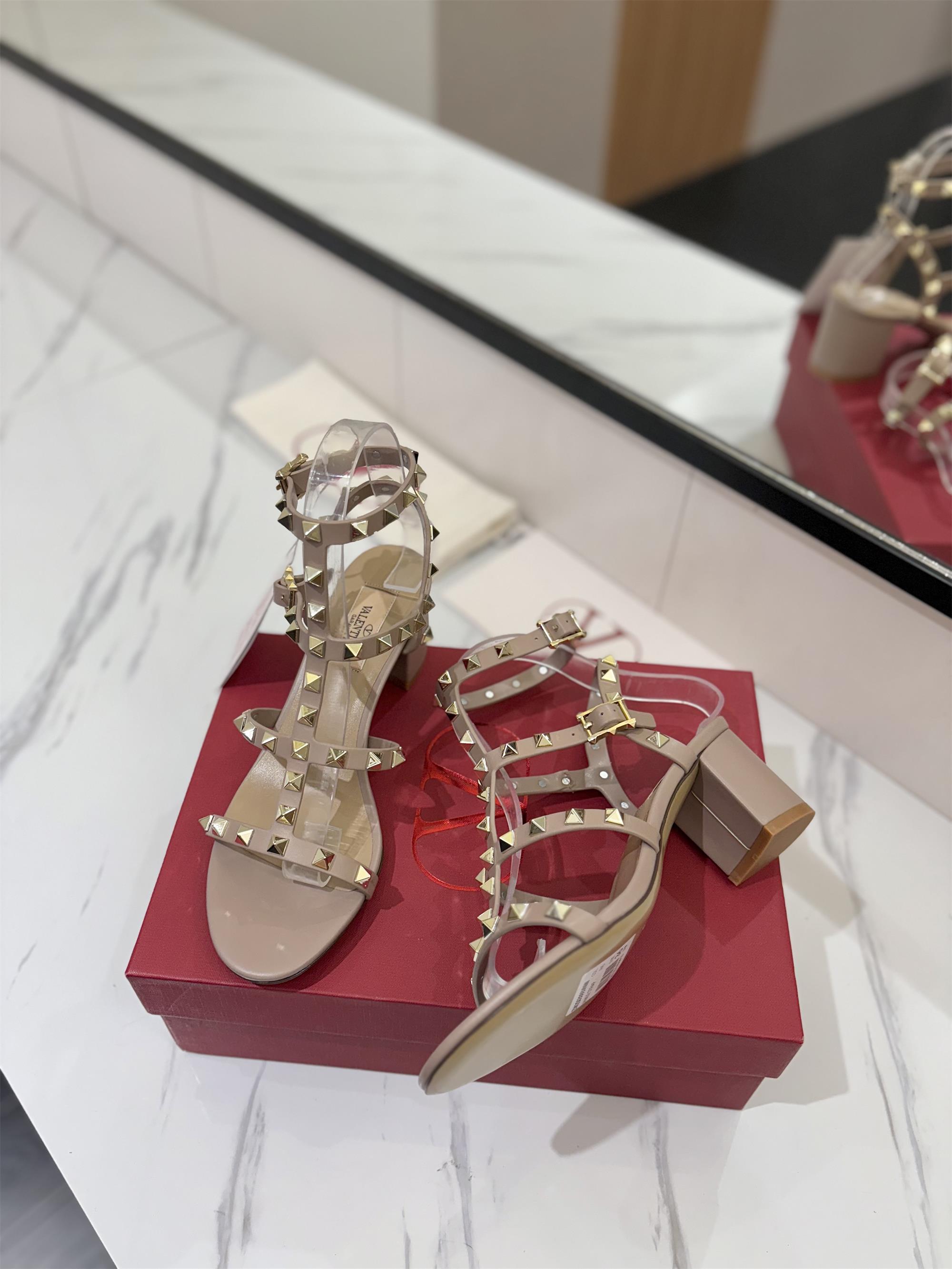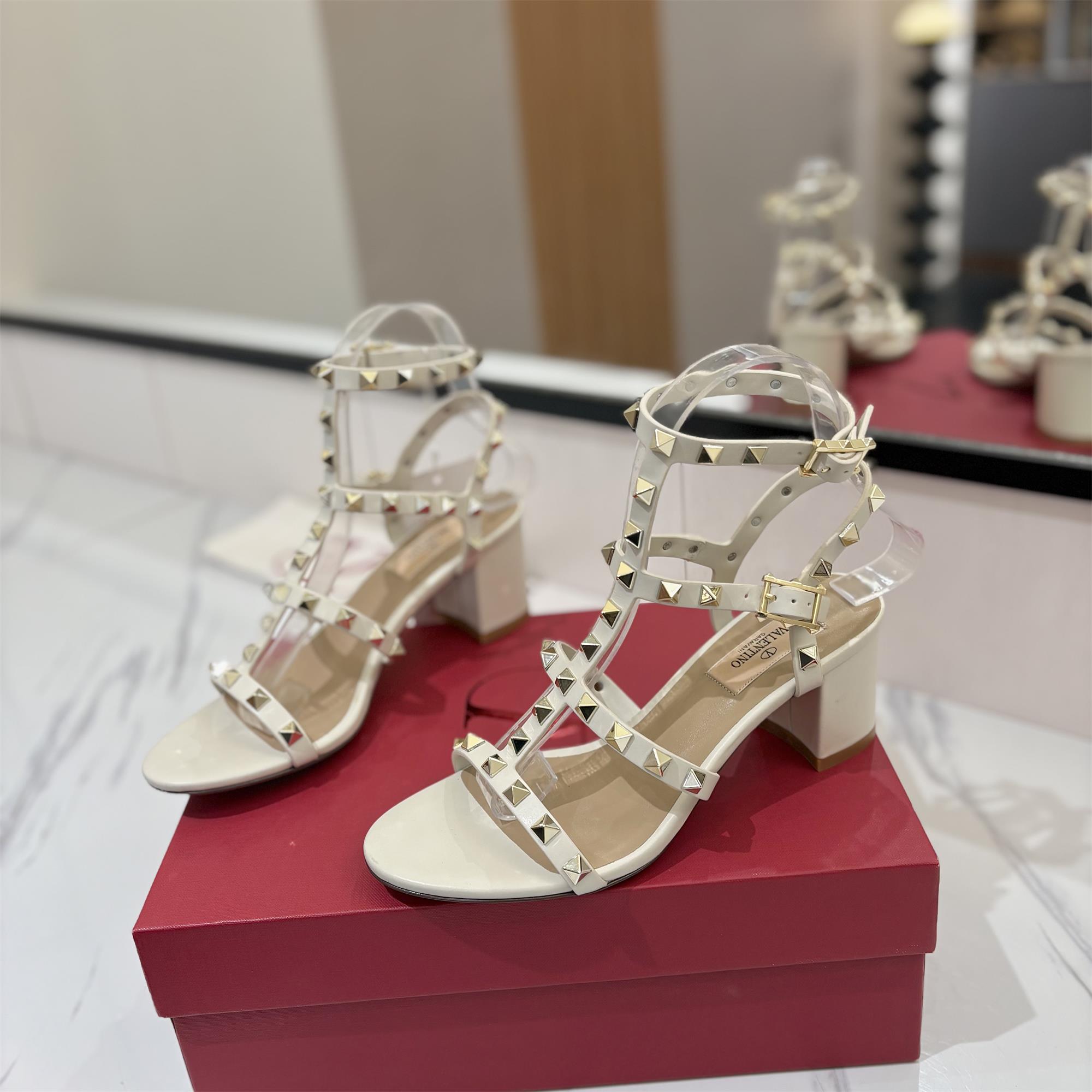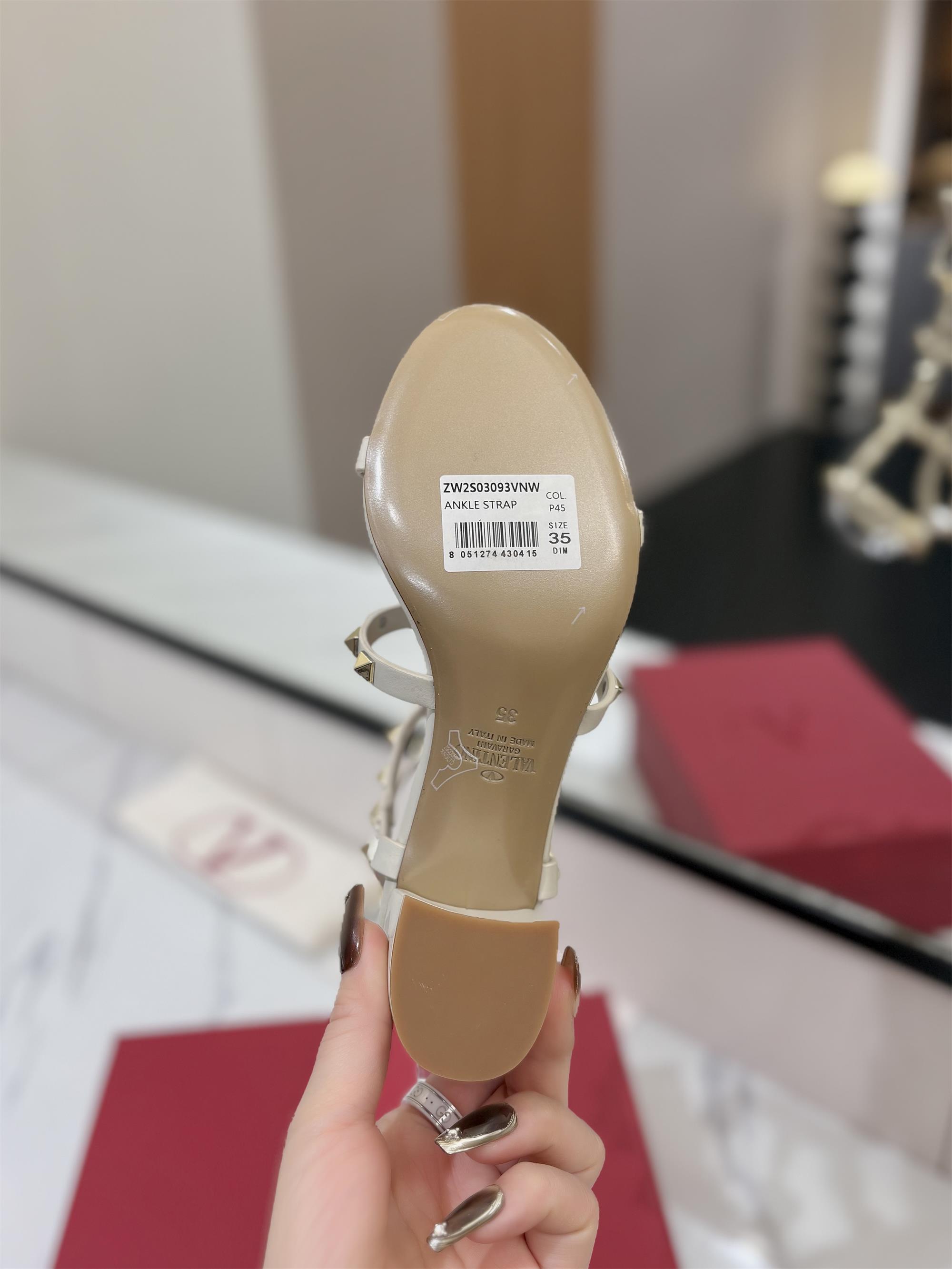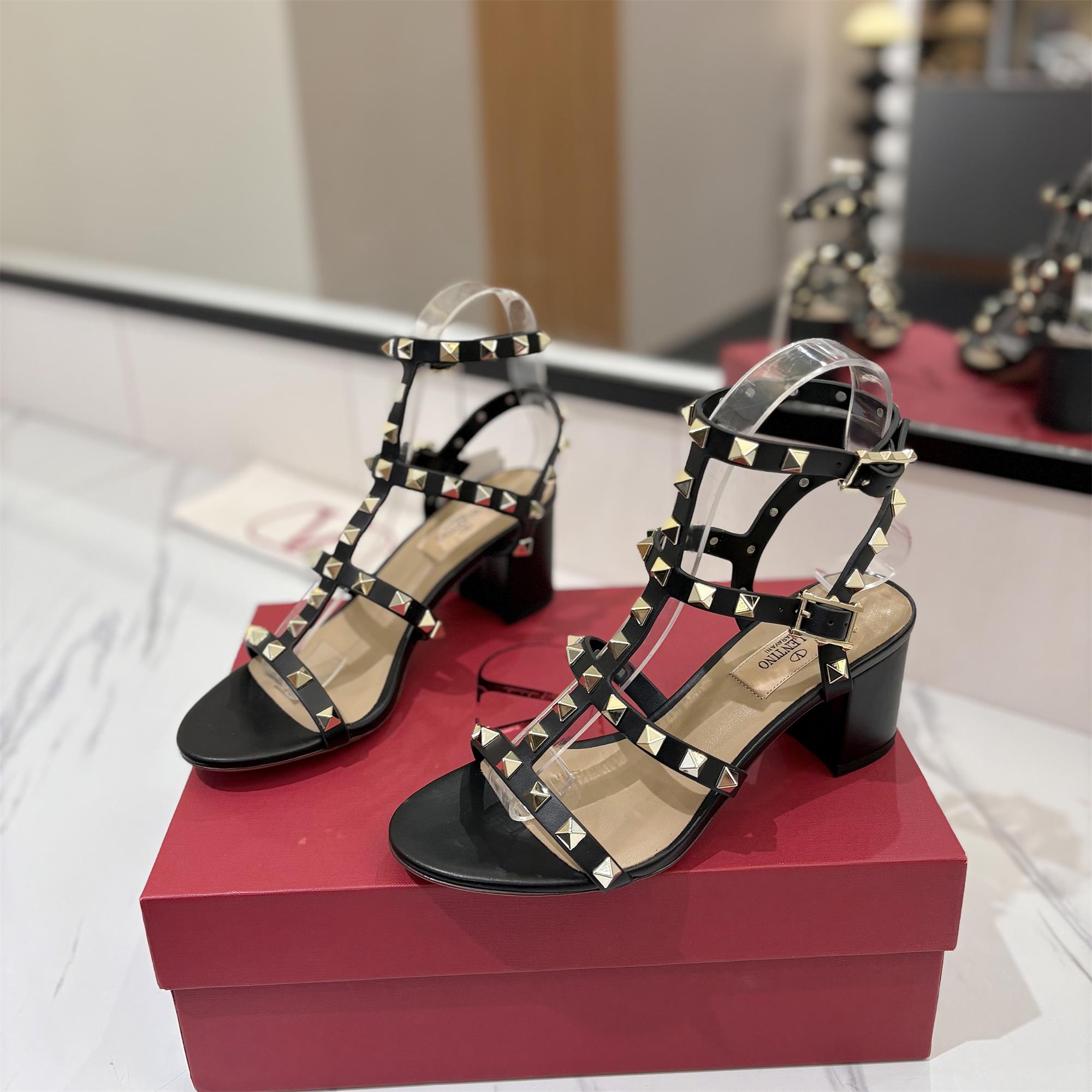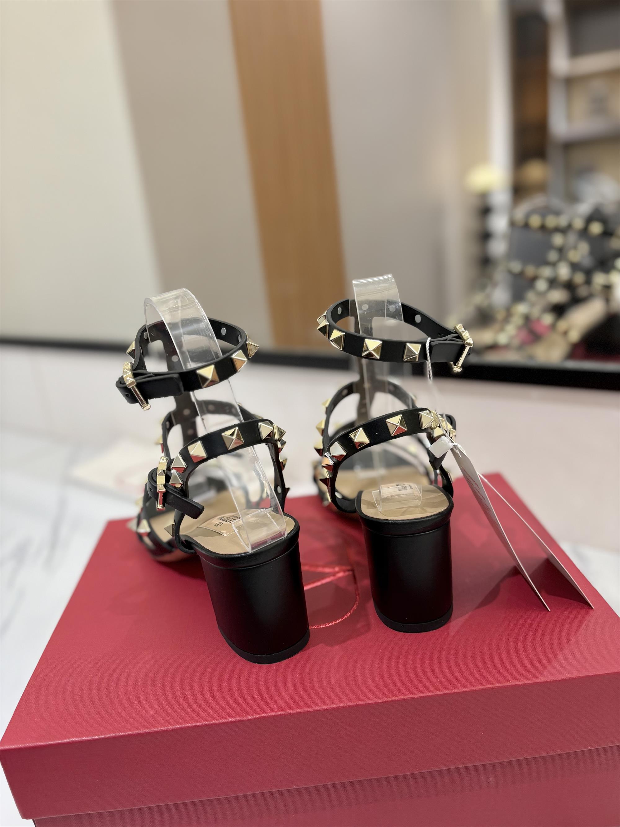 NIGO Valentino Women's Summer Solid Color Rivet Buckle 6.5cm Square Heel Sheepskin High Heels Shoes #nigo75757