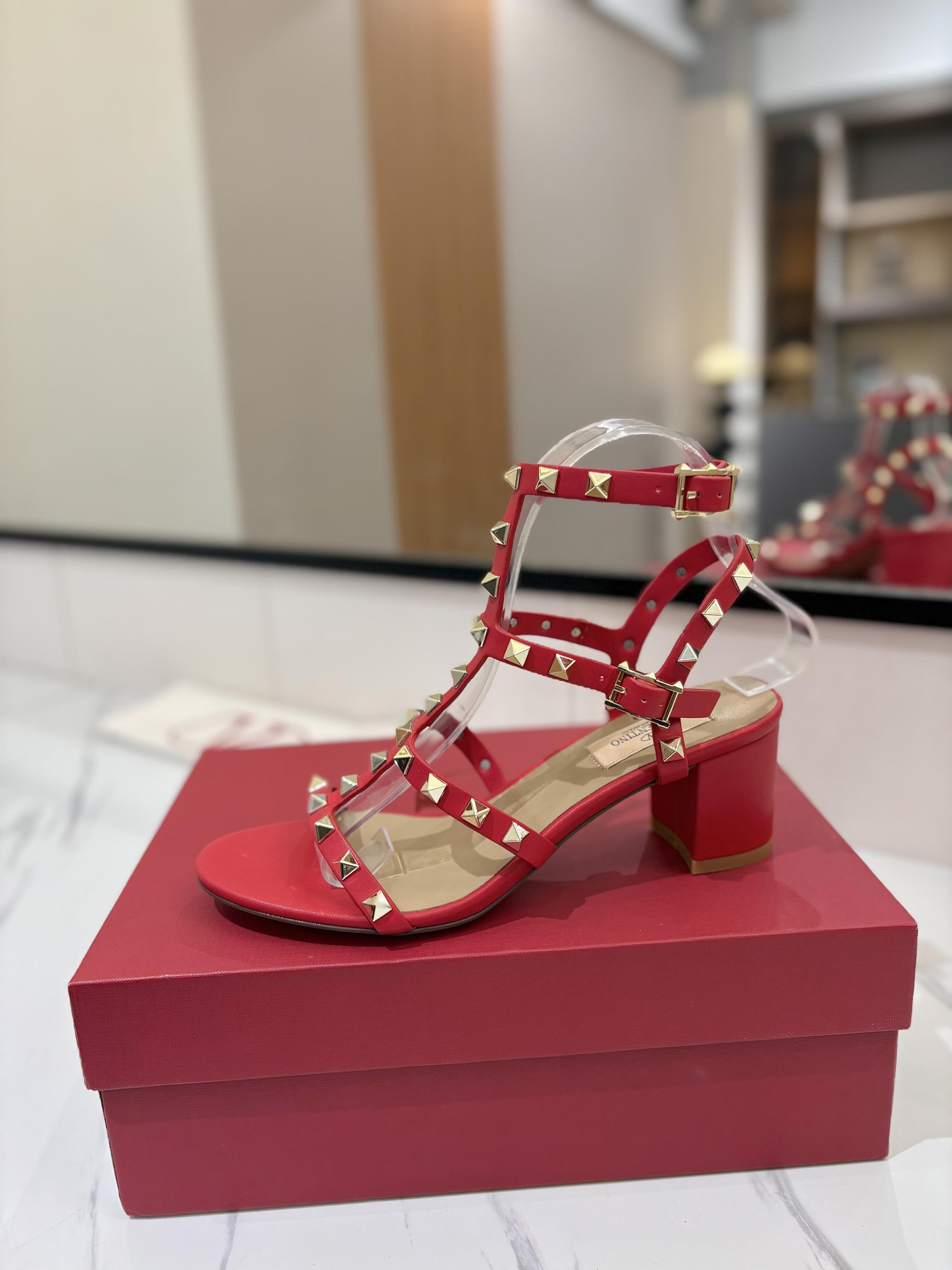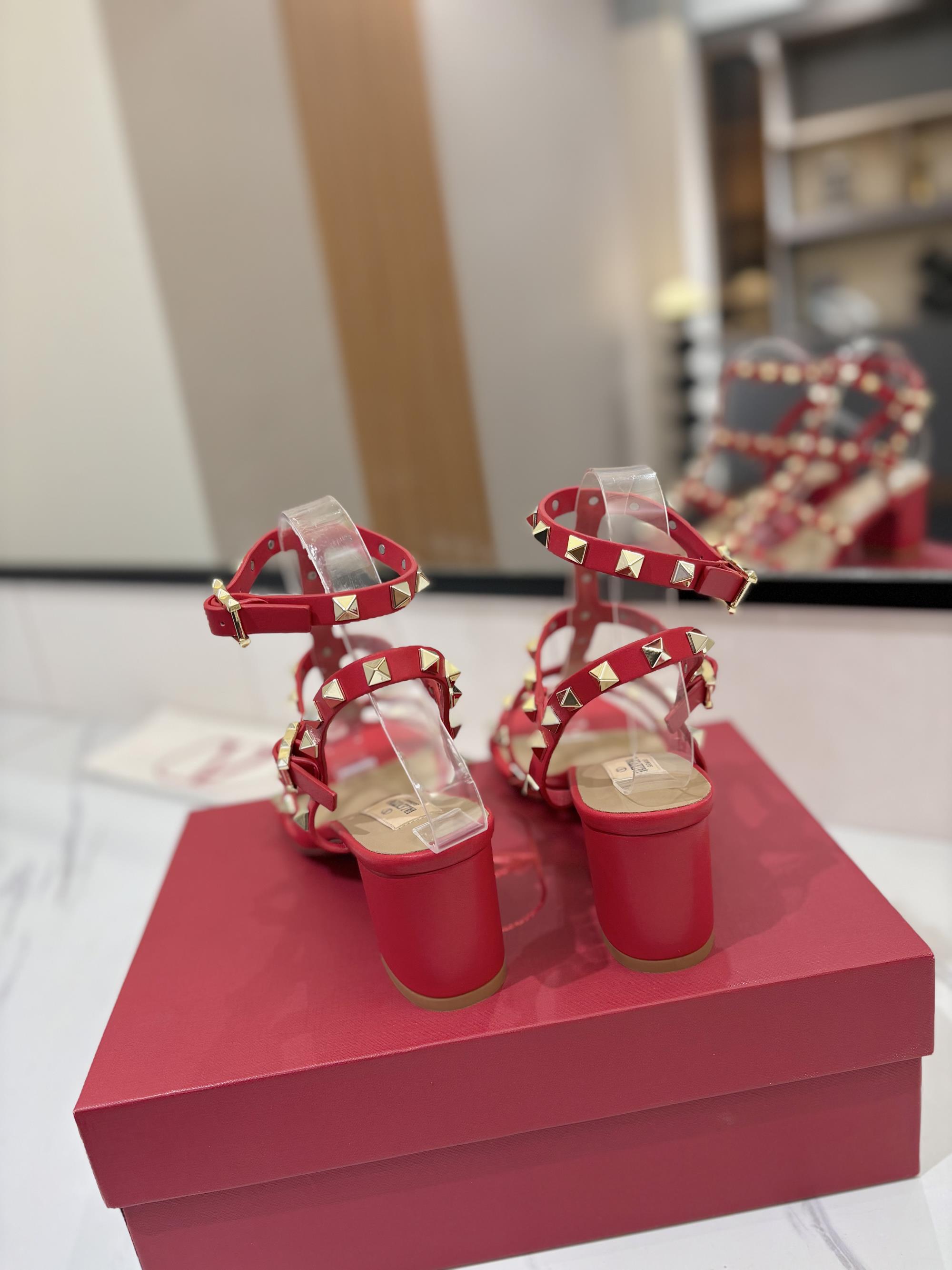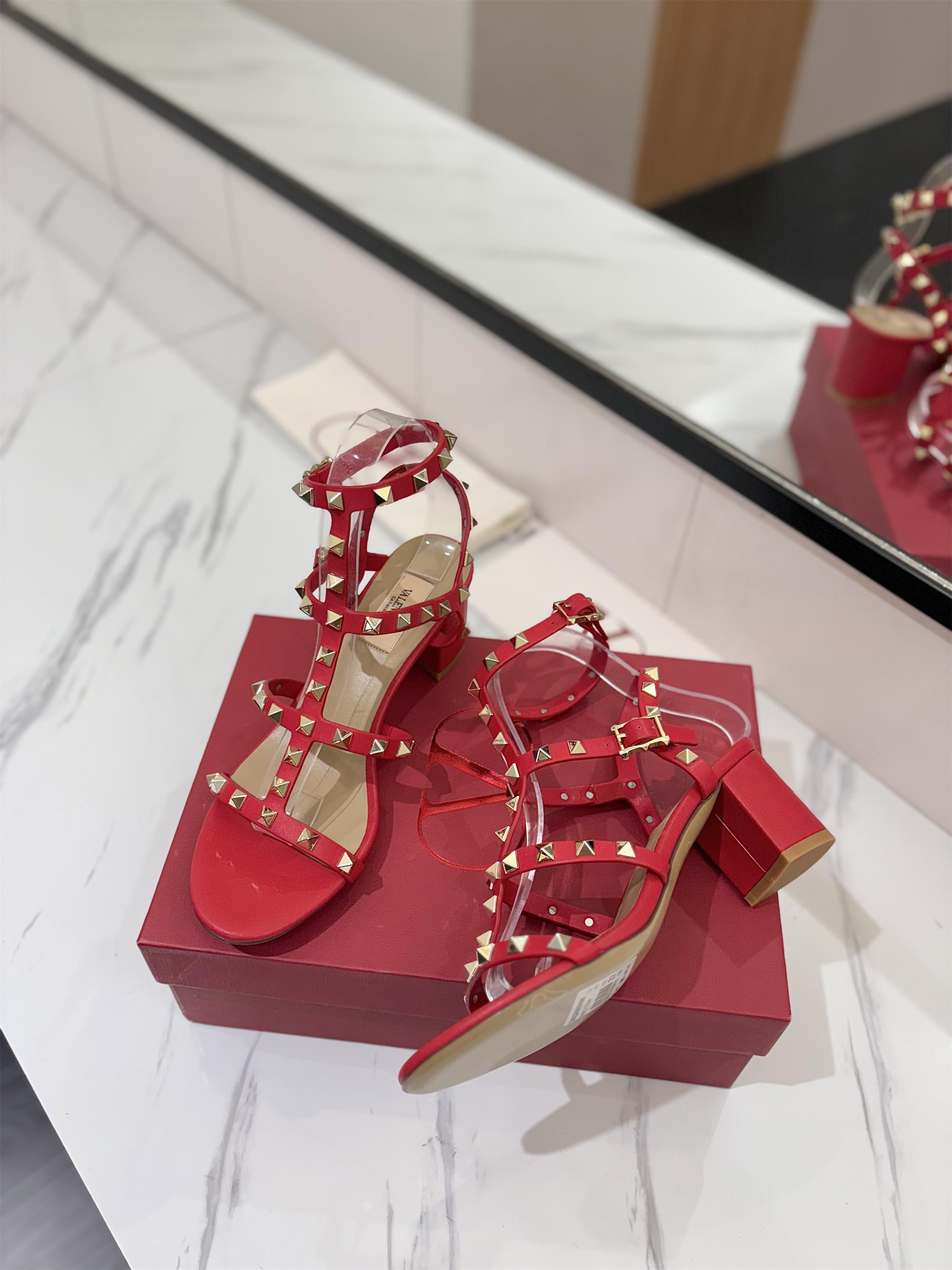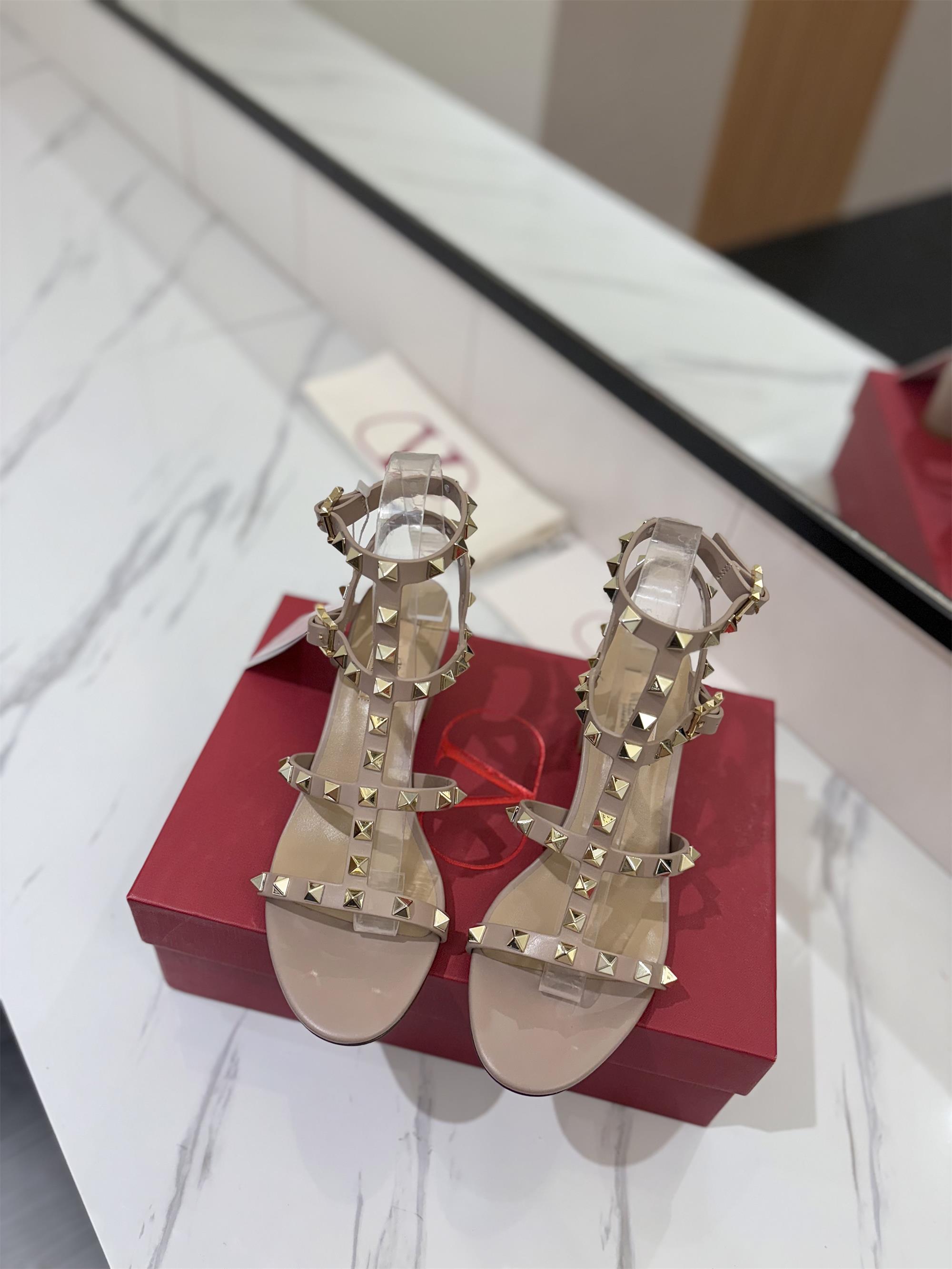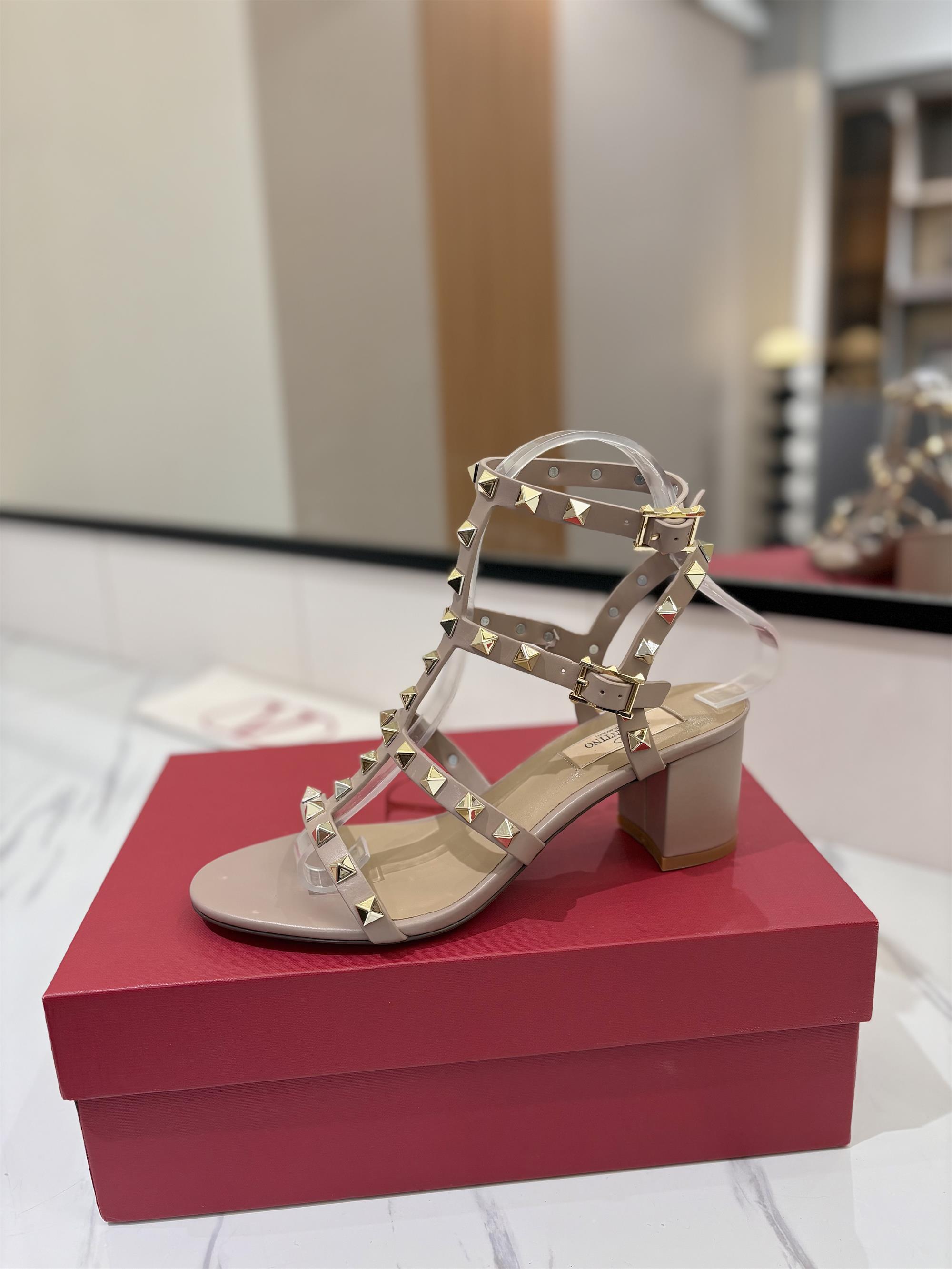 NIGO Valentino Women's Summer Solid Color Rivet Buckle 6.5cm Square Heel Sheepskin High Heels Shoes #nigo75757