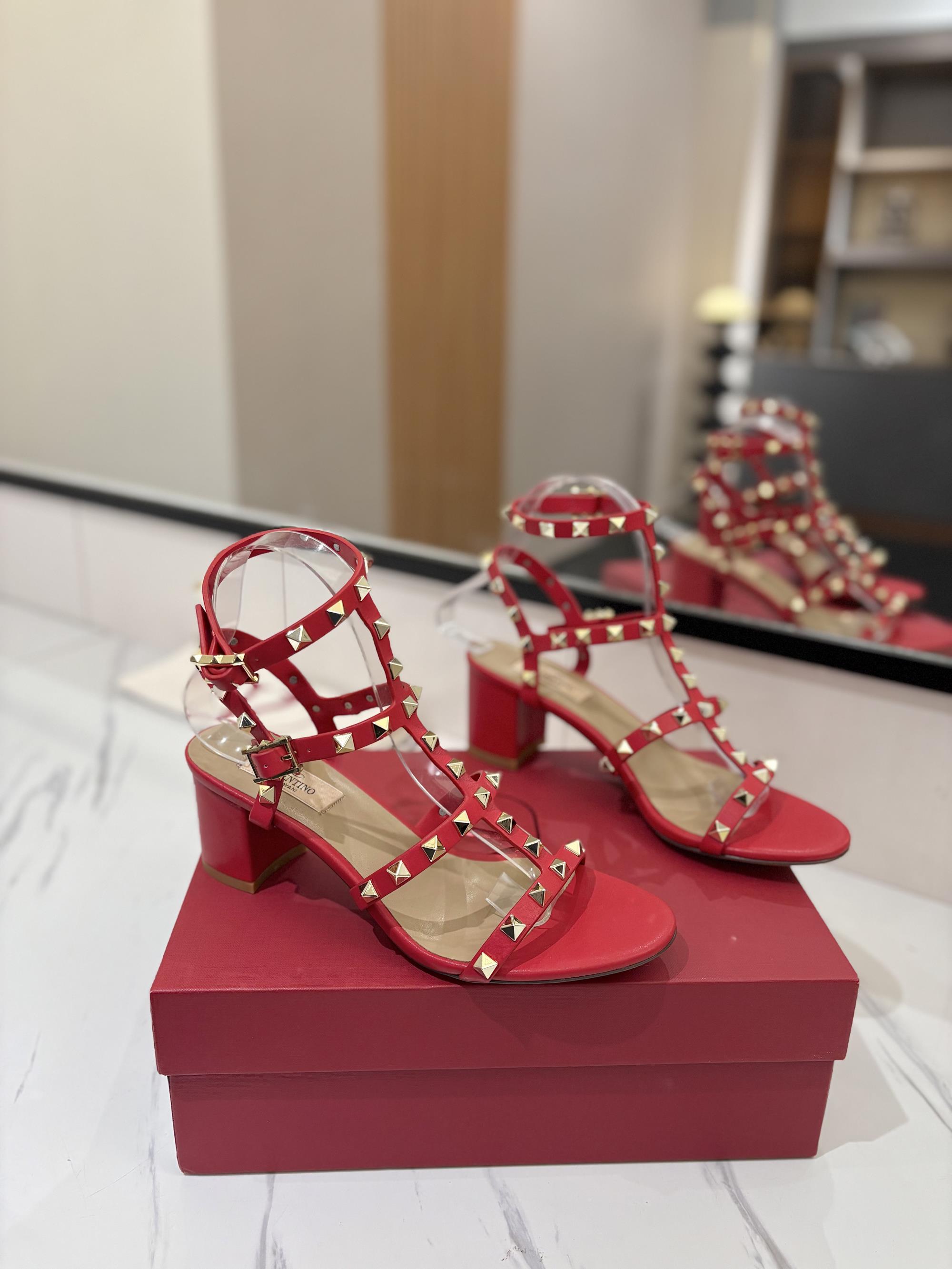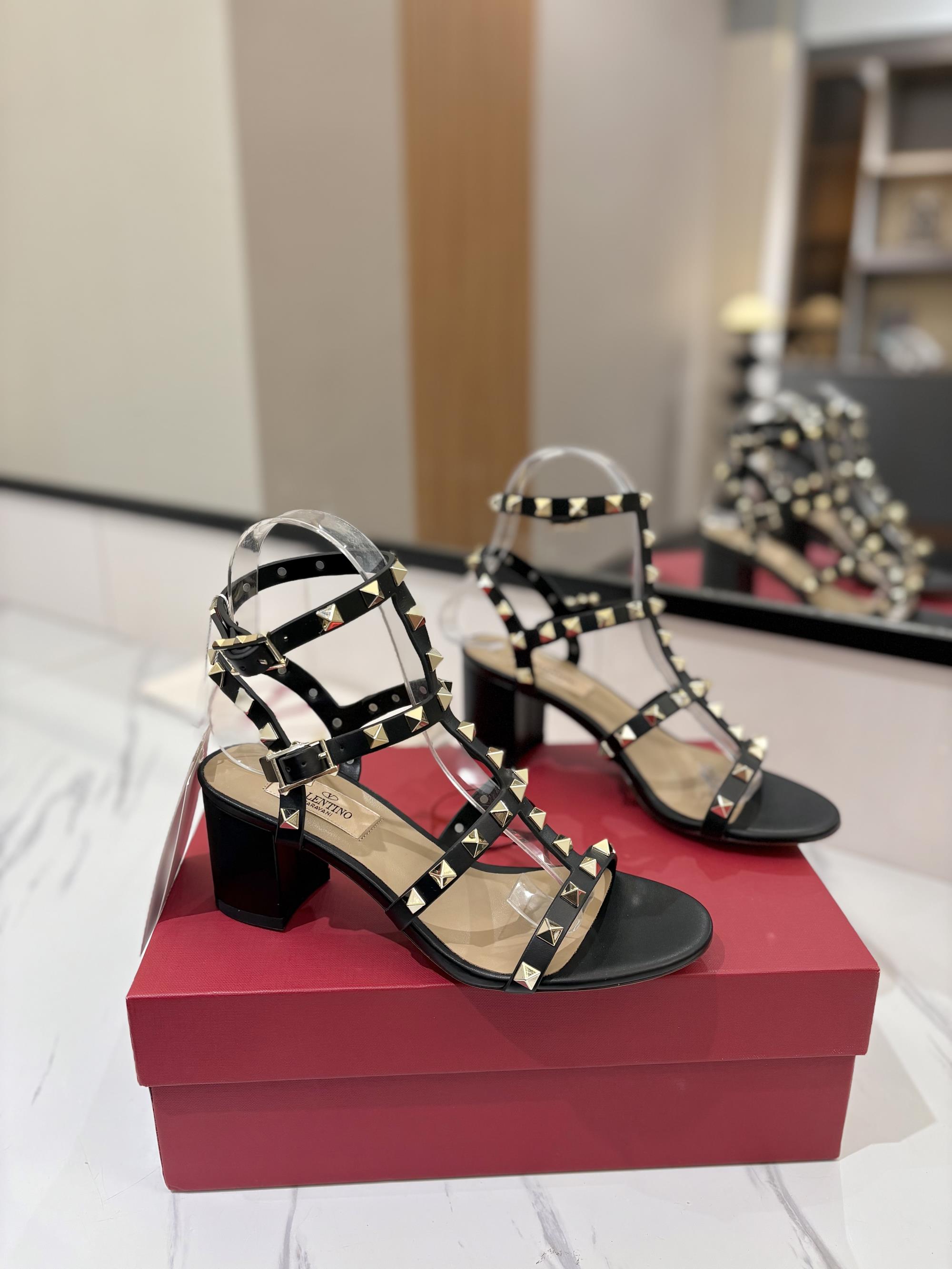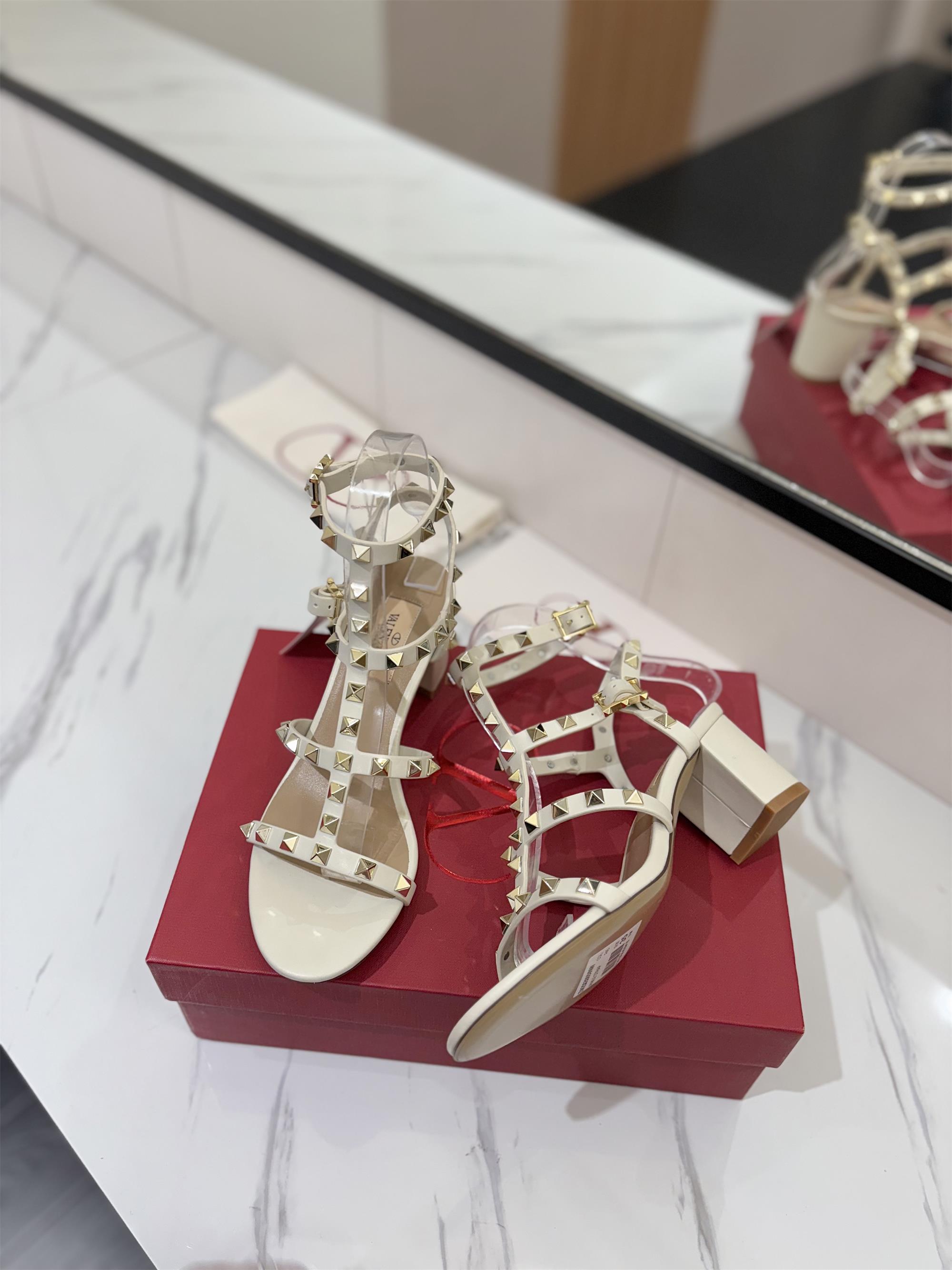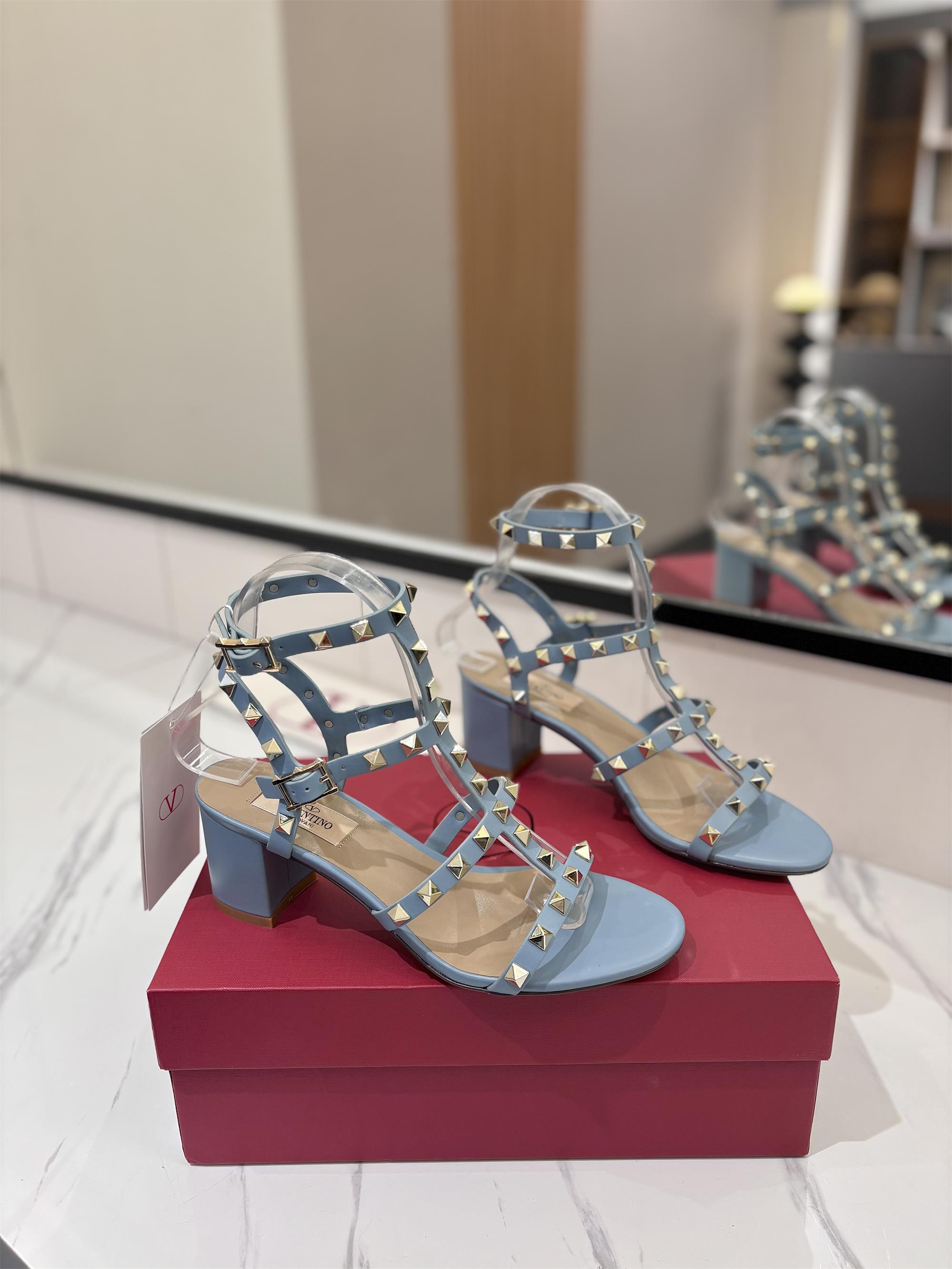 NIGO Valentino Women's Summer Solid Color Rivet Buckle 6.5cm Square Heel Sheepskin High Heels Shoes #nigo75757