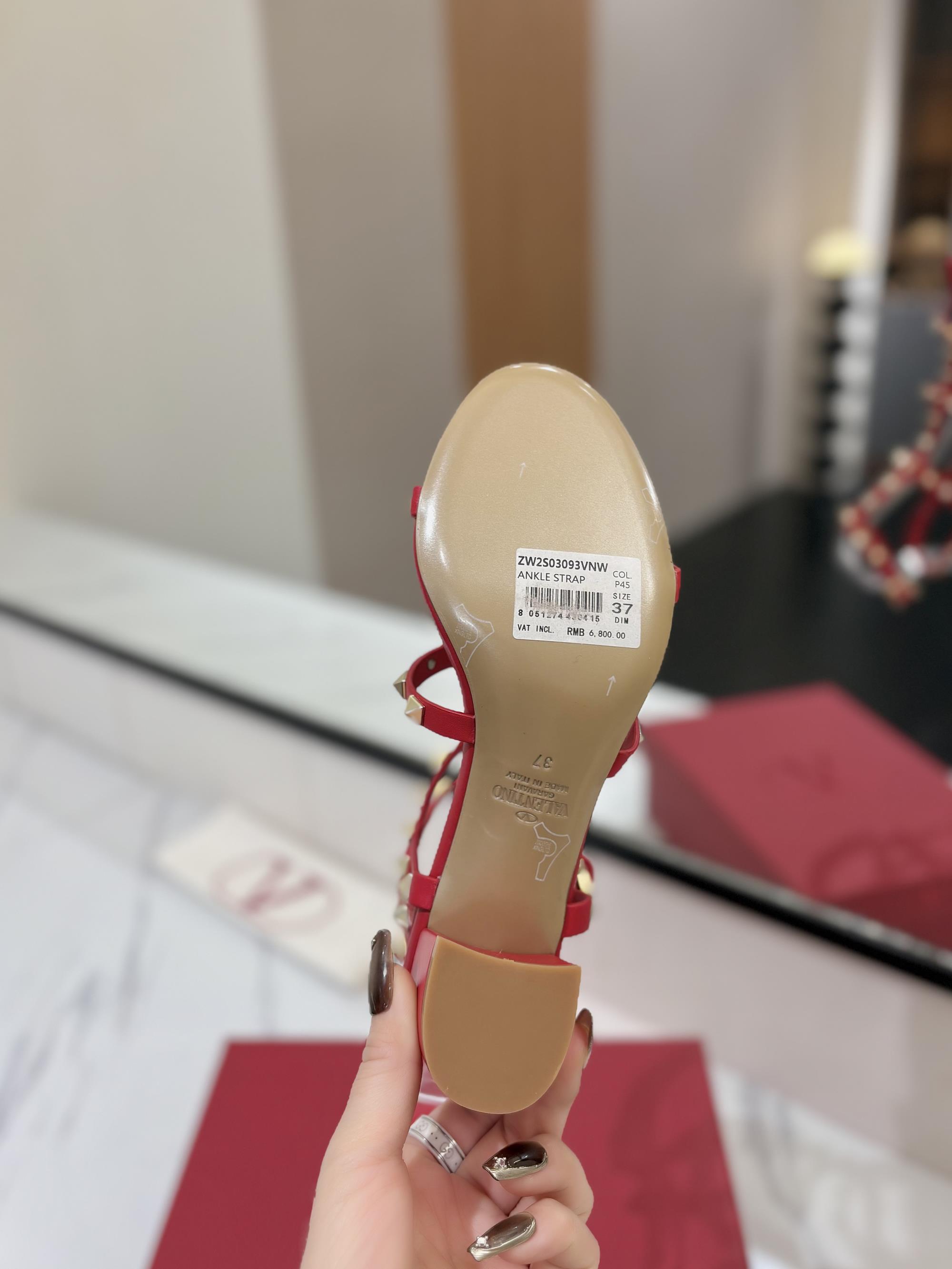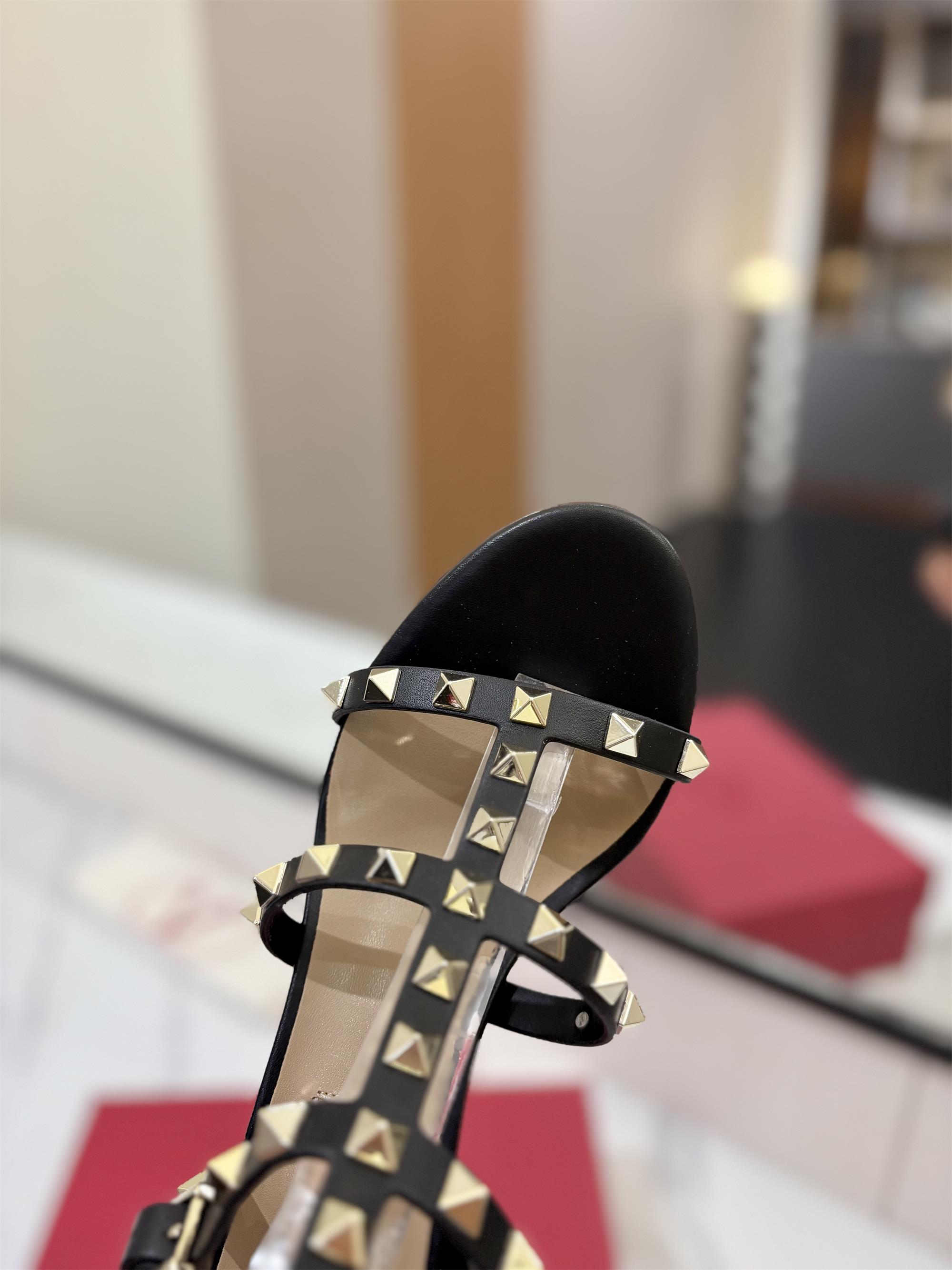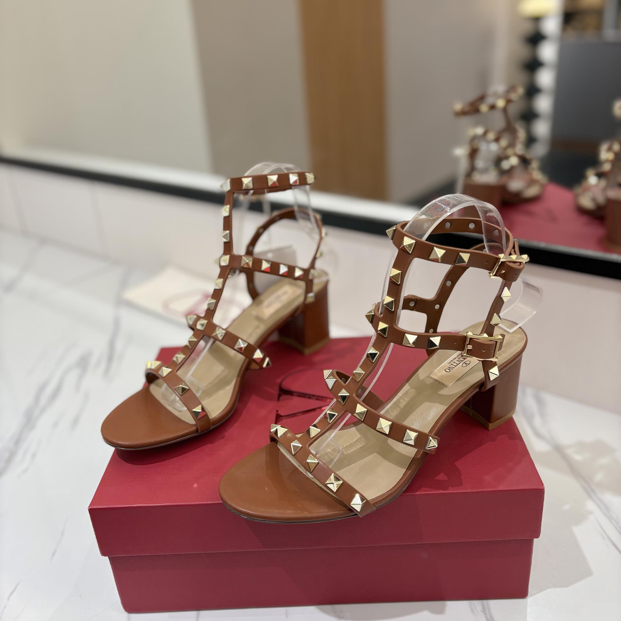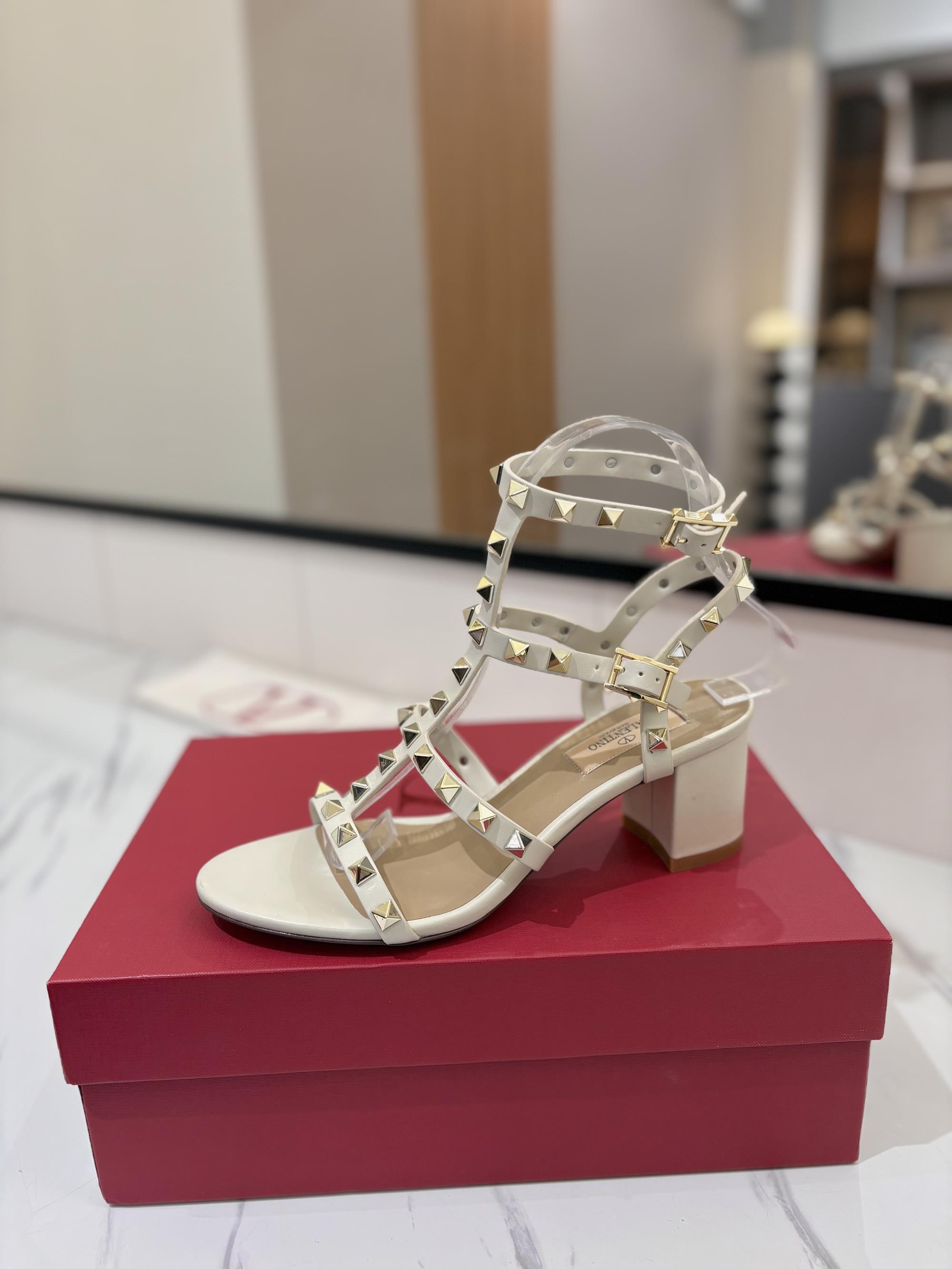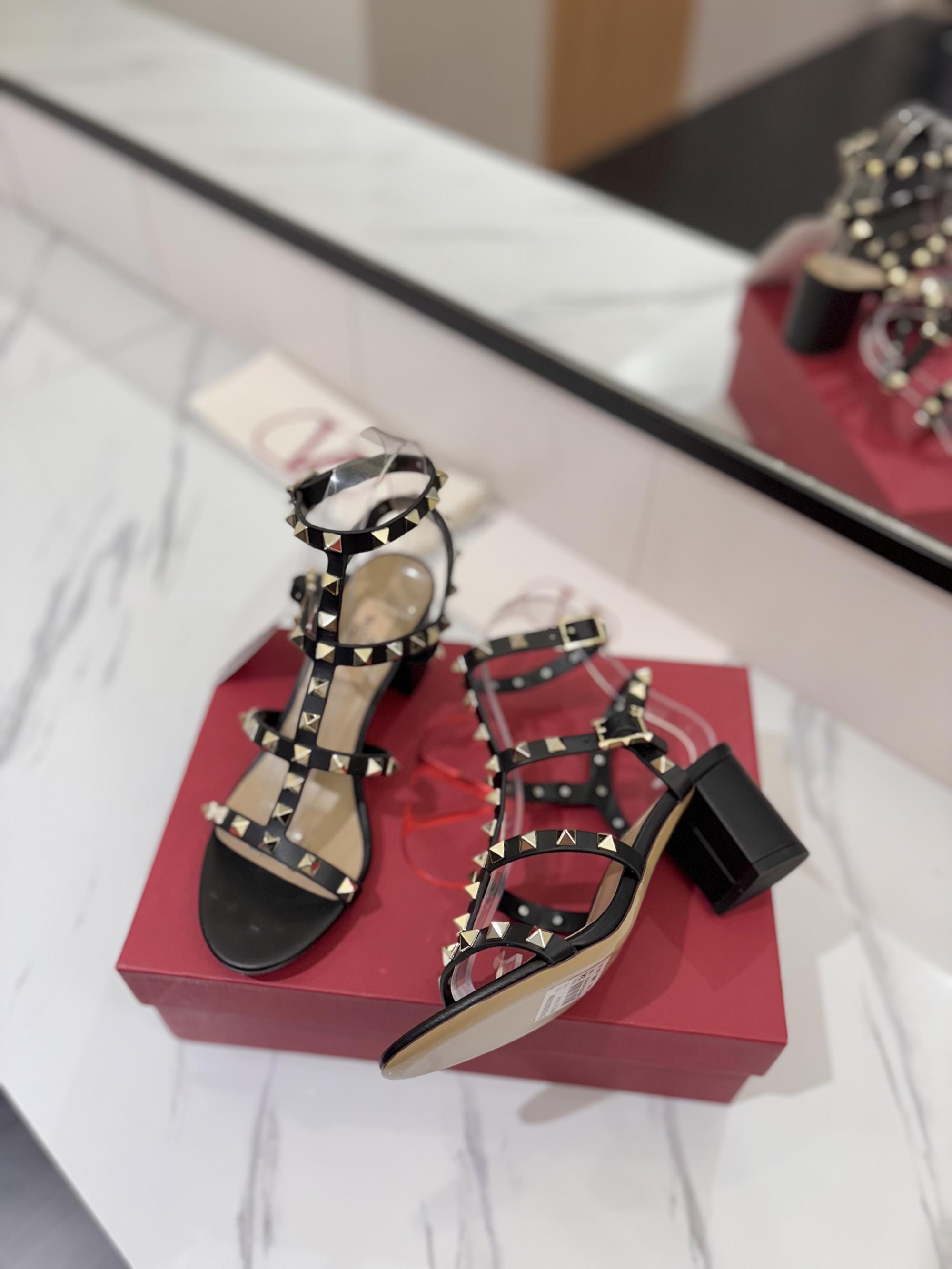 NIGO Valentino Women's Summer Solid Color Rivet Buckle 6.5cm Square Heel Sheepskin High Heels Shoes #nigo75757