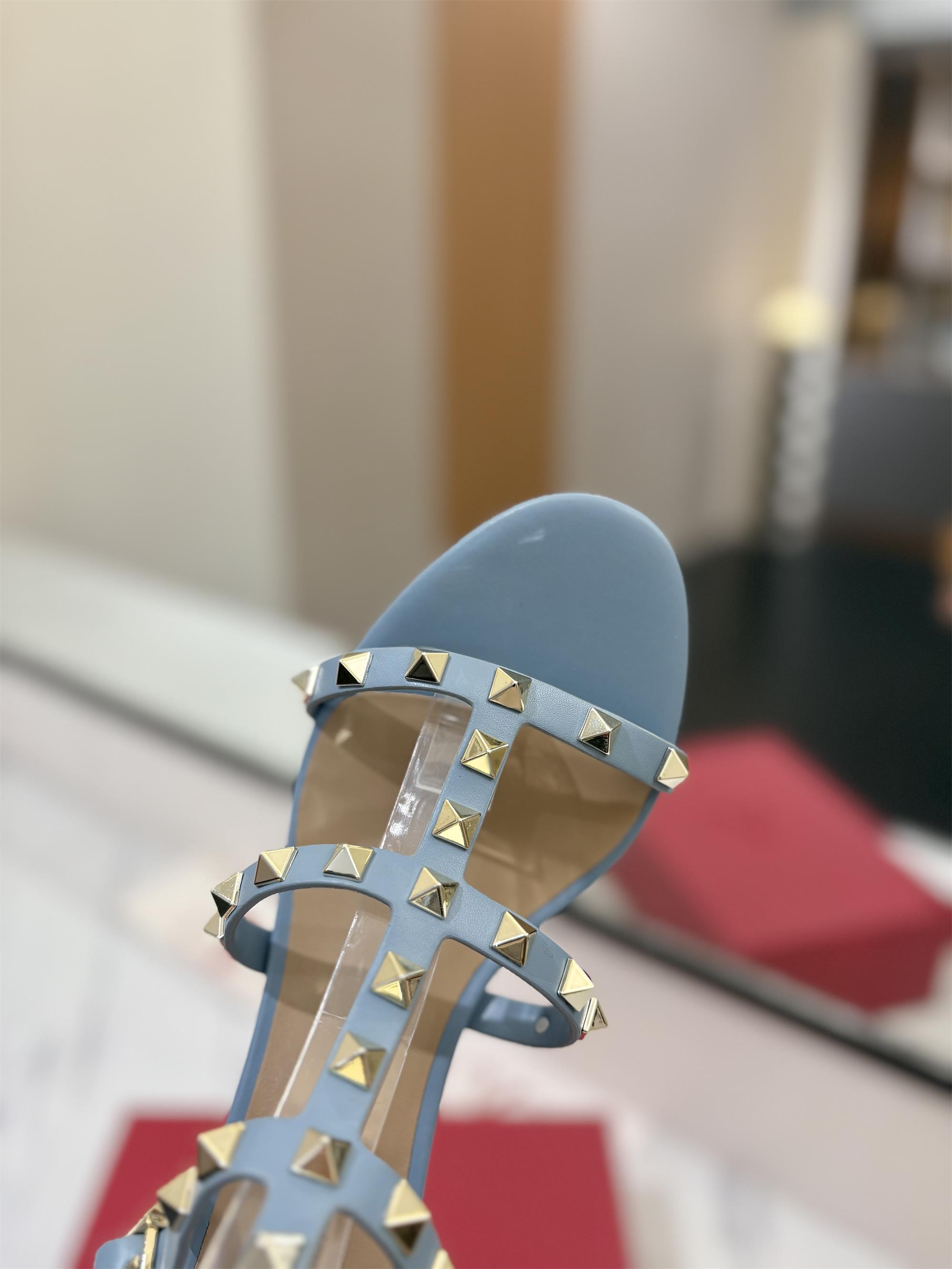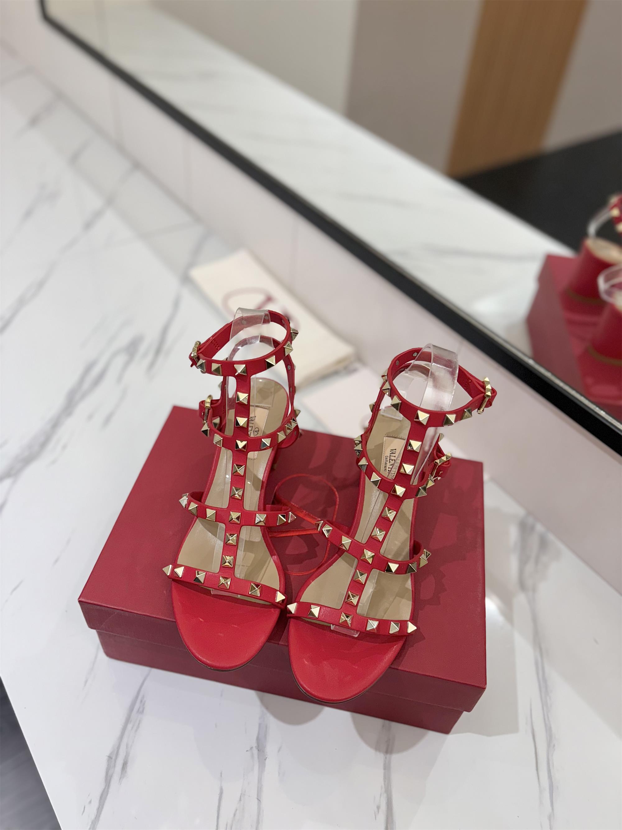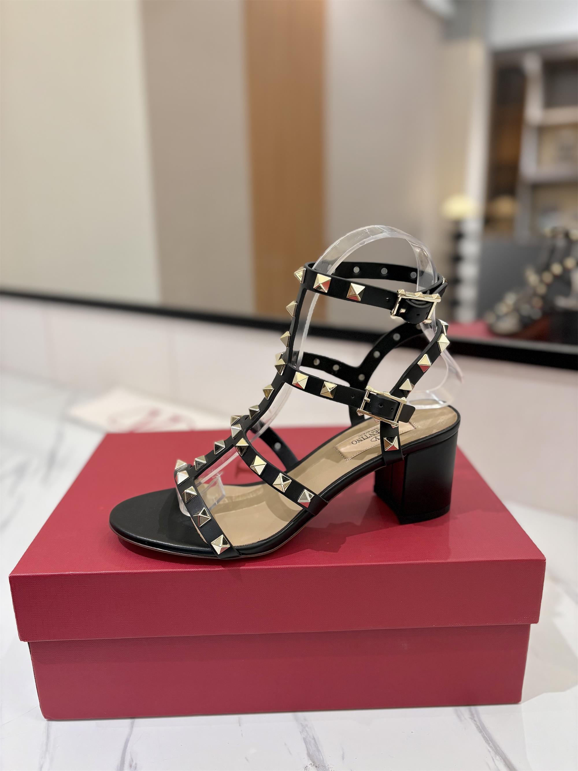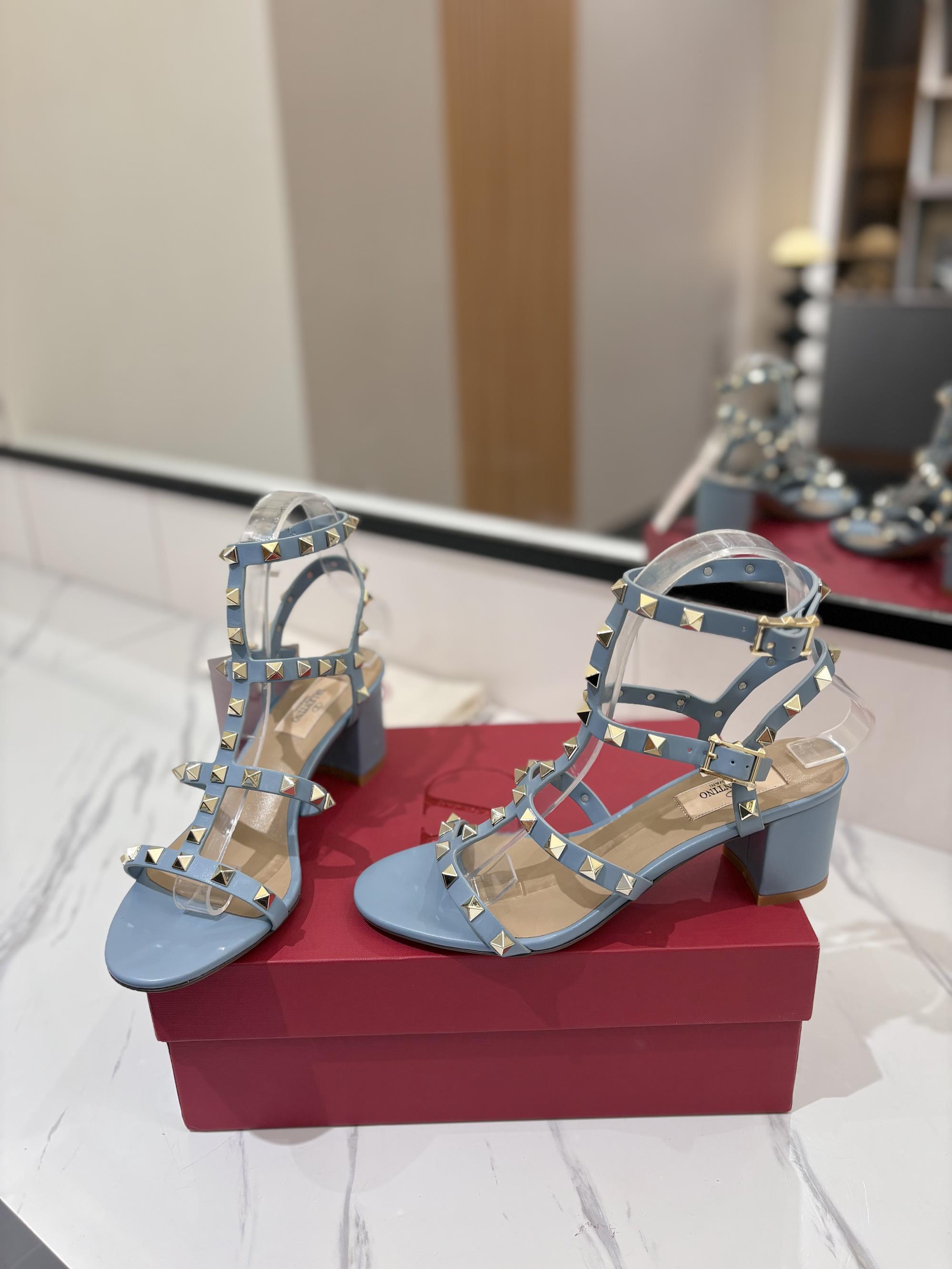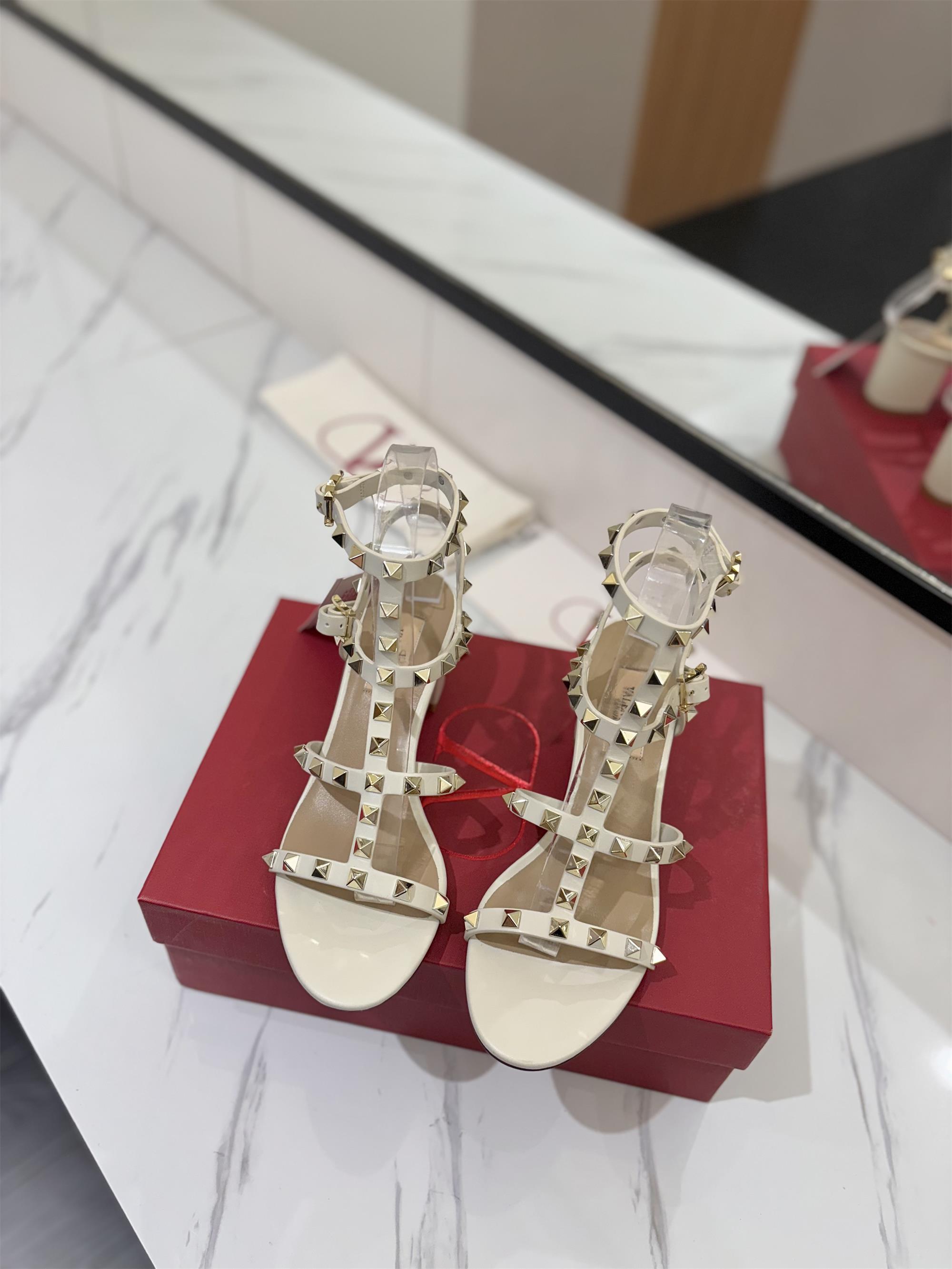NIGO Valentino Women's Summer Solid Color Rivet Buckle 6.5cm Square Heel Sheepskin High Heels Shoes #nigo75757