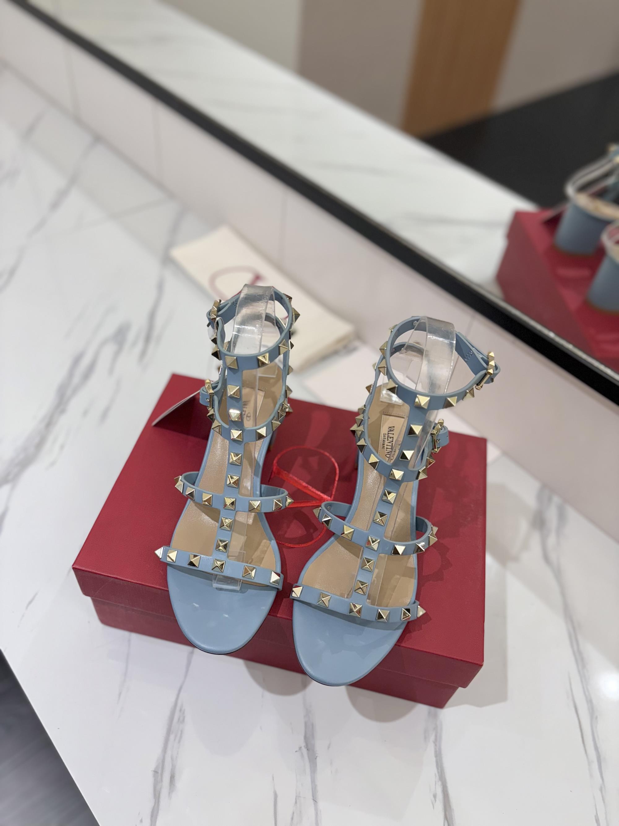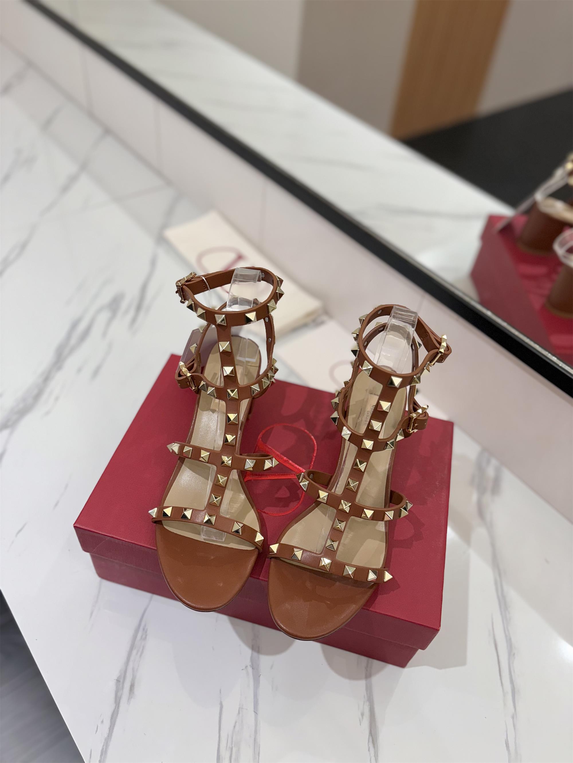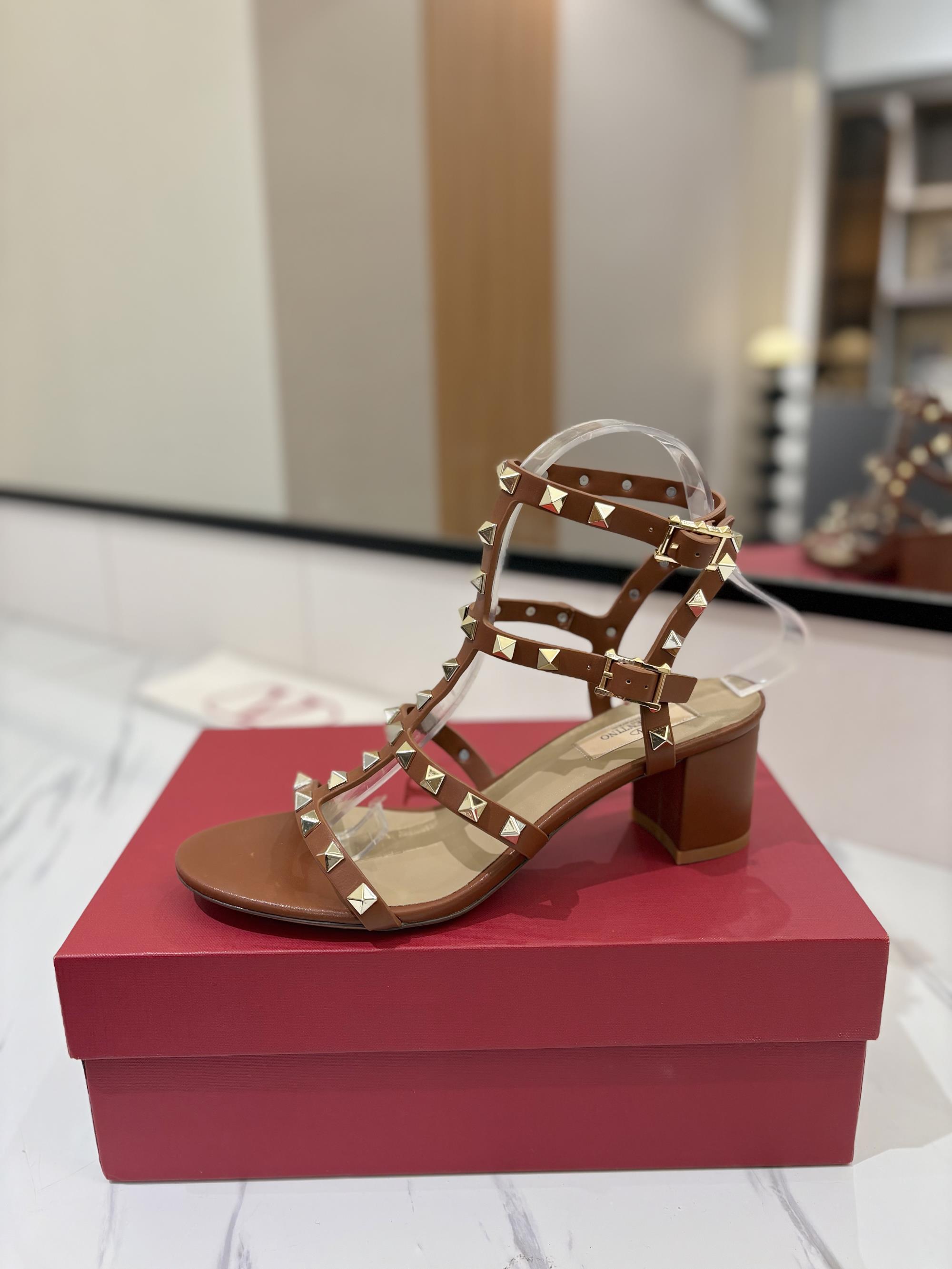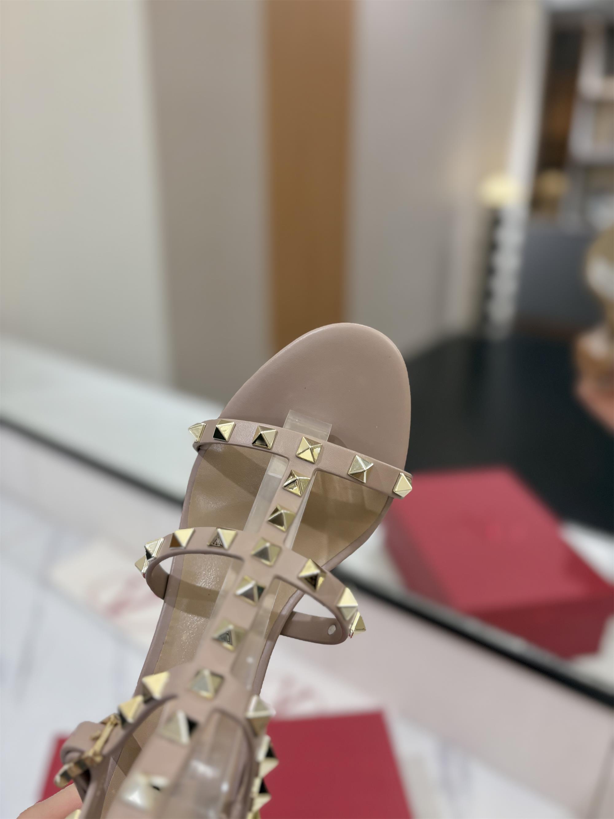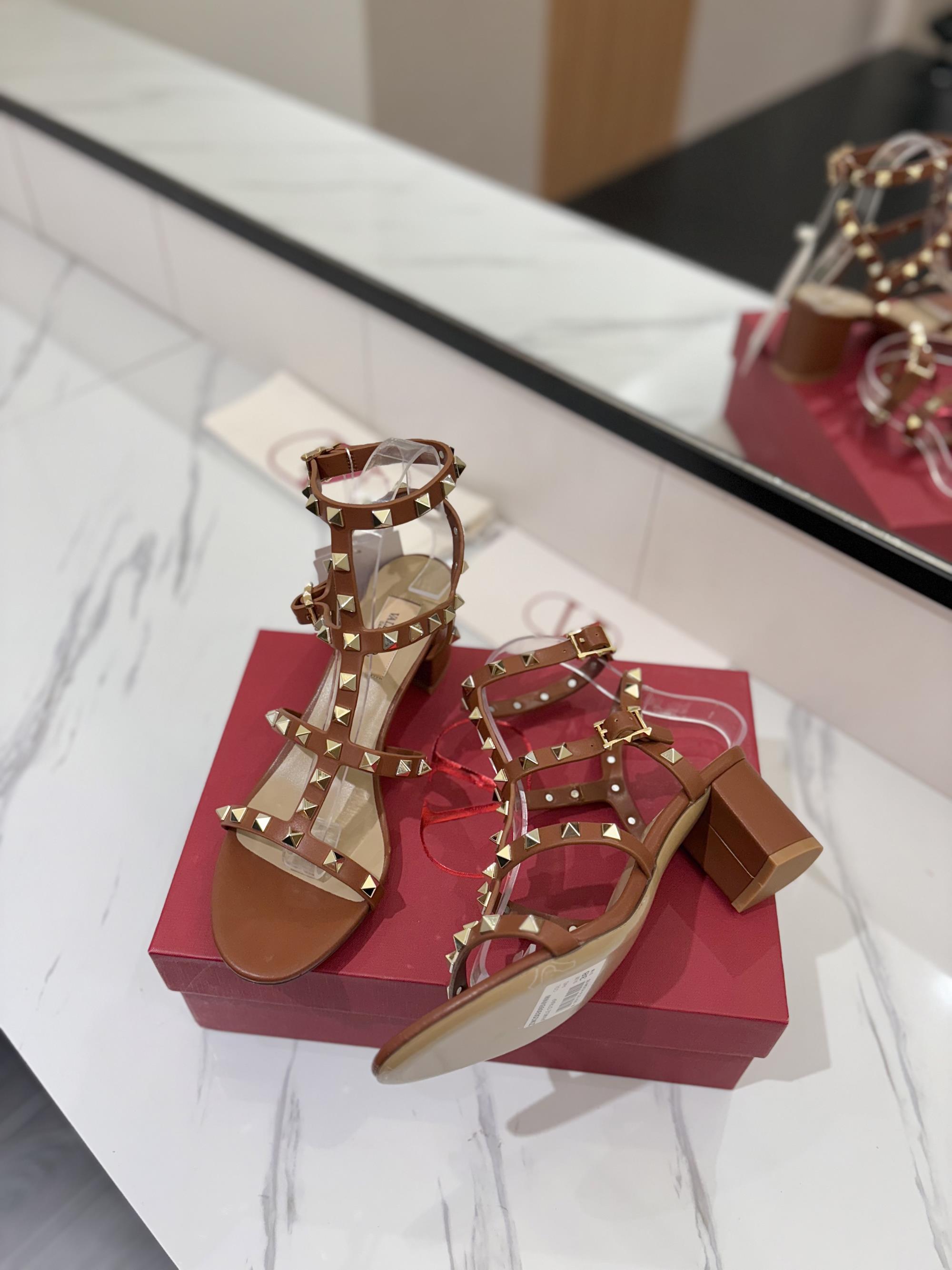 NIGO Valentino Women's Summer Solid Color Rivet Buckle 6.5cm Square Heel Sheepskin High Heels Shoes #nigo75757