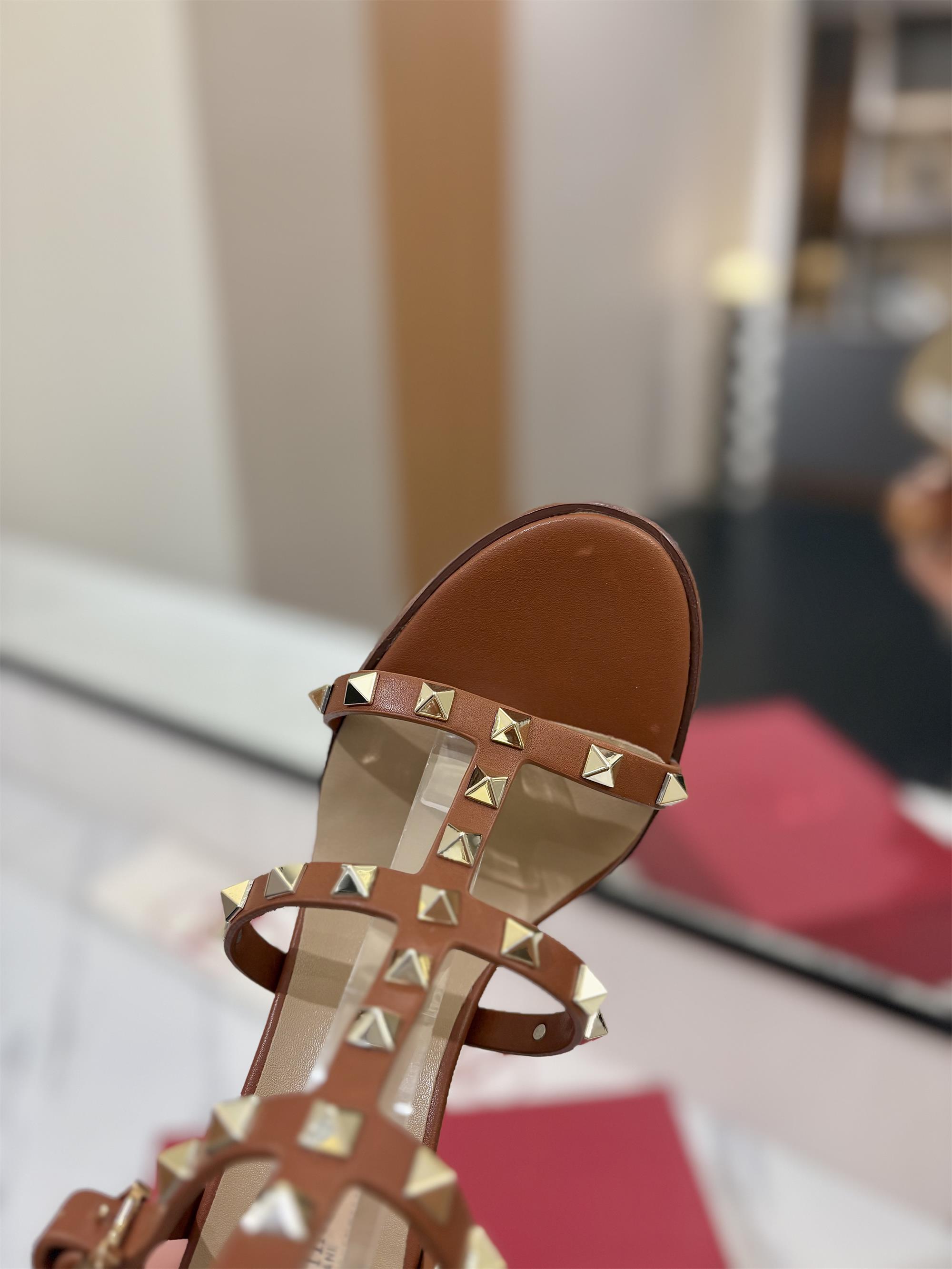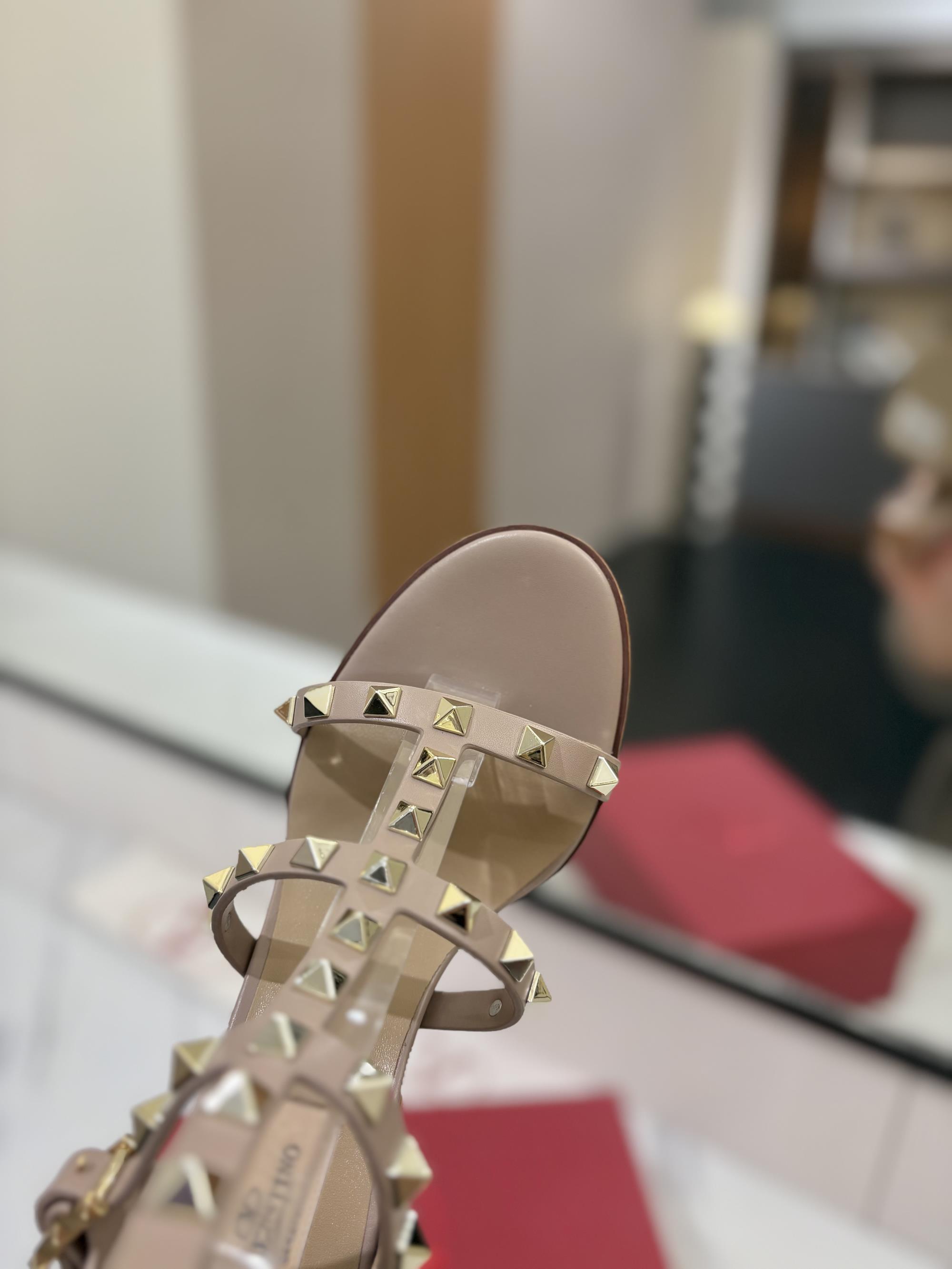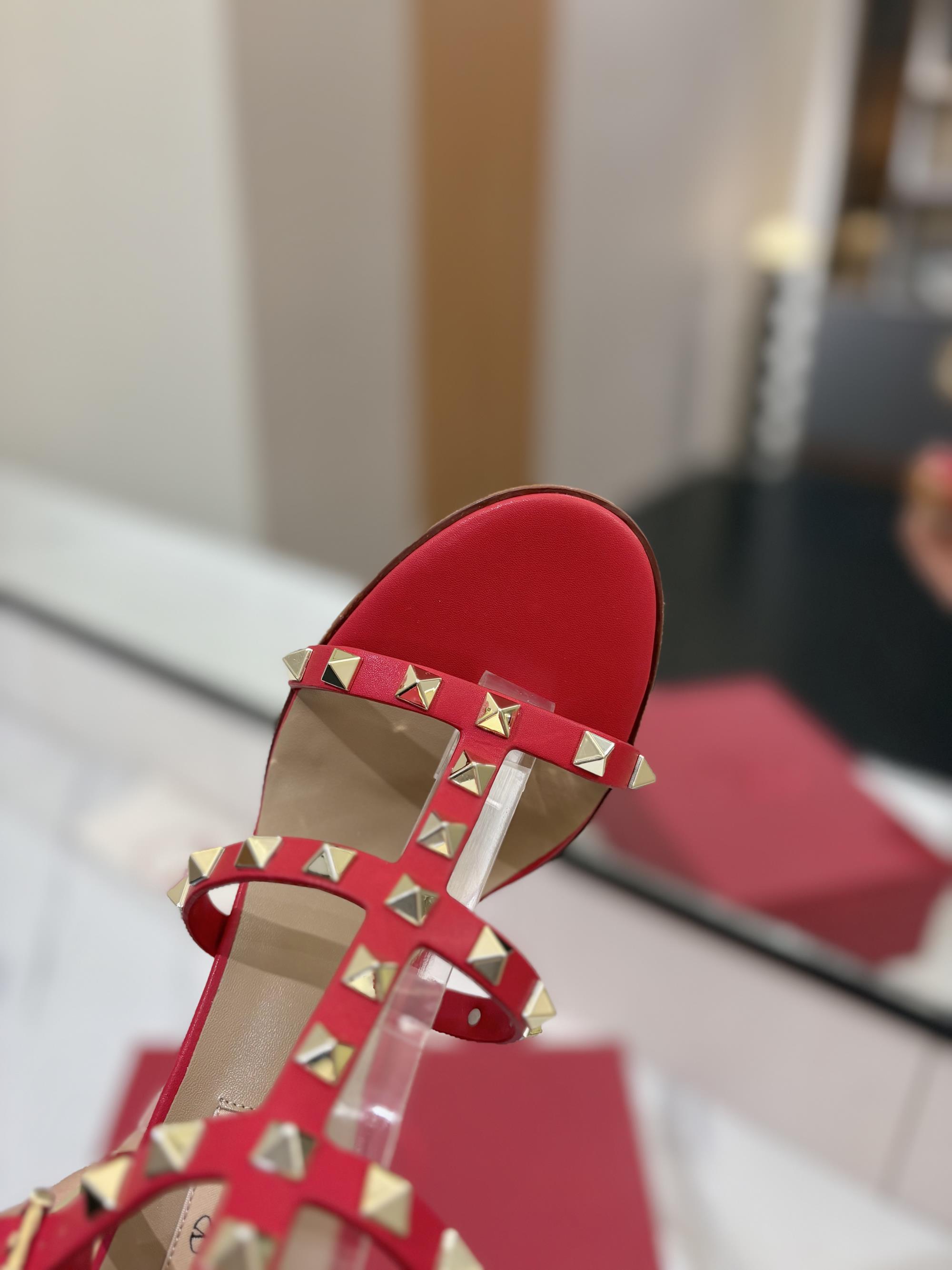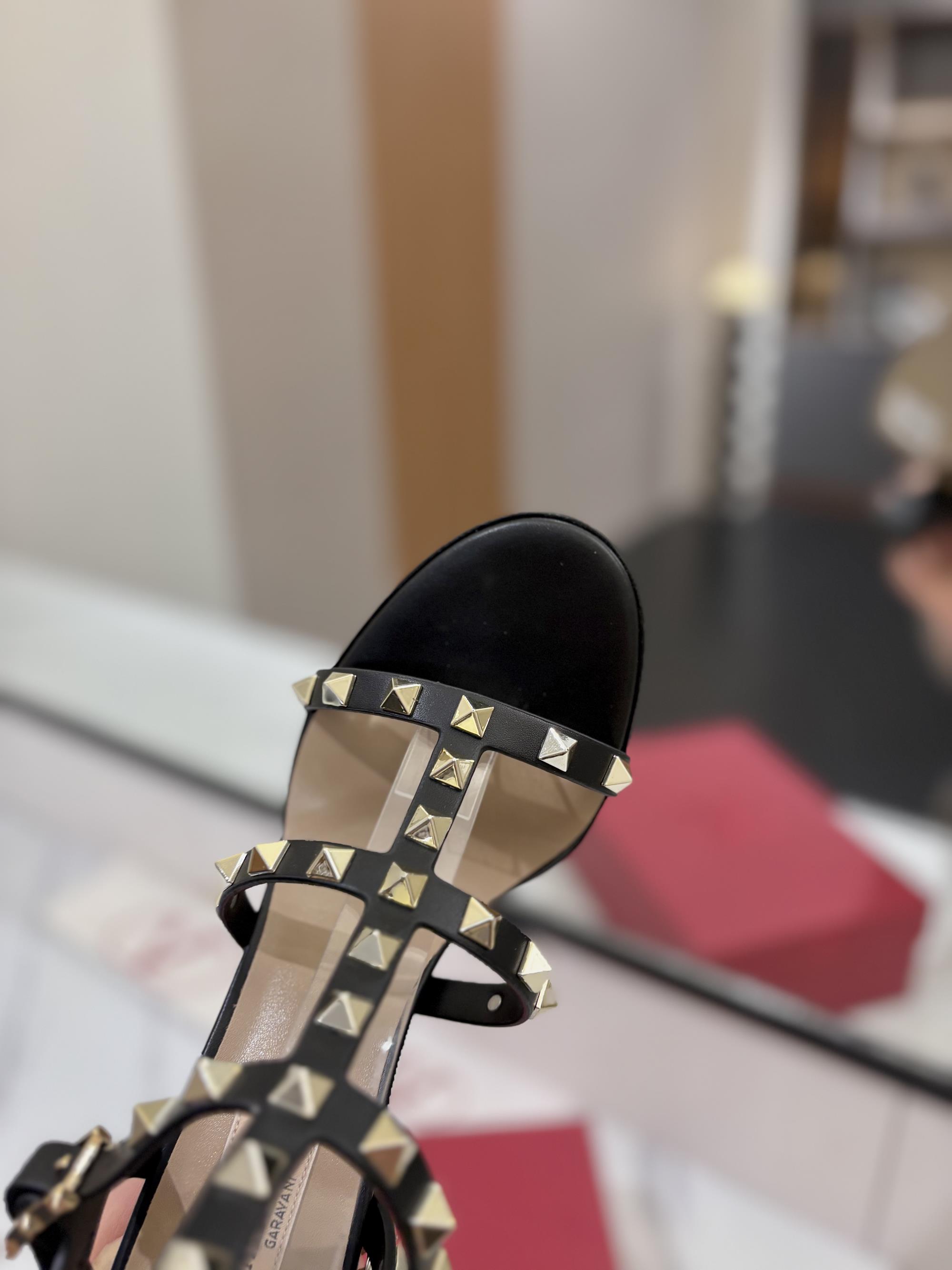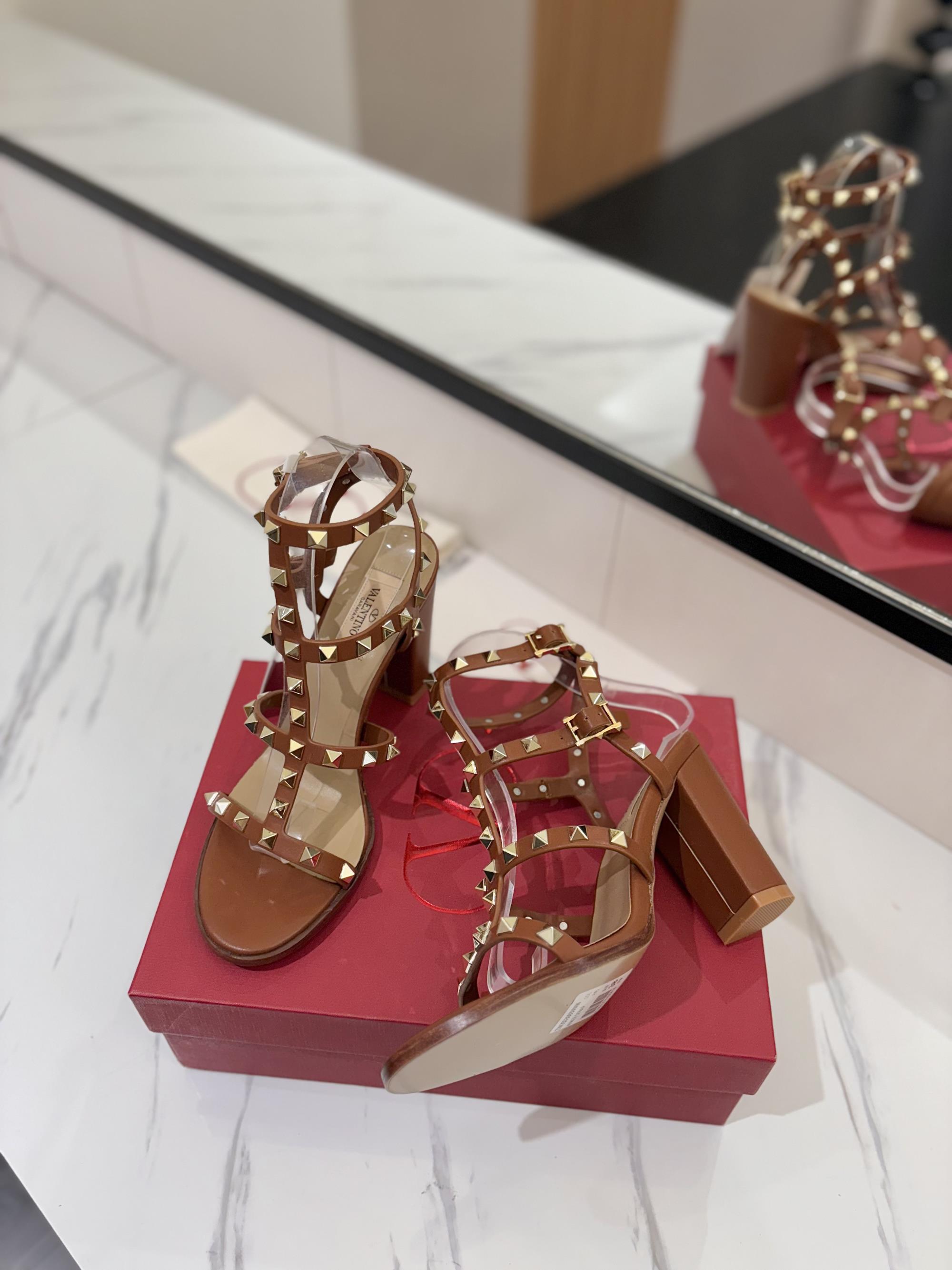 NIGO Valentino Women's Summer Solid Color Rivet Buckle 9cm Square Heel Sheepskin High Heels Shoes #nigo75829