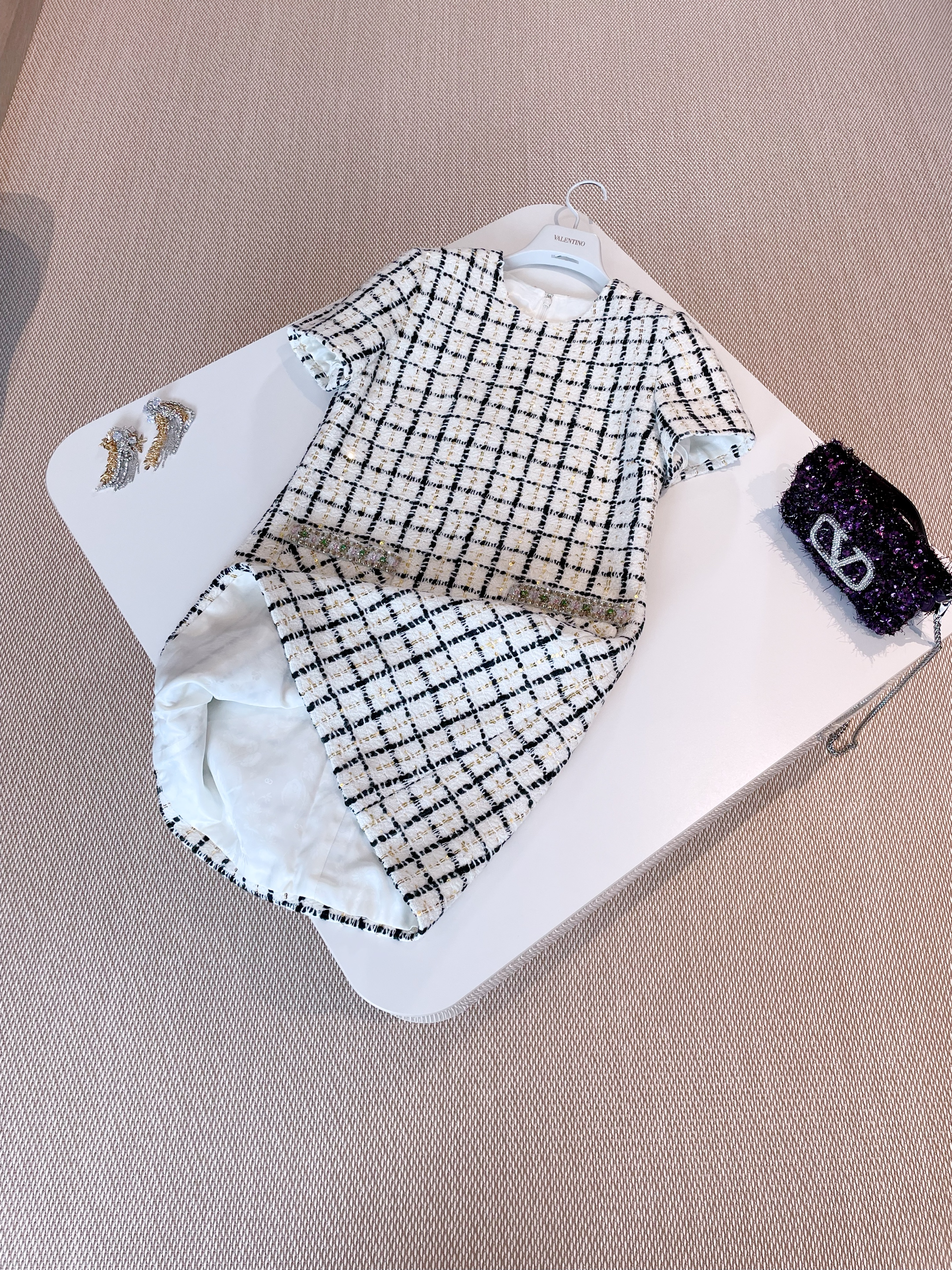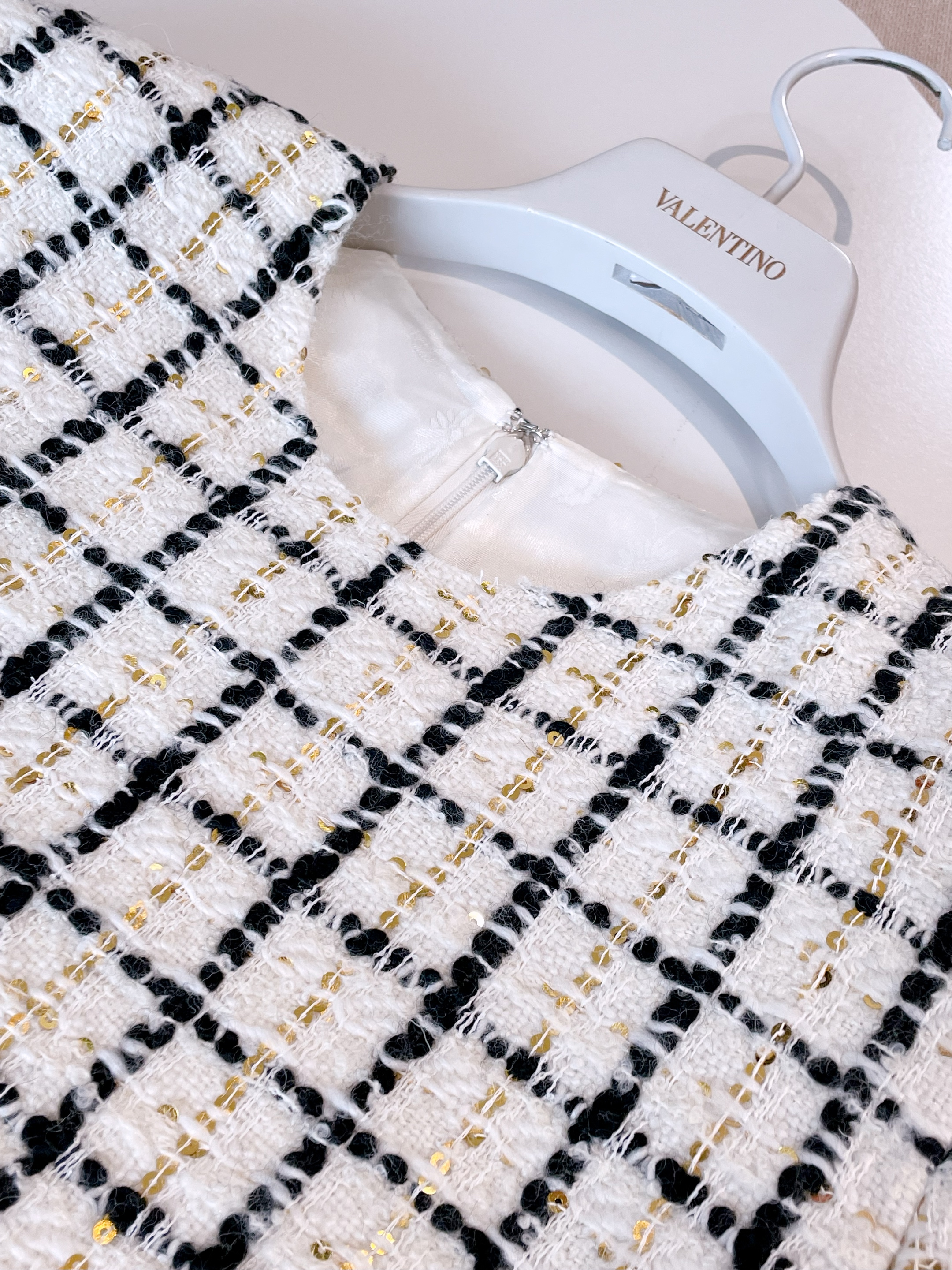 This Valentino clothing showcases the brand's exceptional craftsmanship and attention to detail. Crafted from premium tweed, this piece combines timeless luxury with modern style.